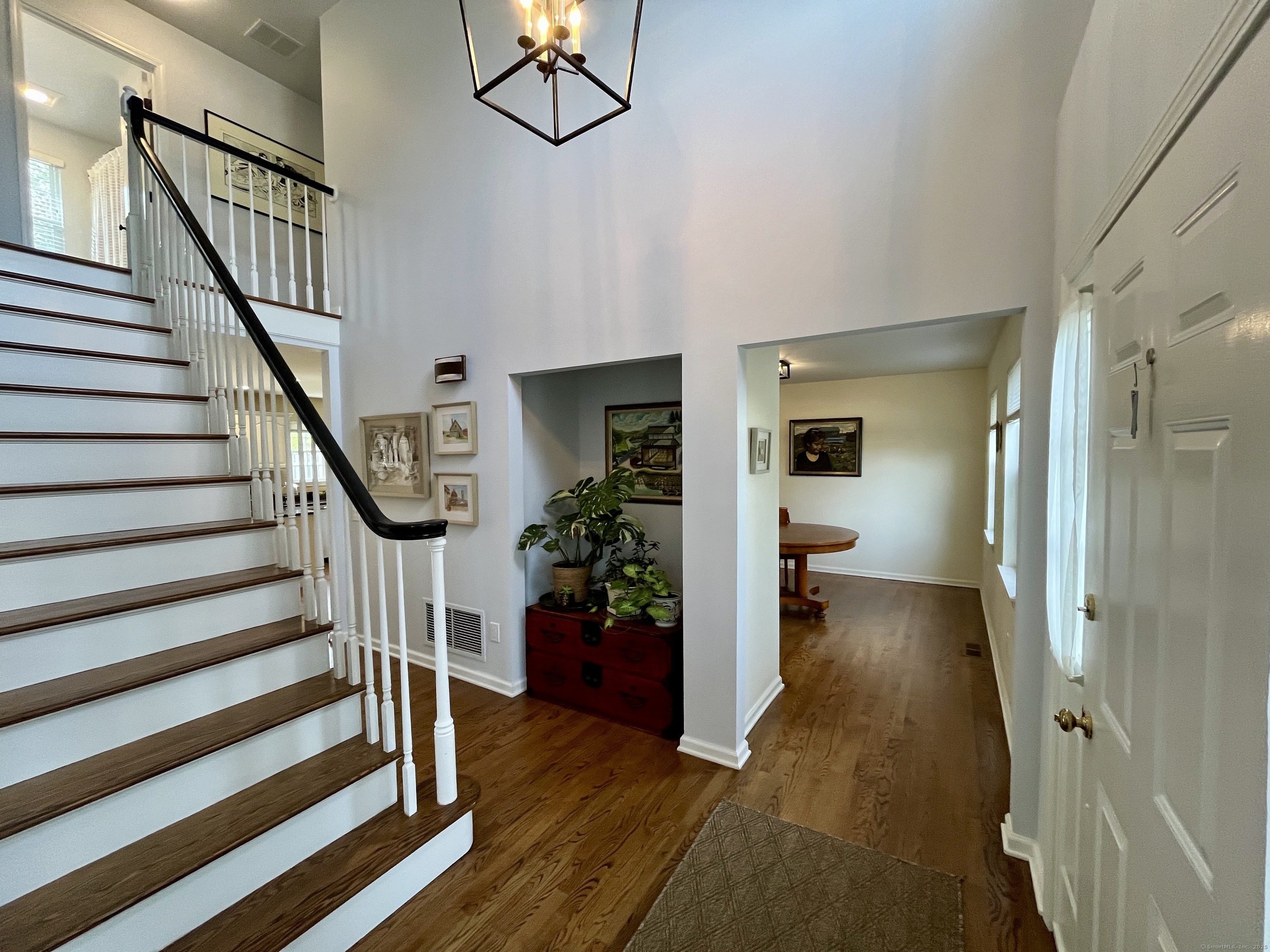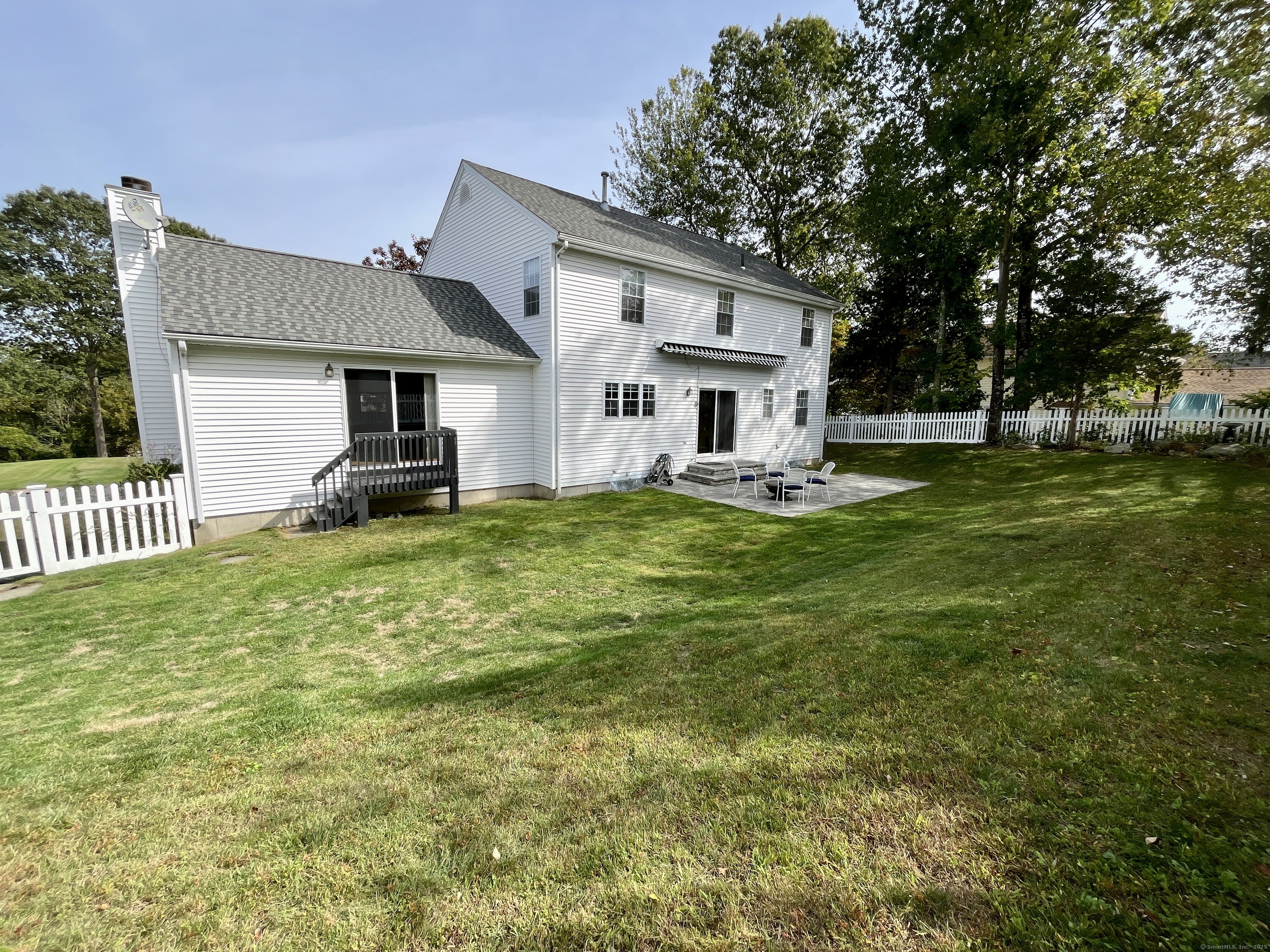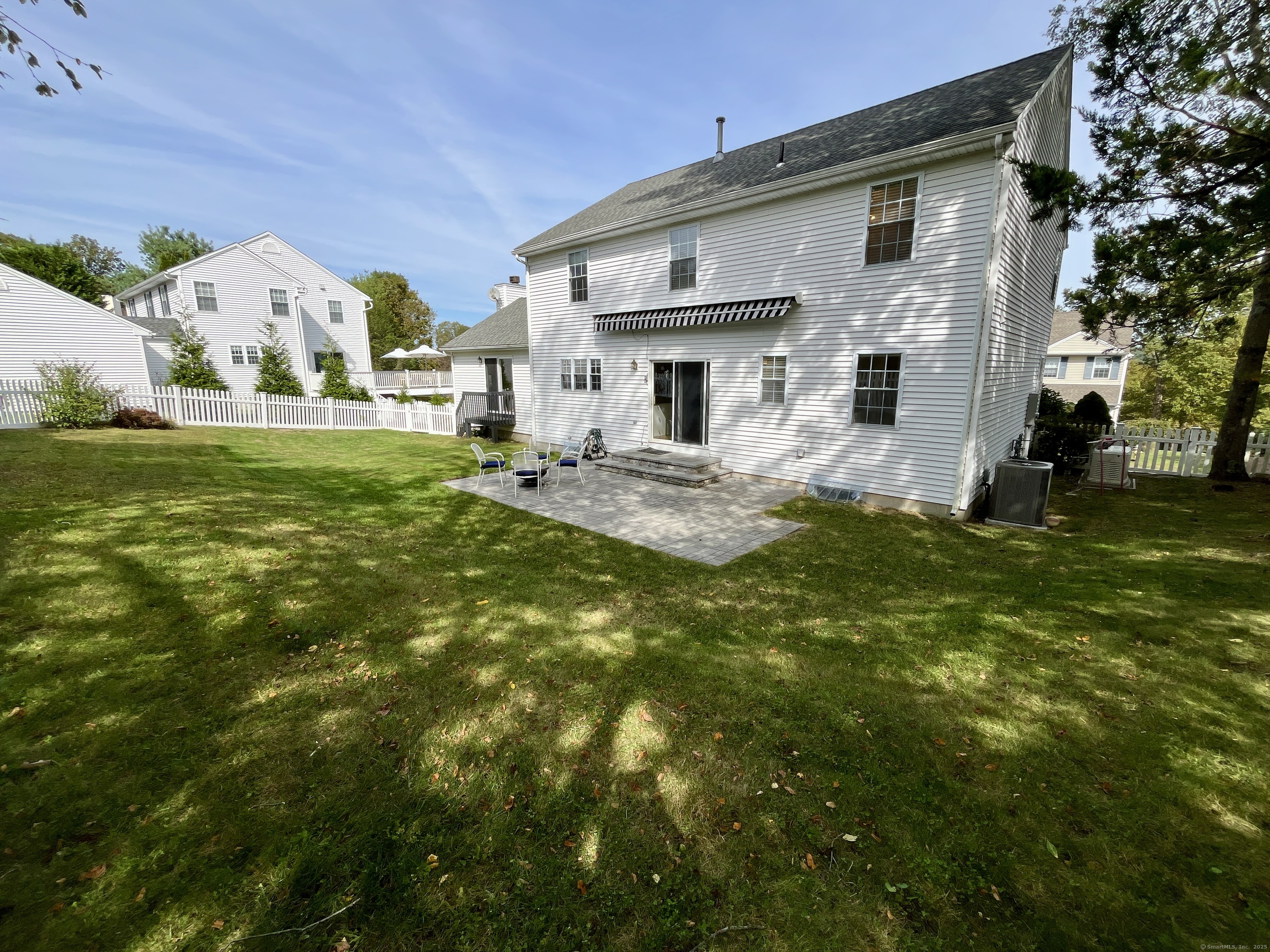 Nestled on a picturesque lot with fenced-in backyard, this attractive 3-bedroom, 2.5 bath Center Hall Colonial is located in sought-after Great Oak Farm, a thoughtfully planned community in a family friendly environment. The interior features a welcoming two-story foyer, hardwood floors, an inviting formal dining room & living room, & a dramatic 24 x 24 family room w/ cathedral ceiling & gas fireplace (not in use), a half bath, & laundry room. The fully applianced EIK has white cabinetry, granite countertops, a center island, pantry closet, & a generous dinette area w/ sliders that open to a newer expansive patio complete with a Sunbrella electric awning. Upstairs, the generous primary suite offers a peaceful retreat complete with walk-in closet & ensuite bath w/ soaking tub, double sink vanity & separate shower stall. Two additional bedrooms w/ ample closet space share a full bath w/ double sink vanity. A whole house automatic generator, new HVAC system w/ two-zone gas heat & central air, a two car garage, blinds & shades on windows w/ darkening shades in BR's & unfinished lower level w/ lots of storage space adds to home's appeal. Path across street leads to Wolfe Park & Great Hollow Lake with walking & biking trails, outdoor pool, ballfields, playground, ice skating... Close to schools, shopping, & major commuting routes. Two month's security, good credit, & verifiable income required. No smoking. A pet may be considered on a case by case basis. See agent remarks.