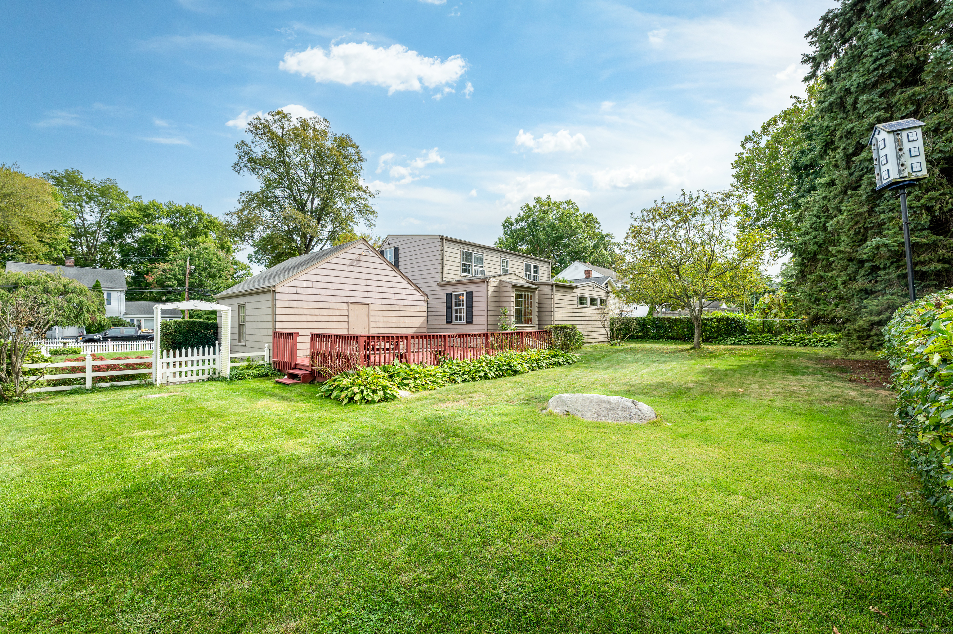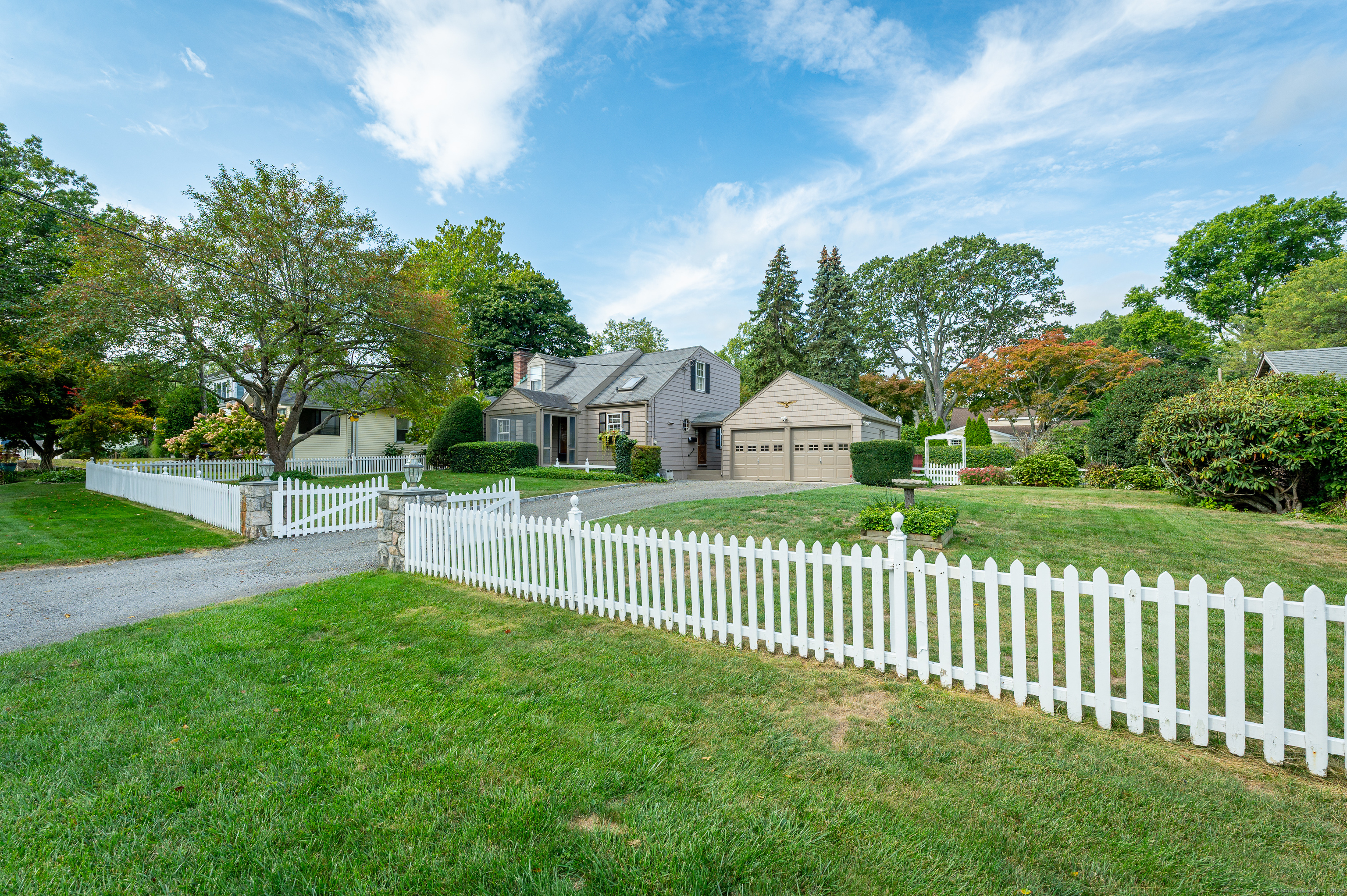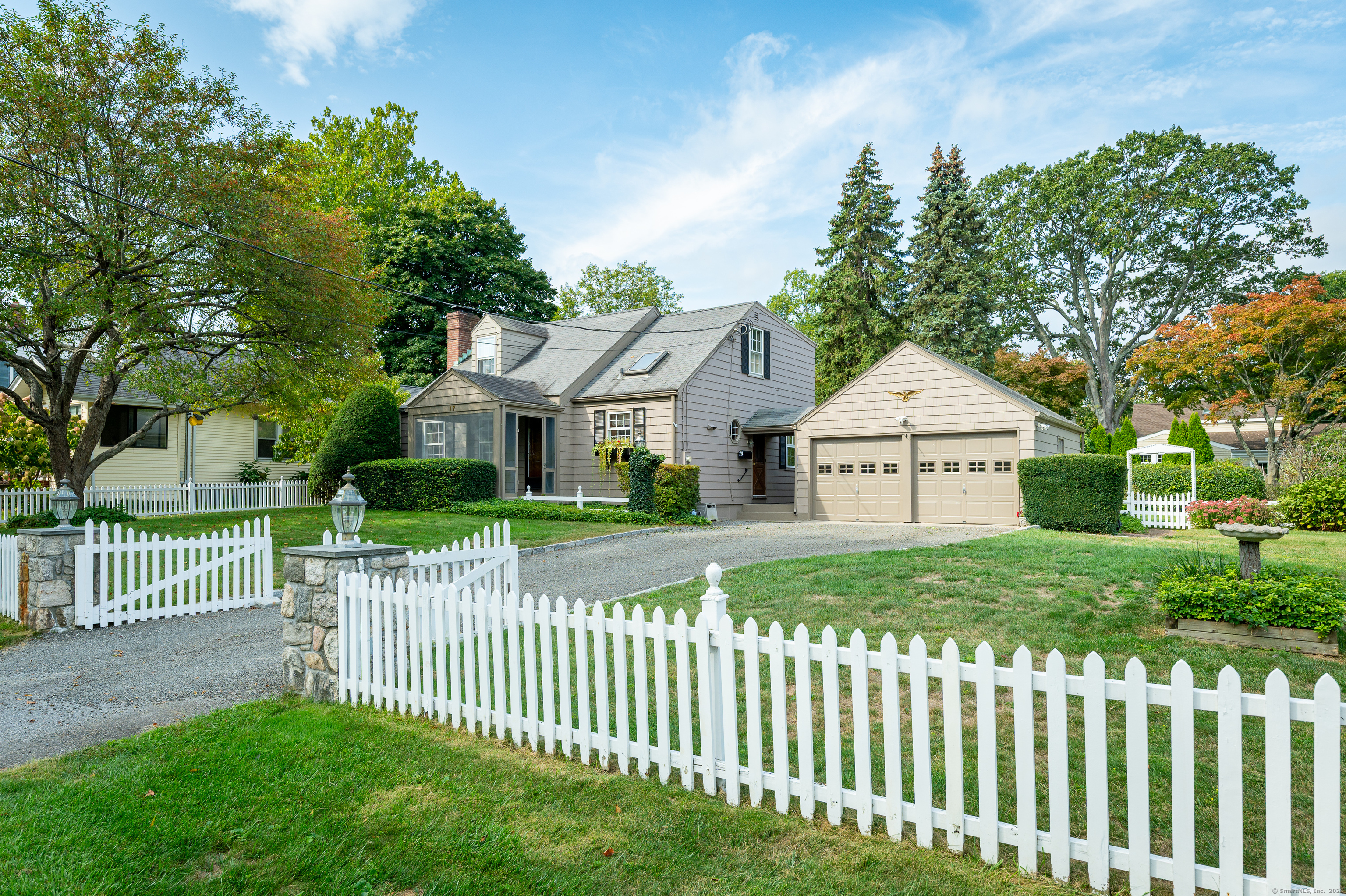 Eye catching curb appeal greets you from the white picket fence, stone pillars and Belgium block lined driveway accented by crushed stone. Walk to everything from this quiet side street tucked right off the beaten path in this convenient Newfield area. Main floor oversized bedroom with a king-sized walk in closet. Two second floor bedrooms share a full bath. The partially finished lower level is a blank canvas ready for fresh ideas. Mature plantings frame the rear yard for the ultimate privacy. In total, the oversized or "extra" lot offers a multitude of future uses for the discerning buyer. A much loved home, owned by the same family for more than 50 years, this charming cape is ready for its new chapter. Come and make it your own.