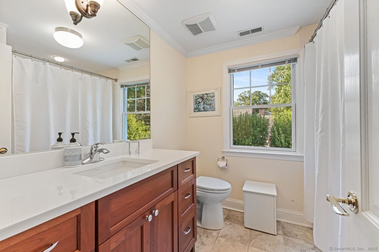 Unique opportunity in a price range with little inventory Handsome, colonial style home on a quiet, private cul-de-sac just a few minutes from Old Greenwich, in North Street/Central school district. The home was updated in 2012 to include a first floor ''open plan'' layout offering multiple French Doors to a large, sunny patio and capacious back yard. On the second floor, enjoy an updated primary suite, three double bedrooms, and, additionally, a guest/au-pair suite with private entrance, an additional bedroom, flexible use sitting room, full, eat-in kitchen, bathroom, and separate laundry.