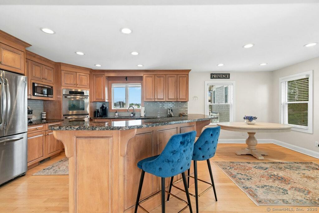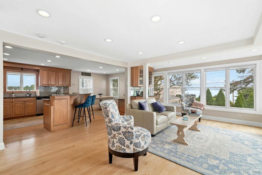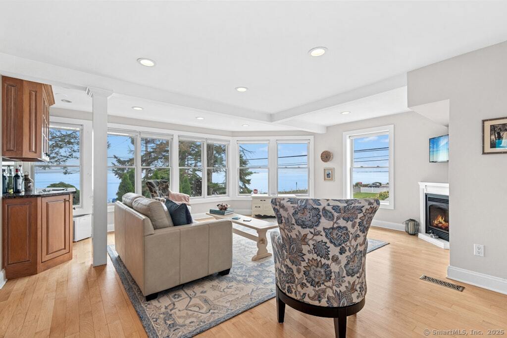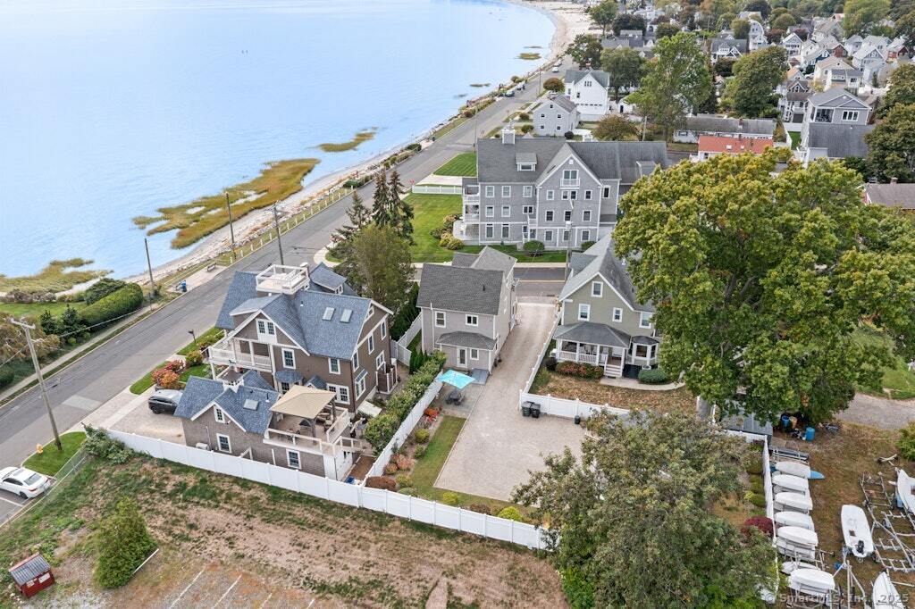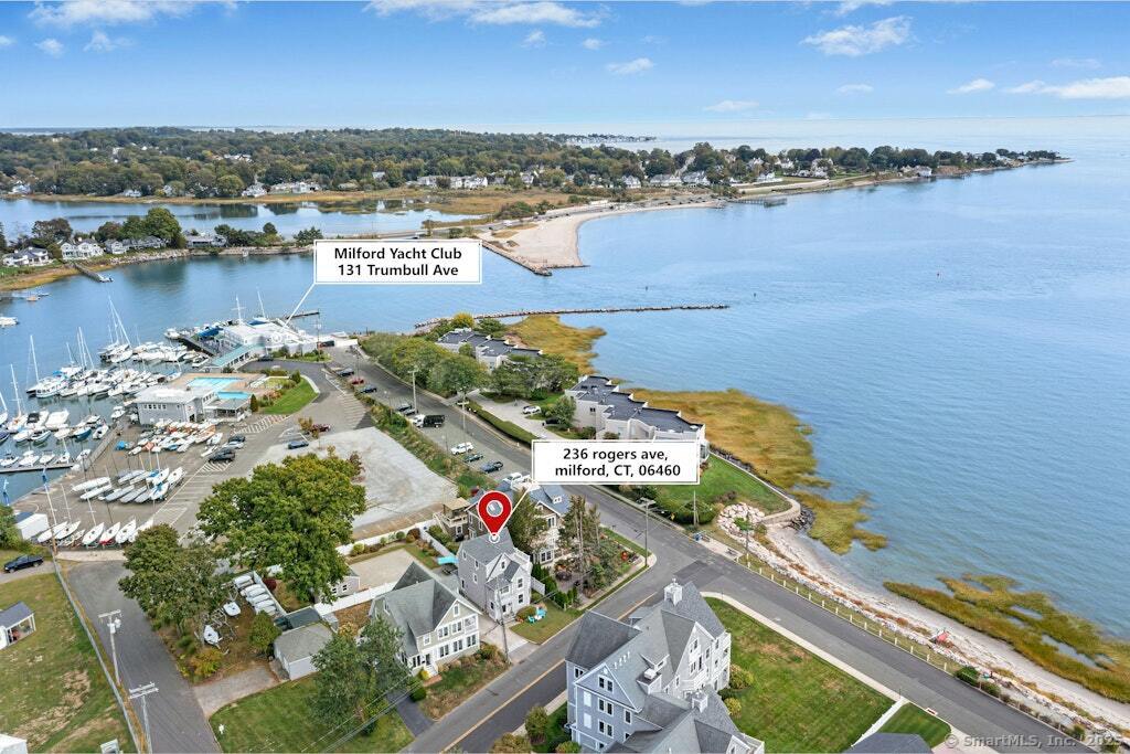 Fort Trumbull colonial coastal charmer with panoramic views of Long Island sound. Steps to the beach and a view of the marina. This is a show stopper - meticulously maintained with thoughtful upgrades throughout, making it truly a rare find. This legal 2 family is currently used as a single family. Unique opportunity with flexible uses: multi-generational living, single family w/guest suite or 2 family with additional income. First floor with new luxury vinyl plank flooring - living room with stunning views, fireplace, kitchen with leathered granite counters, tile backsplash, dining area, bedroom, full bath and laundry area. Second floor with breathtaking views from every room! Enjoy an open floor plan ideal for entertaining with hardwood floors, gas fireplace, eat in kitchen with granite counters, ss appliances, tile backsplash, dining area and half bath. Primary bedroom with balcony - step out and feel the breeze. Gorgeous bath and walk in closet with laundry set up. Private patio, perennial garden beds and a detached 2 car garage (potential to add a studio or ADU) along with privacy fencing. Meticulously maintained and updated, it comes with a newer roof, generator, cedar shake impression siding, newer windows and blinds. Full basement with storage. No flood insurance required. Step outside - enjoy walking by the beach, bike rides and just sitting outside and taking in the view. Quick trip to Milford Green and shopping, restaurants. A very special home.