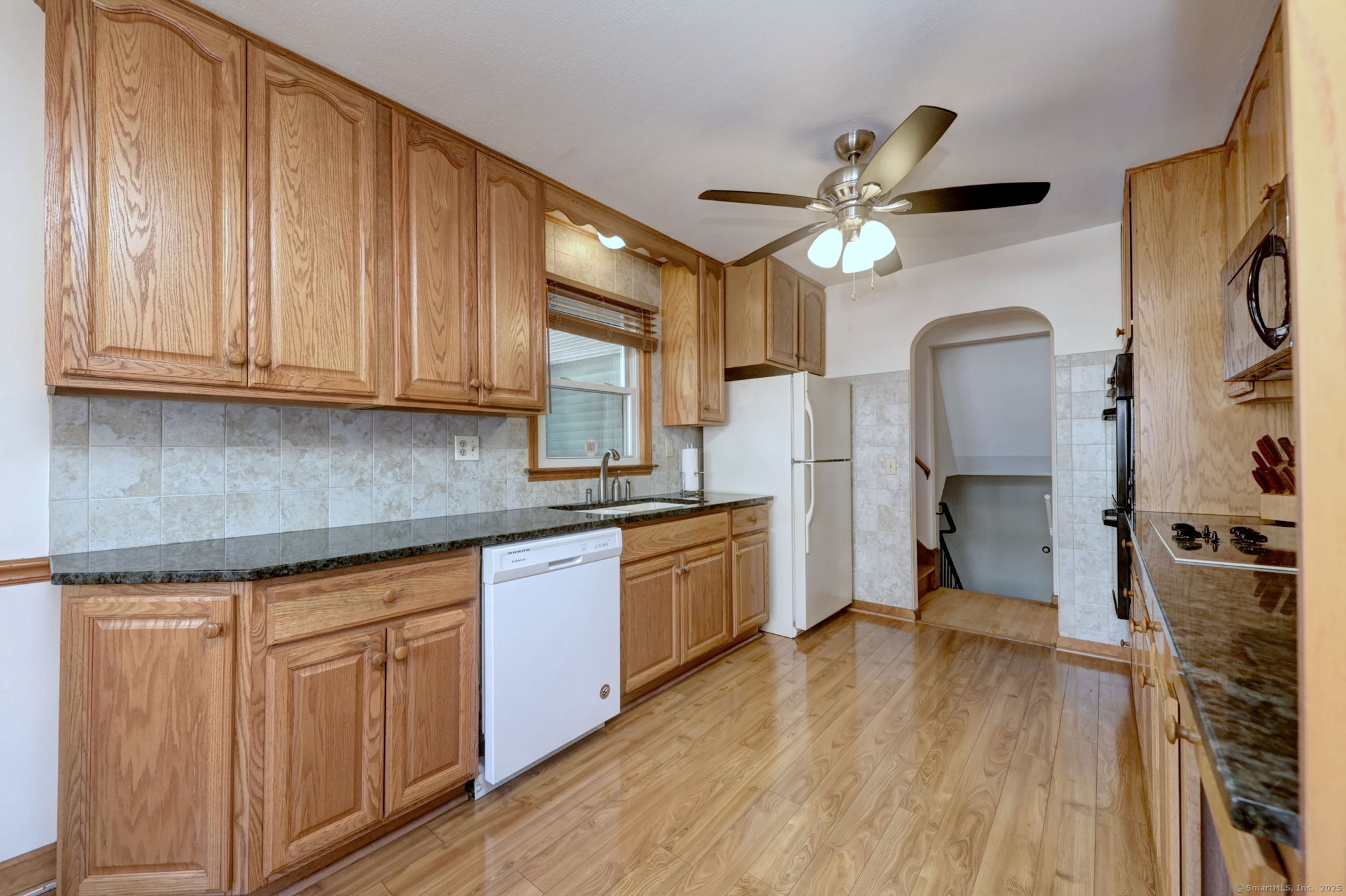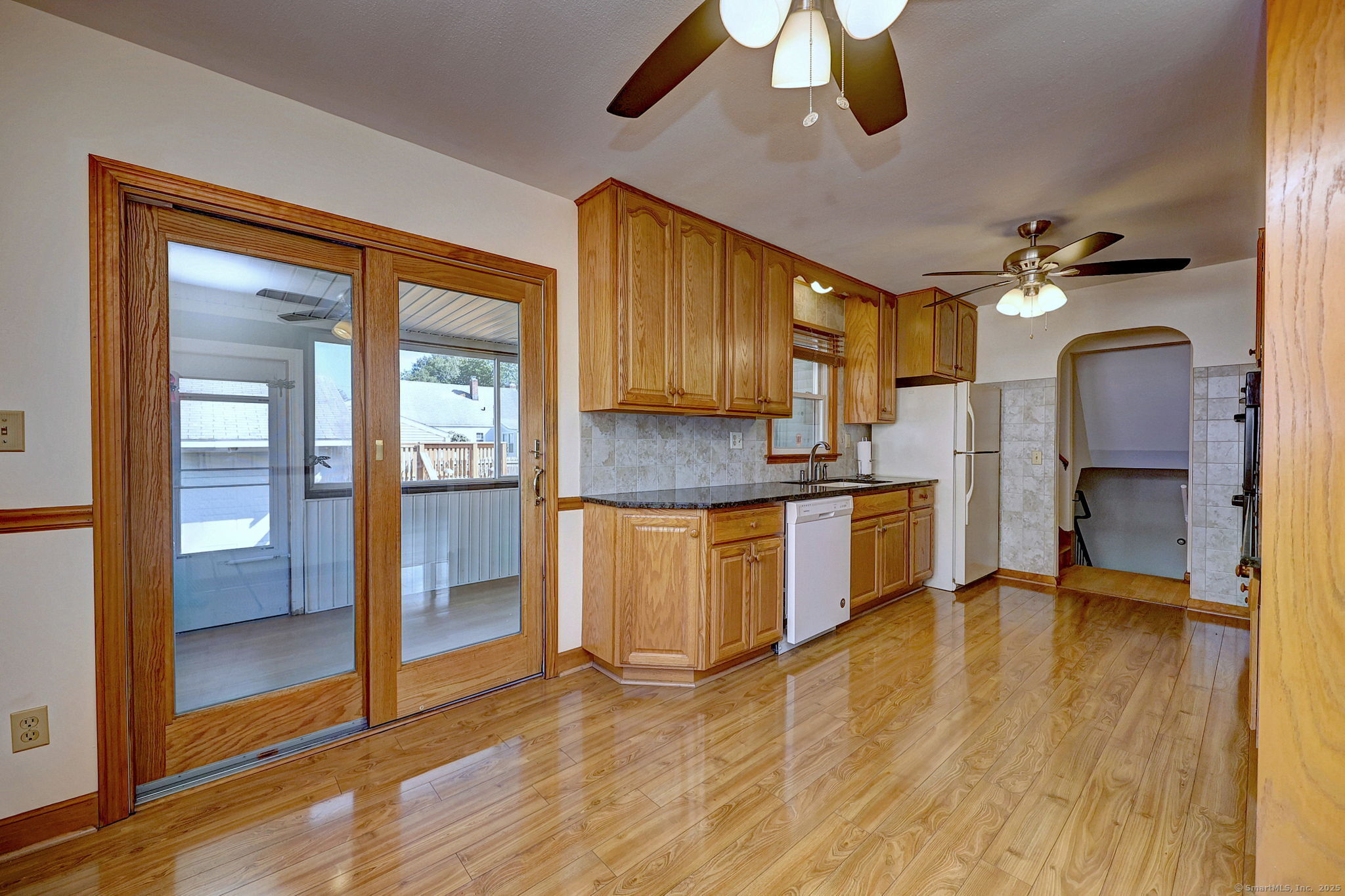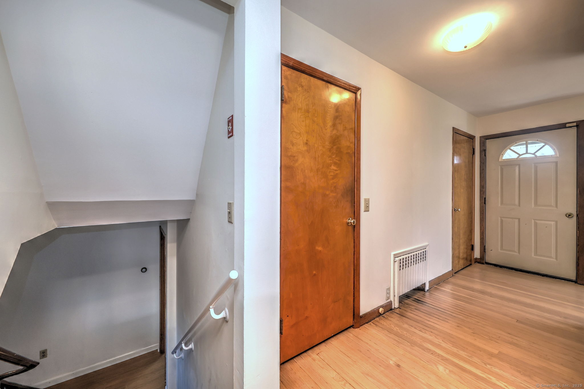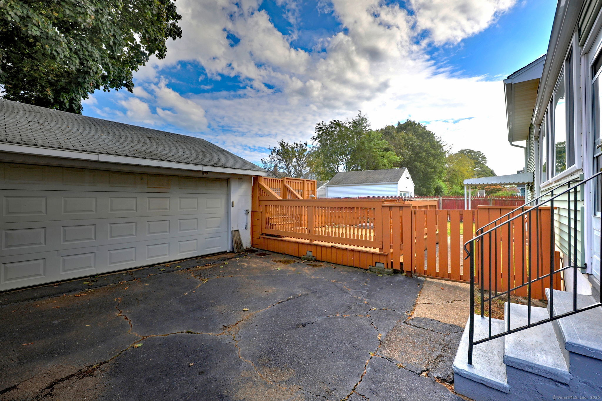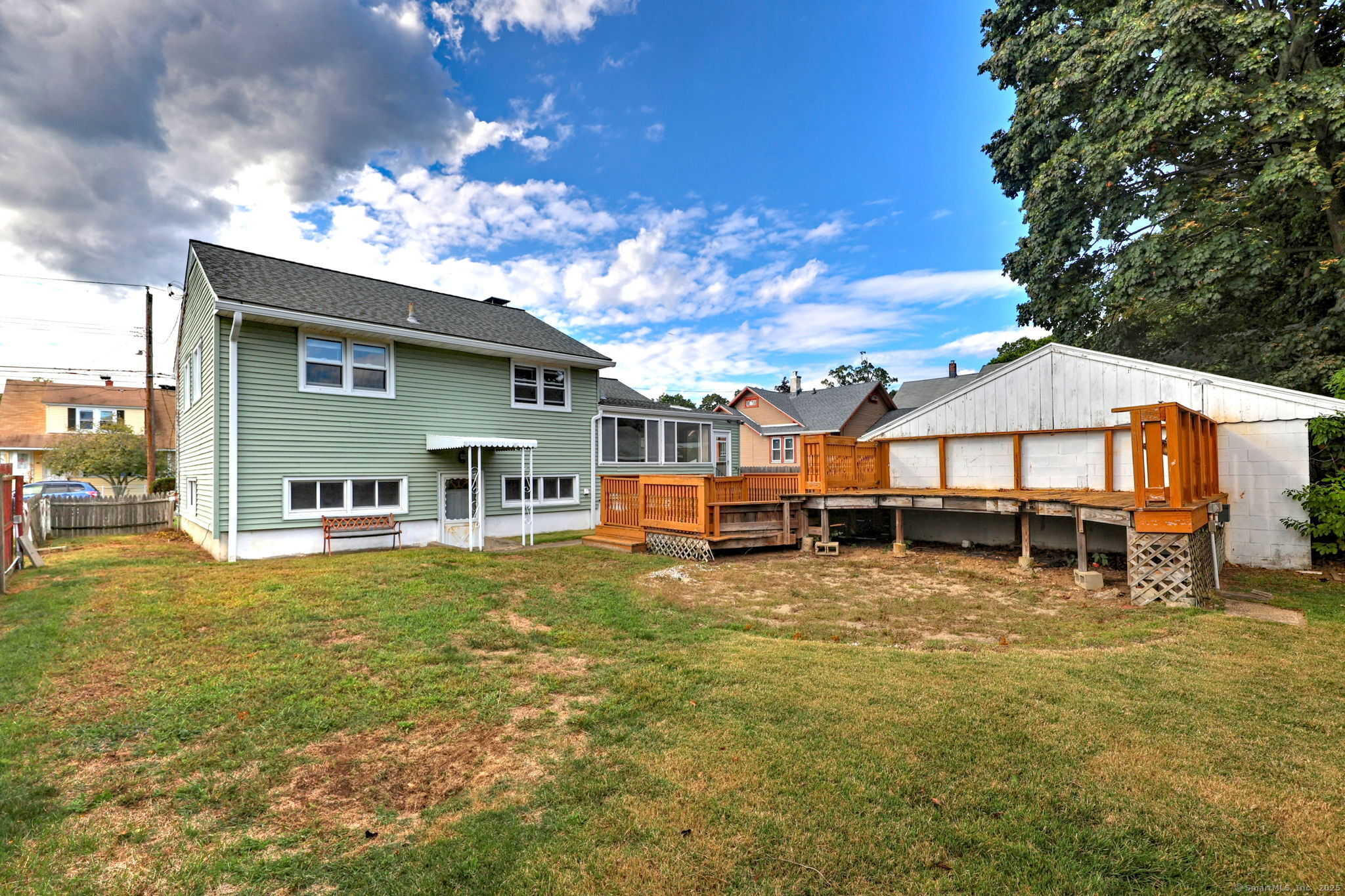 Welcome to this well-maintained split-level home offering just under 2,000 sq ft of living space, (includes the finished lower level), plus a detached 2-car garage. The freshly painted interior and beautifully refinished hardwood floors create a warm, inviting feel throughout. The main level features a spacious living room with a ledge-stone facade wood-burning fireplace, an updated kitchen with oak cabinets, granite counters, double wall oven, electric cooktop, dishwasher, and refrigerator. The kitchen opens to the dining room and leads to a generous sized enclosed porch (additional 189 square feet) - a perfect spot for morning coffee or evening relaxation. Up a few steps, you'll find three bedrooms, all with hardwood floors, including a primary bedroom with a half bath, plus an updated full bath with a walk-in shower. The finished lower level offers even more living space with a walk-out, a laundry area, a 4th bedroom, a playroom/office, and an additional half bath. The roof is only 6 years young. This home features oil heat, vinyl siding, a leveled yard with deck (great for a future pool!), and is walking distance to the elementary school. Ideally located near I-95, the Stratford train station, shopping, and restaurants, this home offers easy access to everything you need. Loved by the same family for many decades, this special home is ready for its next chapter.