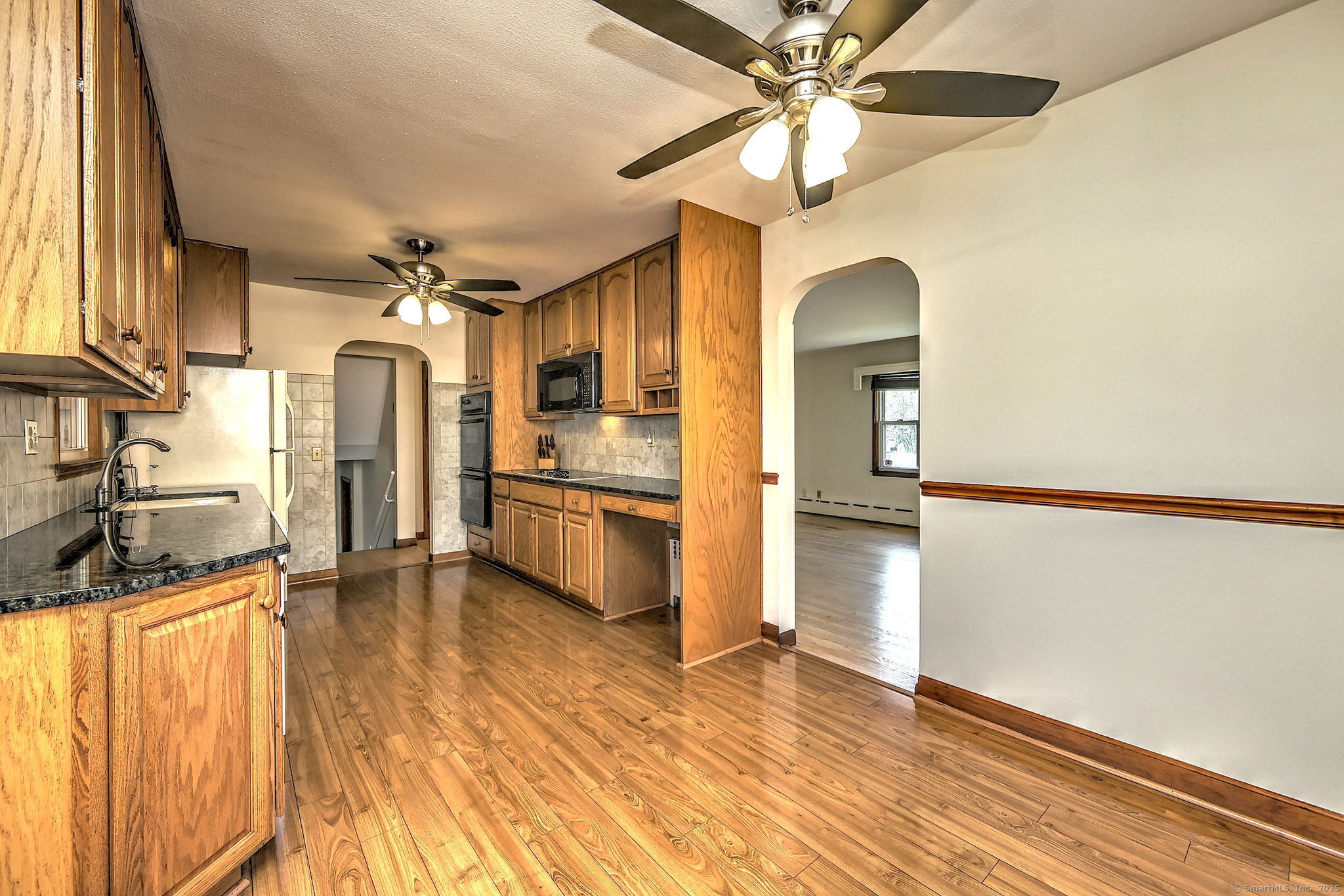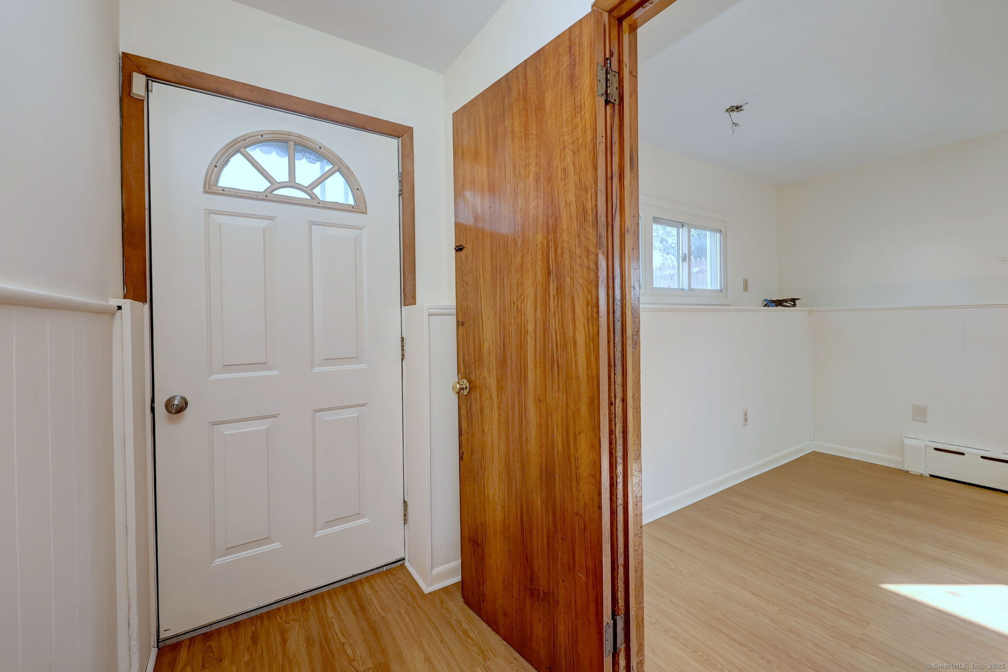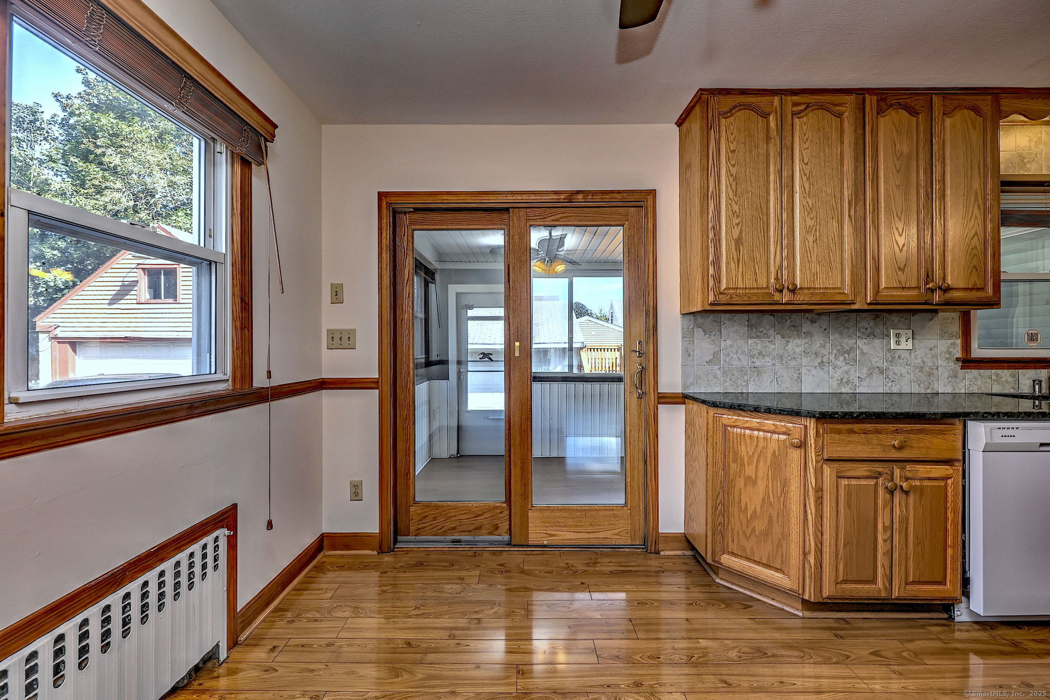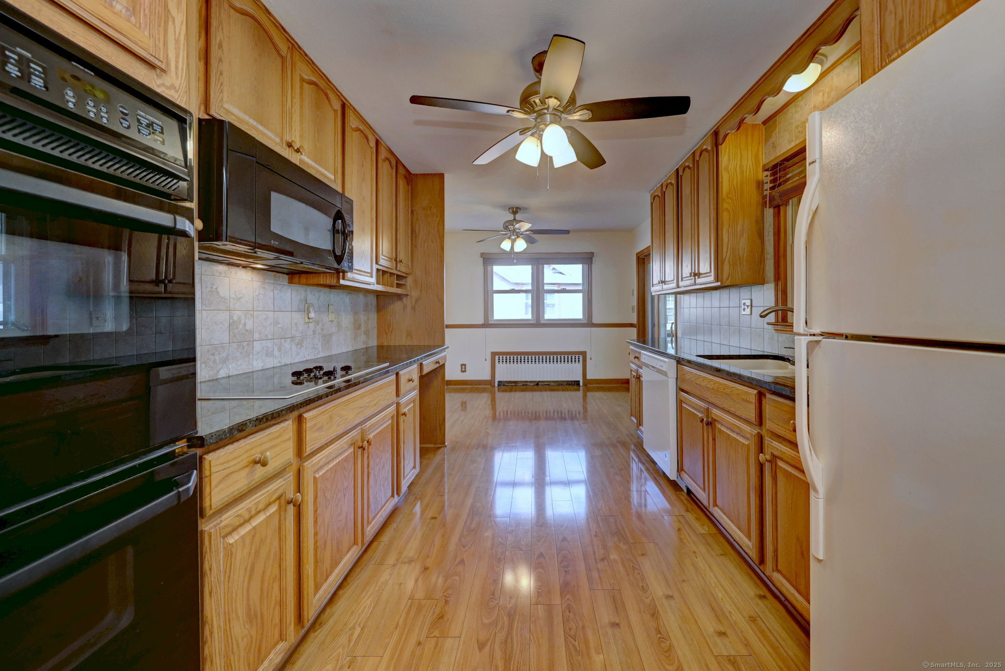 Welcome to this well-maintained split-level home offering just under 2,000 sq ft of living space, (includes the finished lower level), plus a detached 2-car garage. The freshly painted interior and beautifully refinished hardwood floors create a warm, inviting feel throughout. The main level features a spacious living room with a ledge-stone facade wood-burning fireplace, an updated kitchen with oak cabinets, granite counters, double wall oven, electric cooktop, dishwasher, and refrigerator. The kitchen opens to the dining room and leads to a generous sized enclosed porch (additional 189 square feet) - a perfect spot for morning coffee or evening relaxation. Up a few steps, you'll find three bedrooms, all with hardwood floors, including a primary bedroom with a half bath, plus an updated full bath with a walk-in shower. The finished lower level offers even more living space with a walk-out, a laundry area, a 4th bedroom, a playroom/office, and an additional half bath. The roof is only 6 years young. This home features oil heat, vinyl siding, a leveled yard with deck (great for a future pool!), and is walking distance to the elementary school. Ideally located near I-95, the Stratford train station, shopping, and restaurants, this home offers easy access to everything you need. Loved by the same family for many decades, this special home is ready for its next chapter.
