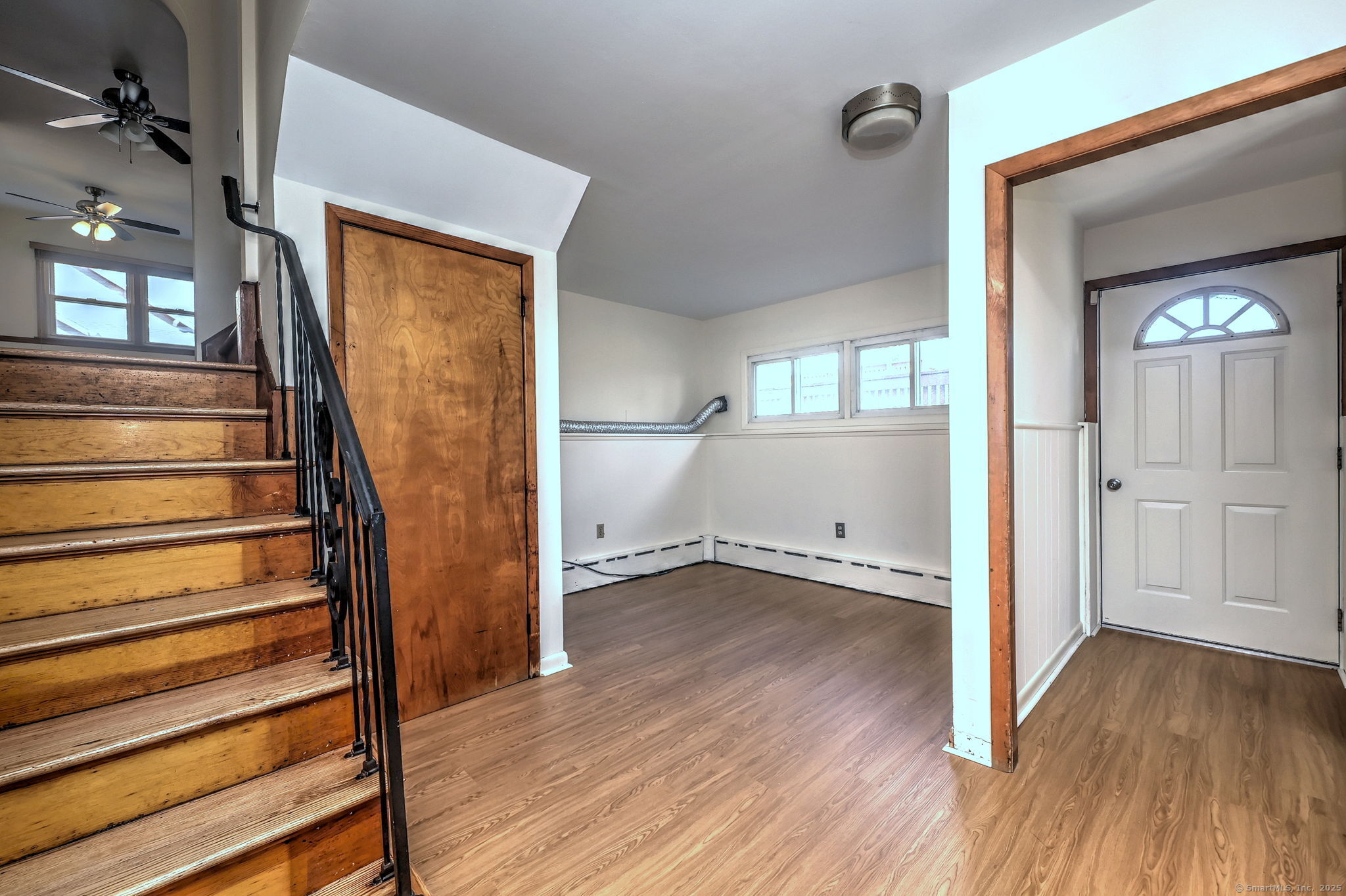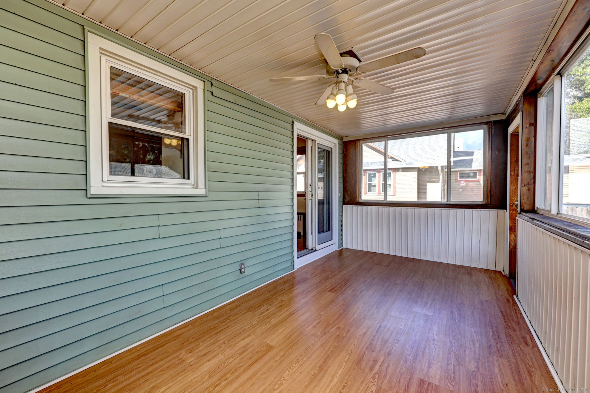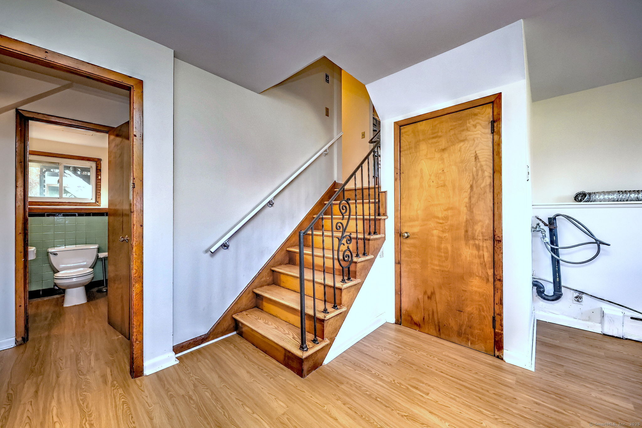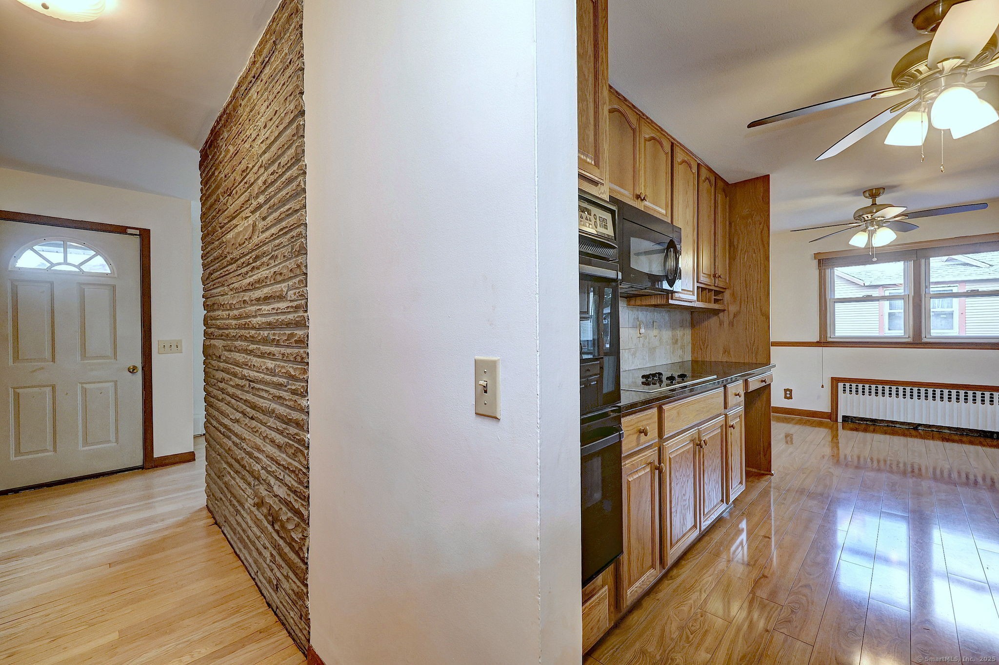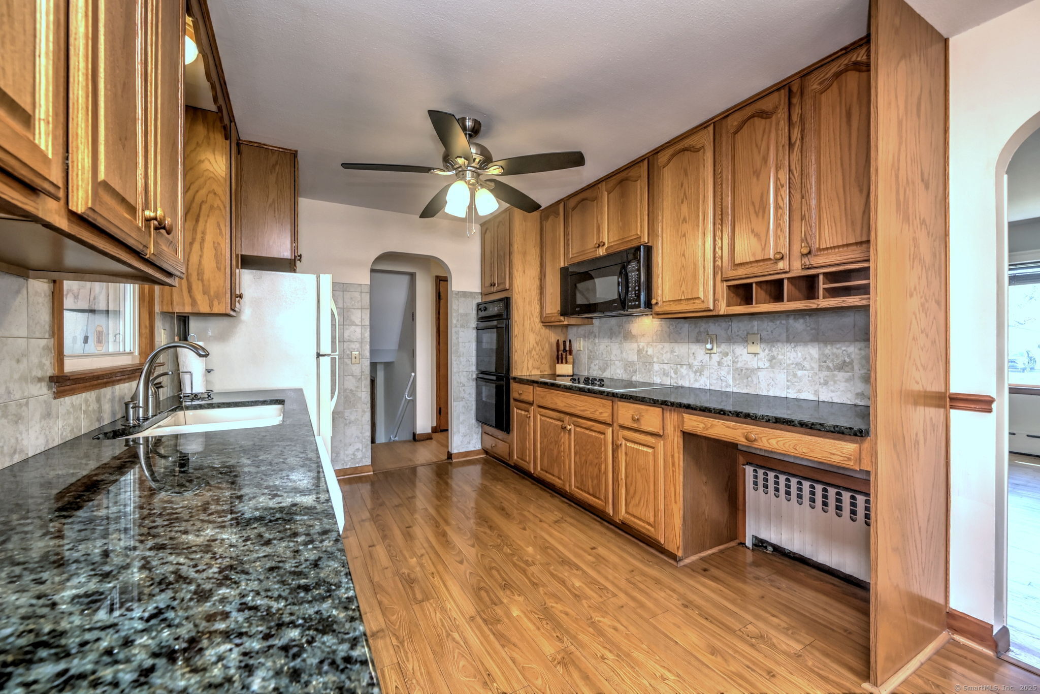 Welcome to this well-maintained split-level home offering just under 2,000 sq ft of living space, (includes the finished lower level), plus a detached 2-car garage. The freshly painted interior and beautifully refinished hardwood floors create a warm, inviting feel throughout. The main level features a spacious living room with a ledge-stone facade wood-burning fireplace, an updated kitchen with oak cabinets, granite counters, double wall oven, electric cooktop, dishwasher, and refrigerator. The kitchen opens to the dining room and leads to a generous sized enclosed porch (additional 189 square feet) - a perfect spot for morning coffee or evening relaxation. Up a few steps, you'll find three bedrooms, all with hardwood floors, including a primary bedroom with a half bath, plus an updated full bath with a walk-in shower. The finished lower level offers even more living space with a walk-out, a laundry area, a 4th bedroom, a playroom/office, and an additional half bath. The roof is only 6 years young. This home features oil heat, vinyl siding, a leveled yard with deck (great for a future pool!), and is walking distance to the elementary school. Ideally located near I-95, the Stratford train station, shopping, and restaurants, this home offers easy access to everything you need. Loved by the same family for many decades, this special home is ready for its next chapter.