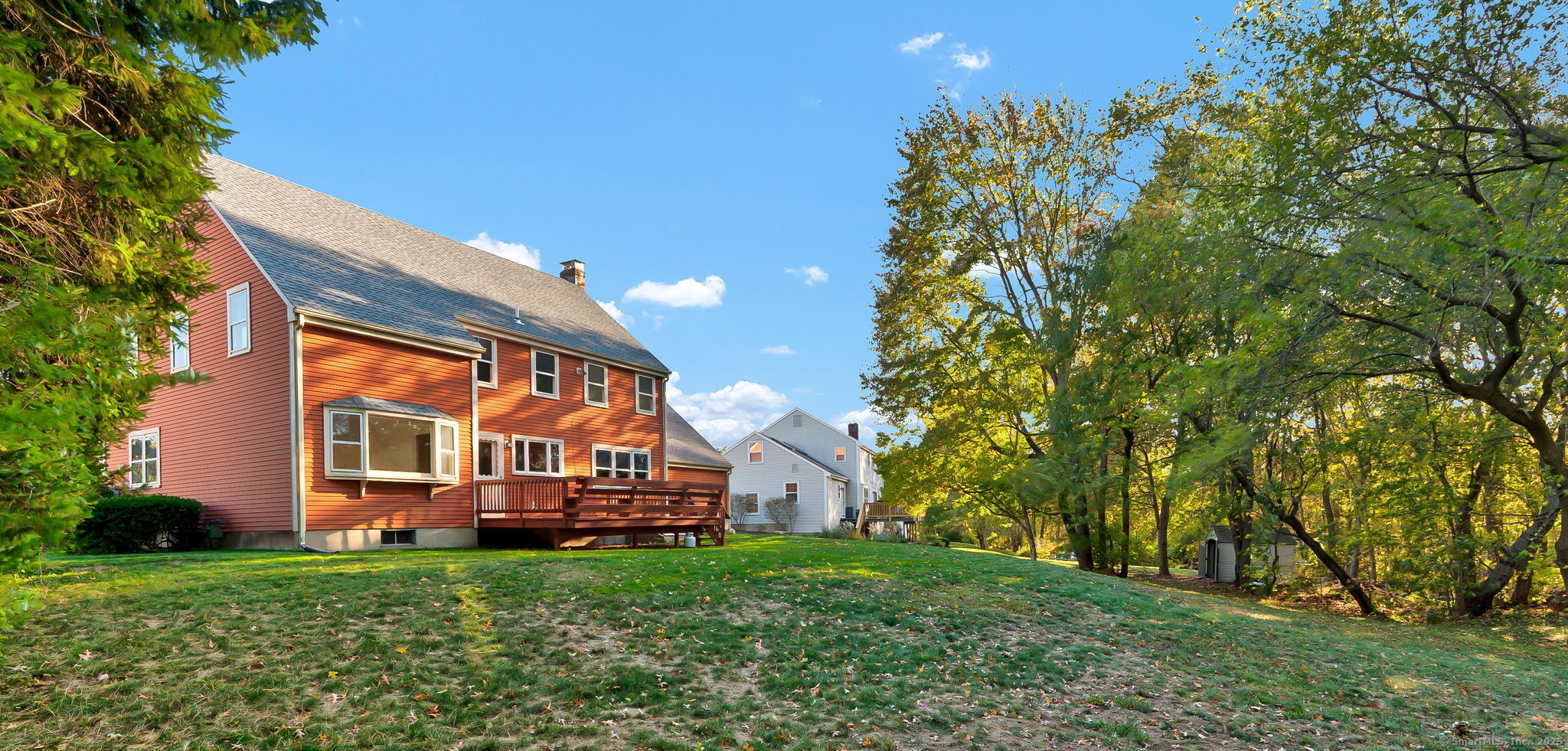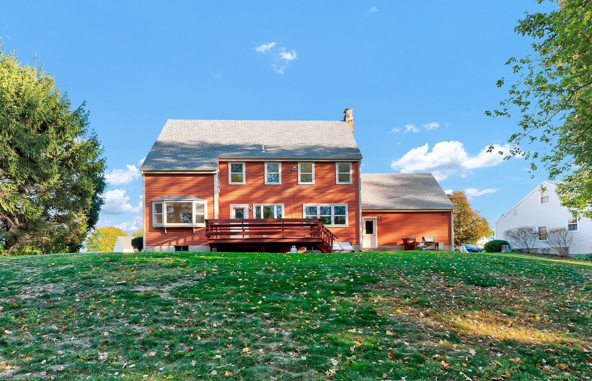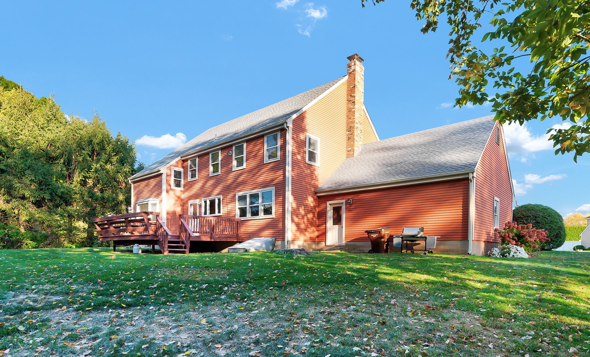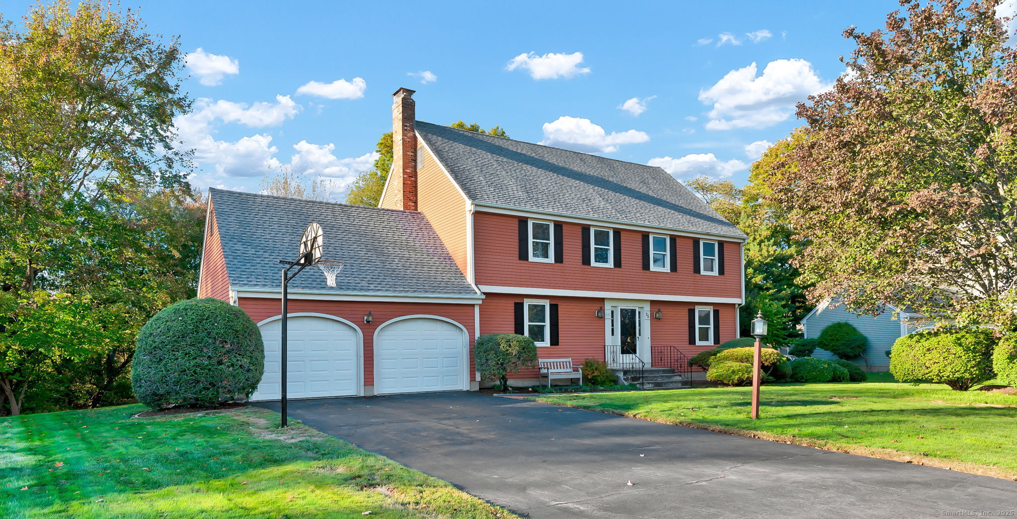 Location, Neighborhood & Lifestyle! Nestled in a desirable, sidewalk-lined neighborhood within the highly sought-after Webb Elementary School district, this lovingly maintained Colonial-style home offers over 2,400 square feet of classic charm, comfort, and space. A brand-new GAF Timberline HDZ roof-backed by a Silver Pledge Warranty-adds long-term value and peace of mind. A charming brick walkway and wide front steps lead to a welcoming foyer with two closets, setting the stage for the spacious and inviting interior. The kitchen has granite countertops, an island, maple cabinetry that extends to the ceiling, and a window overlooking the backyard. From here, step directly onto the back deck-perfect for outdoor dining or simply enjoying the peaceful setting. Adjacent living and dining rooms with refinished hardwood floors offer an easy flow for both daily living and special gatherings. The dining room is enhanced by a bright bay window, while the cozy family room just off the kitchen features built-in shelving, a wood-burning fireplace, and views of the backyard. A half bath and laundry with storage cabinets provide added convenience on the main level. Upstairs, you'll find four generously sized bedrooms, including a primary bedroom with a private bath (shower stall) and a large walk-in closet. A full hall bath with a tub/shower combination serves the remaining bedrooms. Additional highlights include attached two-car garage with rear-door access to the backyard, natural gas