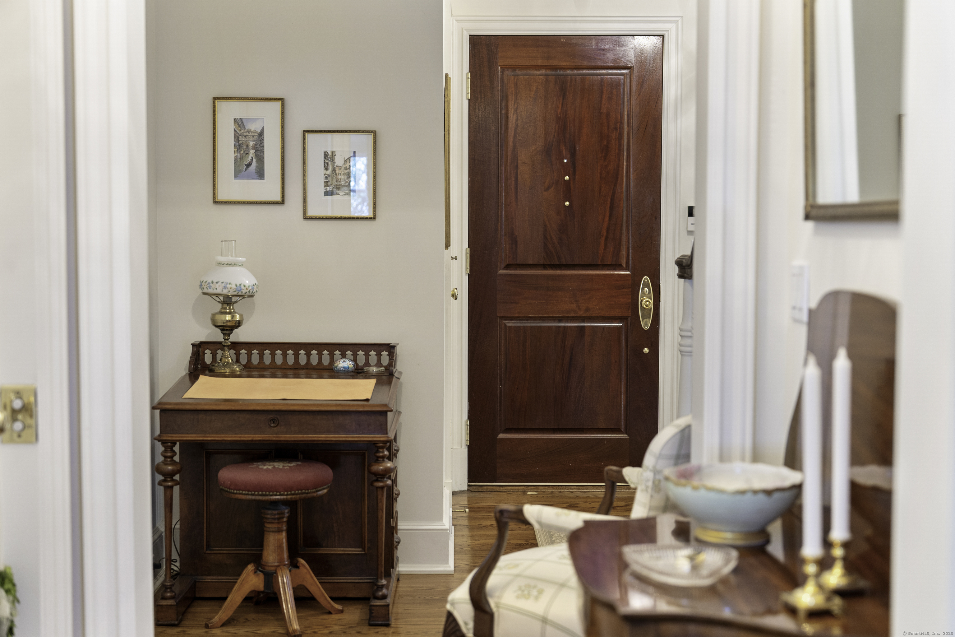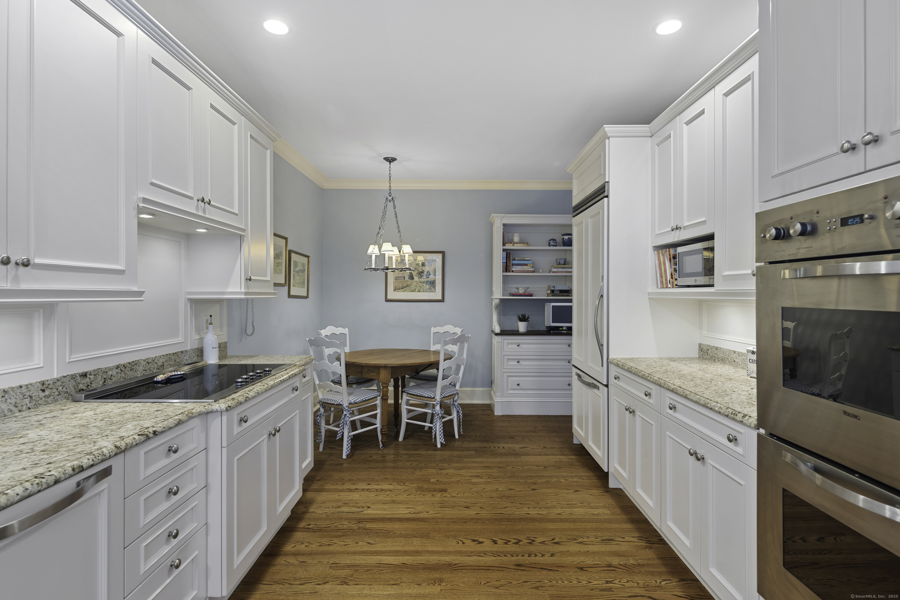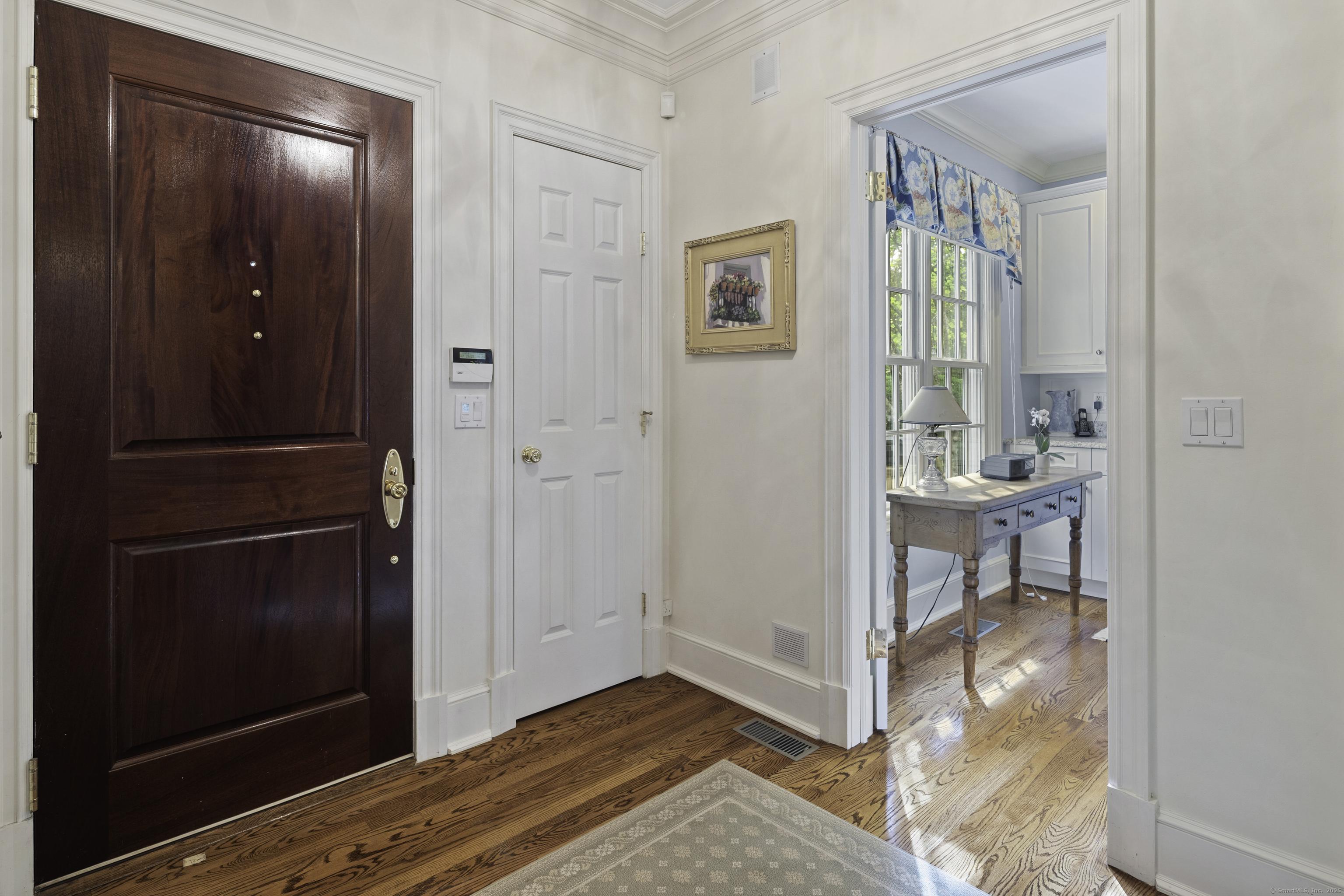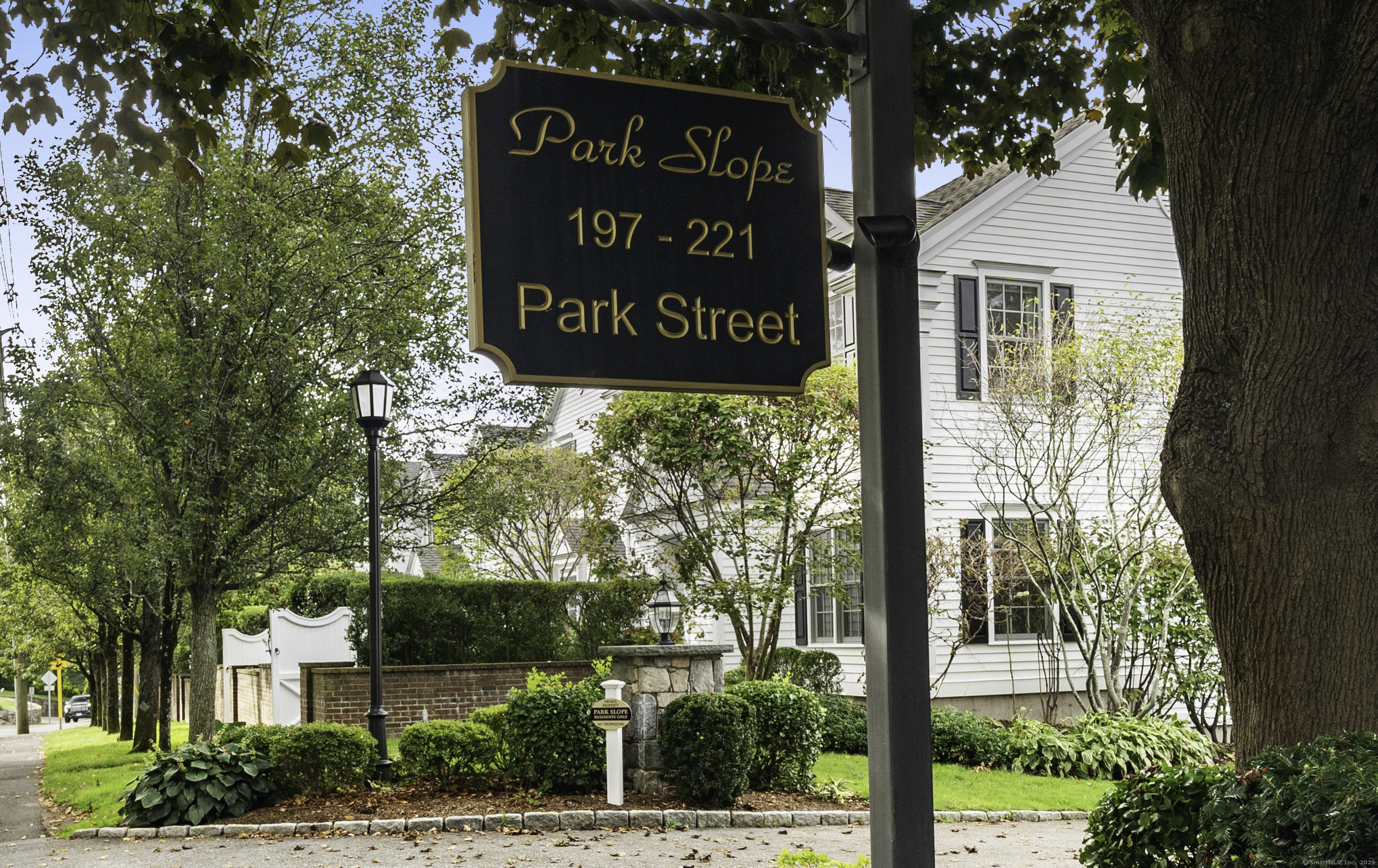 Welcome to 197 Park Slope! As you step through the front gate and onto the blue stone patio, this luxurious sun-drenched end unit delivers spaciousness and privacy of a single-family home with elegant living, complete with a marble fireplace, dining and den, that are enhanced by the beautifully appointed features of custom painted millwork, and pristine hardwood floors that flow seamlessly room to room. The heart of the home centers around a gourmet kitchen equipped with Viking appliances, granite countertops, and abundant cabinetry, plus a generous space for casual dining or entertaining. The impressive primary suite is a true retreat, complete with tray ceiling, and a sumptuous marble ensuite with separate shower, whirlpool bath, and custom walk-in closet. Two additional well-proportioned bedrooms share a stylish hall bath. The lower level extends living space with the convenience of your own 2 car garage, and an oversized laundry room, utility room, and additional ample storage. A Private Elevator operates on all three floors! Walk to New Canaan Town Center for shopping, eclectic restaurants and Metro North Transportation.