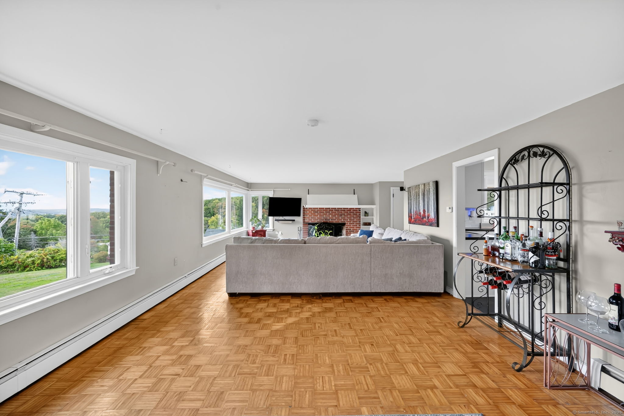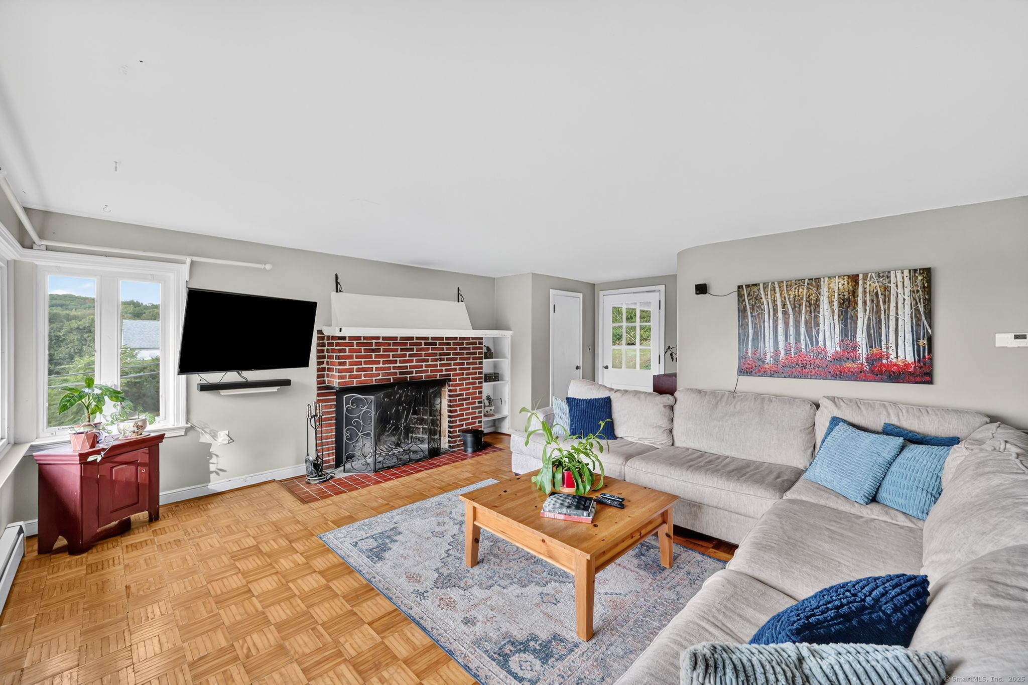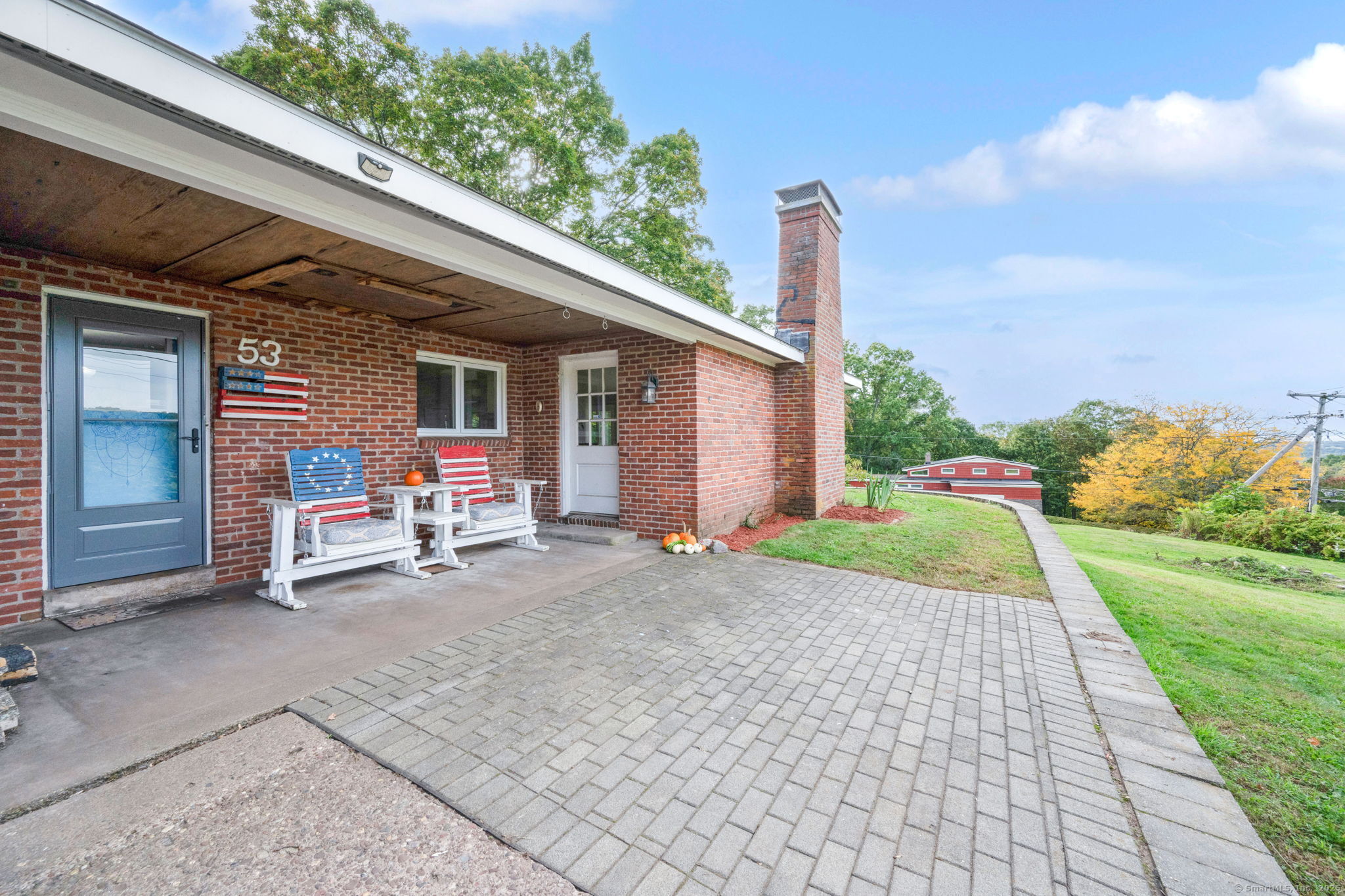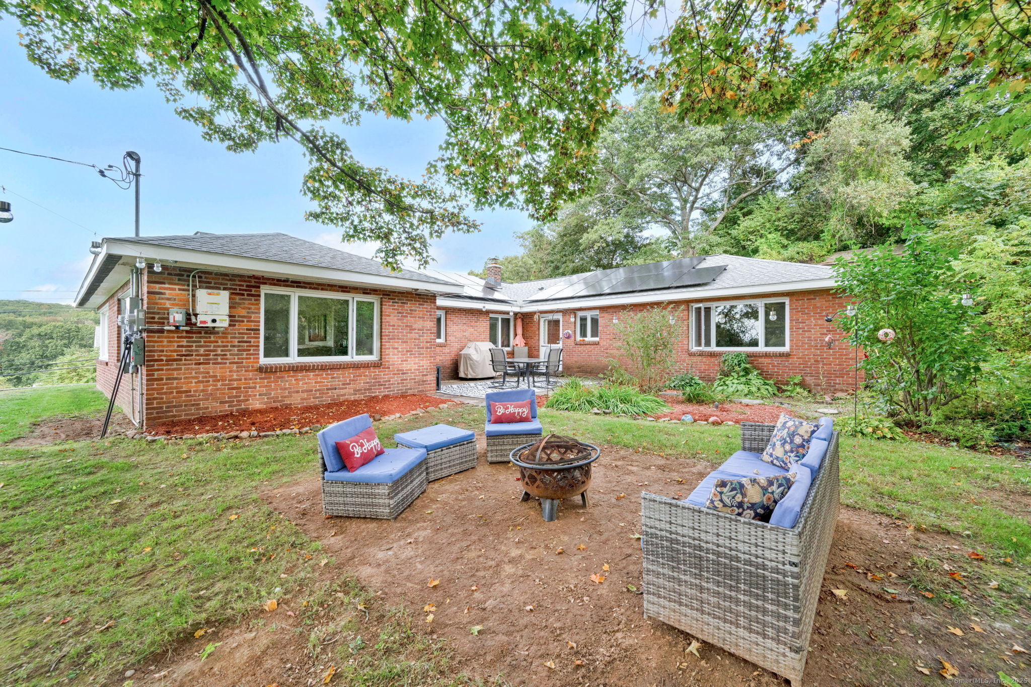 Distinctively unique 2191 sq. ft. Ranch with impressive views of the westerly sky. Situated on an elevated 0.63 acre parcel this one-level-of-living home offers an architecturally designed floor plan that maximizes both space and views of the setting sun sky. The north-facing recessed front porch paver patio entrance opens intriguingly to a front-to-rear, center-island double-sink eat-in kitchen with dining area, tasteful white cabinetry, black countertops and views of both the front and back yards. Off the kitchen's west side resides the open design parquet-floor dining room / family room combination with abundant westerly and northerly facing windows, an oversized wood burning fireplace and its own front patio entrance. Off the east side of the kitchen resides the living room with laminate floors, more 3-sided windows, numerous built-ins and a rear-facing sitting area and a lovely full bath. The remainder of the living spaces includes a large Primary bedroom, 2 additional bedrooms, a beautifully refinished full common bath and a mud / laundry room with rear patio access. The grounds include a large rear 3-sided paver patio, landscaping / gardening area and a firepit area with views of the setting sun.