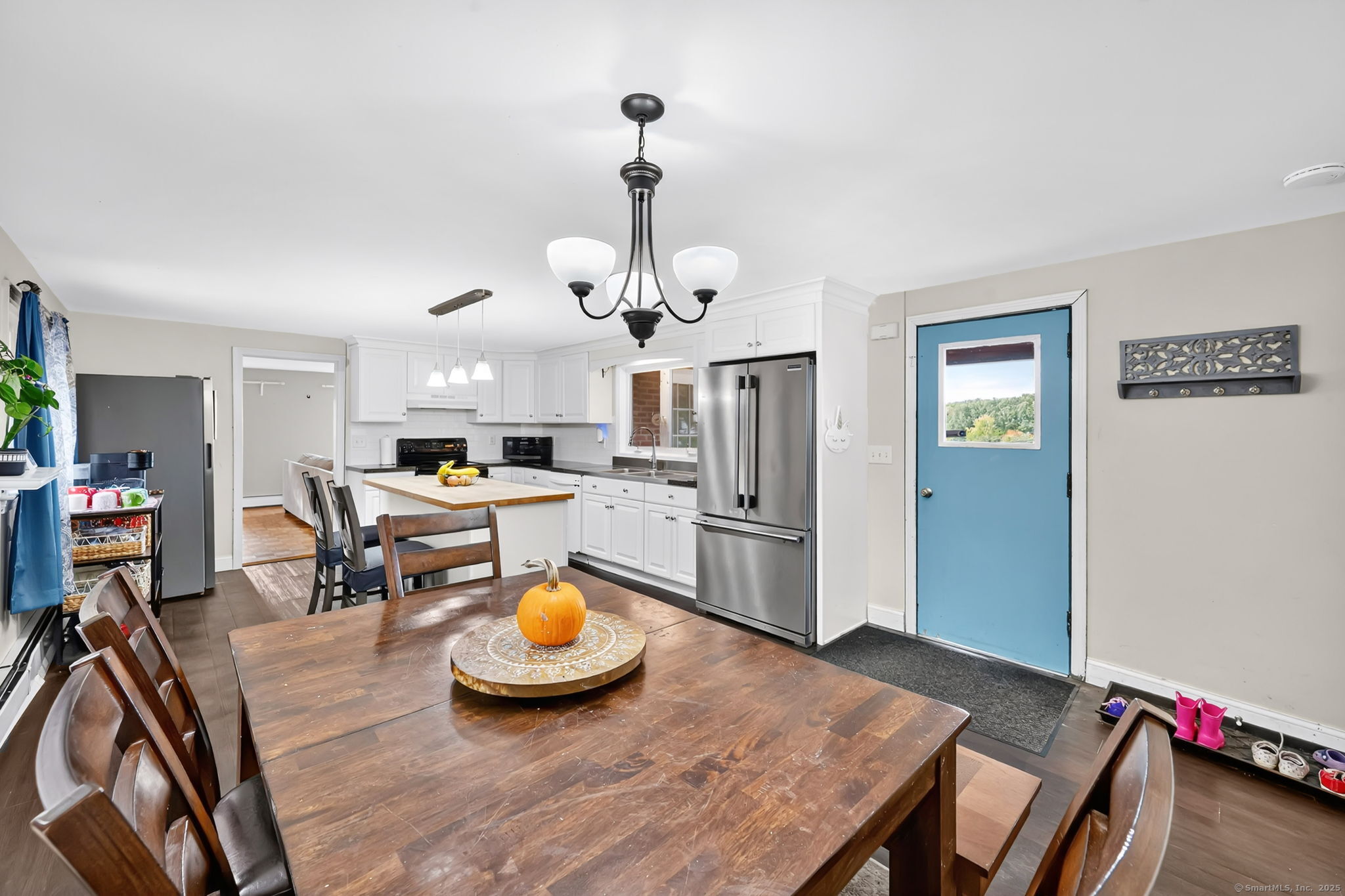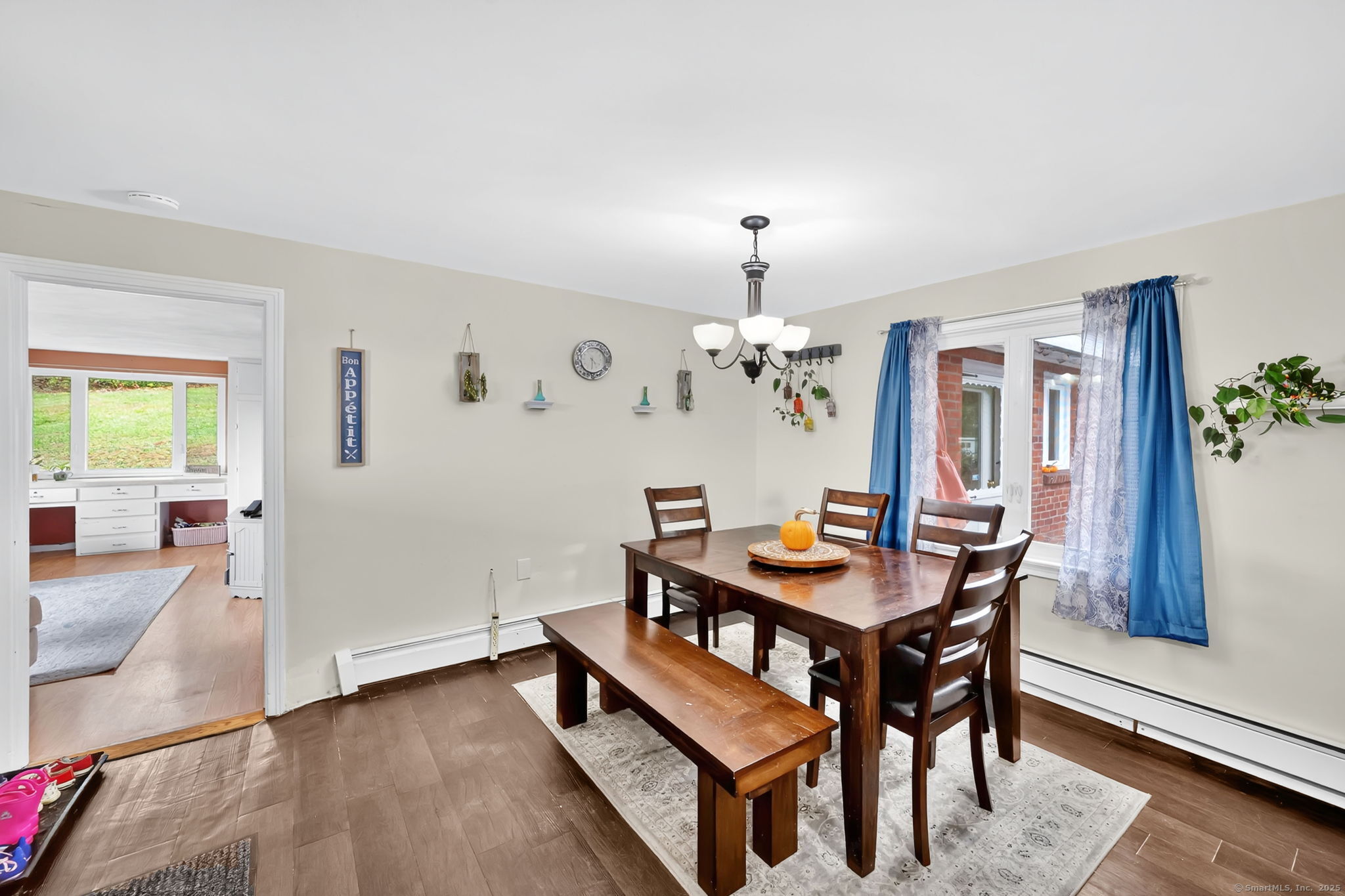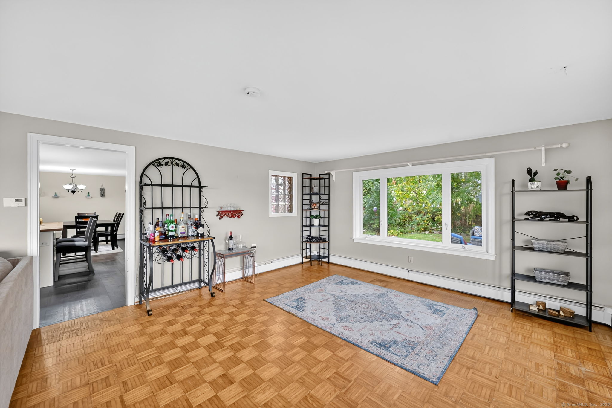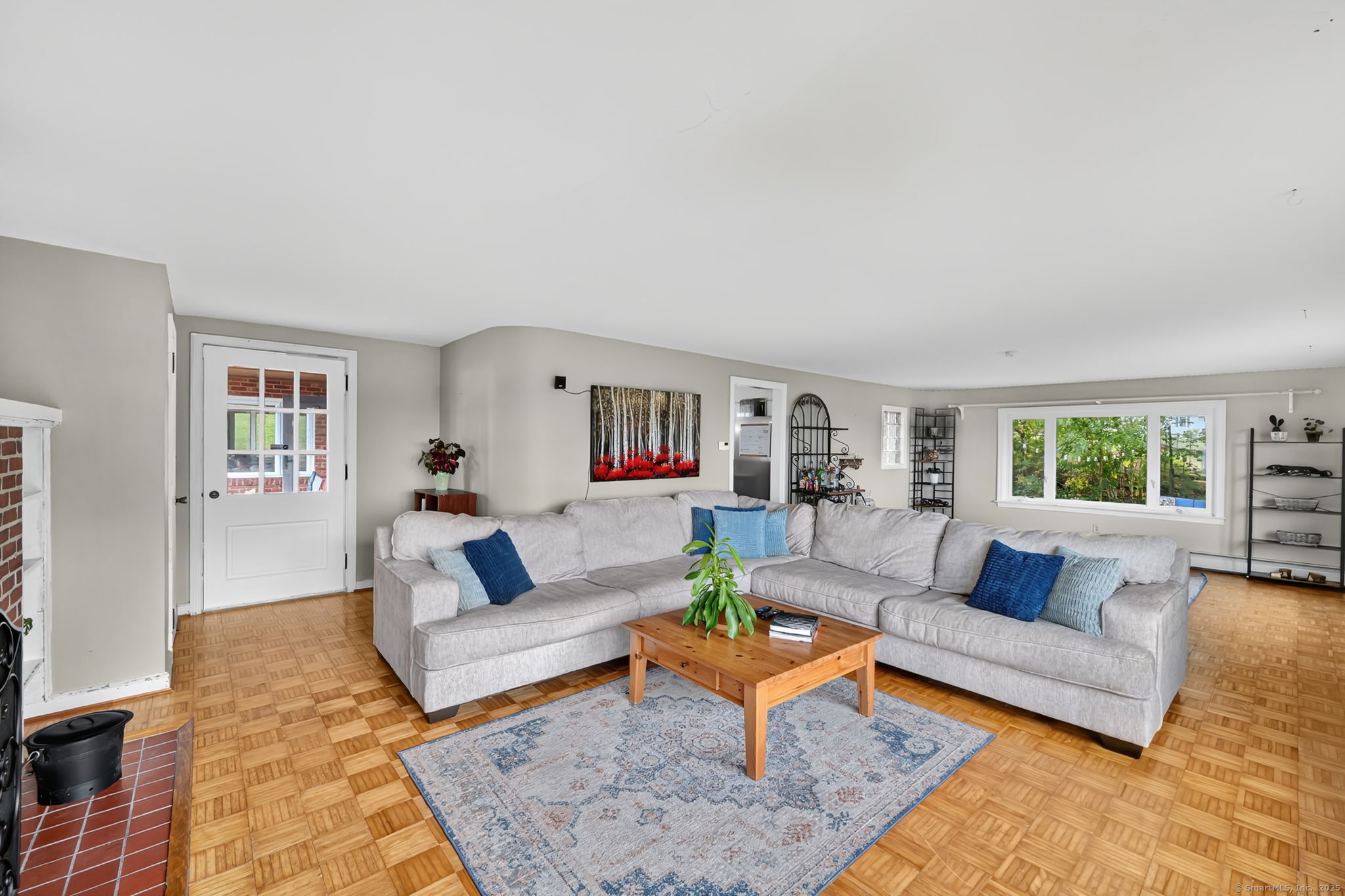 Distinctively unique 2191 sq. ft. Ranch with impressive views of the westerly sky. Situated on an elevated 0.63 acre parcel this one-level-of-living home offers an architecturally designed floor plan that maximizes both space and views of the setting sun sky. The north-facing recessed front porch paver patio entrance opens intriguingly to a front-to-rear, center-island double-sink eat-in kitchen with dining area, tasteful white cabinetry, black countertops and views of both the front and back yards. Off the kitchen's west side resides the open design parquet-floor dining room / family room combination with abundant westerly and northerly facing windows, an oversized wood burning fireplace and its own front patio entrance. Off the east side of the kitchen resides the living room with laminate floors, more 3-sided windows, numerous built-ins and a rear-facing sitting area and a lovely full bath. The remainder of the living spaces includes a large Primary bedroom, 2 additional bedrooms, a beautifully refinished full common bath and a mud / laundry room with rear patio access. The grounds include a large rear 3-sided paver patio, landscaping / gardening area and a firepit area with views of the setting sun.