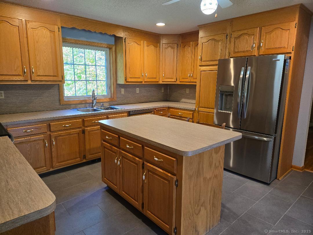 One floor living at its finest! This 3 BR, 2 BA Ranch home sits on 1.13 acres at the end of a cul-de-sac in quiet neighborhood. 2-car attached garage accesses the spacious kitchen with stainless appliances, center island w/stools and plenty of cabinetry. Dining room has HW floor, bay window and looks onto front porch entryway. Living room offers HW floor, gas-log fireplace and slider to awning-covered deck (complete with ramp) with lovely fenced-in back yard. Large primary bedroom w/full bath and walk-in closet. Enormous, clean unfinished basement with convenient walk-out (access stairway is in the garage). Newer asphalt shingle roof (2021), new boiler (2021), Renewal by Anderson windows 2022, mini-split A/C & heat systems (2024), along with other upgrades. Home also wired w/second panel to accommodate portable generator (included with home). This meticulously cared for home is a must see!