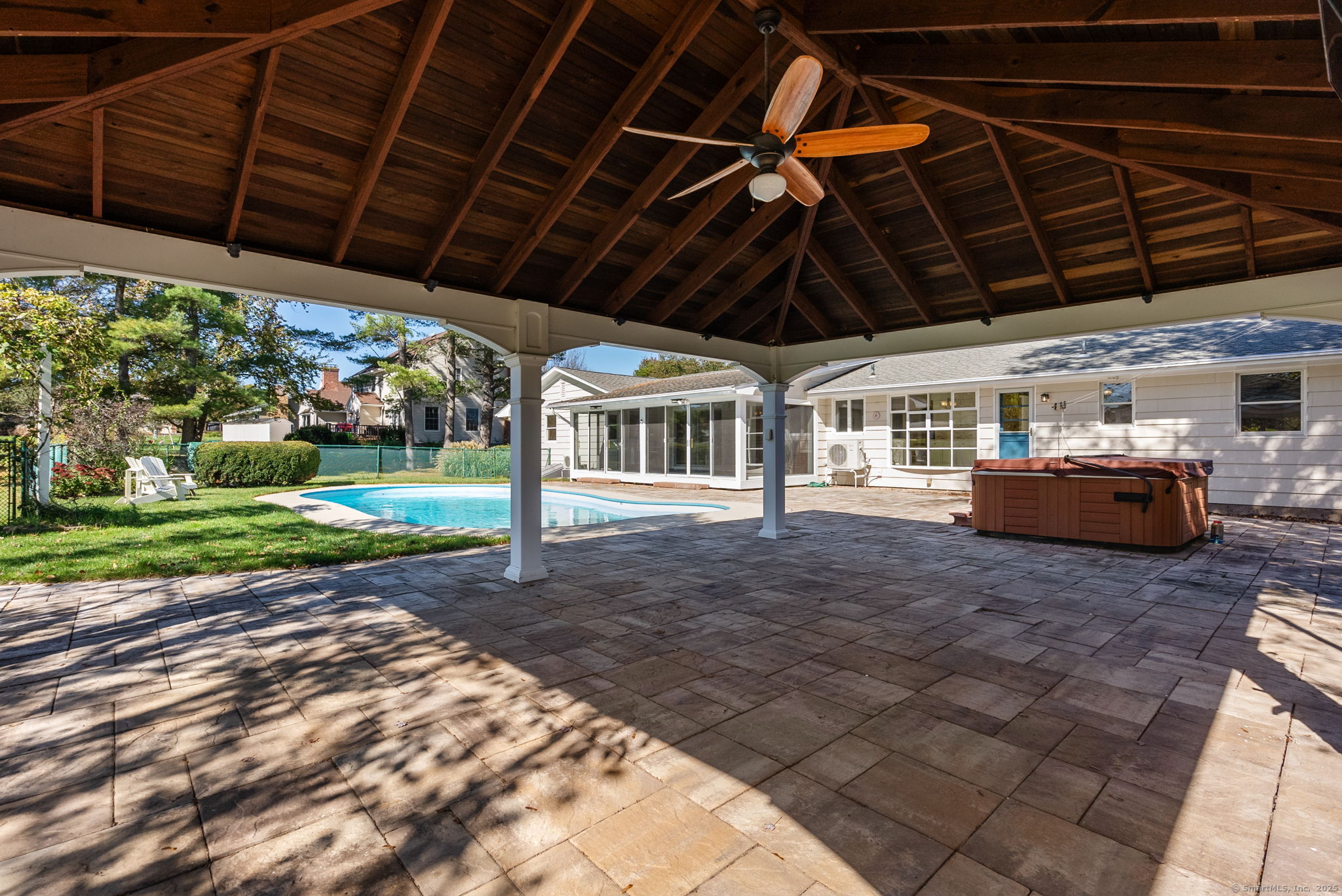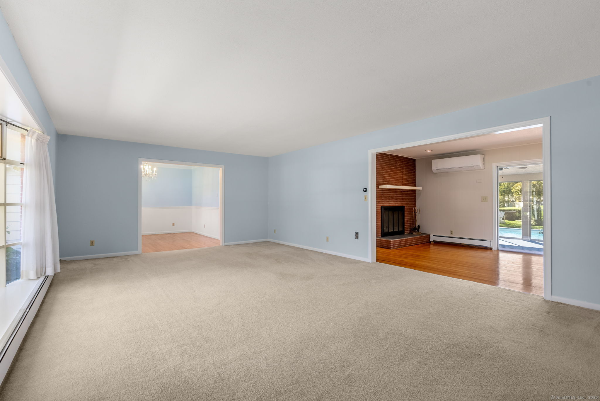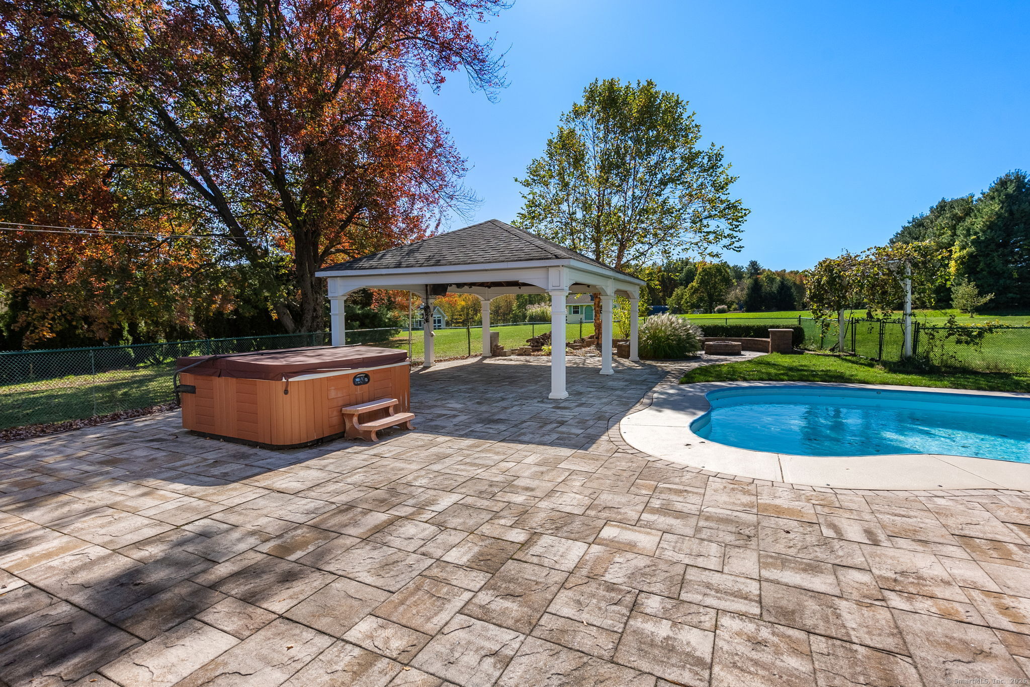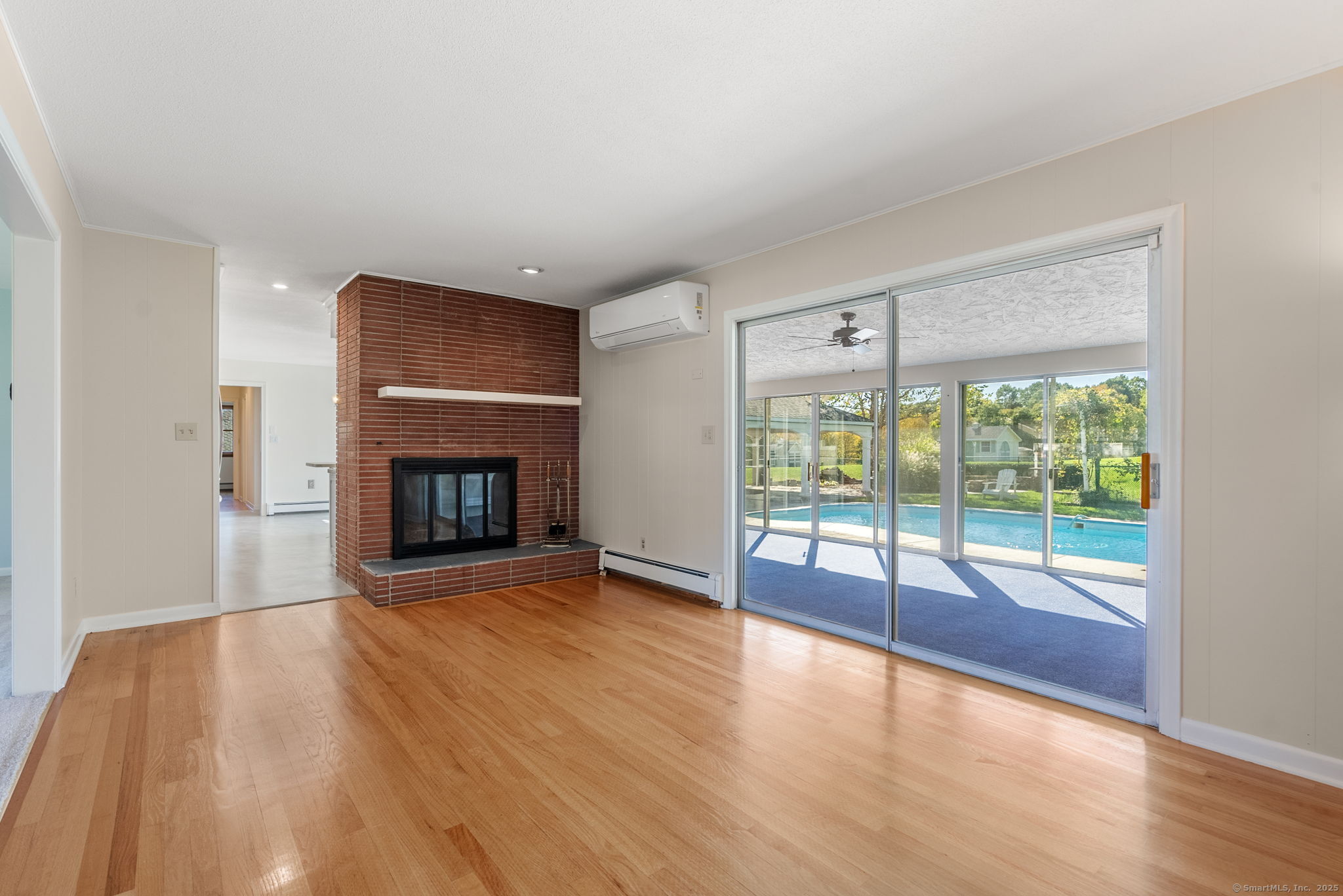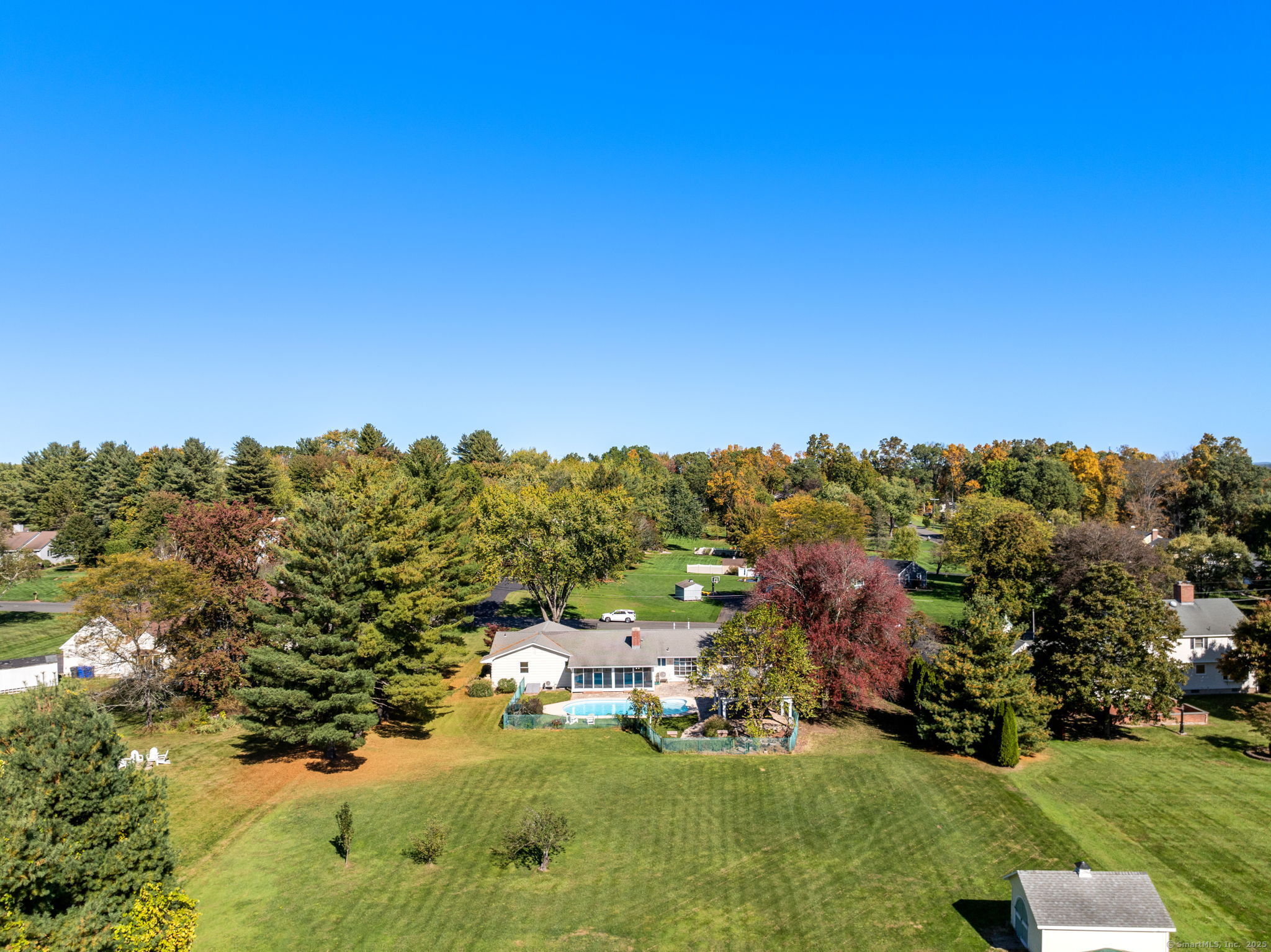 Your Dream Ranch Awaits in sought after neighborhood set on a picturesque 1-acre lot. This spacious ranch offers comfort, elegance, refinished hardwood floors and thoughtful updates throughout. A welcoming foyer opens to a light-filled living room with a large bow window and a formal dining room with crown molding. The beautiful kitchen features stainless steel appliances, under-cabinet lighting, a breakfast bar, pantry, and a bay-windowed eat-in area overlooking the pool and patio. The cozy family room boasts a raised-hearth fireplace and sliders to the sunroom, a four-season retreat with heat and A/C that can double as a home office. The bedroom wing offers two bedrooms, a full bath, and a spacious primary suite with walk-in closet, two additional closets, a vanity table with mirror, and a full bath with luxurious walk-in tile shower. Off the kitchen is the fourth bedroom and a full bath making an ideal guest area or office. There's a finished Rec. room w/heat in the LL. A convenient laundry/mudroom provides direct access to the back patio and the oversized 2-car garage that offers ample space for vehicles and storage. Step outside to your beautifully landscaped Oasis! The backyard with paver patio and walkways and serene views of a horse farm allows you to entertain in style with a sparkling pool, hot tub, elegant hand built pavilion and firepit-enhanced by special lighting under the pavilion and around the firepit-perfect for gatherings or relaxing evenings. Freshly
