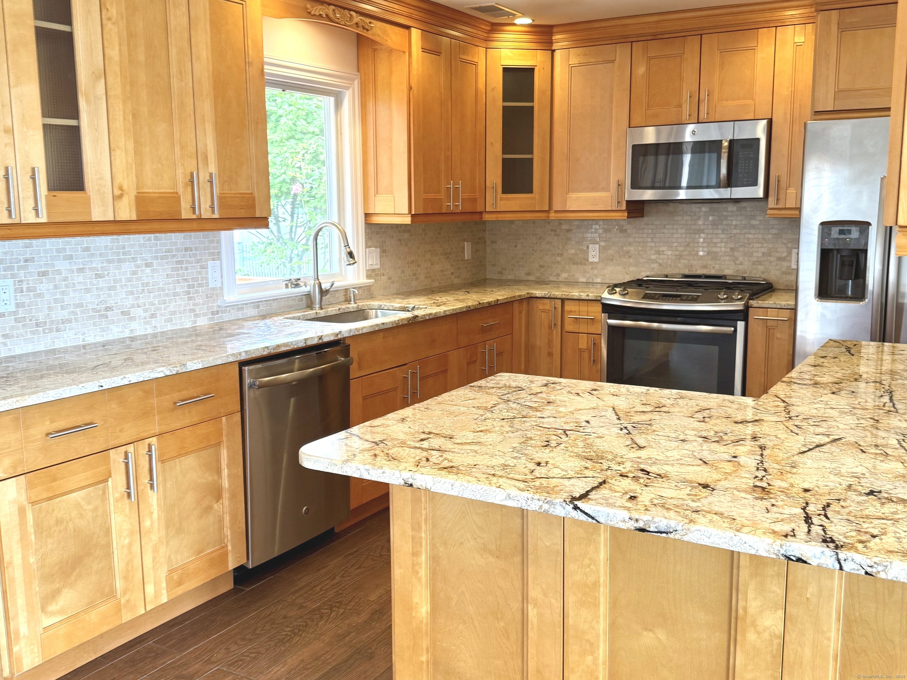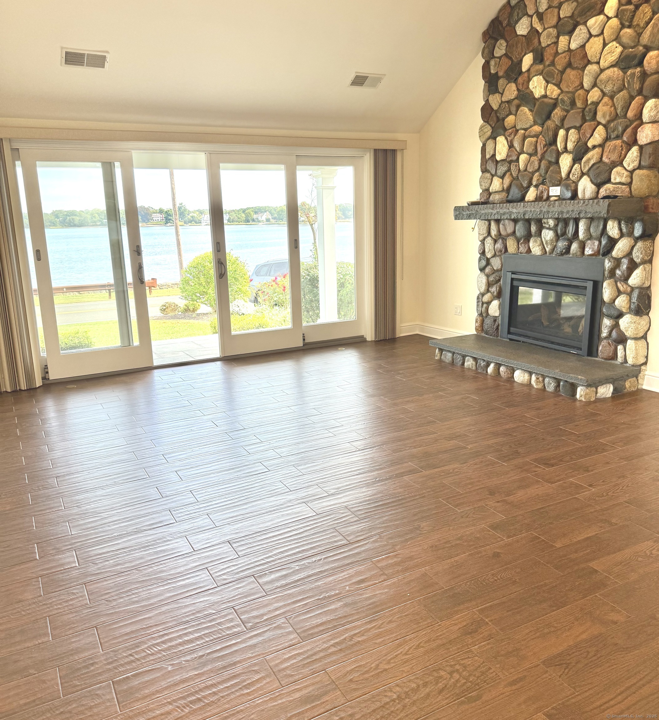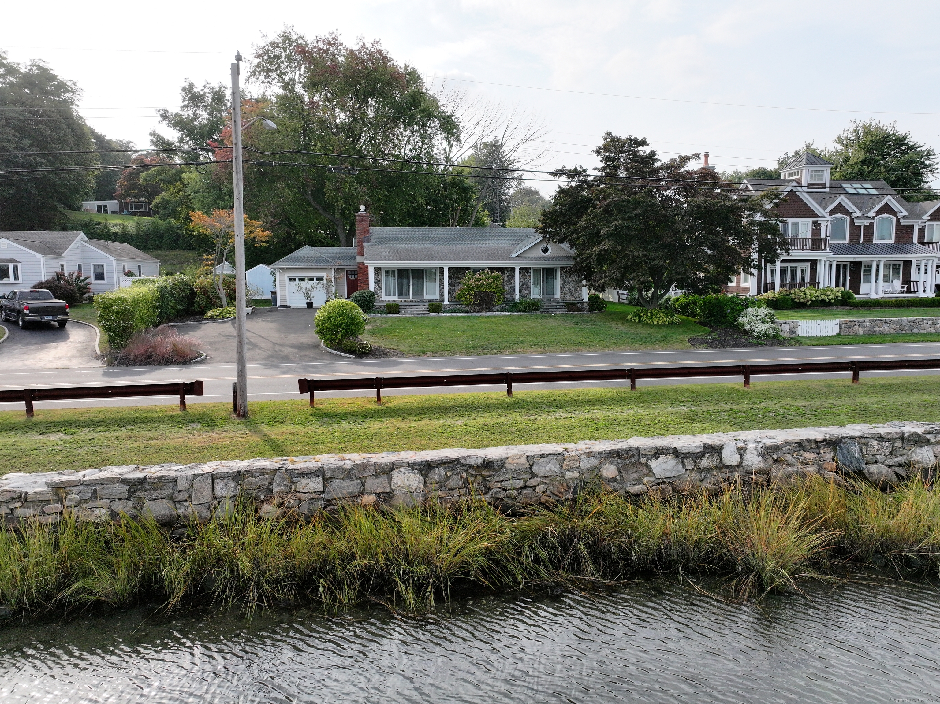 Coastal Charm with Bay Views Experience the best of coastal living in this inviting single-level ranch, where sweeping views of Long Island Sound Bay shine from nearly every room. The vaulted living and dining area feels bright and airy, centered around a rustic stone fireplace perfect for cozy gatherings. The kitchen features stainless steel appliances, granite countertops, and natural gas cooking-ideal for everyday living or entertaining. With three bedrooms and two full baths, the layout is flexible and comfortable. The third bedroom has a private entrance, perfect for guests, a home office, or a quiet retreat. Tile floors throughout add coastal practicality. Step outside to a spacious deck for barbecues or sunset views, or enjoy morning coffee on the covered porch overlooking the Sound. Go kayaking, paddleboarding, or relax at nearby Cove Island Park, which offers beaches, a marina, tennis courts, and picnic areas. A fenced garden adds privacy and charm, and a one-car garage completes the picture. This home perfectly blends everyday comfort with easy coastal living.