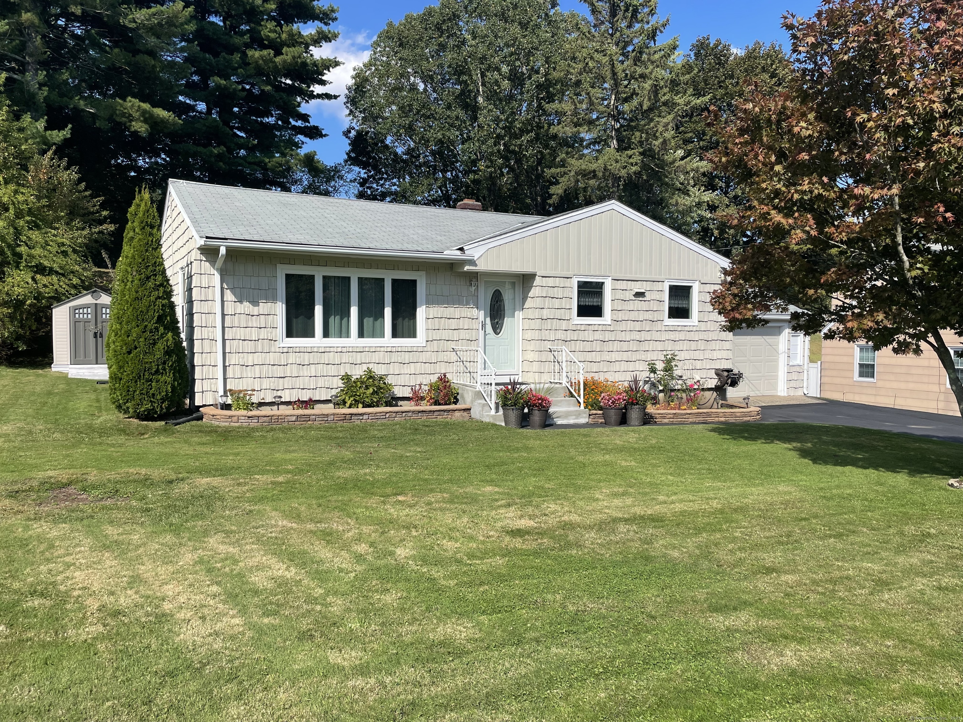 New Britain ranch style home at its best - 3 bedrooms, 2 full baths, hardwood flooring, vinyl siding, thermopane windows. Home offers beautiful kitchen with island, granite countertops and stainless steel appliances. Central air for hot summer months and economical gas heat for cold days are great features. Lower level partially finished with full bath, gas heat and plenty of storage. Breezeway connects home with garage and leads to nice patio with awning and beautifully landscaped back yard with space for entertainment, gardening or just relaxation. There are also two sheds for yard equipment. Make it your own!!!