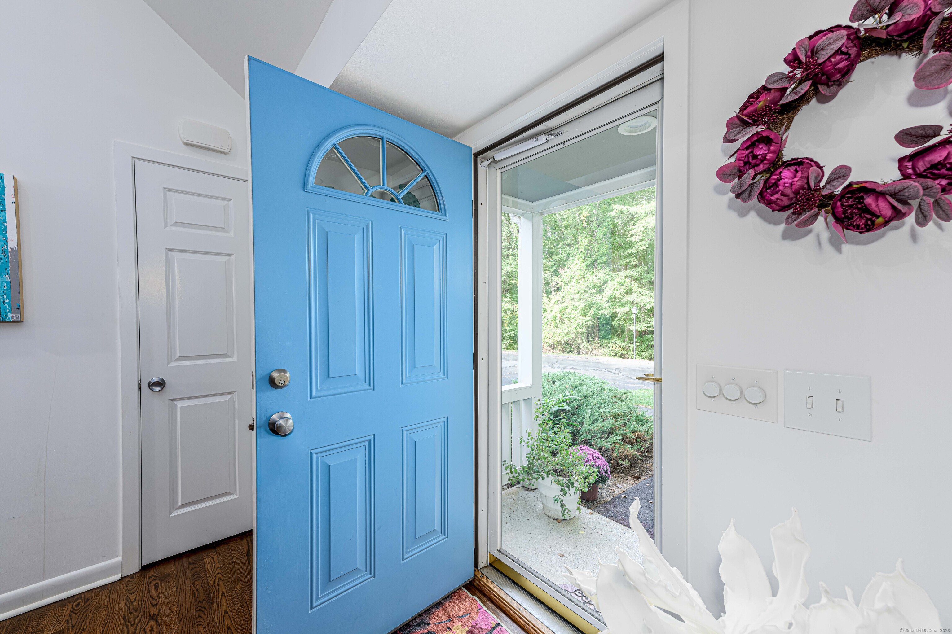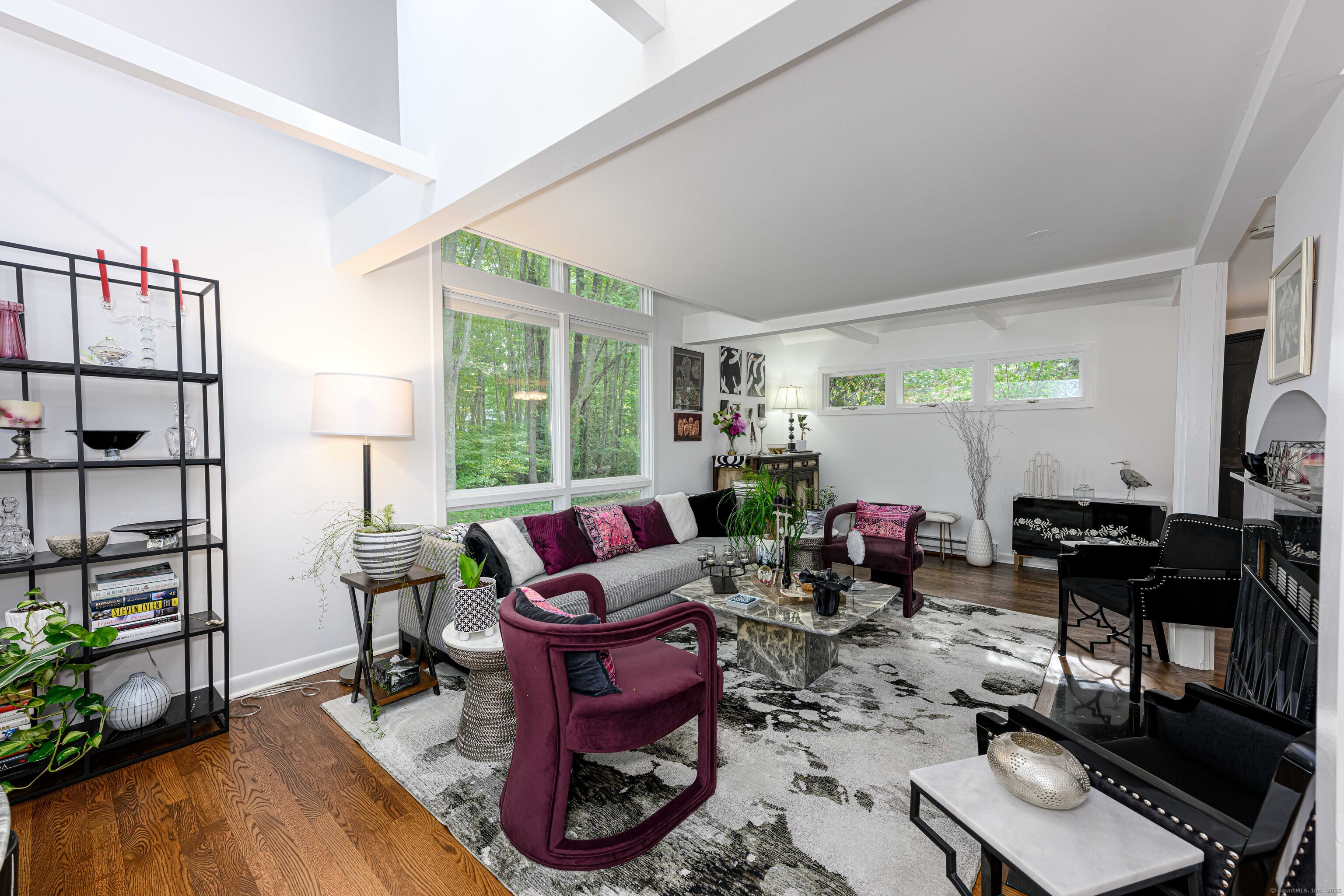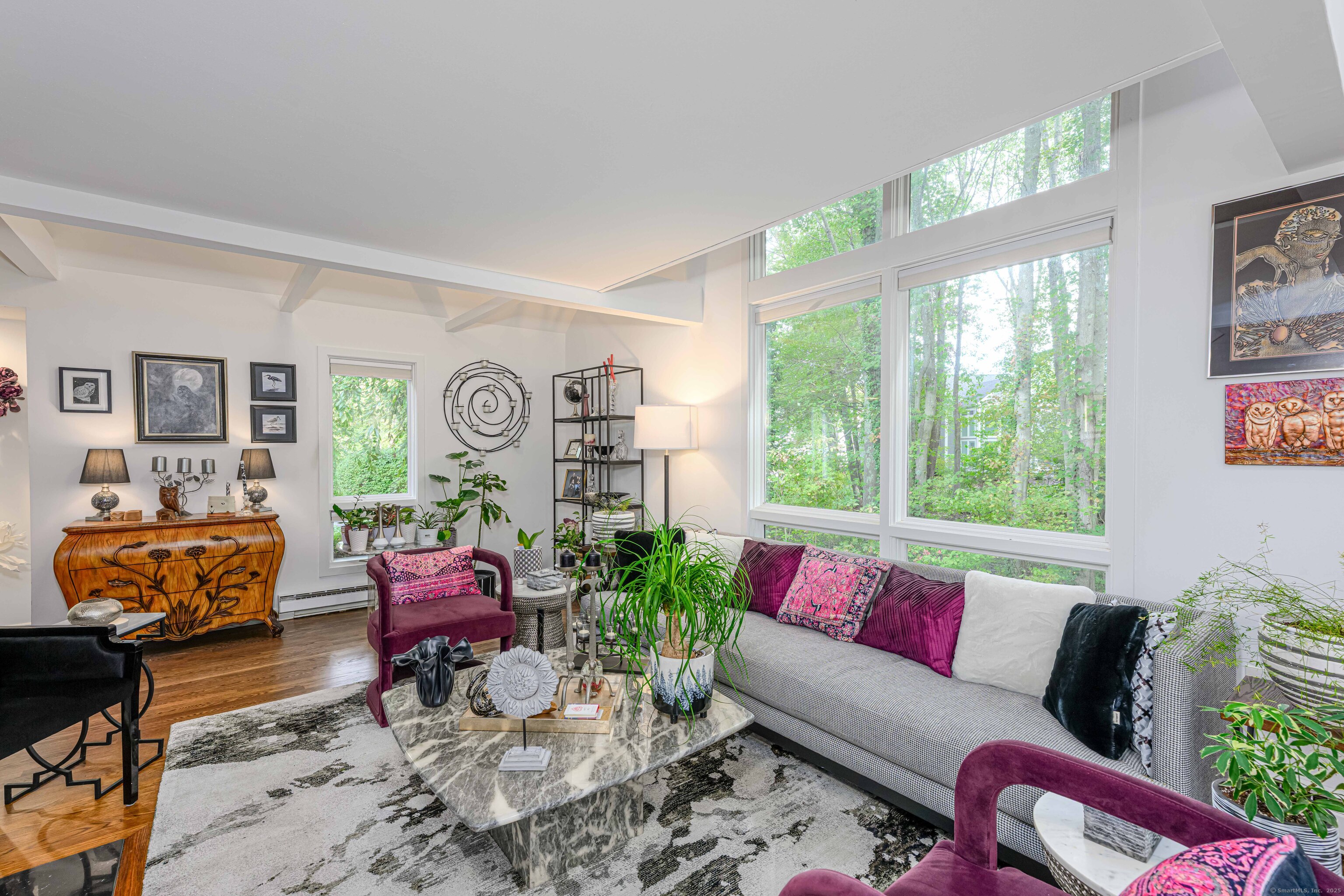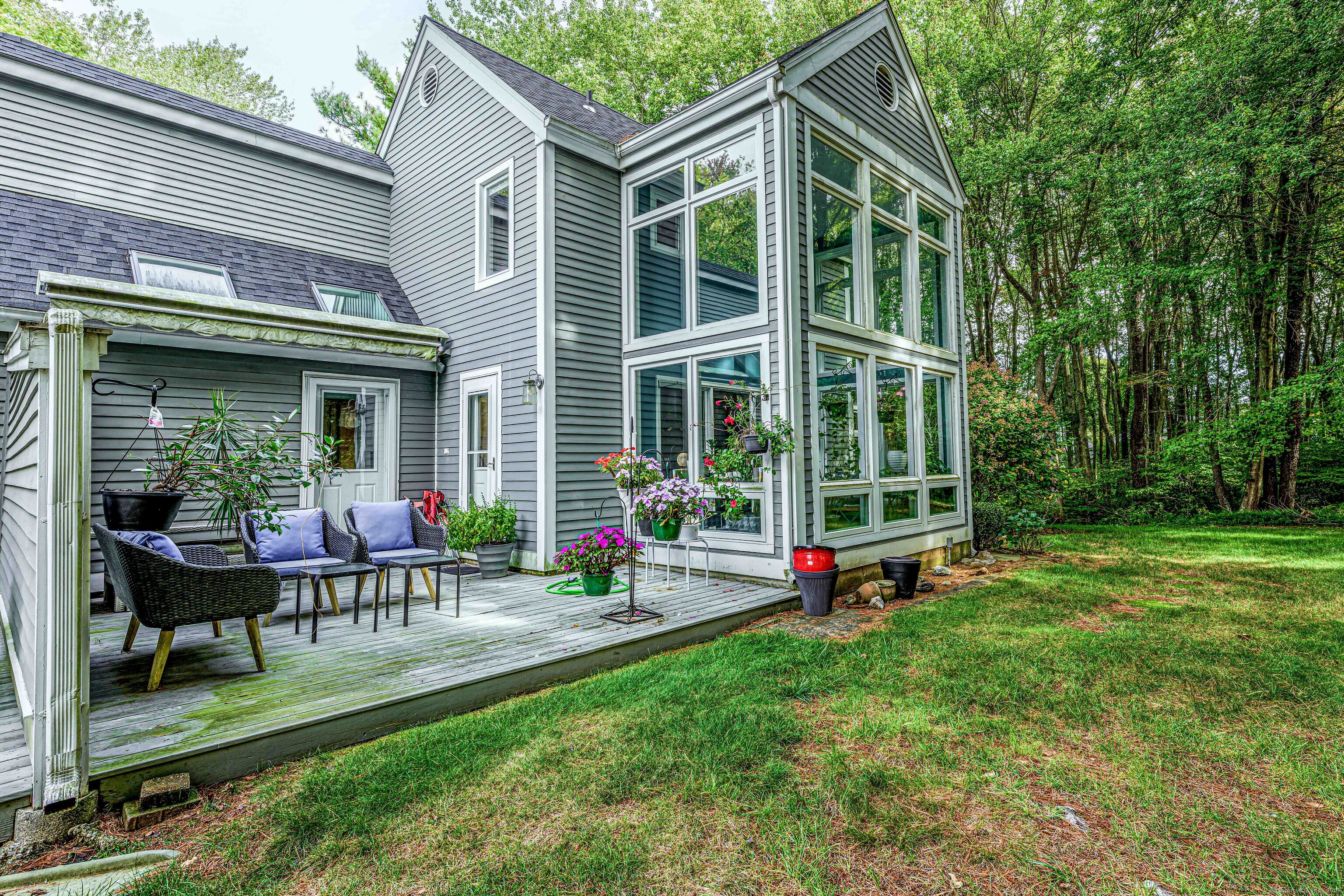 Desirable location! Perfectly positioned where everything you need is just a short stroll away. Vibrant shoreline community. Walkability to town center, the historic town green. Shoreline East CTrail station offering direct access to nearby cities and making it ideal for commuters, weekenders, and year-round residents alike. Very private unit in the complex with most spacious grounds. This home has been thoughtfully updated with a contemporary flair. High quality renovations to kitchen and baths. Kitchen with quartz countertops, plenty of storage and counter space in the kitchen, island eating area and stainless-steel appliances. Spacious size Bathrooms. Two story all-glass, ground floor to ceiling sunroom providing year-round living with a private natural scenery. Private outdoor patio space. Lots of natural light. Beautiful hardwood flooring throughout. Vaulted ceiling in open living room. Wood burning fireplace. Additional room on main floor can be used as a guest room, den or home office, has skylights and door that opens to back deck with a full bath just steps away. Attached garage and laundry off kitchen. Central air-conditioning. Upstairs to the 2nd floor loft has an open comfortable living area. Primary room offers so much space, skylights and lots of storage. Full bath, walk-in cedar closet, double closets, extra space for changing room/home office or craft room. A must see!