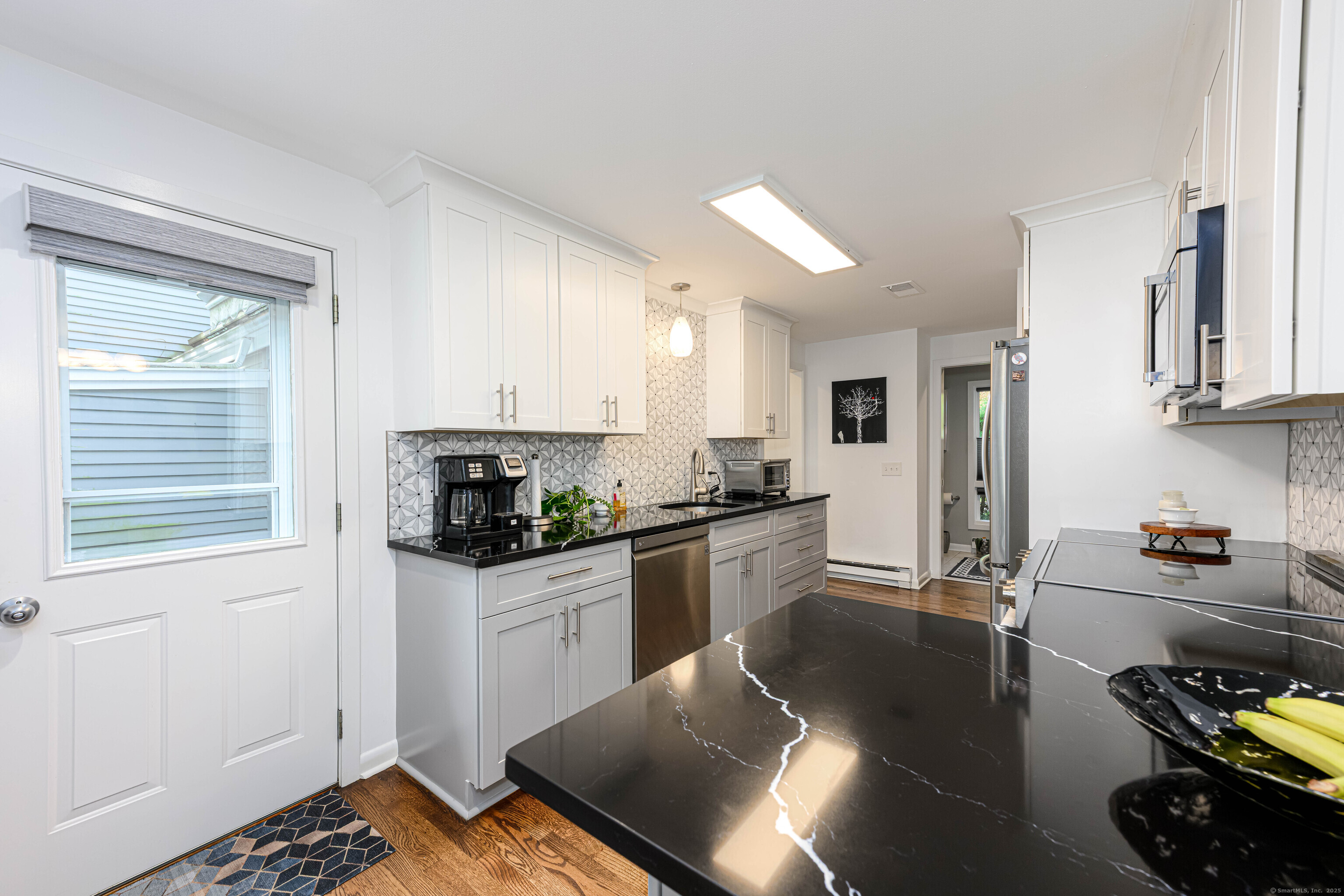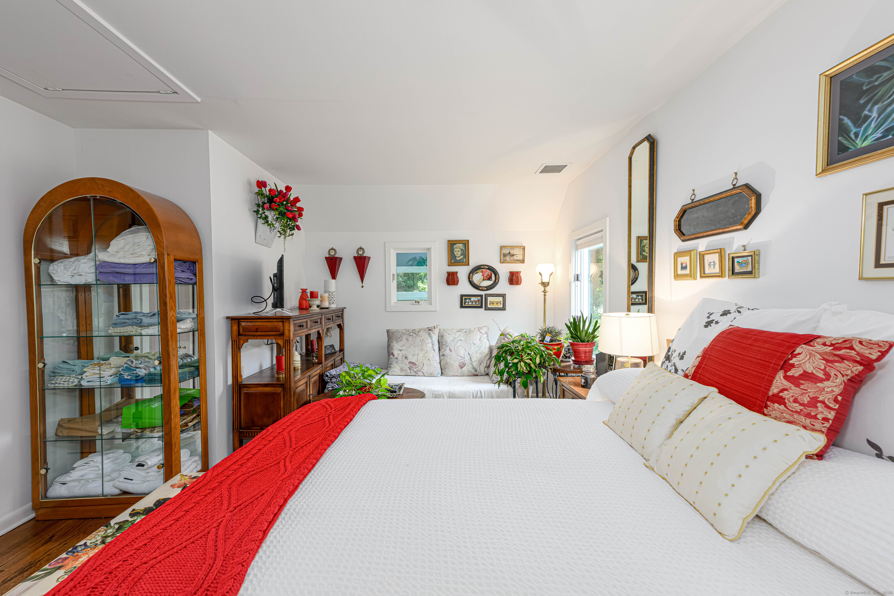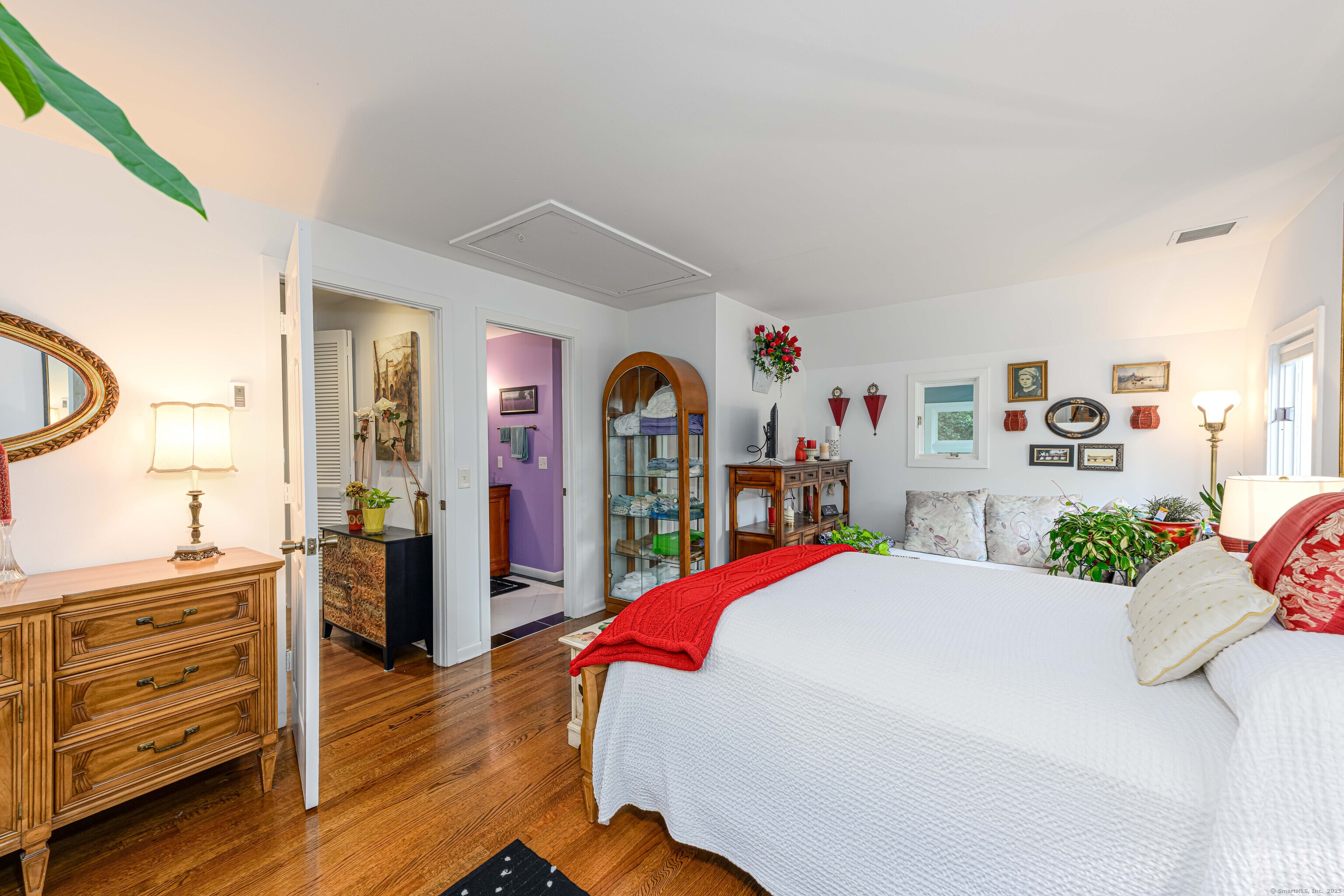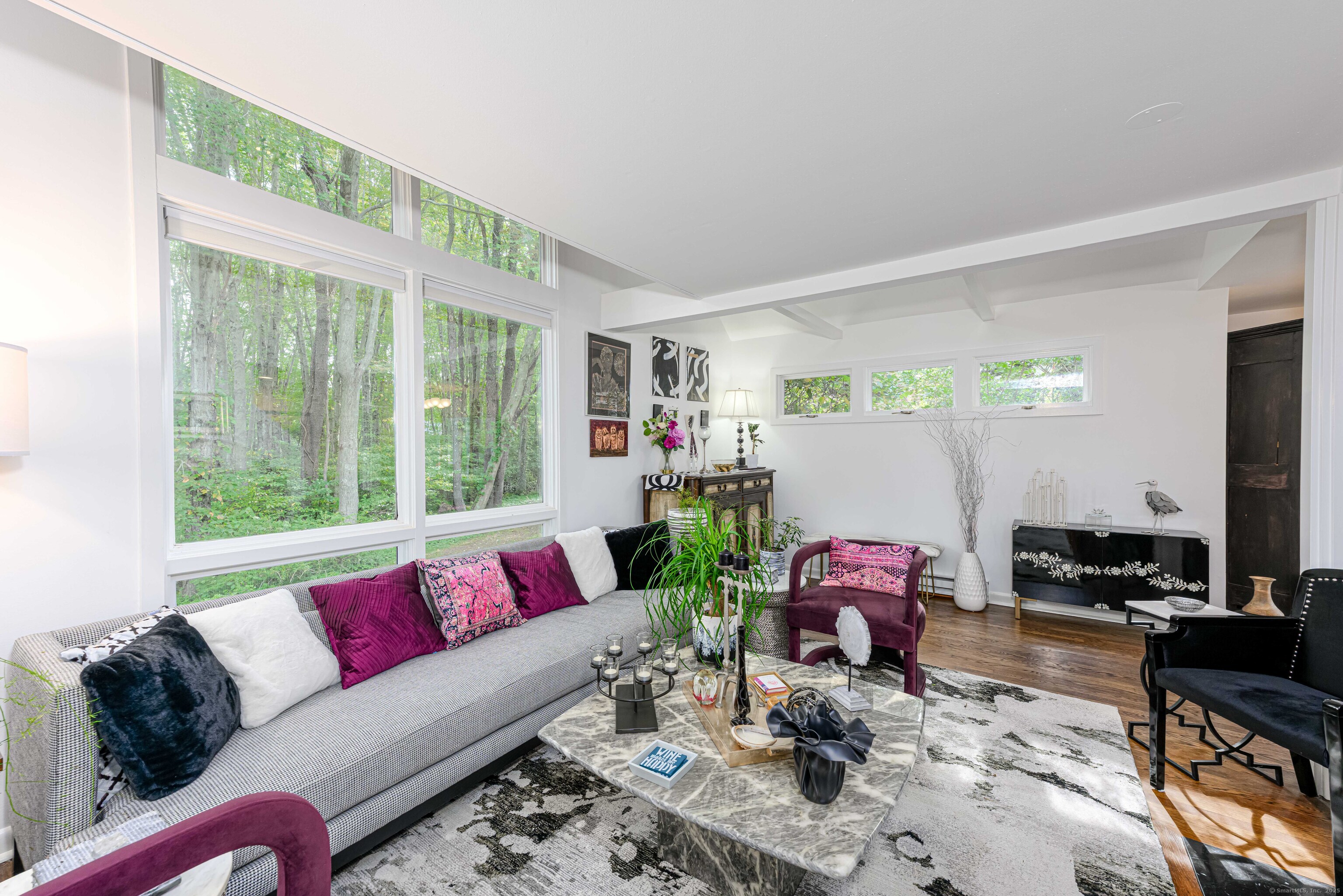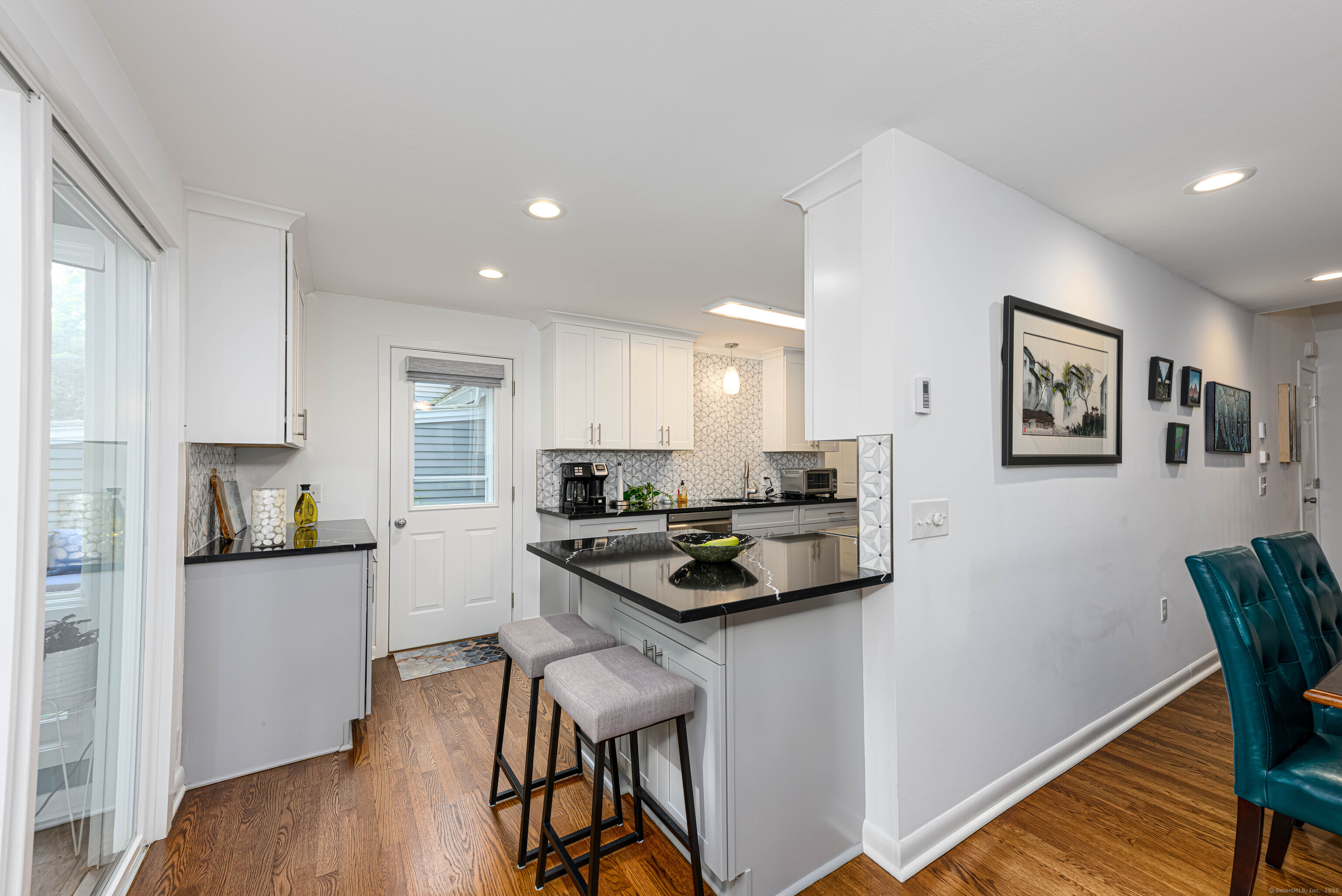 Desirable location! Perfectly positioned where everything you need is just a short stroll away. Vibrant shoreline community. Walkability to town center, the historic town green. Shoreline East CTrail station offering direct access to nearby cities and making it ideal for commuters, weekenders, and year-round residents alike. Very private unit in the complex with most spacious grounds. This home has been thoughtfully updated with a contemporary flair. High quality renovations to kitchen and baths. Kitchen with quartz countertops, plenty of storage and counter space in the kitchen, island eating area and stainless-steel appliances. Spacious size Bathrooms. Two story all-glass, ground floor to ceiling sunroom providing year-round living with a private natural scenery. Private outdoor patio space. Lots of natural light. Beautiful hardwood flooring throughout. Vaulted ceiling in open living room. Wood burning fireplace. Additional room on main floor can be used as a guest room, den or home office, has skylights and door that opens to back deck with a full bath just steps away. Attached garage and laundry off kitchen. Central air-conditioning. Upstairs to the 2nd floor loft has an open comfortable living area. Primary room offers so much space, skylights and lots of storage. Full bath, walk-in cedar closet, double closets, extra space for changing room/home office or craft room. A must see!