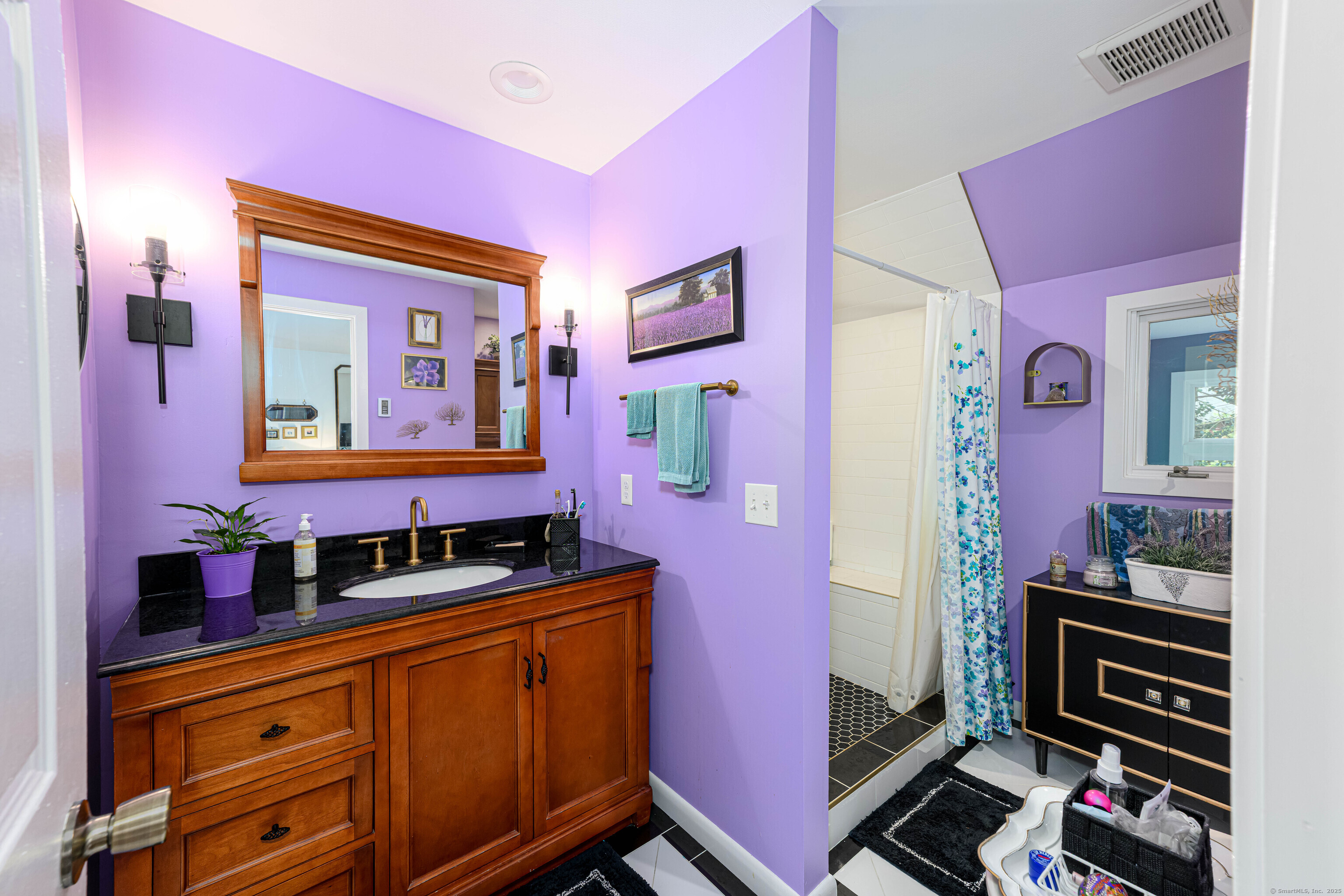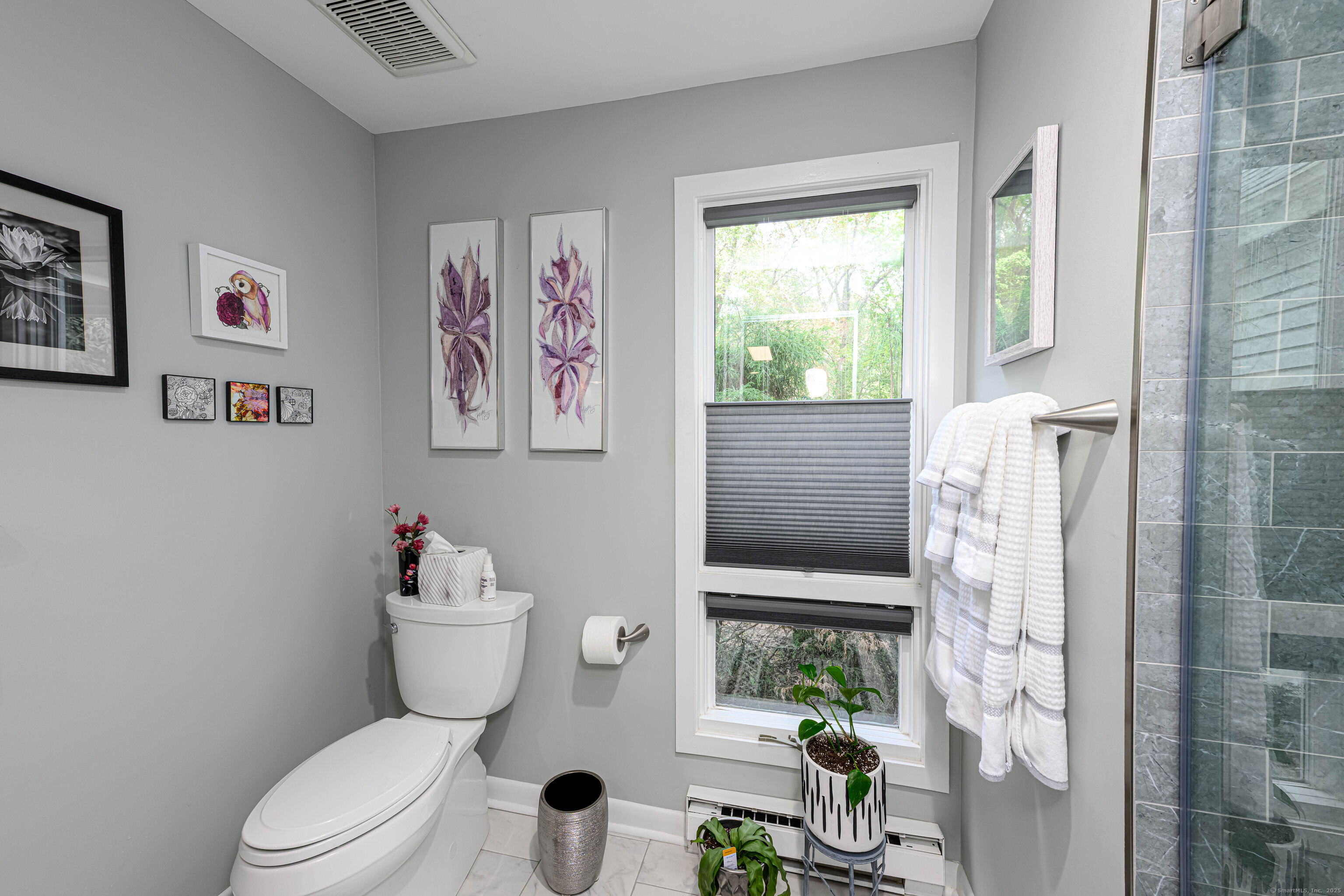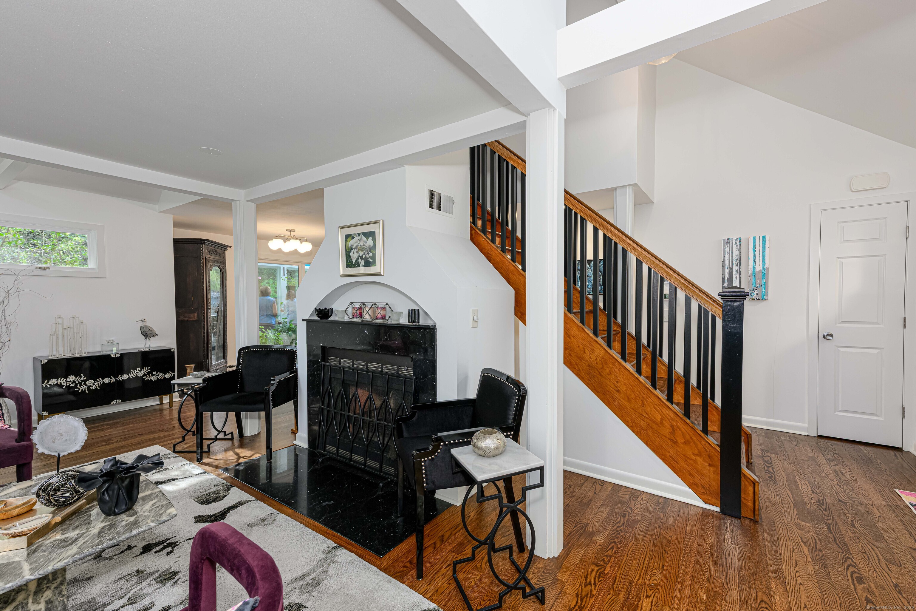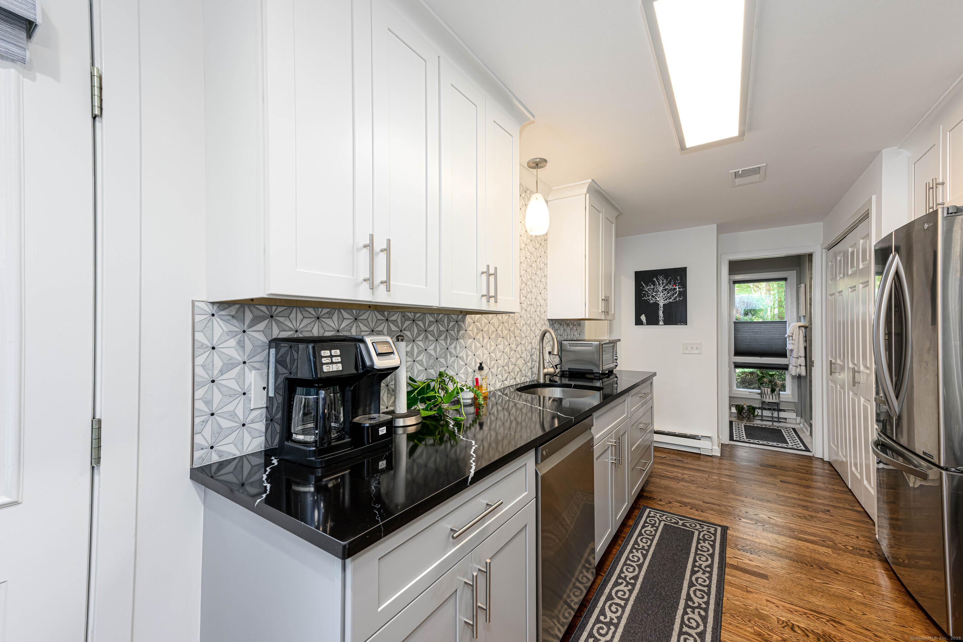 Desirable location! Perfectly positioned where everything you need is just a short stroll away. Vibrant shoreline community. Walkability to town center, the historic town green. Shoreline East CTrail station offering direct access to nearby cities and making it ideal for commuters, weekenders, and year-round residents alike. Very private unit in the complex with most spacious grounds. This home has been thoughtfully updated with a contemporary flair. High quality renovations to kitchen and baths. Kitchen with quartz countertops, plenty of storage and counter space in the kitchen, island eating area and stainless-steel appliances. Spacious size Bathrooms. Two story all-glass, ground floor to ceiling sunroom providing year-round living with a private natural scenery. Private outdoor patio space. Lots of natural light. Beautiful hardwood flooring throughout. Vaulted ceiling in open living room. Wood burning fireplace. Additional room on main floor can be used as a guest room, den or home office, has skylights and door that opens to back deck with a full bath just steps away. Attached garage and laundry off kitchen. Central air-conditioning. Upstairs to the 2nd floor loft has an open comfortable living area. Primary room offers so much space, skylights and lots of storage. Full bath, walk-in cedar closet, double closets, extra space for changing room/home office or craft room. A must see!