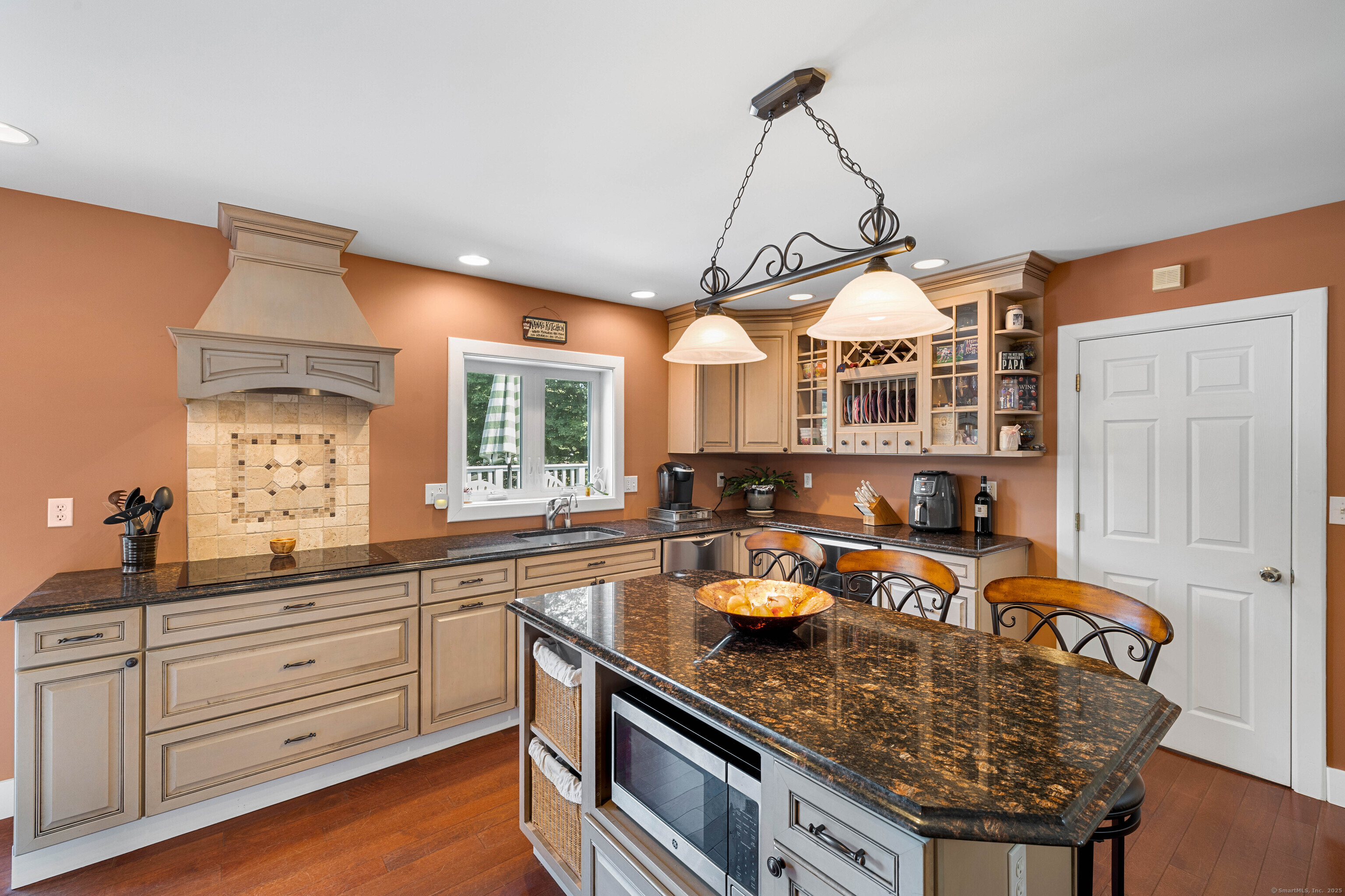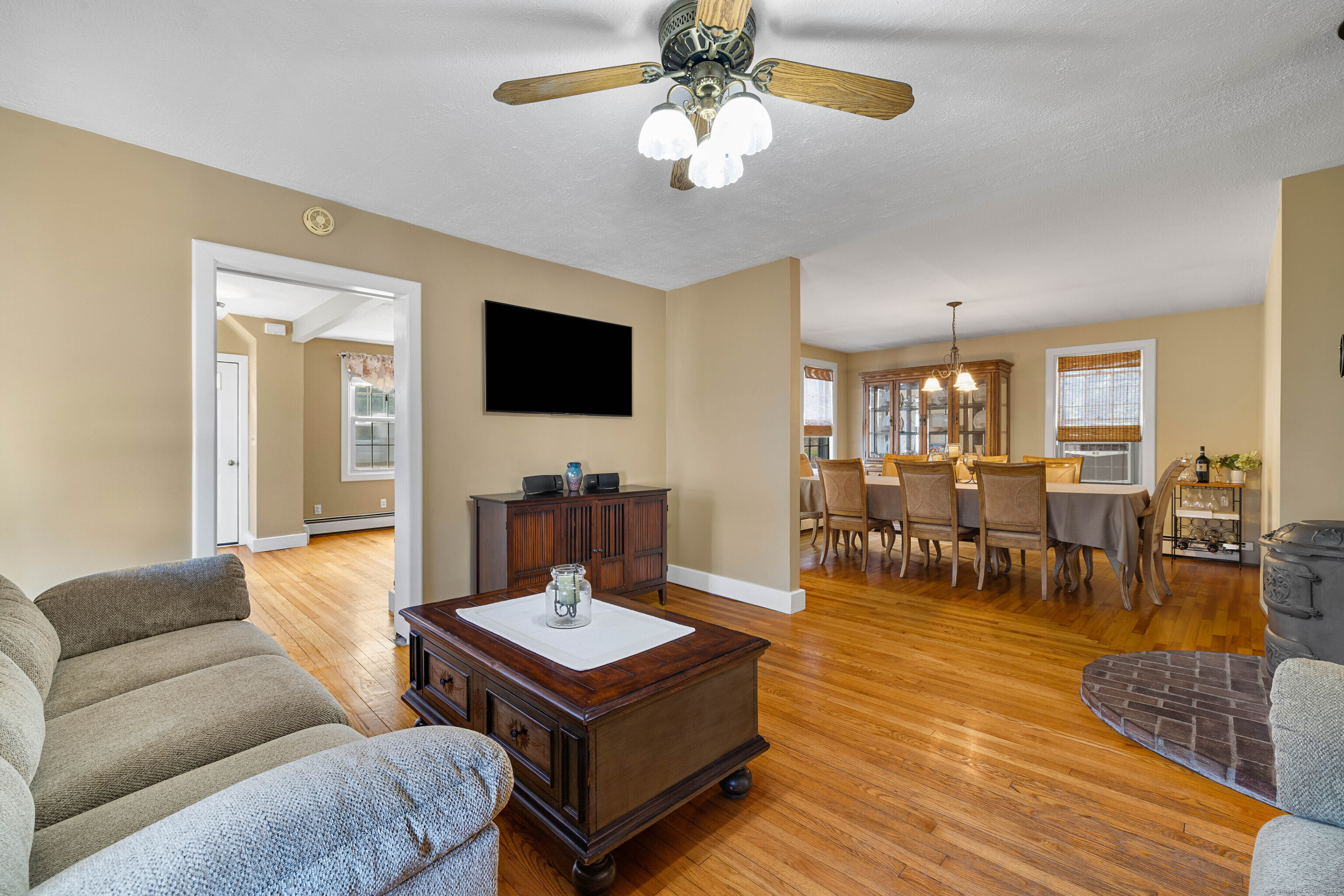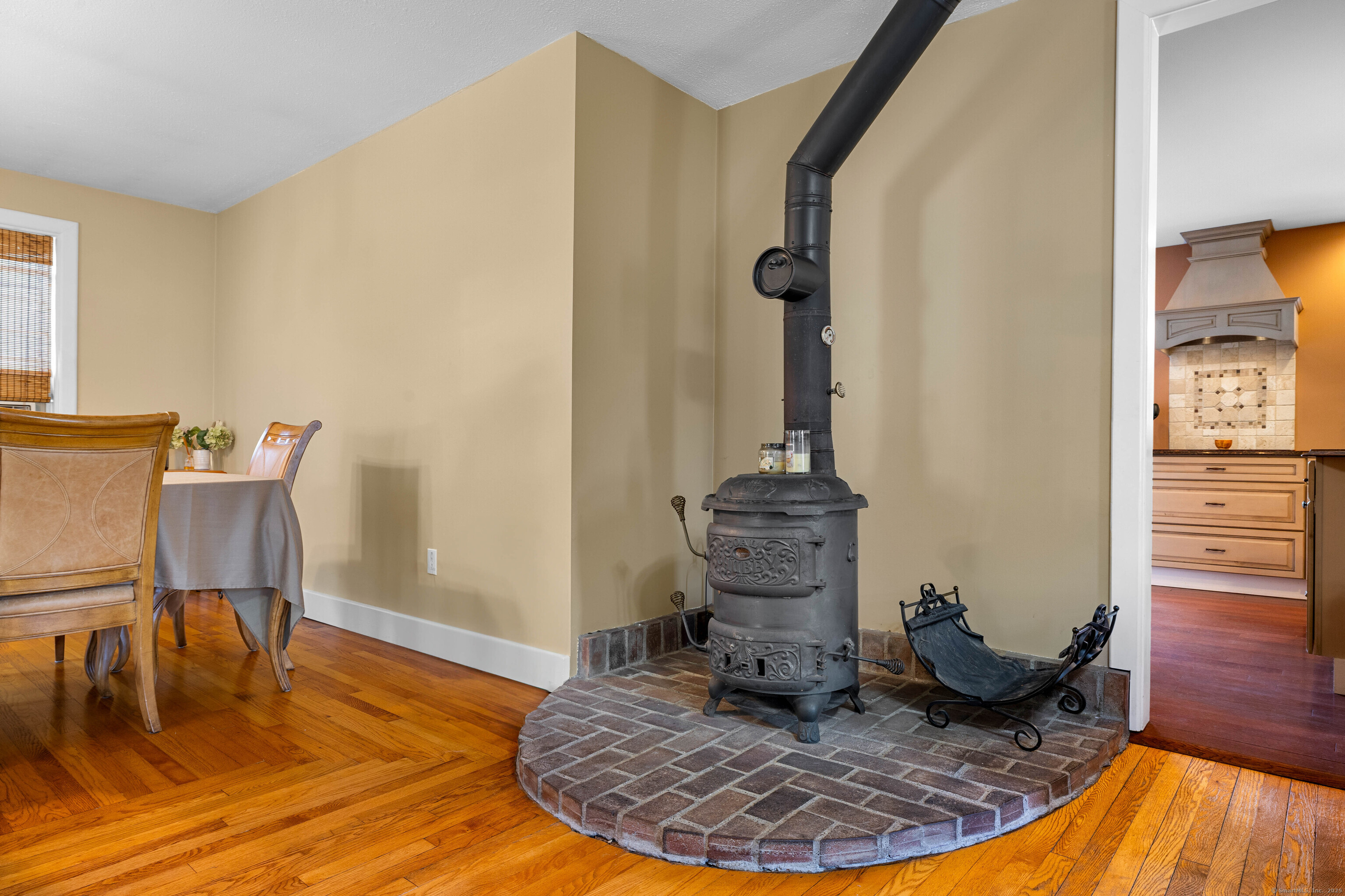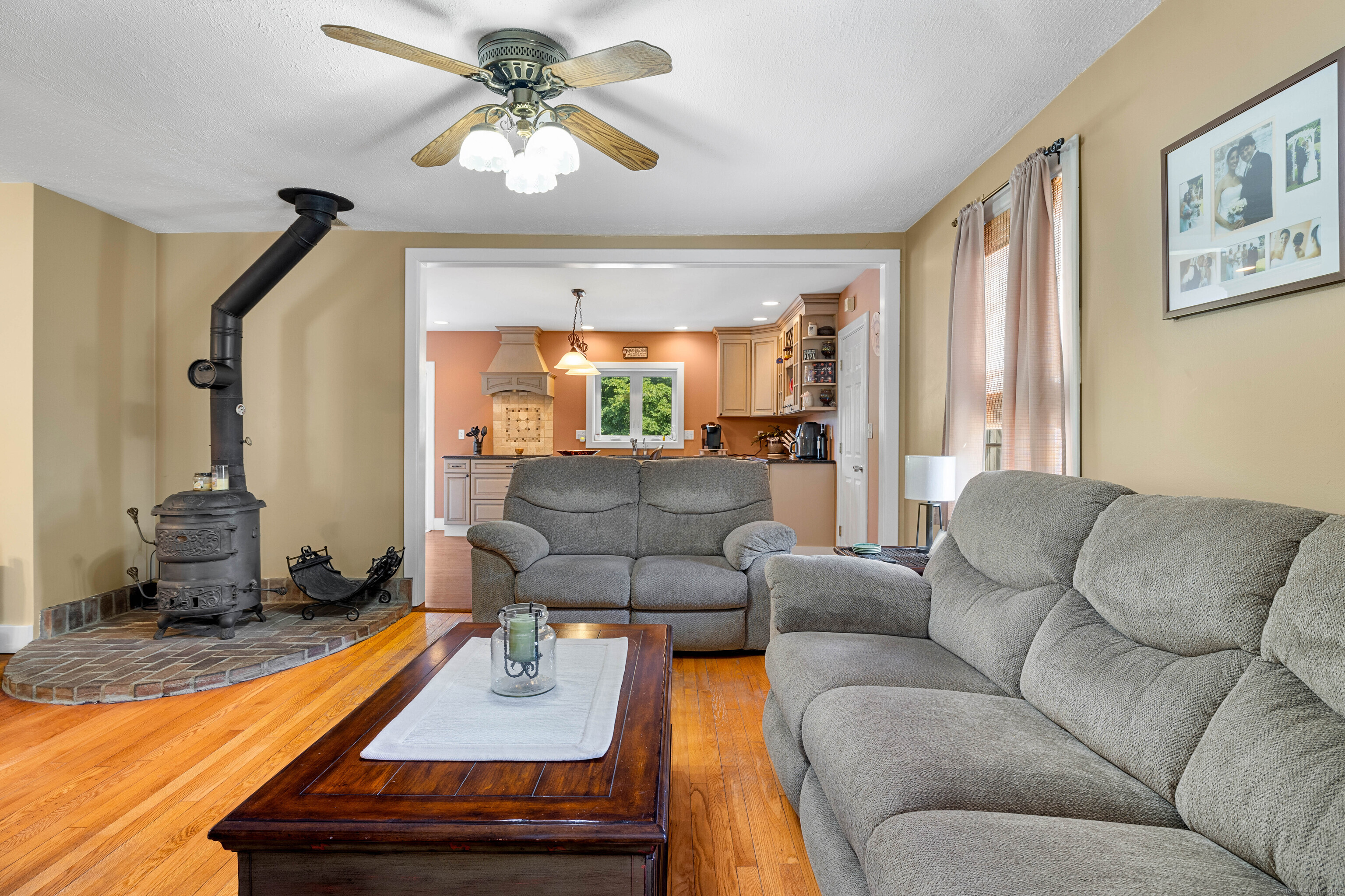Charming 3 bedroom and 2 bath 1850 colonial home. This beautiful home offers a spacious and inviting layout ideal for both everyday living and entertaining. The updated kitchen is a true standout, complete with stainless steel appliances, double ovens, a wine cooler, and granite countertops. Adjacent to the kitchen, a cozy family room with a wood stove provides warmth and character, while the generous dining room and additional living room offer flexible spaces for gathering and relaxation. A full bath and laundry room are conveniently located on the main level. Upstairs, the large primary bedroom offers comfort and privacy, while two additional bedrooms and a beautifully renovated full bath with a walk-in shower complete the second floor. Hardwood floors run throughout the home, enhancing its classic appeal. Outside, a large back deck overlooks the level yard, perfect for entertaining, relaxing, or enjoying quiet mornings. The detached two-car garage adds convenience and storage. With natural gas heat, public water and sewer, and an on-demand hot water tank, this home combines efficiency with style. Ideally located near I-95, Route 80, and downtown East Haven.