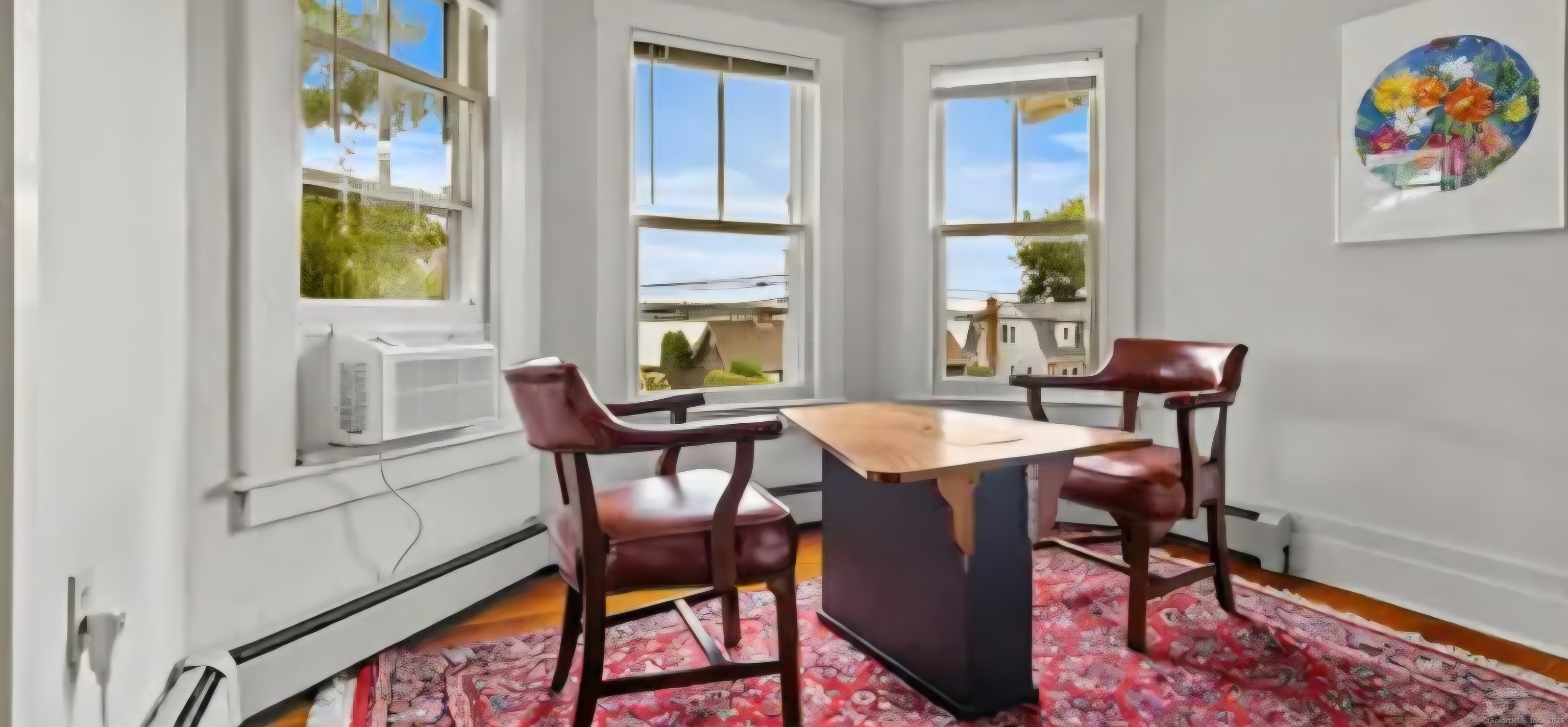 Furnished Noank Colonial across from Beebe Cove with year round views. 2/3 bedrooms, 2 and 1/2 baths. Finished 3rd floor with 1/2 bath accessed by ship's ladder perfect for office, media room, etc. Updated kitchen with sliders to the deck. HEAT, hot water, electricity, WIFI, water, sewer and trash collection all included. Easy walk to Noank Village park with tennis and basketball courts, Carson's, Palmers pizza, Haring's, Ford's Black & Blue, Fisherman , Abbott's (seasonal) and several marinas. A short jaunt to Historic Downtown Mystic with numerous world class culinary offerings. Convenient to I95, Amtrak and all major area employers.