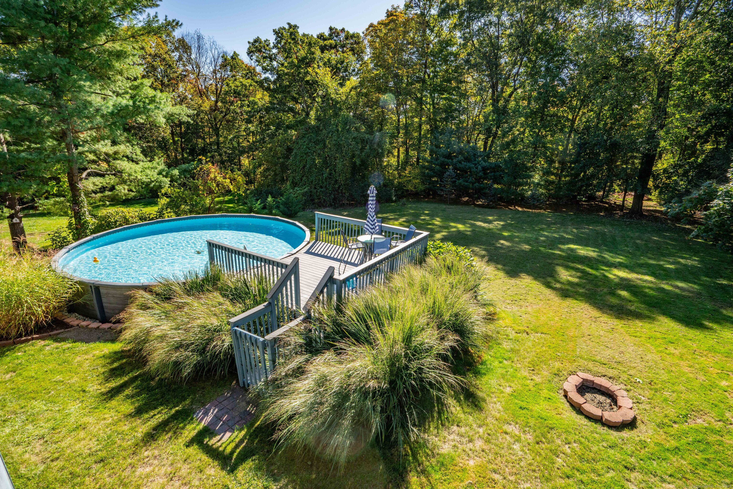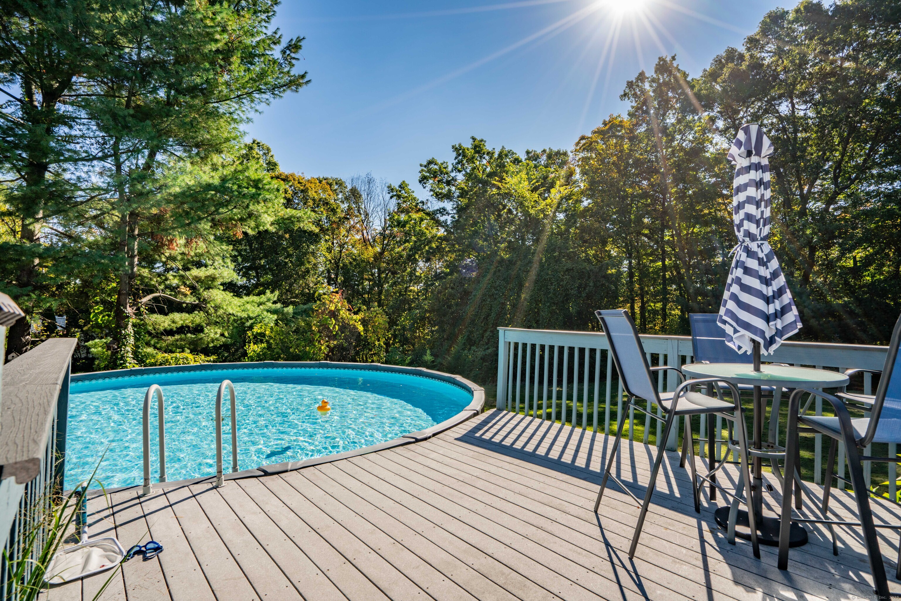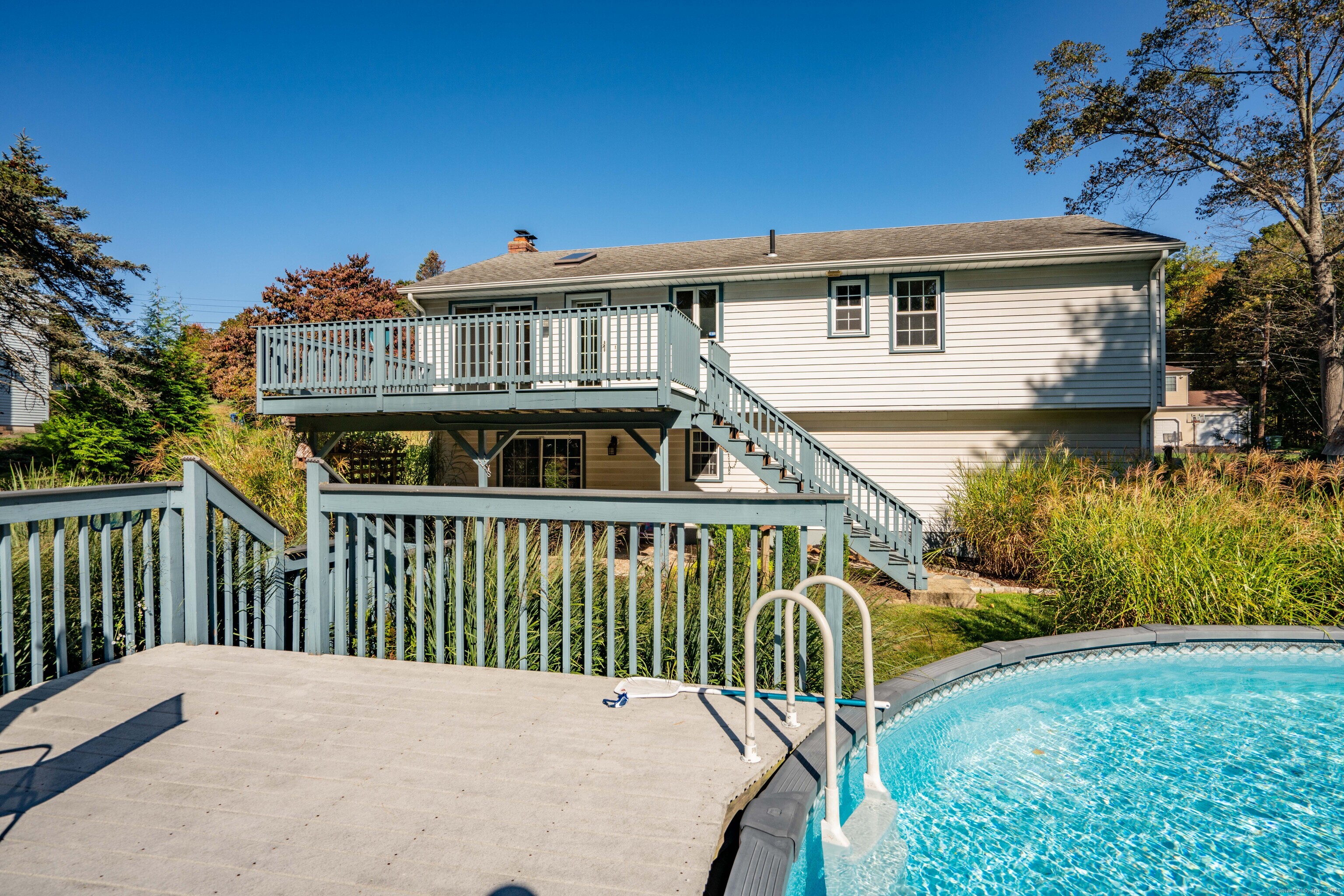 Highest & Best offers by 10am Monday 10/13/2025!!! Welcome to this immaculate 3-bedroom, 1.1-bath raised ranch set on a picturesque one-acre lot in a desirable neighborhood of beautiful homes. This property is a perfect blend of comfort, style, & functionality - ideal for both everyday living & entertaining. As you approach the backyard, you'll be charmed by a lovely ivy-covered arbor that adds character & a touch of romance to the outdoor space. The fully landscaped yard features an above-ground pool with a custom deck, offering the perfect retreat for warm-weather relaxation. Inside, the main level boasts a bright, open floor plan with hardwood floors throughout, updated appliances, & a fabulous Kloter Farms Island for casual dining. The dining area features sliding glass doors that open to a spacious deck, providing a seamless flow between indoor & outdoor living. Additional interior highlights include gas heat & central air for year-round comfort, raised panel doors with stylish new black hardware & ceiling fans in every room for added airflow & charm, updated full bathroom with a walk-in shower & modern vanity. The fully finished lower level is warm & inviting, featuring a wood-burning fireplace, walk-out access to a stone patio, & a convenient half bath with full laundry. A 2-car attached garage completes the package, offering ample storage & convenience. Don't miss this rare opportunity to own a truly move-in ready home in a serene & well-maintained neighborhood.