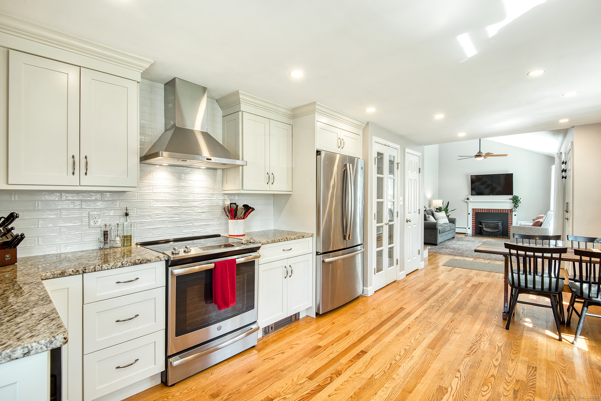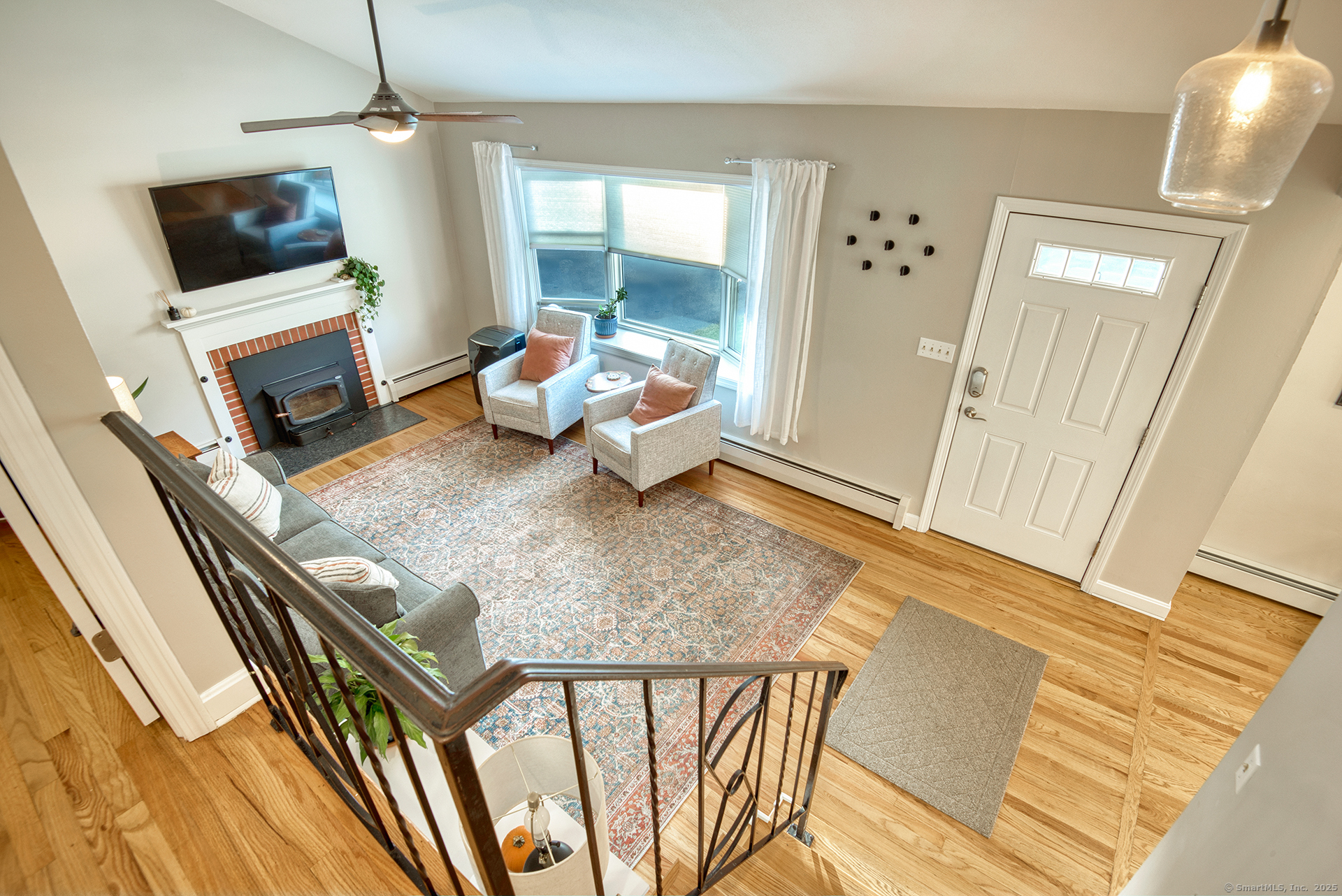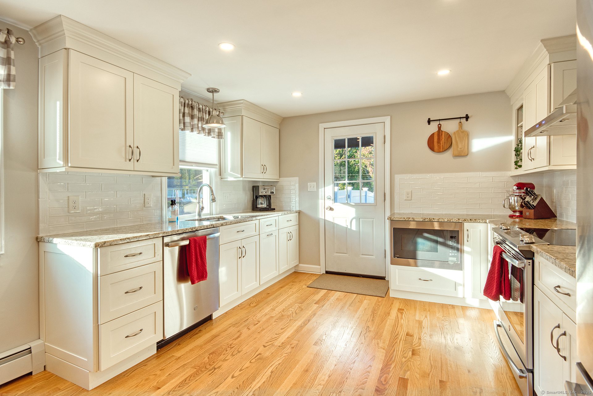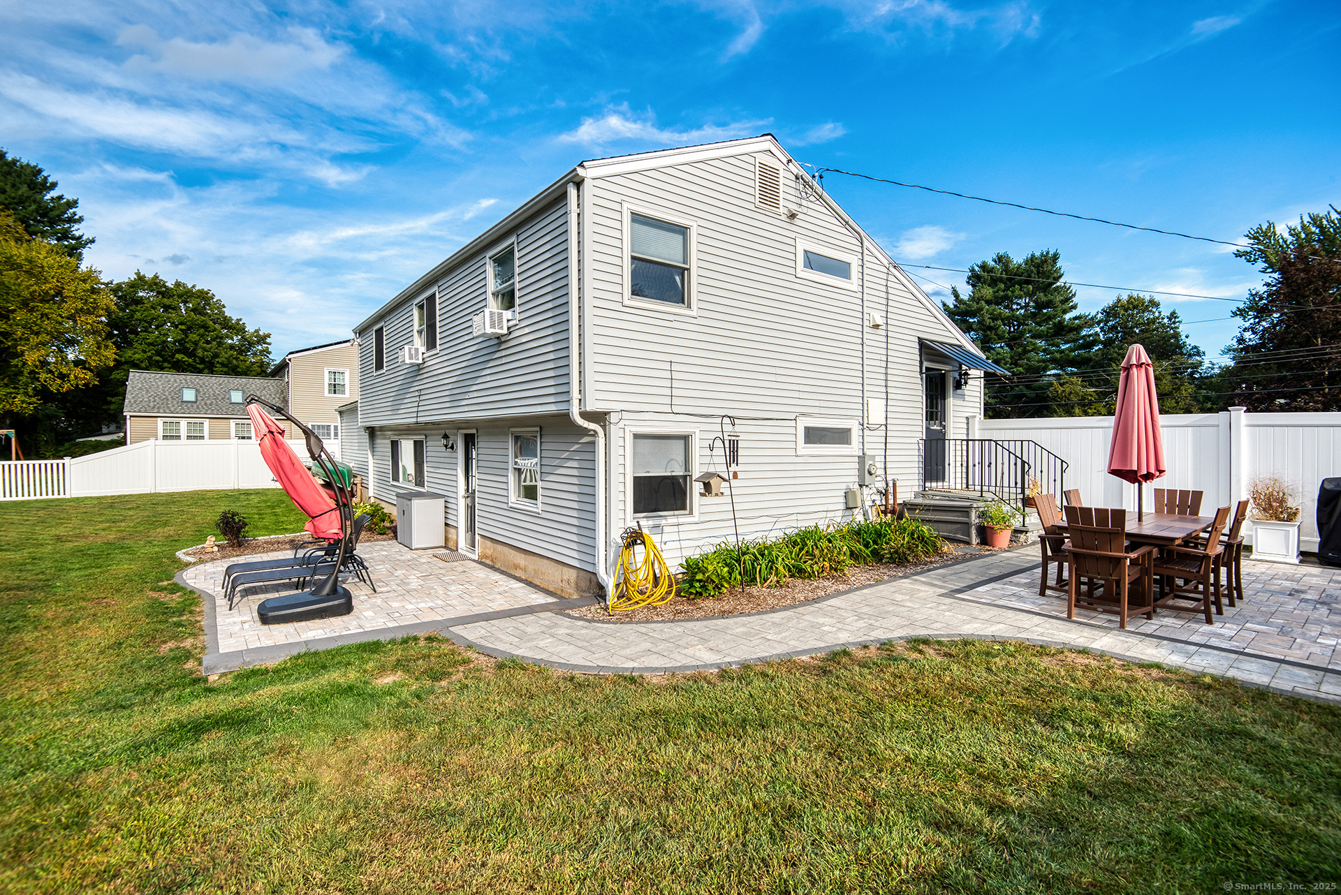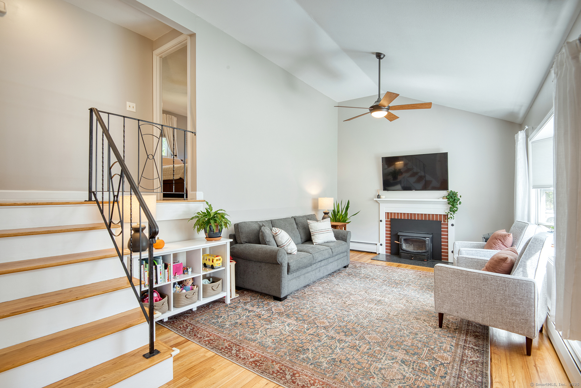 Welcome to 12 Simsbury Manor Drive, a beautifully maintained three-bedroom, two-bath split-level home in the sought-after Latimer Lane Elementary School neighborhood. This home offers an ideal combination of comfort and modern updates, in a prime location with close proximity to the bike path, shops, and dining. Inside, enjoy the gleaming eat-in kitchen with hardwood floors and stainless steel appliances, open to a bright and spacious living room with a cozy wood stove fireplace, which effectively heats the upper two levels of the home during colder winter months. Upstairs offers three generously sized bedrooms and an updated full bath. The expansive lower level provides a family room with direct access to the garage, in addition to a full bath and an office or spare room perfectly situated for guests. Laundry and flexible space in the basement can be used for storage, hobbies, home gym or office. Outside, relax in the spacious, fully fenced in backyard with professionally installed patios, a large fire pit and a garden area. Additional benefits include Thermopane windows and the availability of natural gas on the street for potential conversion. Don't miss this exceptional property-schedule your showing today! **We have received multiple offers. Sellers are asking for all offers to be submitted by Monday October 6th at 6PM