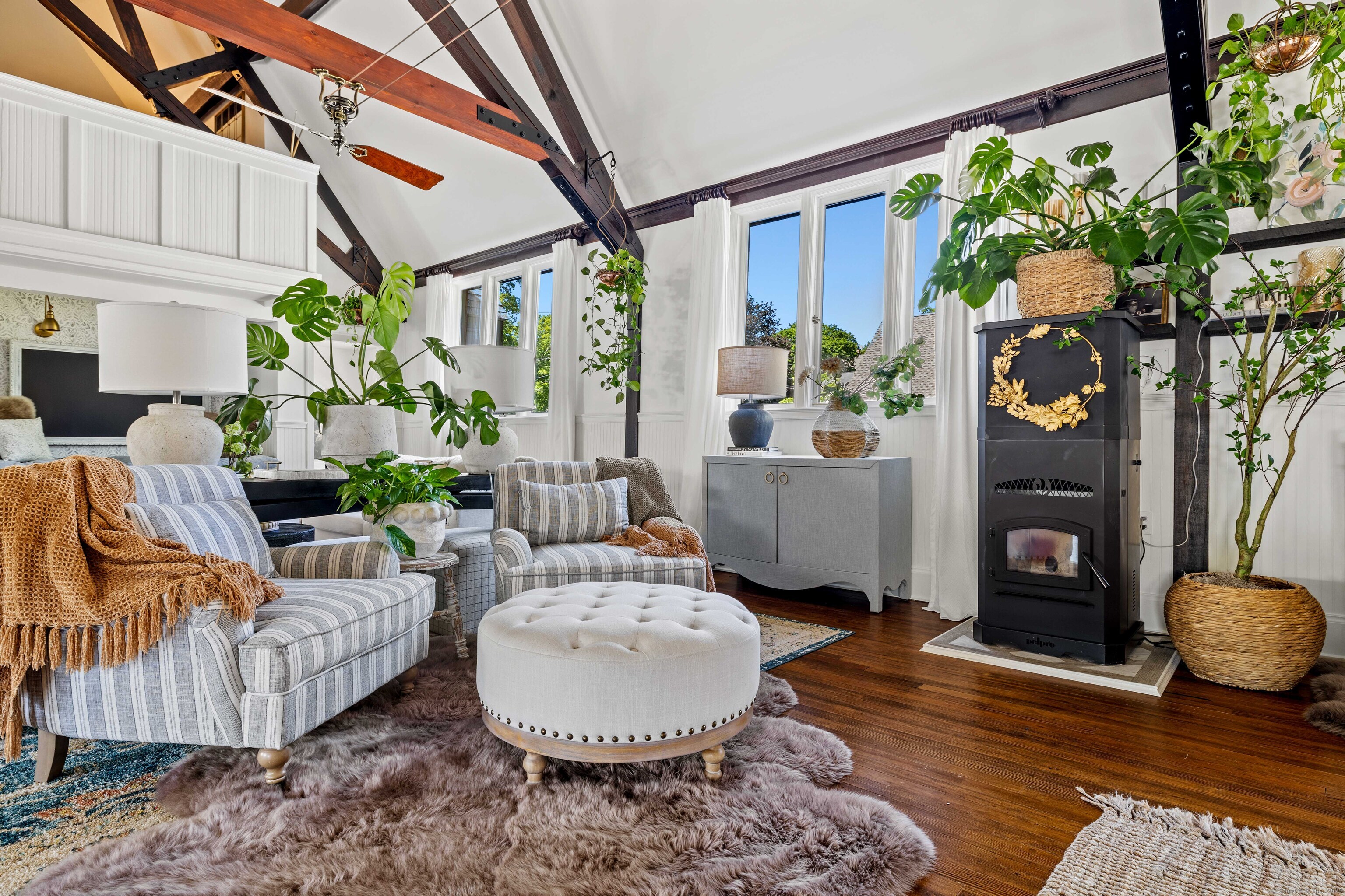 "The Church, 2.0" A rare opportunity to own a reinvented piece of history in the heart of Hanover Village, this former church has been thoughtfully transformed into a truly one-of-a-kind residence that blends original character with luxury comfort. The striking exterior combines original stone, stucco, and durable hardie board siding, while inside, the re-imagined layout preserves the soaring sanctuary space-now an open-concept kitchen, dining, and living area that leads to a sprawling 800-square-foot deck. Behind it sits a peaceful primary suite with a private screened porch, and the west wing includes a butler's pantry, additional bedrooms and baths, each with its own HVAC system. Radiant floor heating runs through the main living spaces and primary suite, and a whole-home propane generator offers backup peace of mind. BONUS: A newly constructed, massive 4-car carriage-like garage with large unfinished loft space above adds even more flexibility and storage. This isn't just a home-it's a retreat, a showpiece, and has architectural charm unlike anything else on the market. If you are searching for the uncommon home, this is it. Pictures can't capture the full magic of this home-this property must be experienced in person to truly appreciate its charm. Broker-owned.