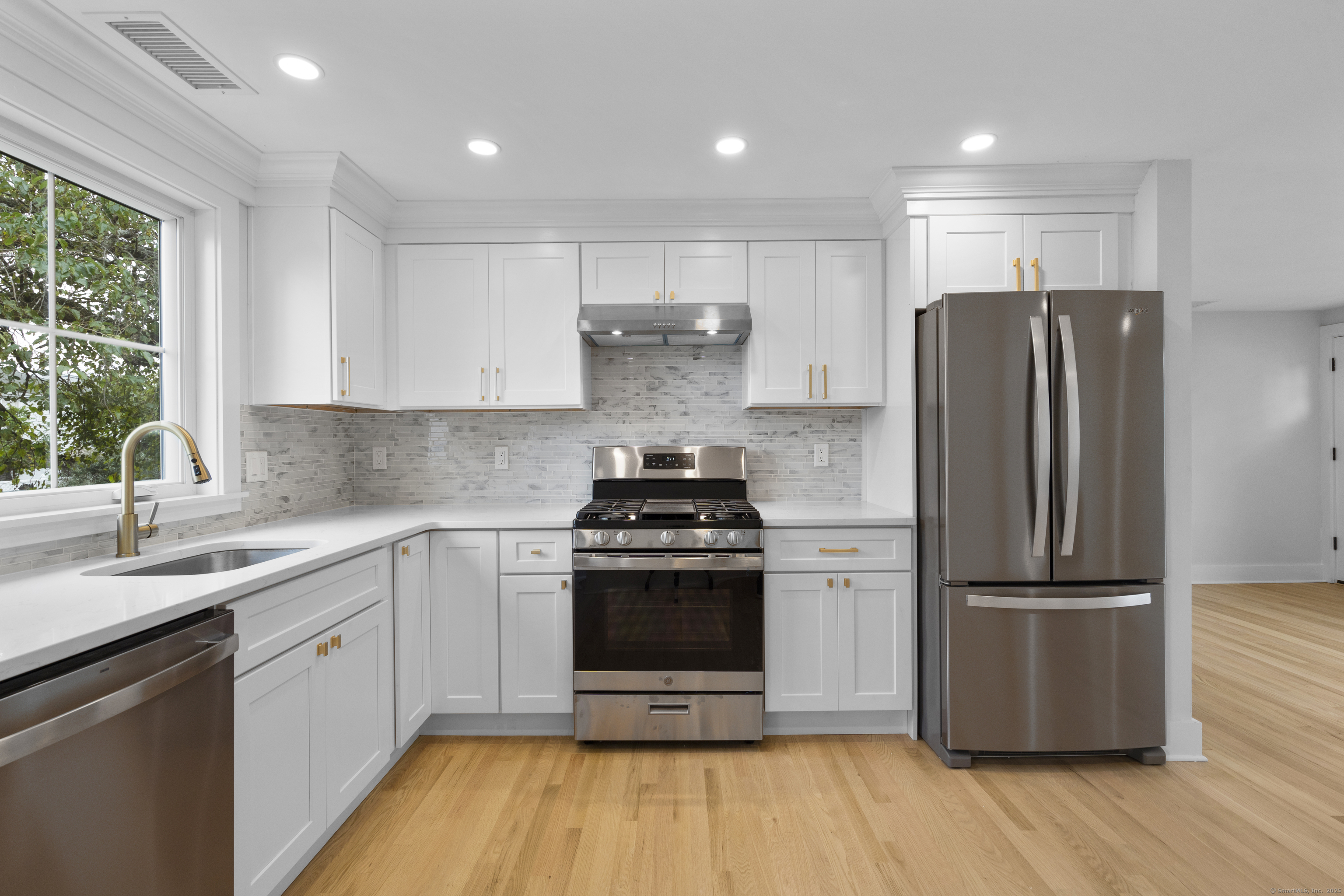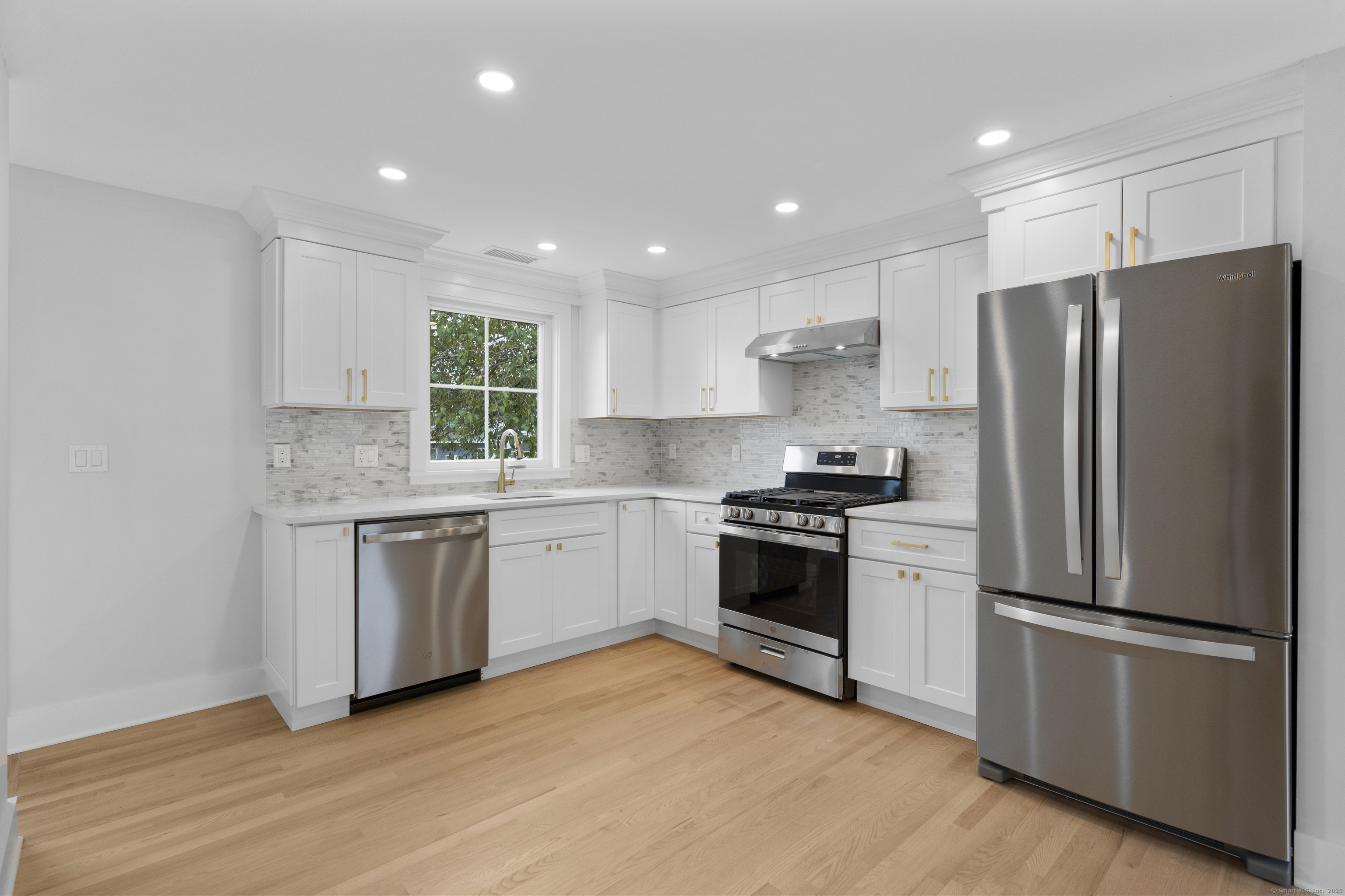 Perfectly situated in one of Stamford's Beach enclaves, 80 Horton Street presents a rare opportunity to own a fully reimagined ranch-style residence. Every element of this three bedroom, two bath home has been thoughtfully renewed with top-quality craftsmanship, delivering a truly turnkey living experience. Inside, a bright & airy open-concept layout showcases refinished hardwood floors, recessed lighting, and elegant finishes throughout. The eat-in kitchen features new custom cabinetry, granite countertops, and premium stainless steel appliances, opening seamlessly to the main living area anchored by the wood burning fireplace. The home's two beautifully appointed bathrooms include a fully renovated main level bath & a newly created LL bath, both designed with modern fixtures & clean, sophisticated lines. The finished lower level offers versatility with a wet bar, laundry area, and abundant flex space ideal for a media room, home office, or guest suite. Behind the walls, every major system has been replaced. Including all new electrical and plumbing, high-efficiency HVAC, new roof, and spray foam insulation for optimal energy efficiency. Ensuring comfort and peace of mind for years to come. The full scope of improvements is far too extensive to list, this is a home that truly must be experienced in person to be appreciated. Minutes from Downtown Stamford's shops, dining & transit options, a short drive to Chelsea Piers, three beaches, and major commuting arteries.