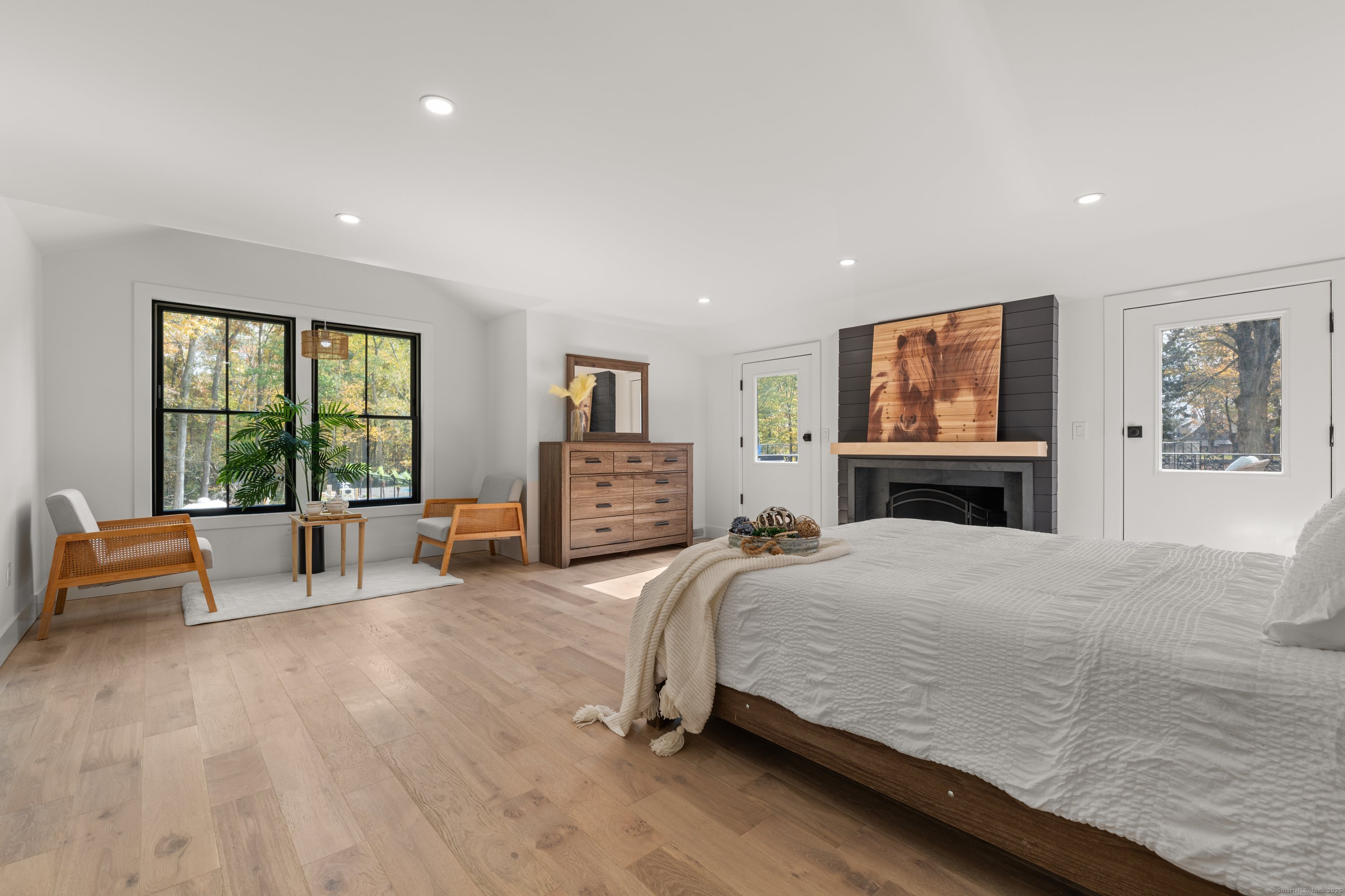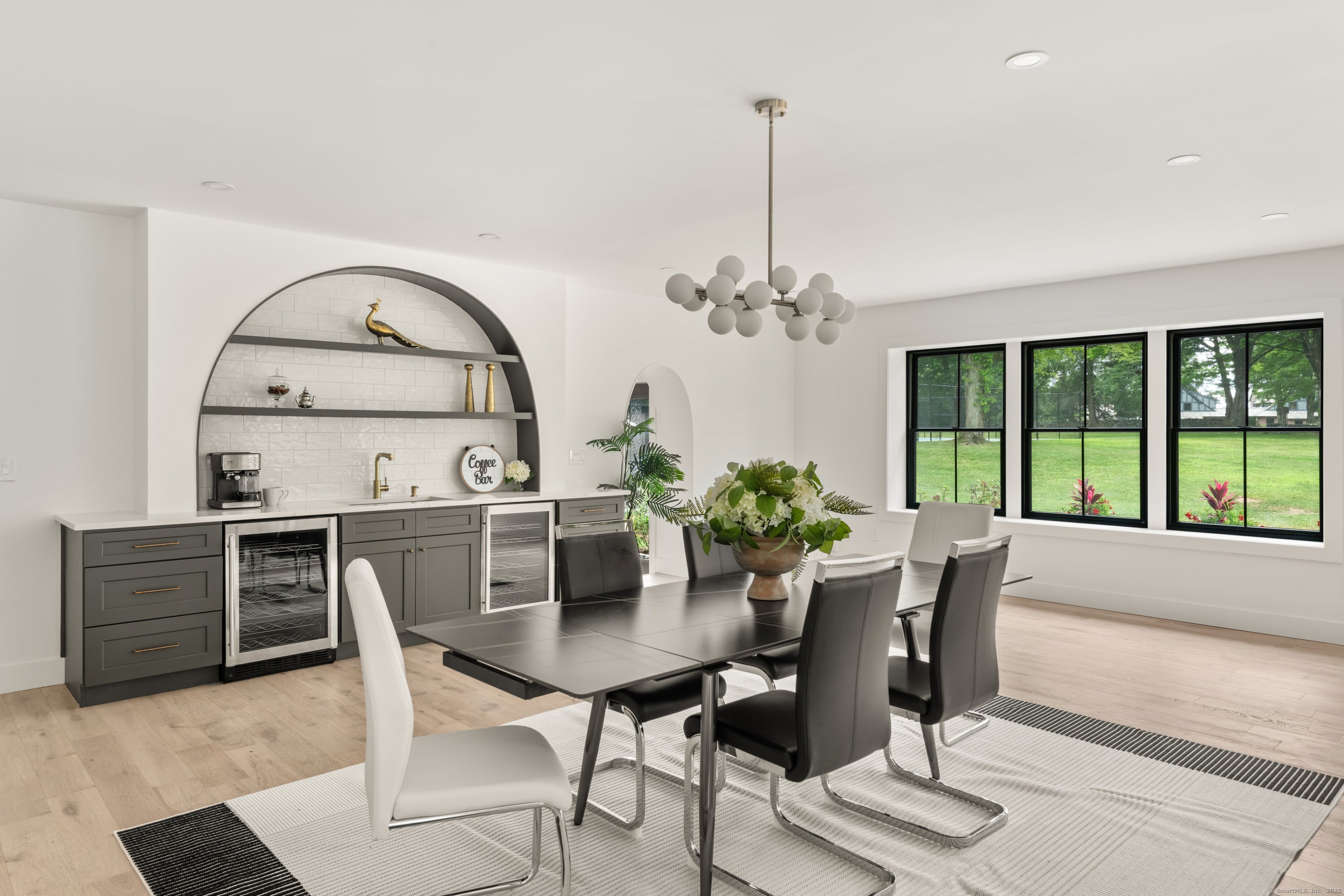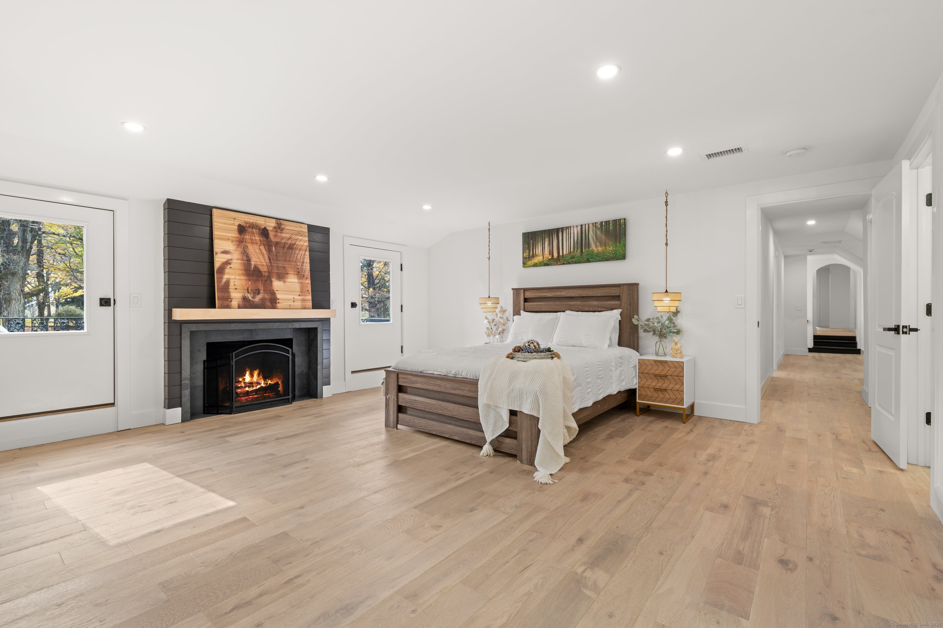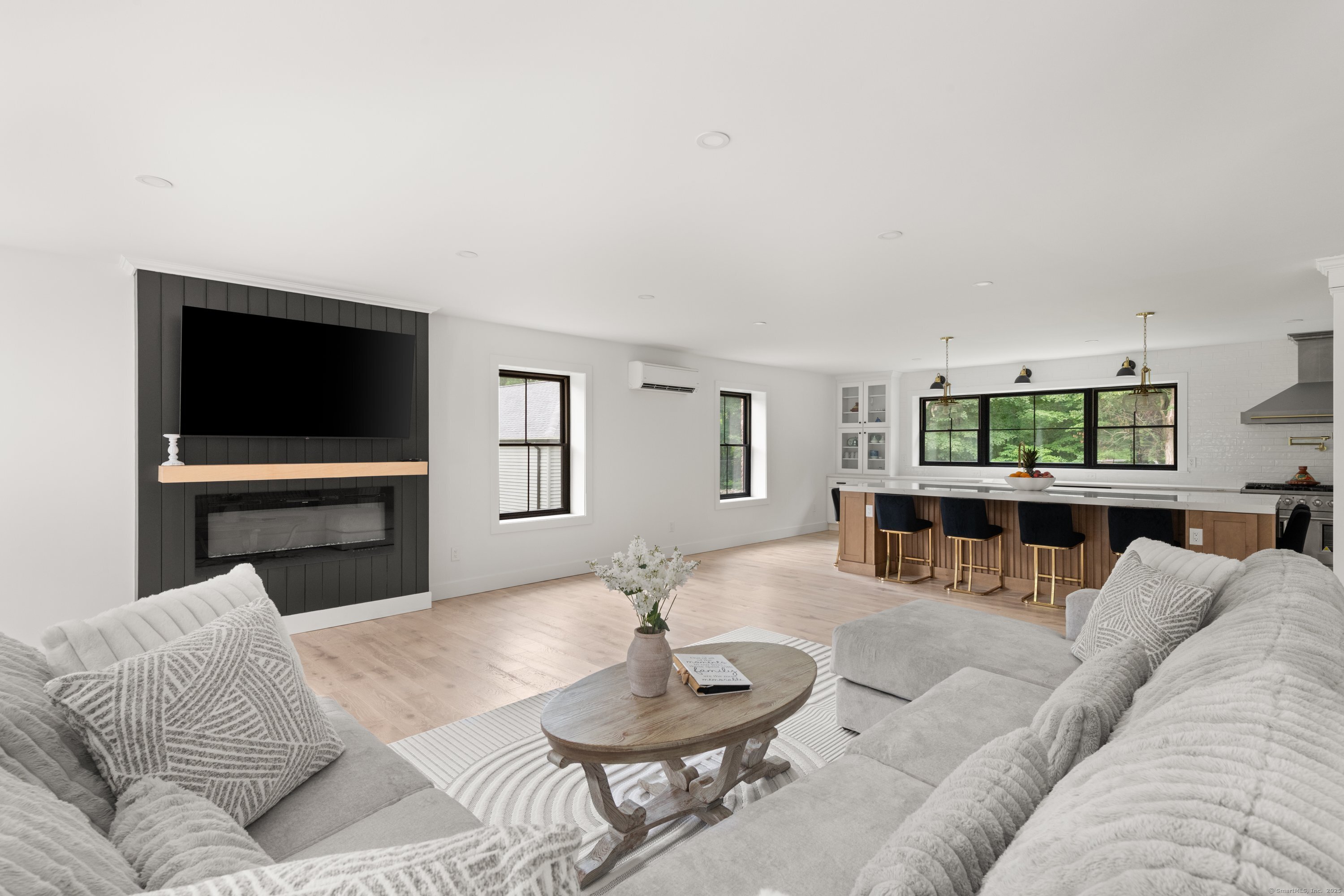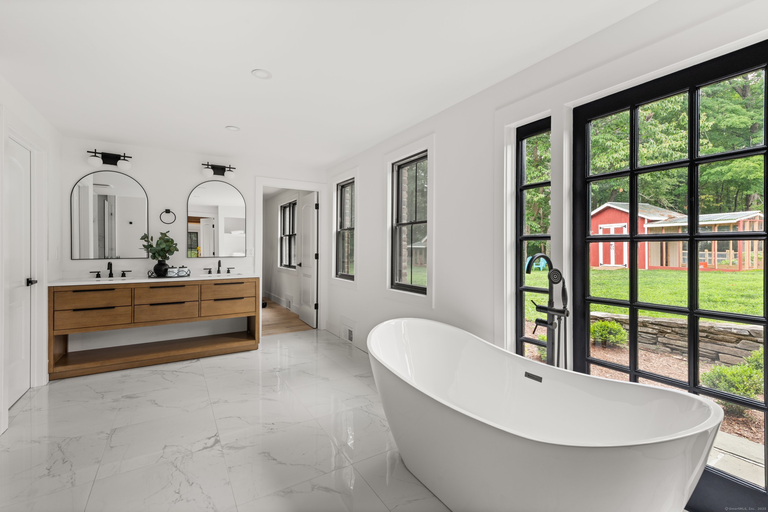Phenomenal renovation and redesign by current owners perfectly blends traditional and modern creating an elegant and luxury living. This exceptional 5 bedroom, 4.3-bath home offers over 6600 square feet of luxurious living. Situated on a private 3.5 acres, the property boasts: stone walls, a 60ft in-ground pool and tennis/pickleball court. Upon entering, you'll be captivated by the stunning carriage house architecture and attention to quality throughout this home. The open floor plan incorporates a family room with fireplace, dining room, coffee station, and custom kitchen and offers comfortable and welcoming spaces to entertain. The tastefully remodeled kitchen features an island that can seat 8, quartz counters, ZLINE appliances, walk-in pantry with sink and back up refrigerator. Grand family room with fireplace, office, GYM room, 2 half bath, laundry room, and full bath with double sink vanity, a floating tub, and a spacious walk-in shower complete the main floor. Step up upstairs to discover 5 bedrooms and 3 full baths and one half bath along with a sauna, second floor laundry room, and multiple closets. The primary suite has its own private deck with fantastic views of the grounds, a private bath, and walk-in closet. One guest bedroom has an ensuite full bath, another has an ensuite half bath. The other 2 share a full bath.