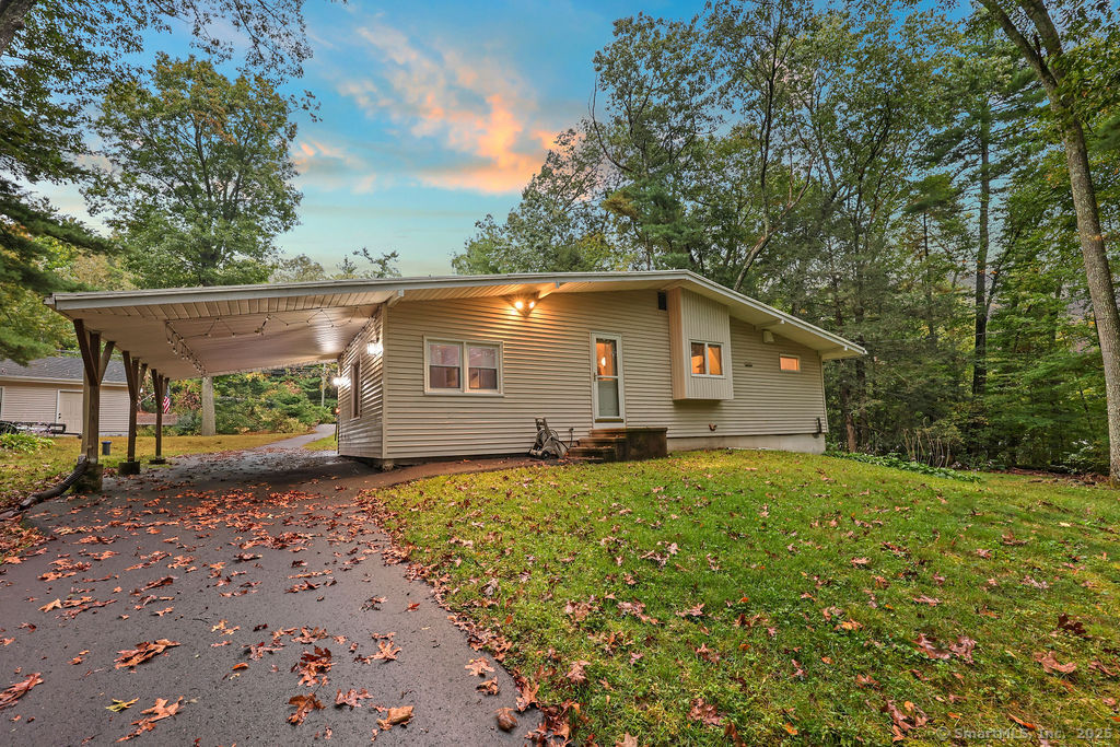Single floor living at its' finest in a serene wooded location. This home blends modern living and natural tranquility in convenient Avon. The home's exterior with large two car detached garage and single car attached carport blends seamlessly with the surroundings, providing a welcoming approach while maintaining a sense of seclusion. Thoughtfully updated throughout, the property presents a modern day aesthetic designed with comfort and ease of living. Upon entry, the open concept layout offers a sense of spaciousness with the main living areas, including the living room, fireplaced dining space and kitchen flowing effortlessly together creating an inviting environment ideal for daily living as well as entertaining. Notice large windows maximize natural light, while custom blinds can provide privacy. Recent updates are everywhere throughout. The kitchen, central to the floor plan, is modern with beautiful countertops and ample storage. Updated flooring and paint throughout add to the neutral palette. This home provides an updated living experience set within a peaceful, natural environment. Great for anyone who wants to downsize or is looking for a condo alternative.