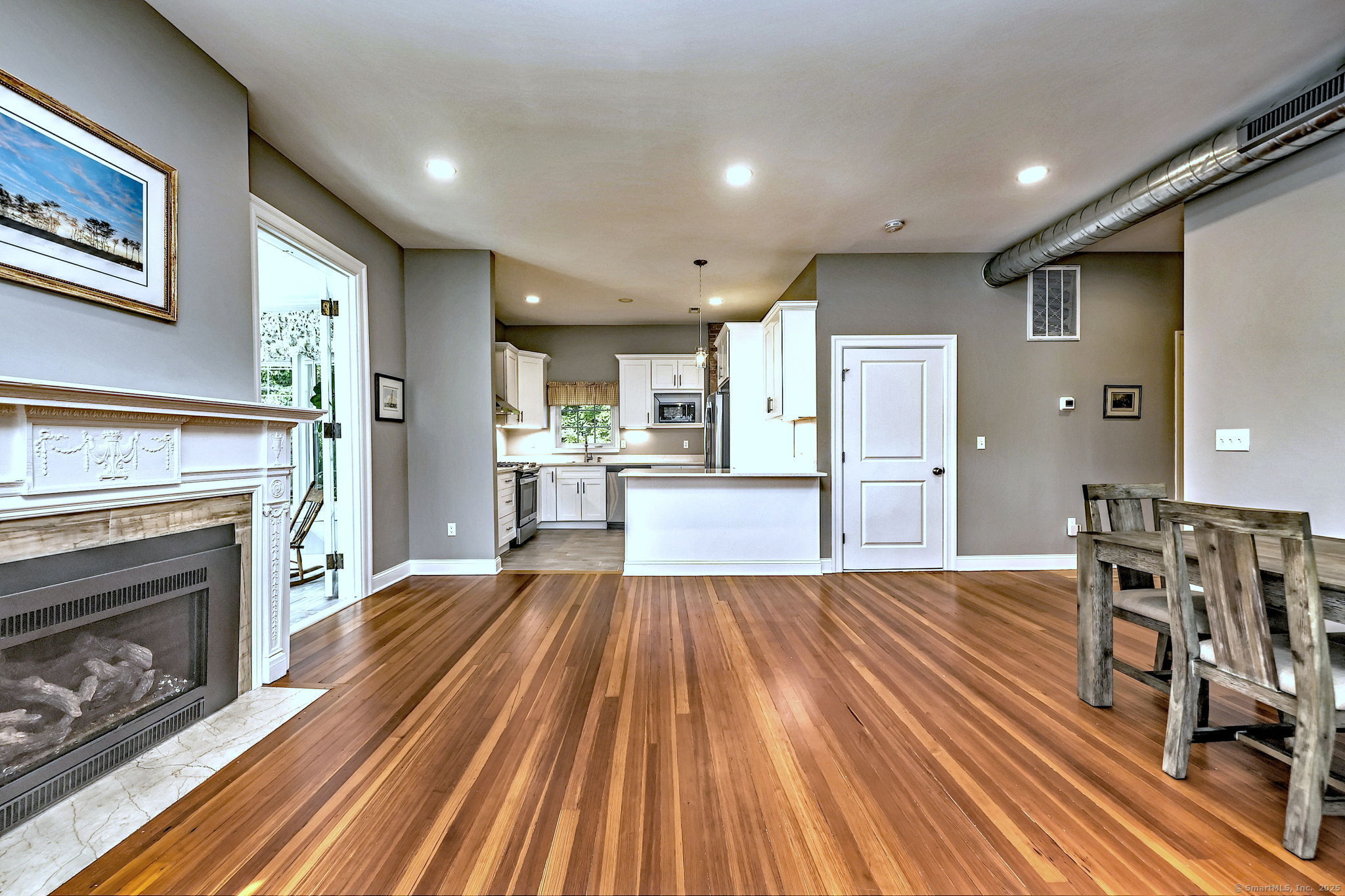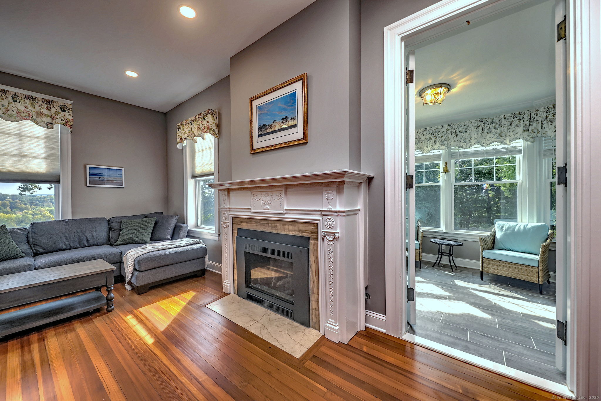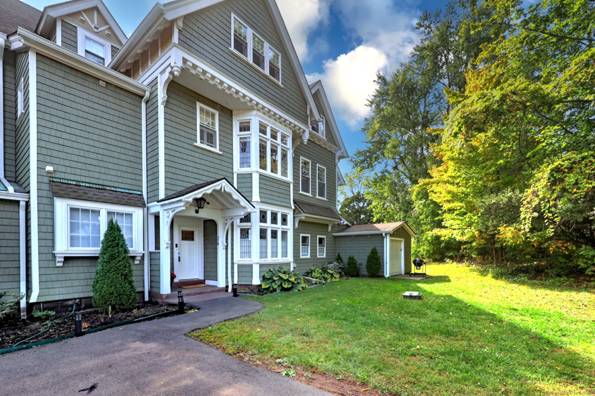 Step into timeless elegance with this beautifully updated ranch-style home, part of a charming historical mansion once owned by E. Kent Hubbard and now known as Arawana Estates (a planned community). Originally built in 1900 and thoughtfully converted into six unique residences just five years ago, this home blends classic character with modern comfort. A private entrance leads up to almost 1600 square feet of living space in this 3 bedroom, 2 1/2 bath home with high ceilings and tasteful woodwork. The expansive great room features gleaming wood floors and a propane-fired fireplace as its stunning centerpiece plus French doors to the sunroom. The gourmet kitchen is a cook's delight with lovely quartz countertops, stainless steel appliances, a breakfast bar, and under-cabinet lighting. With the generously sized bedrooms, including a primary suite with a walk-in closet and private bath, this condo offers plenty of space. Enjoy the natural light and scenic views from the three-season sunroom, and appreciate the convenience of in-unit laundry, efficient propane heat, and a tankless Navien hot water heater. A detached garage and access to a shared basement complete this exceptional home. Conveniently located for enjoyment of local restaurants, Wesleyan and highways for commuters. This home is ready for new owners to move in and enjoy!