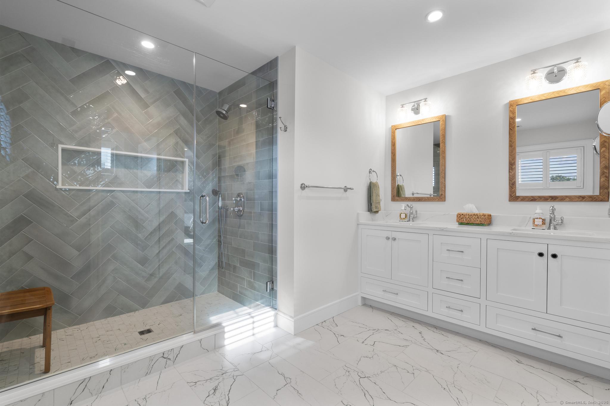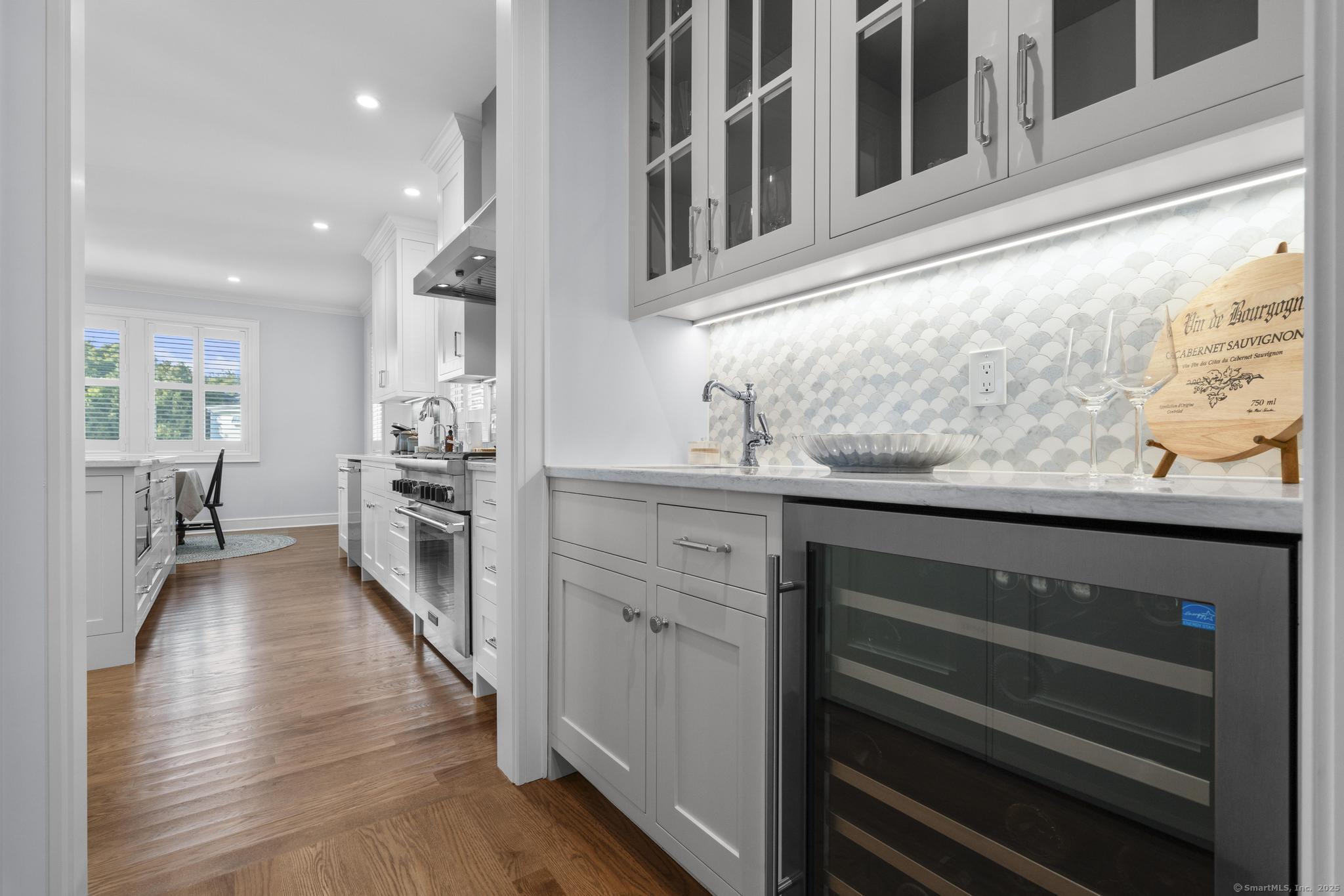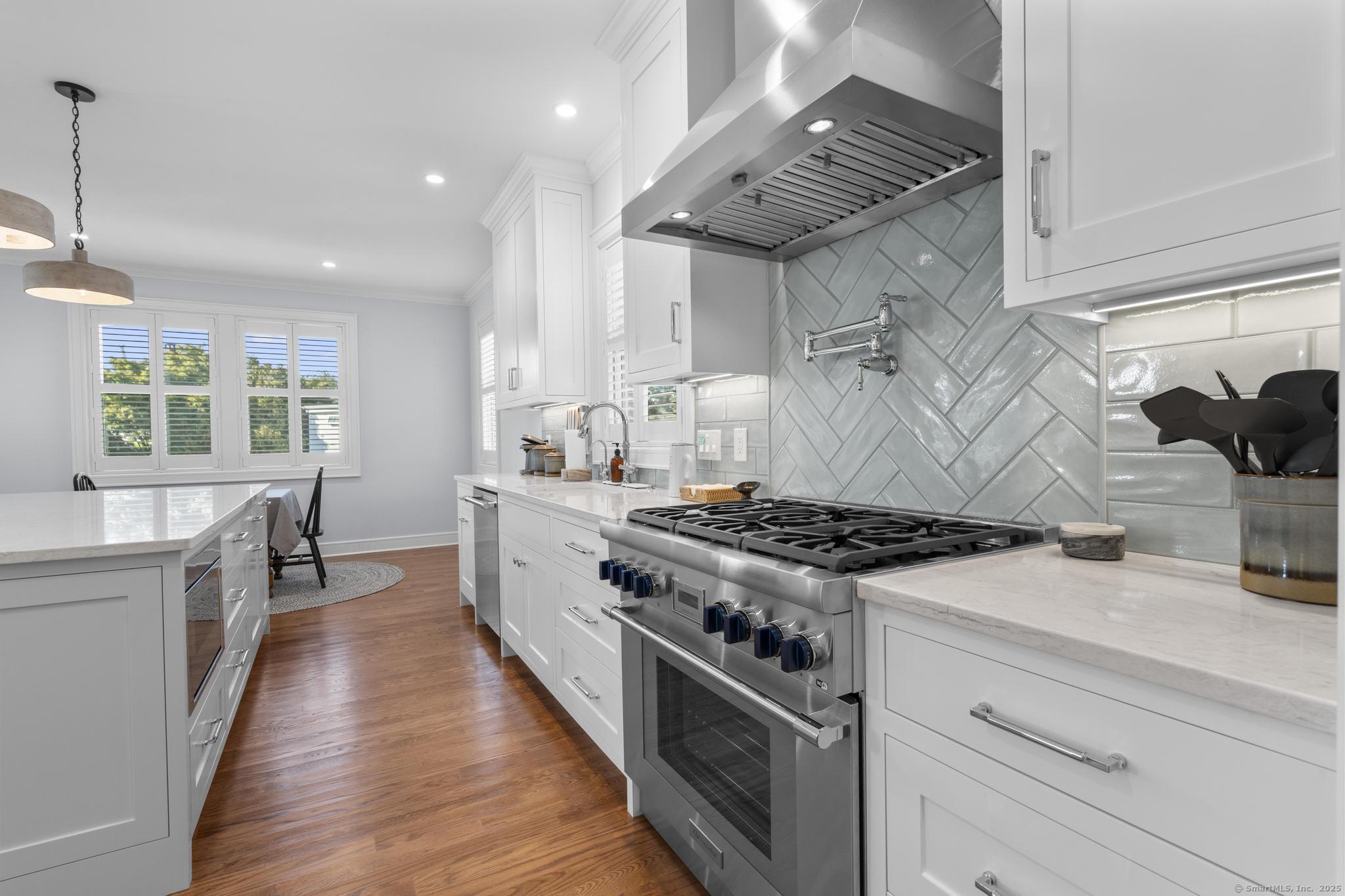 The house that dreams are made of-nestled in a walkable community near beach, quaint town center and train. Brand-new construction set for completion this year offers a seamless blend of elegance and modern design. Fabulous first floor open floor plan features 9' ceilings and all generous size rooms: an inviting foyer, private mudroom, gourmet kitchen with 8' Quartz Island for entertaining. Top of the line Thermador appliances: 48" Gas 6 burner dual fuel convection range, 7' French door refrigerator, dining area. A modern day "Keeping Room" adjoins the kitchen for cozy gatherings with Sliders to a covered deck for BBQ, generous Family room with gas fireplace, formal living room and formal panel molding, dining room. A walk through butlers pantry with wet bar and wine cooler, huge pantry and powder room complete the first floor. Custom shaker style cabinetry, exquisite moldings including ship lap and panel moldings throughout. Upstairs you'll find 4 ensuite bedrooms including a stunning Primary suite, impresses with vaulted ceiling and dreamy 11' x 12' walk-in closet. Spa-like luxurious primary bath has radiant heat floors, Rohl fixtures, pedestal soaking tub and shower with frameless glass. 3rd floor has a 5th bedroom, full bathroom and extra playroom. Every closet is thoughtfully outfitted. Garage level has a 2nd mudroom, parking for 3 cars with Loggia area and ample storage. Experience your private oasis-designed for comfort, entertaining and luxury living.
