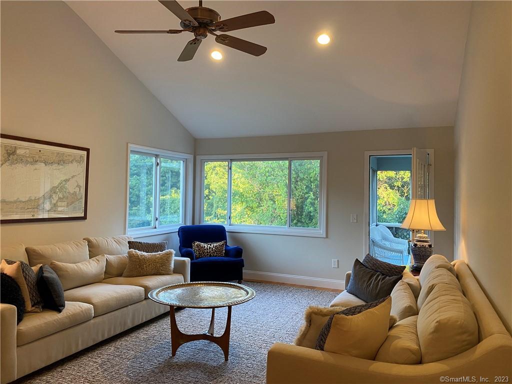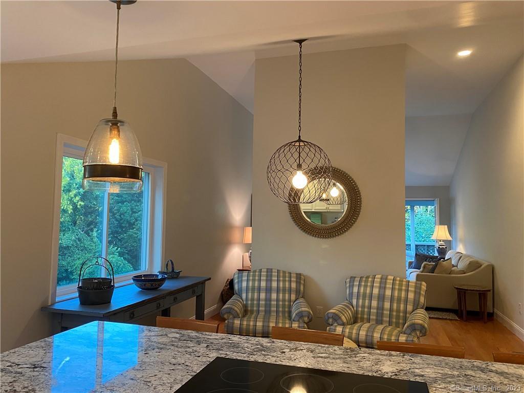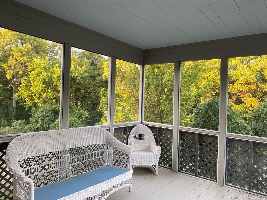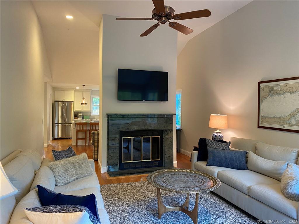 A unique opportunity at Legend Hill. A beautifully updated one-level ranch unit on a quiet corner lot. Single-level living at its finest: an open, pretty kitchen flows into the dining room, leading to a spacious living room with a vaulted ceiling and gas fireplace. Step from the living room onto the cozy screened porch overlooking tranquil woodlands. The primary suite is bright and spacious with an updated bath and walk-in closet. There is an additional bedroom and a full bath down the hall. Plenty of storage in the two-car garage. Enjoy easy living on the CT Shoreline in this well-maintained complex where you will have access to a tennis and pickleball court, a gorgeous pool, a historic clubhouse, patios, terraces, and even peeks of Long Island Sound. A short drive to town, beaches, and shopping.