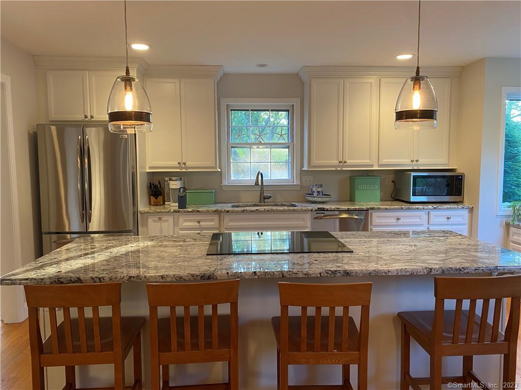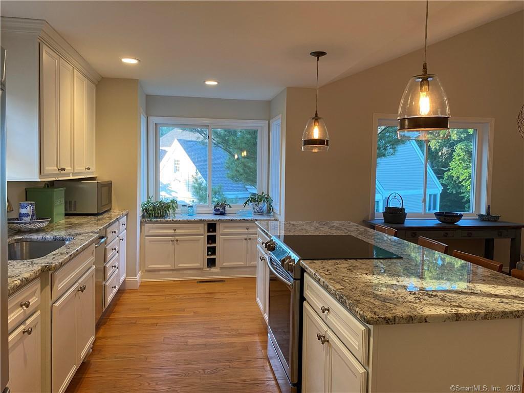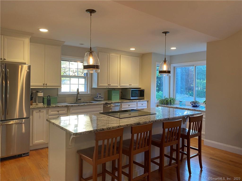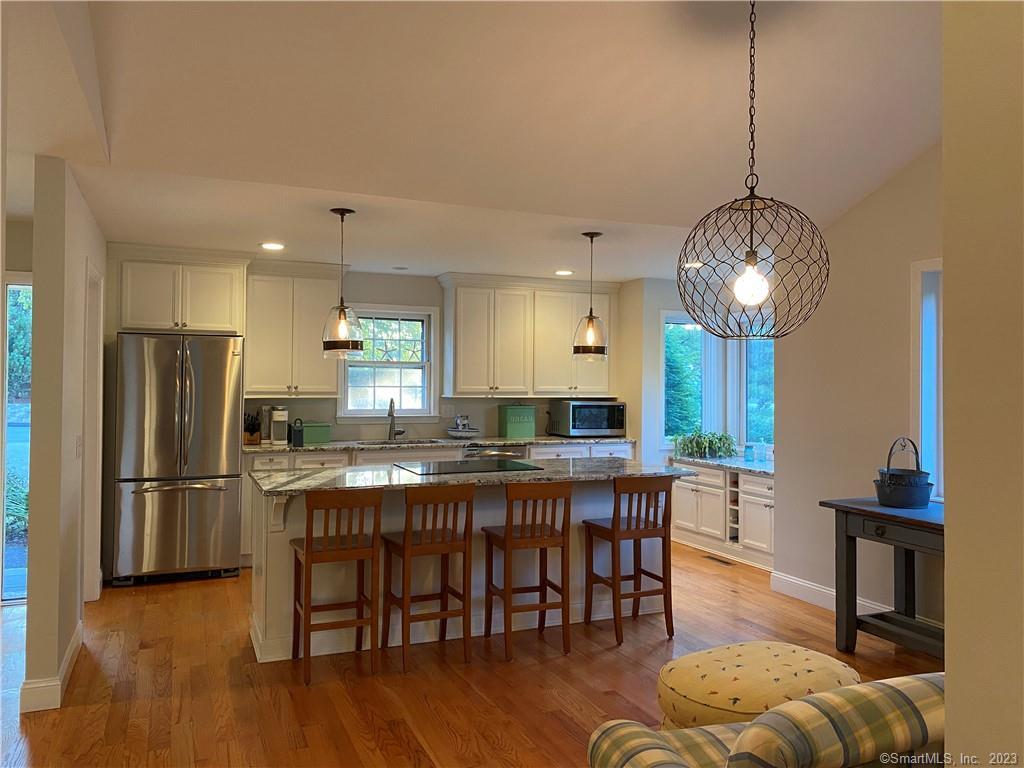 A unique opportunity at Legend Hill. A beautifully updated one-level ranch unit on a quiet corner lot. Single-level living at its finest: an open, pretty kitchen flows into the dining room, leading to a spacious living room with a vaulted ceiling and gas fireplace. Step from the living room onto the cozy screened porch overlooking tranquil woodlands. The primary suite is bright and spacious with an updated bath and walk-in closet. There is an additional bedroom and a full bath down the hall. Plenty of storage in the two-car garage. Enjoy easy living on the CT Shoreline in this well-maintained complex where you will have access to a tennis and pickleball court, a gorgeous pool, a historic clubhouse, patios, terraces, and even peeks of Long Island Sound. A short drive to town, beaches, and shopping.