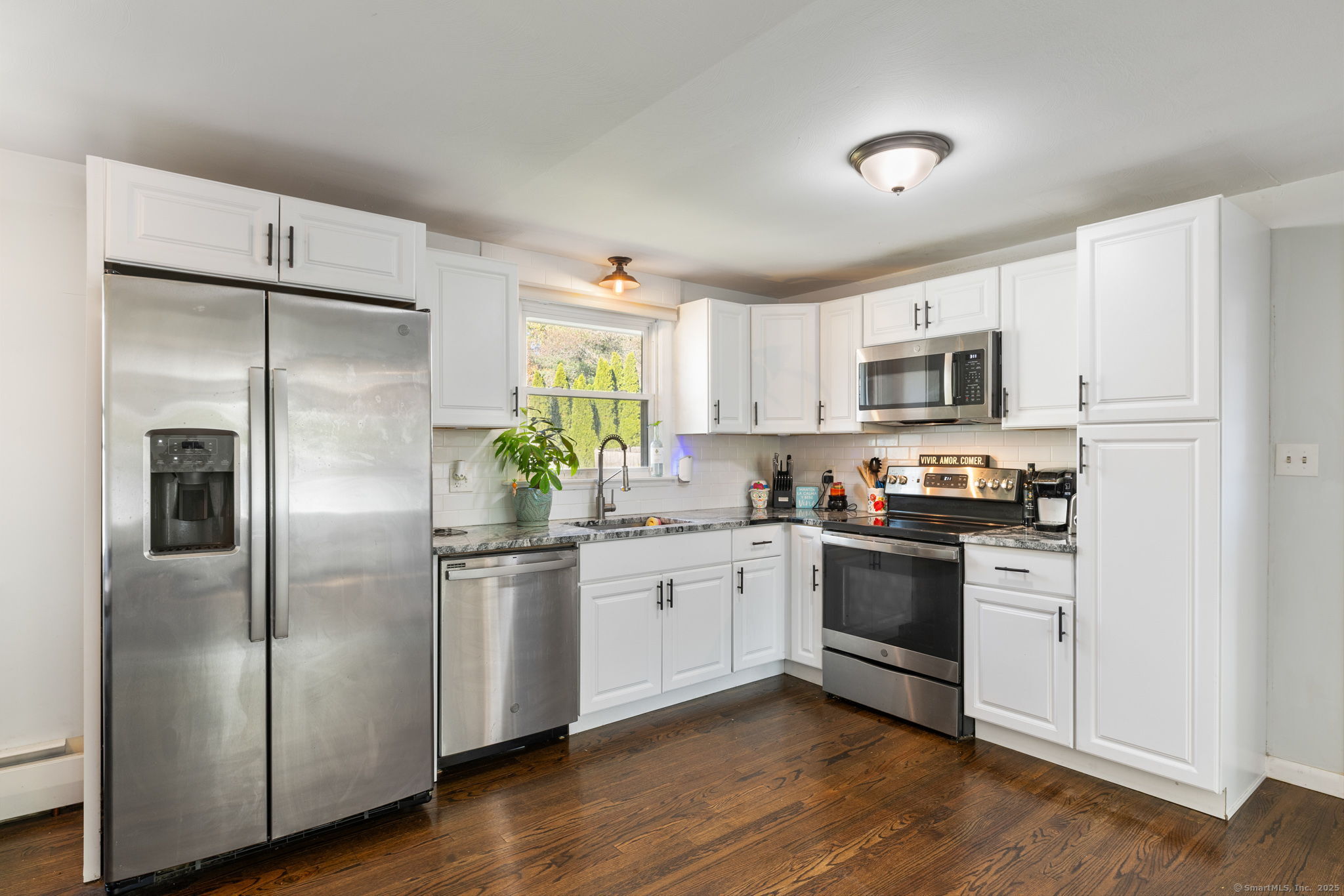 A STORYBOOK RANCH IN THE HEART OF WETHERSFIELD! Welcome to 7 Harmund Court, where timeless charm meets everyday comfort in one of Wethersfield's most beloved neighborhoods. Tucked away on a peaceful cul-de-sac, this picture-perfect ranch offers gleaming hardwood floors, sunlit spaces, and inviting touches at every turn. Step into a bright and welcoming living room anchored by a classic brick fireplace, the perfect centerpiece for cozy nights or cheerful gatherings. The open dining area flows effortlessly into the kitchen, creating an easy, connected layout ideal for modern living. Each of the three bedrooms offers a comfortable retreat, while the full bath features a simple tiled floor and a tub-shower combination, providing a clean and functional space. The finished lower level expands your living space with endless possibilities, a home office, media room, play area, or creative studio, all ready to fit your lifestyle. Outside, the backyard feels like your own private retreat, complete with a storage shed and plenty of room to garden, grill, or simply unwind and enjoy the serenity of cul-de-sac living. This home blends mid-century charm with low-maintenance ease. Close to parks, schools, shops, and commuter routes, 7 Harmund Court is more than a home, it's a feeling. Bright, inviting, and ready to welcome you home.