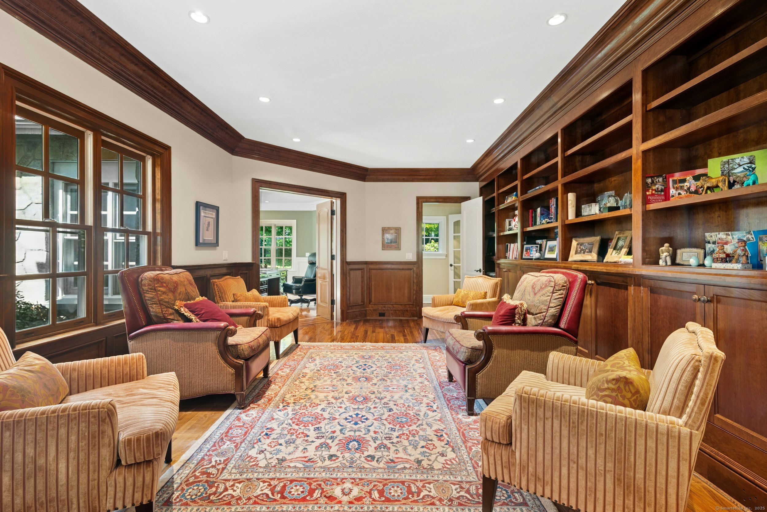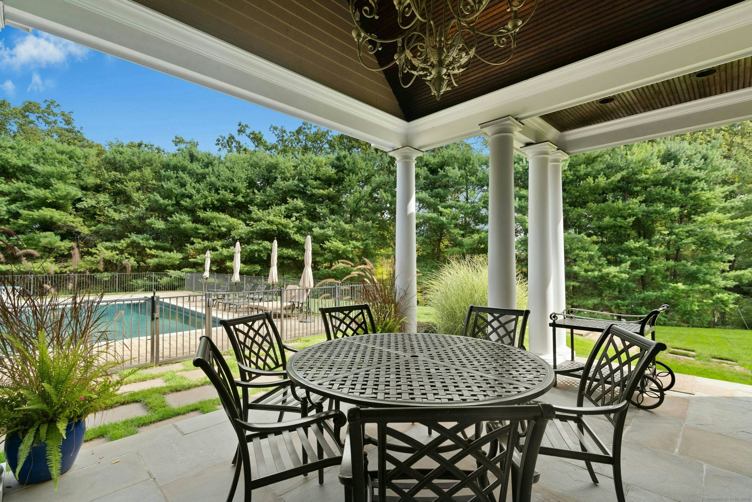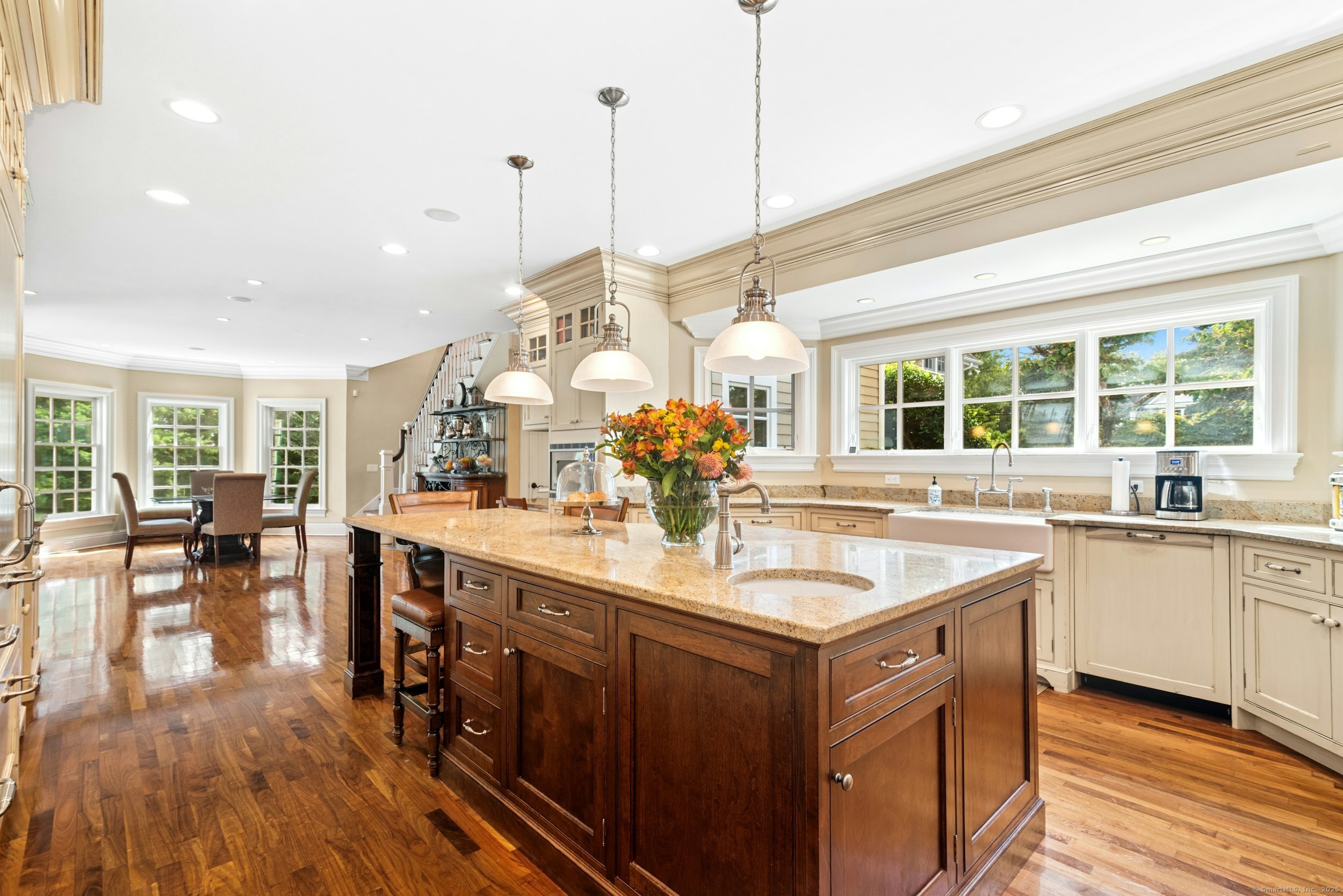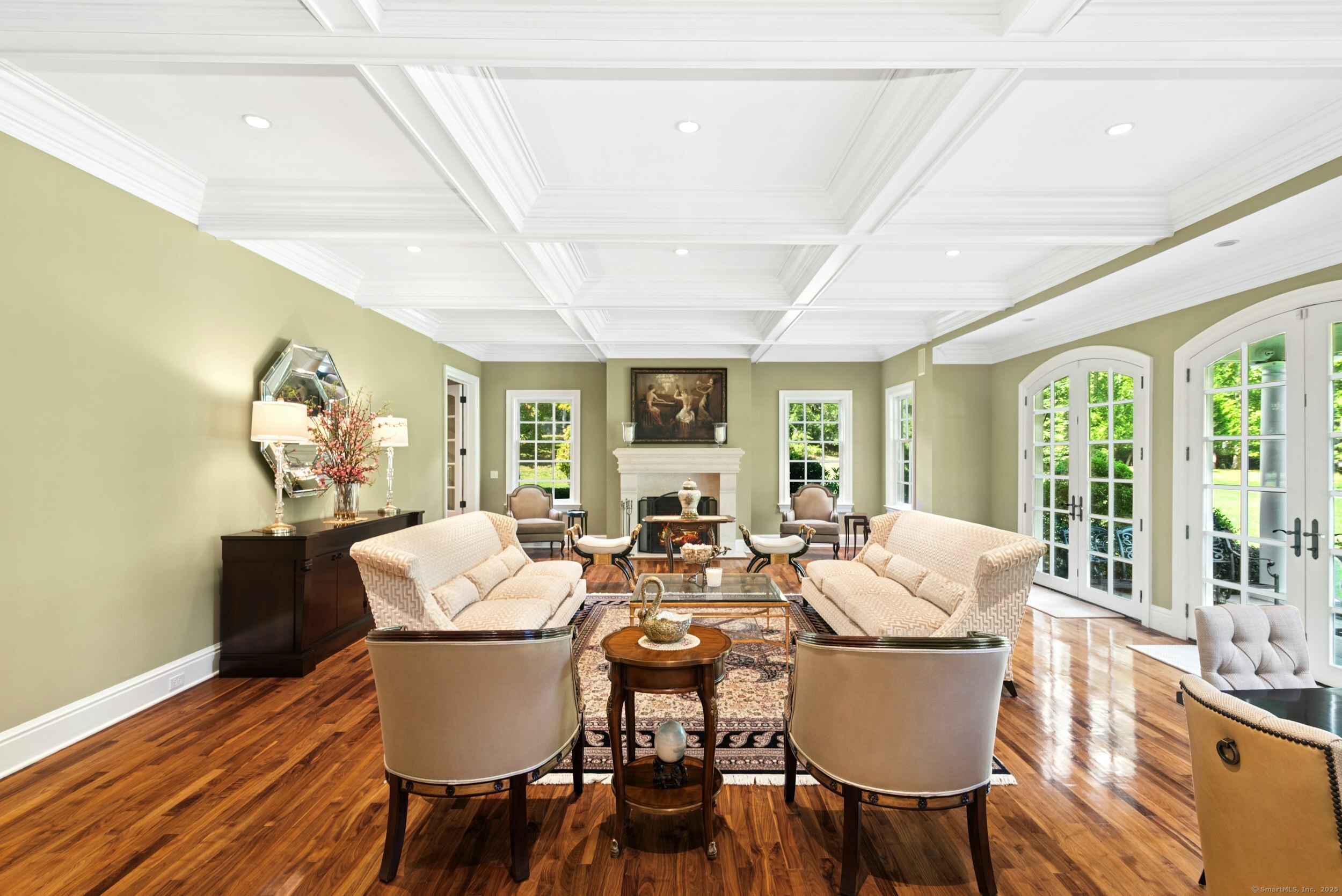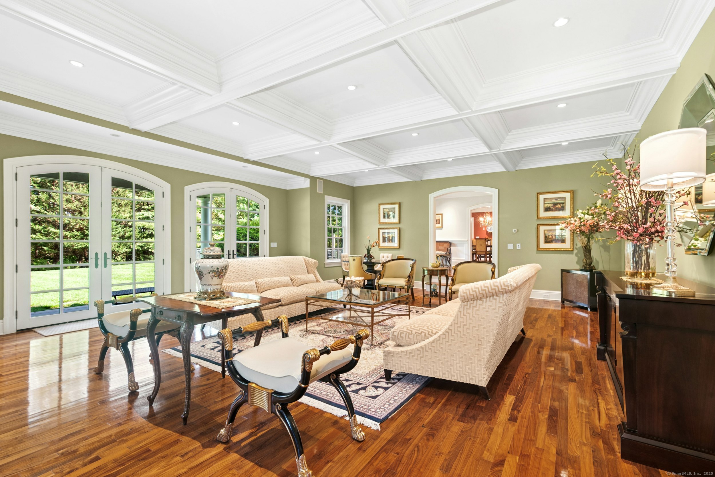 Prime Weston location! Set on 2.5 acres of glorious gardens and mature landscaping, this magnificent estate combines timeless sophistication with comfortable luxury. From the moment you step inside, the craftsmanship shines-rich walnut floors, exquisite millwork, and a beautiful coffered ceiling in the living room create an atmosphere of understated elegance. French doors open to two patios, inviting seamless indoor-outdoor living. The chef's kitchen is a culinary dream with four ovens, two refrigerators, two dishwashers, and professional-grade appliances, perfectly designed for entertaining. The sumptuous primary suite is a private sanctuary with a sitting room, balcony, dressing room, and spa-worthy bath. Each en-suite bedroom with walk-in closet offers its own retreat, while the in-law suite provides private living including a spa bath, laundry, and sitting room with fireplace. The finished lower level includes a custom cherry bar, exercise studio, and space for media or wine cellar. Outdoors, a heated Gunite pool and spa await. With a perfect space for every person and every activity, thoughtfully appointed interiors, and a serene,convenient location near schools, the Merritt, and Westport, this estate offers unparalleled elegance.