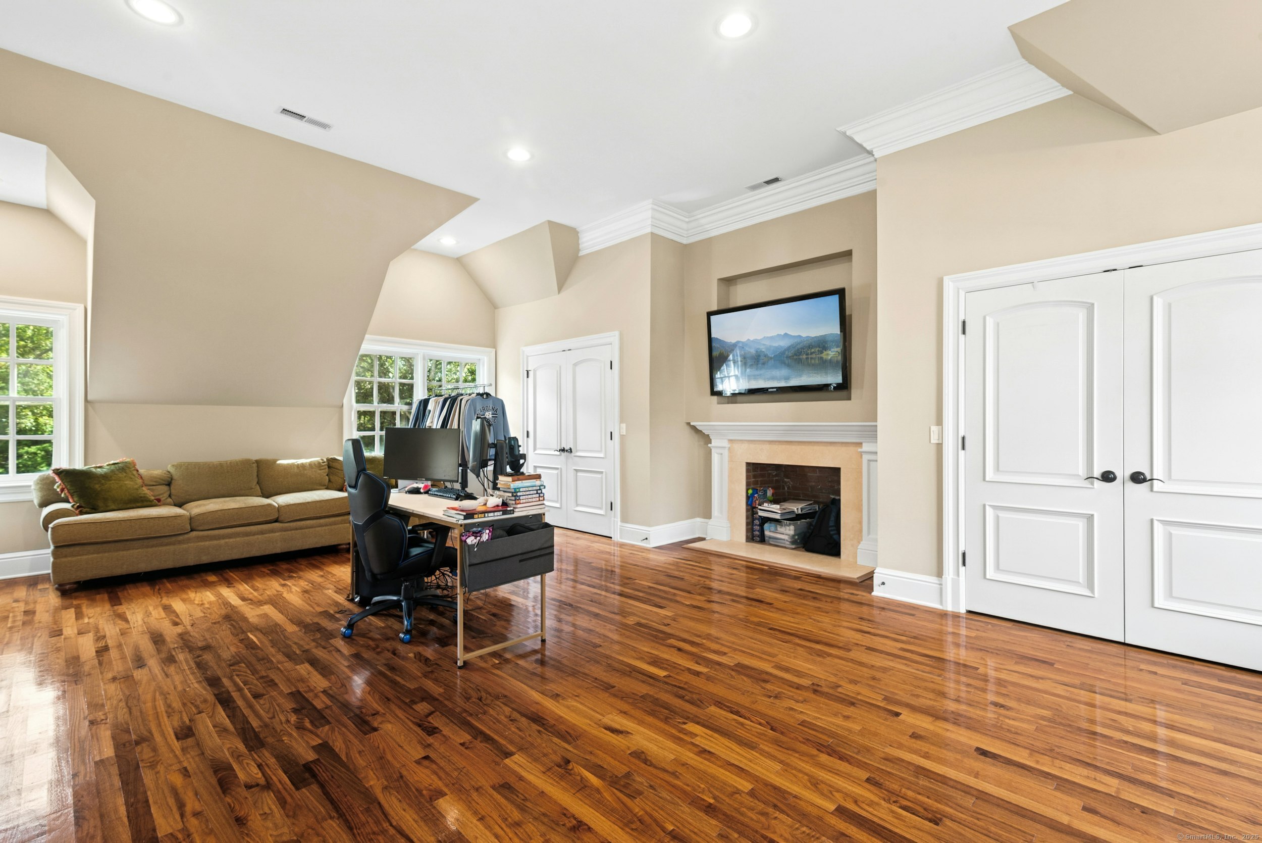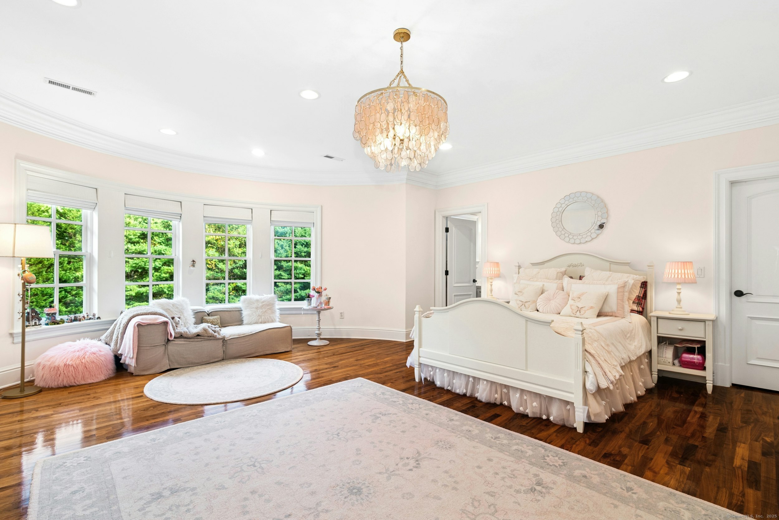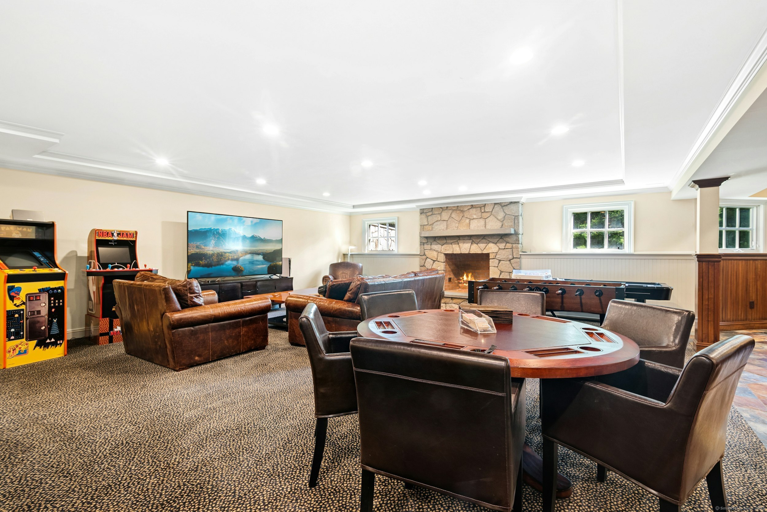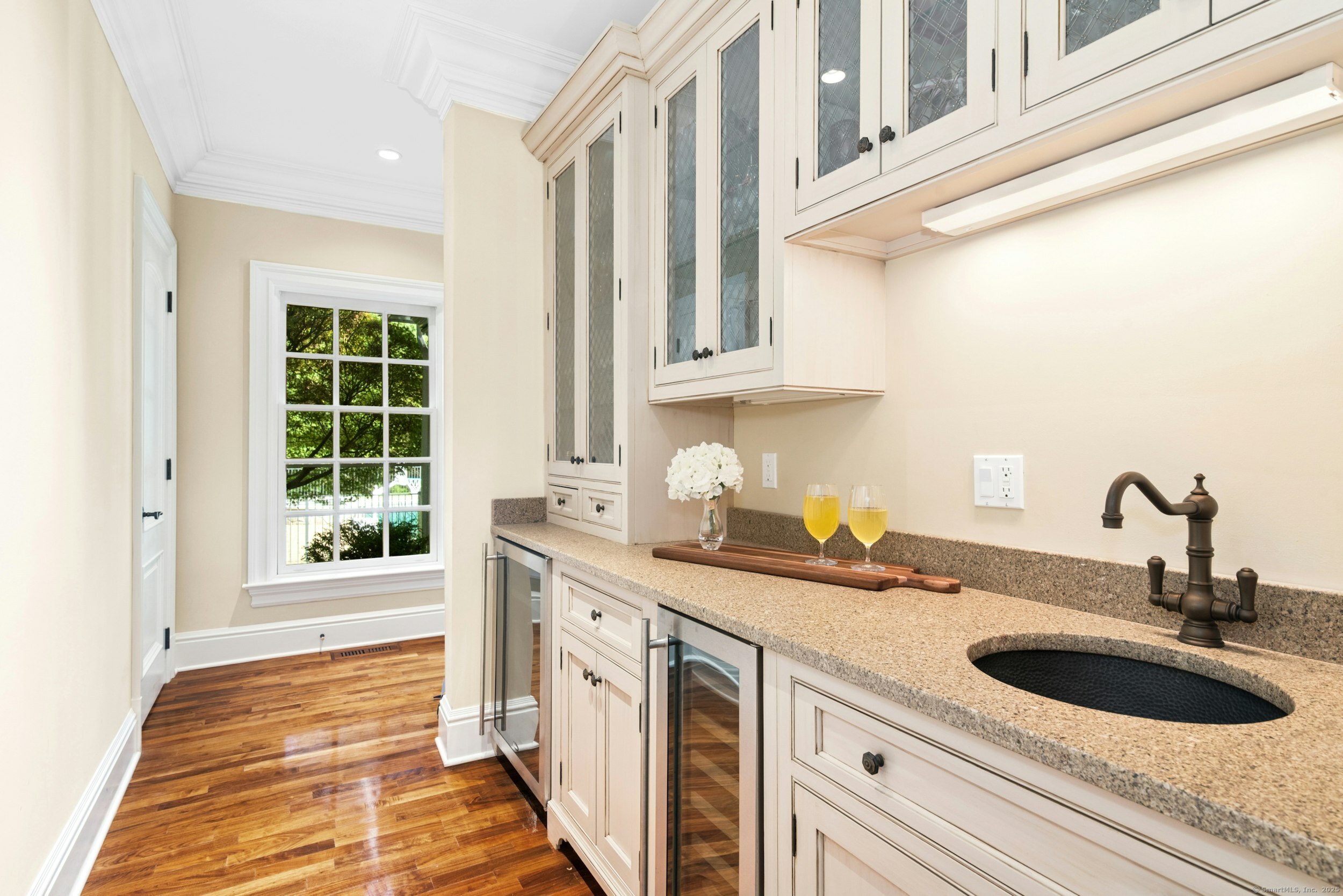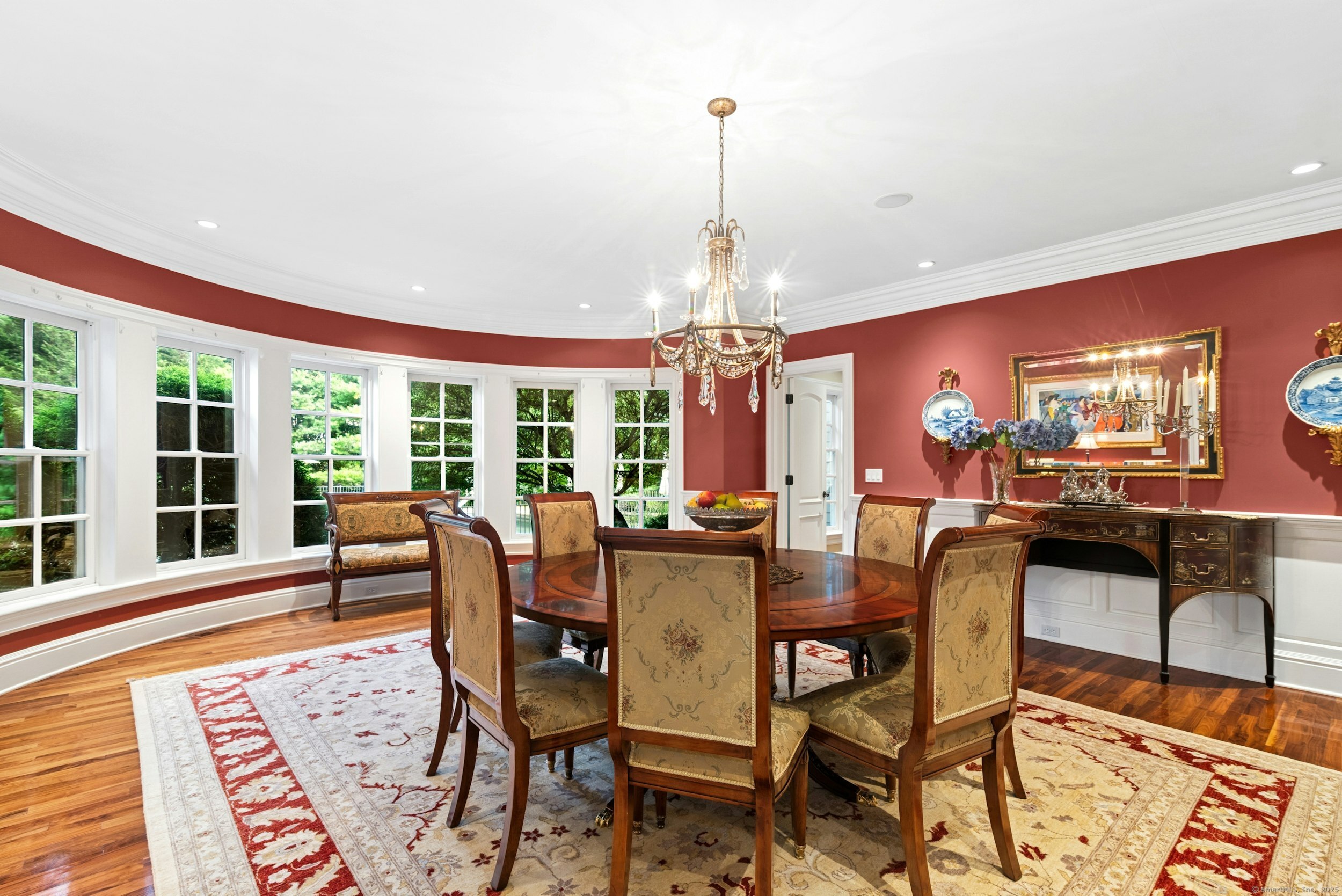Prime Weston location! Set on 2.5 acres of glorious gardens and mature landscaping, this magnificent estate combines timeless sophistication with comfortable luxury. From the moment you step inside, the craftsmanship shines-rich walnut floors, exquisite millwork, and a beautiful coffered ceiling in the living room create an atmosphere of understated elegance. French doors open to two patios, inviting seamless indoor-outdoor living. The chef's kitchen is a culinary dream with four ovens, two refrigerators, two dishwashers, and professional-grade appliances, perfectly designed for entertaining. The sumptuous primary suite is a private sanctuary with a sitting room, balcony, dressing room, and spa-worthy bath. Each en-suite bedroom with walk-in closet offers its own retreat, while the in-law suite provides private living including a spa bath, laundry, and sitting room with fireplace. The finished lower level includes a custom cherry bar, exercise studio, and space for media or wine cellar. Outdoors, a heated Gunite pool and spa await. With a perfect space for every person and every activity, thoughtfully appointed interiors, and a serene,convenient location near schools, the Merritt, and Westport, this estate offers unparalleled elegance.