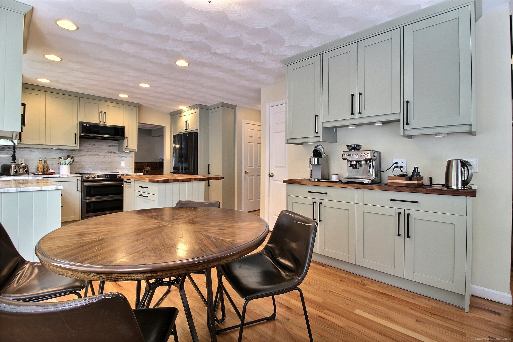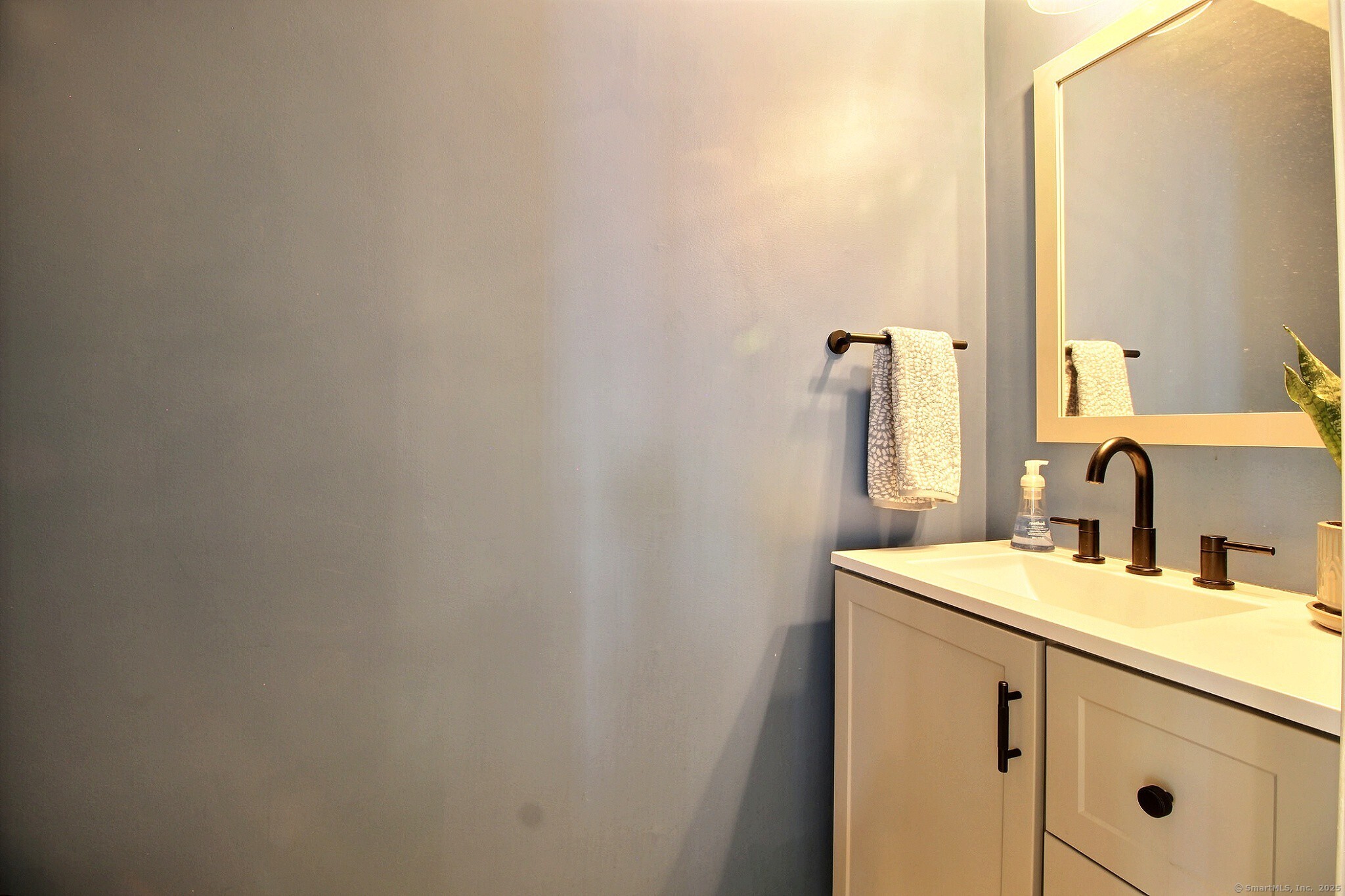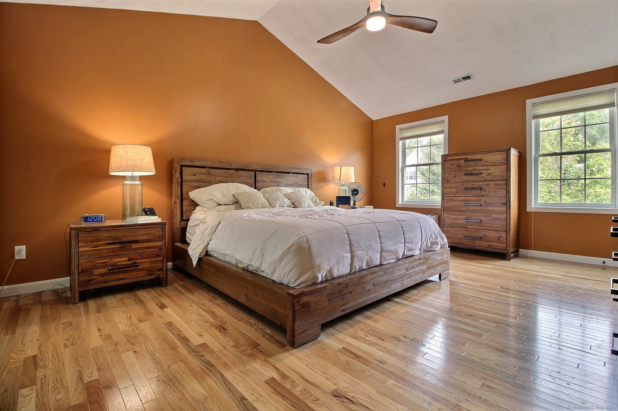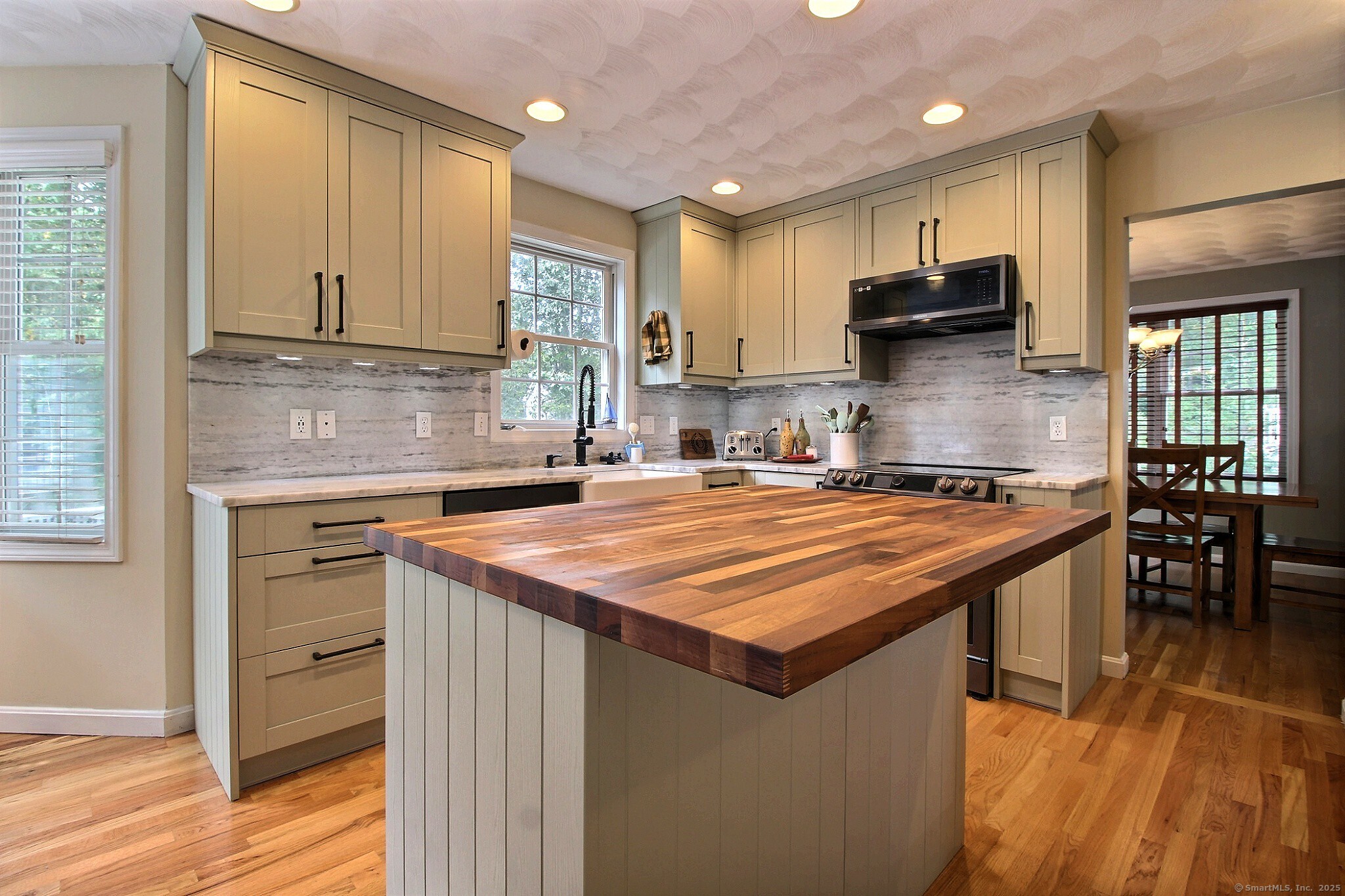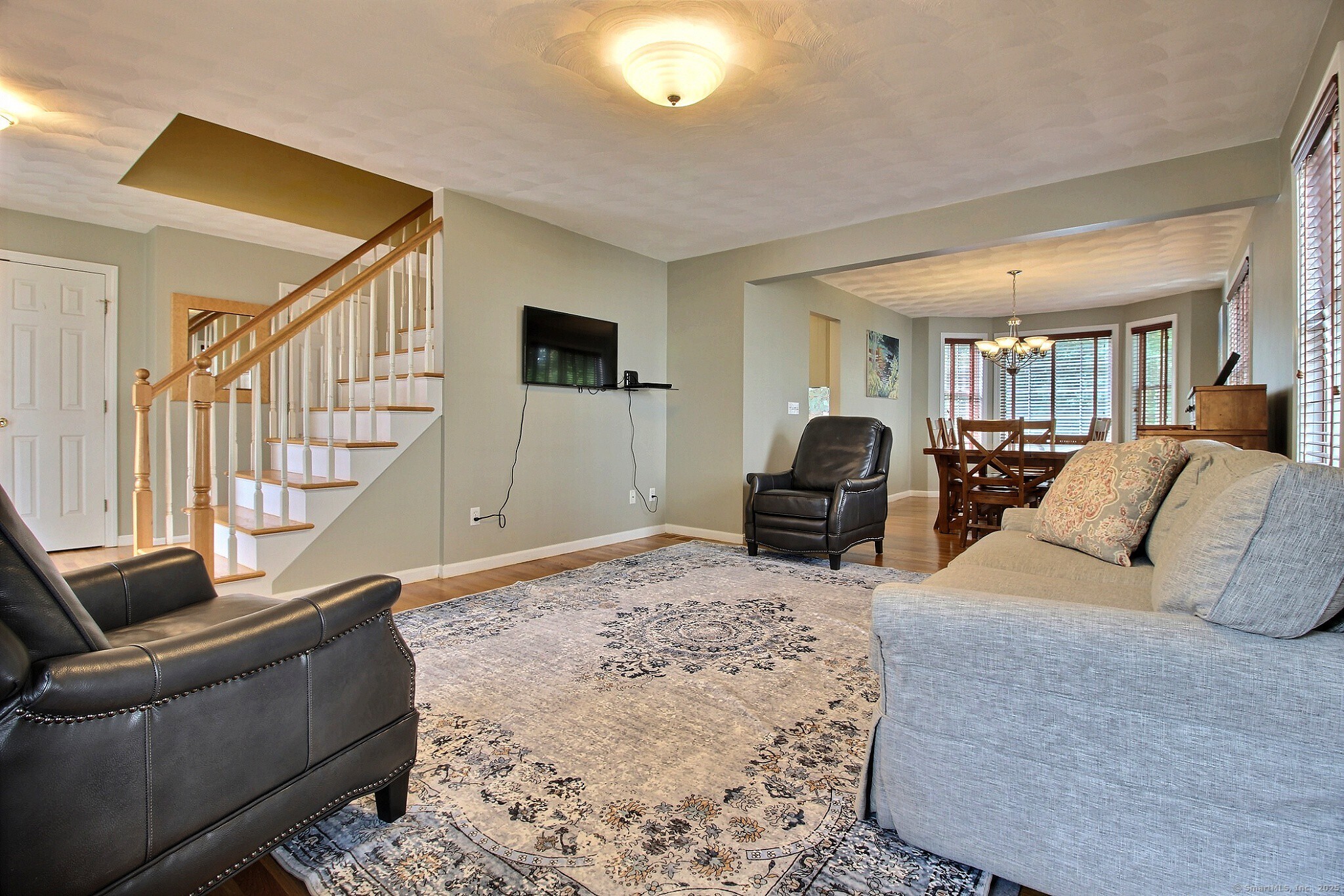 Pristine 3BR, 2.5BA Colonial tucked on a quiet cul-de-sac in one of the area's most desirable neighborhoods. A welcoming covered front porch overlooks the neighborhood setting. Step inside to find gleaming hardwood floors and a modern custom eat-in kitchen equipped with stainless steel appliances, quartz & walnut countertops, a farmer's sink, coffee bar, and abundant cabinetry. The kitchen opens to a generous family room with vaulted ceilings, a fireplace, and direct access to the 2-tiered deck and above-ground pool-perfect for entertaining or relaxing while enjoying the private, fenced yard framed by mature trees. The bright living room sits to the right of the entry and flows into a dining room highlighted by a curved accent wall and plantation-shuttered windows. Upstairs, the spacious primary suite features vaulted ceilings, a soaking tub, separate shower, and double vanity. Two additional bedrooms and another full bath complete the upper level, with ceiling fans throughout. The lower level offers versatile space for a rec room, gym, or storage. Additional highlights include a 2-car garage, owned Tesla solar roof panels with Powerwall for battery back up, electric car charger, newer roof, and a storage shed. Located close to the shoreline, I-95, shopping & dining, this move-in-ready home combines comfort, efficiency, and modern style in a sought-after location.