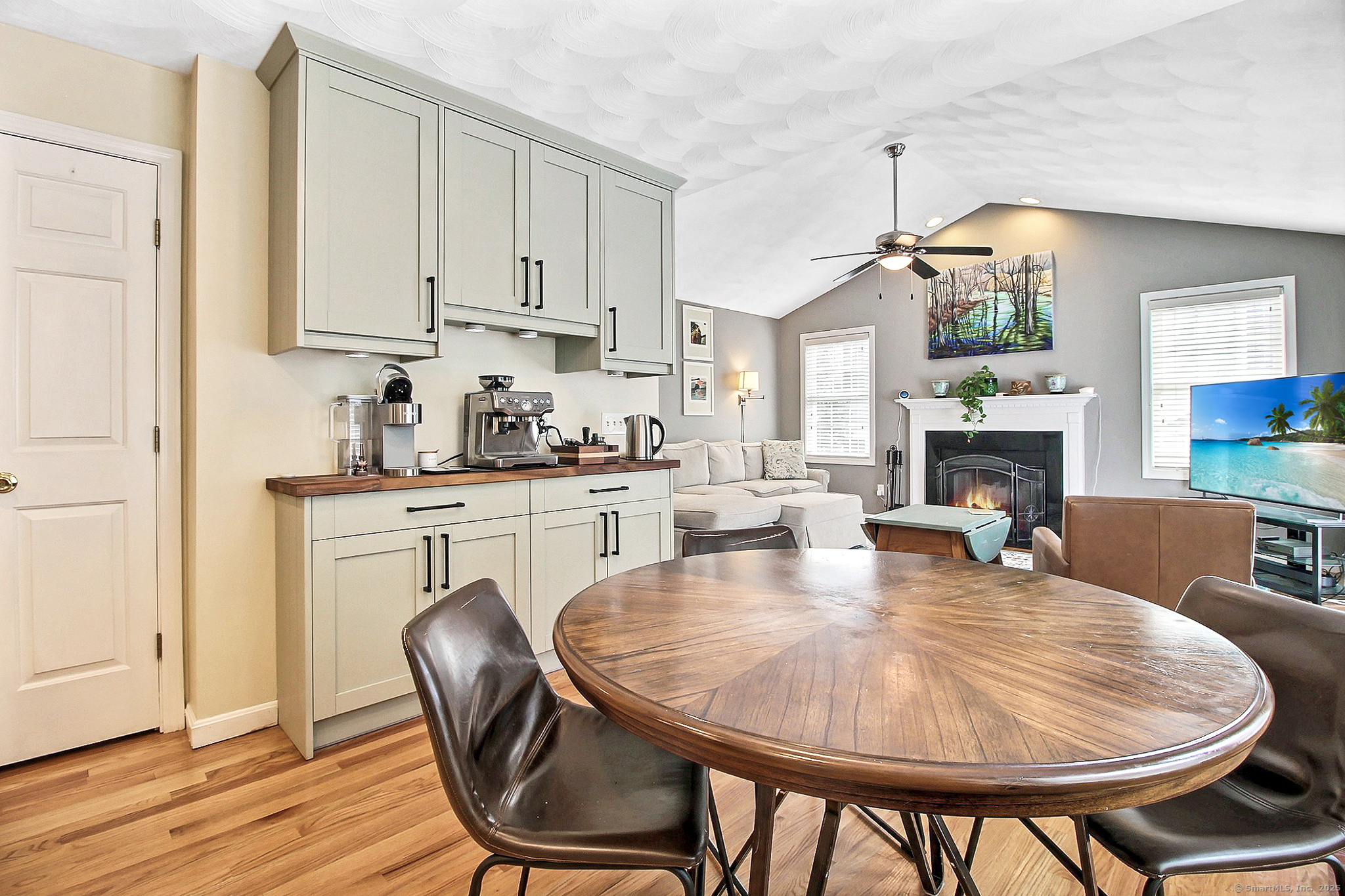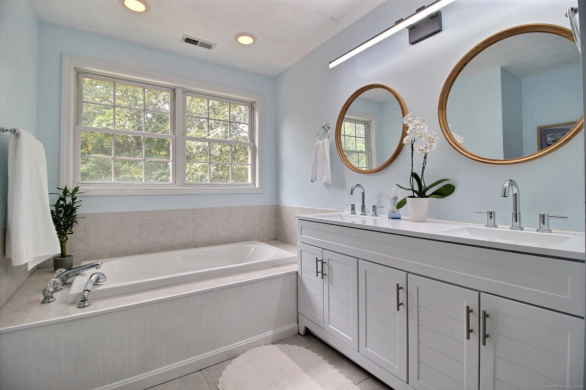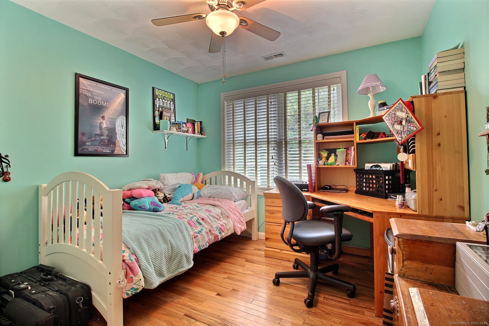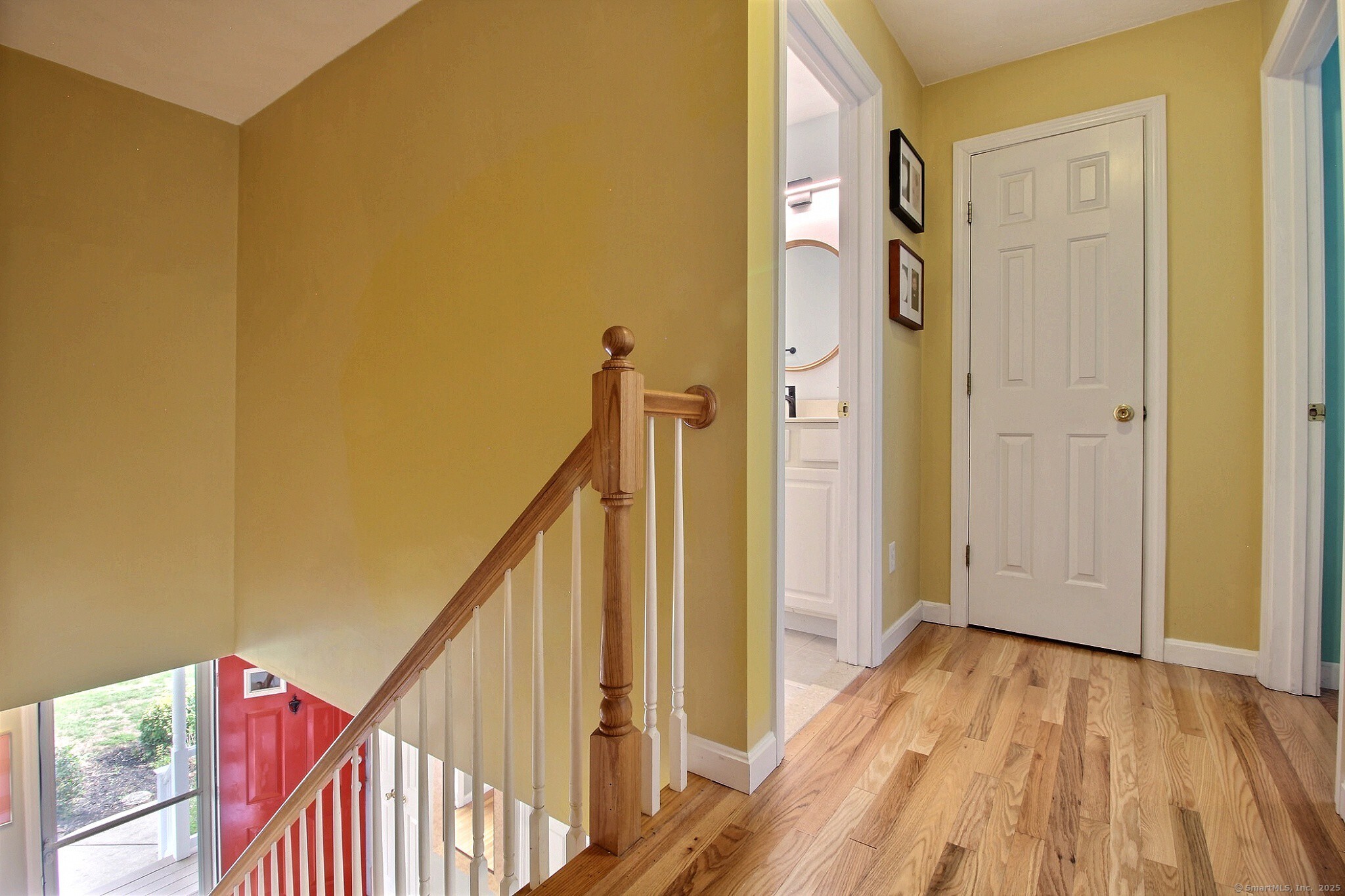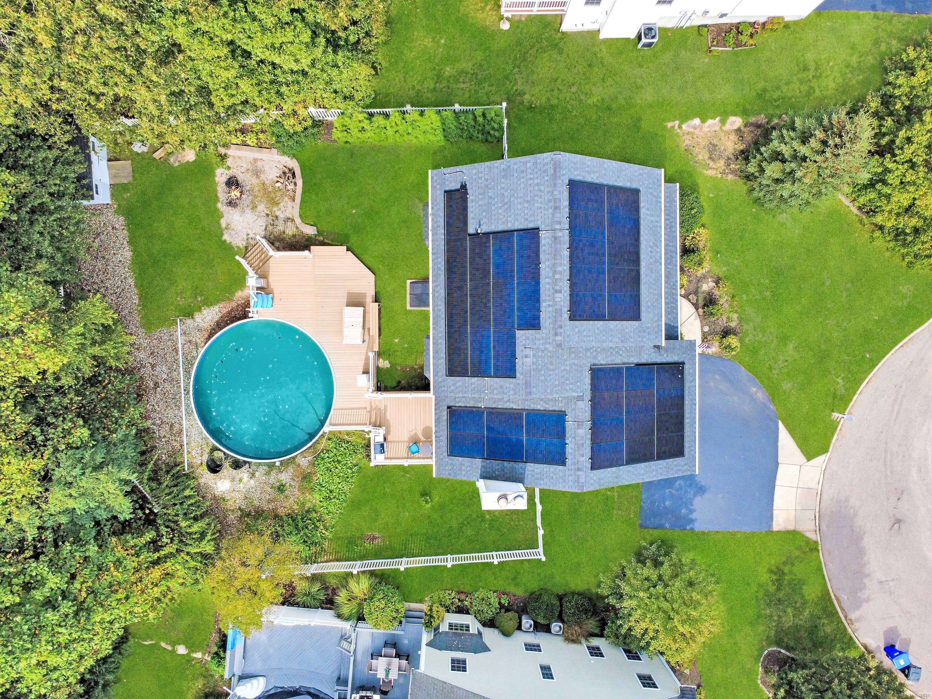 Pristine 3BR, 2.5BA Colonial tucked on a quiet cul-de-sac in one of the area's most desirable neighborhoods. A welcoming covered front porch overlooks the neighborhood setting. Step inside to find gleaming hardwood floors and a modern custom eat-in kitchen equipped with stainless steel appliances, quartz & walnut countertops, a farmer's sink, coffee bar, and abundant cabinetry. The kitchen opens to a generous family room with vaulted ceilings, a fireplace, and direct access to the 2-tiered deck and above-ground pool-perfect for entertaining or relaxing while enjoying the private, fenced yard framed by mature trees. The bright living room sits to the right of the entry and flows into a dining room highlighted by a curved accent wall and plantation-shuttered windows. Upstairs, the spacious primary suite features vaulted ceilings, a soaking tub, separate shower, and double vanity. Two additional bedrooms and another full bath complete the upper level, with ceiling fans throughout. The lower level offers versatile space for a rec room, gym, or storage. Additional highlights include a 2-car garage, owned Tesla solar roof panels with Powerwall for battery back up, electric car charger, newer roof, and a storage shed. Located close to the shoreline, I-95, shopping & dining, this move-in-ready home combines comfort, efficiency, and modern style in a sought-after location.