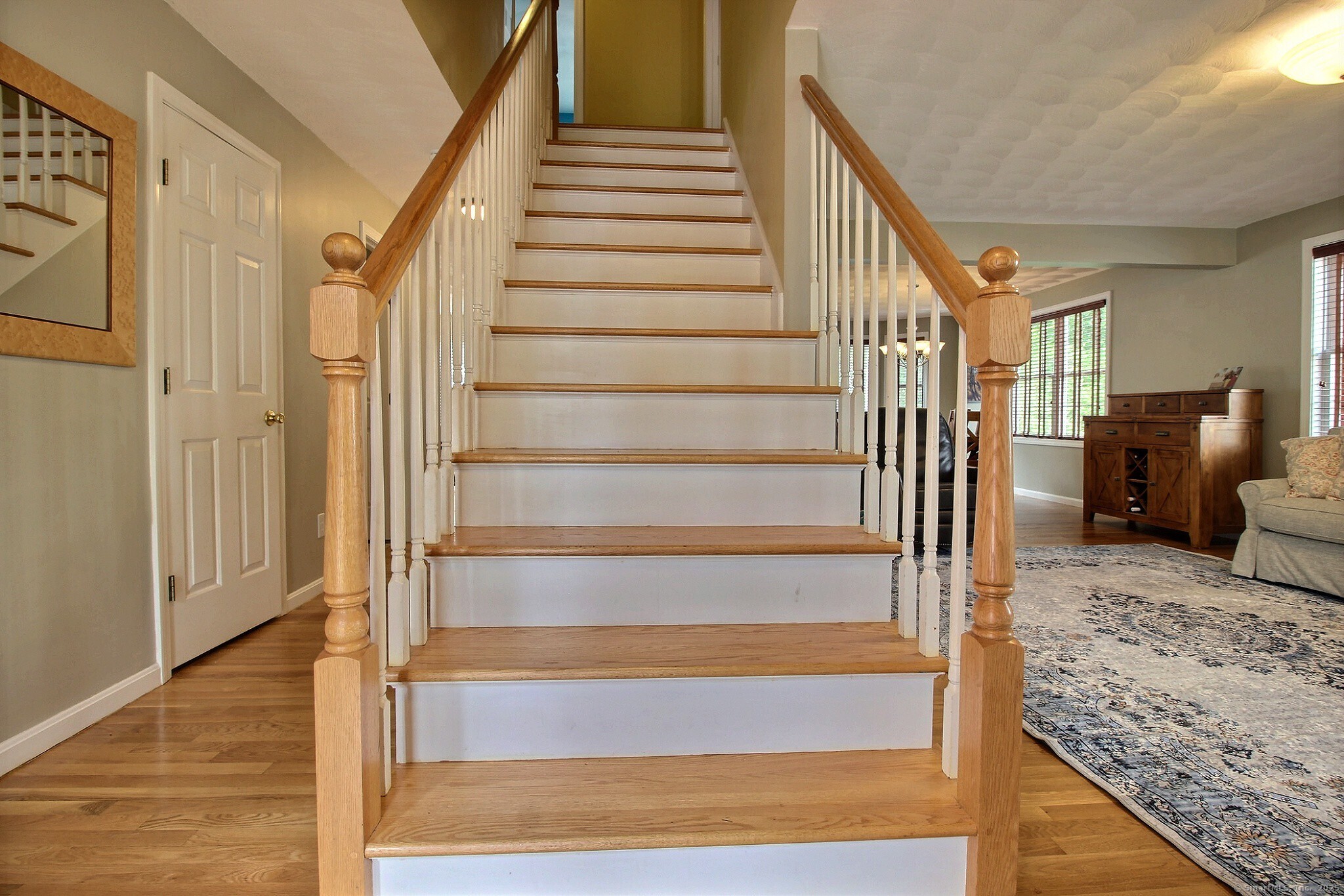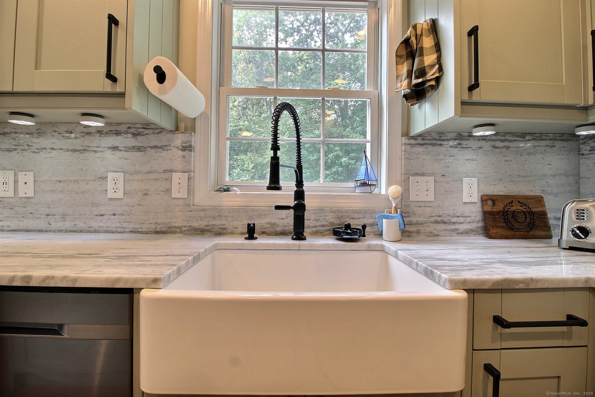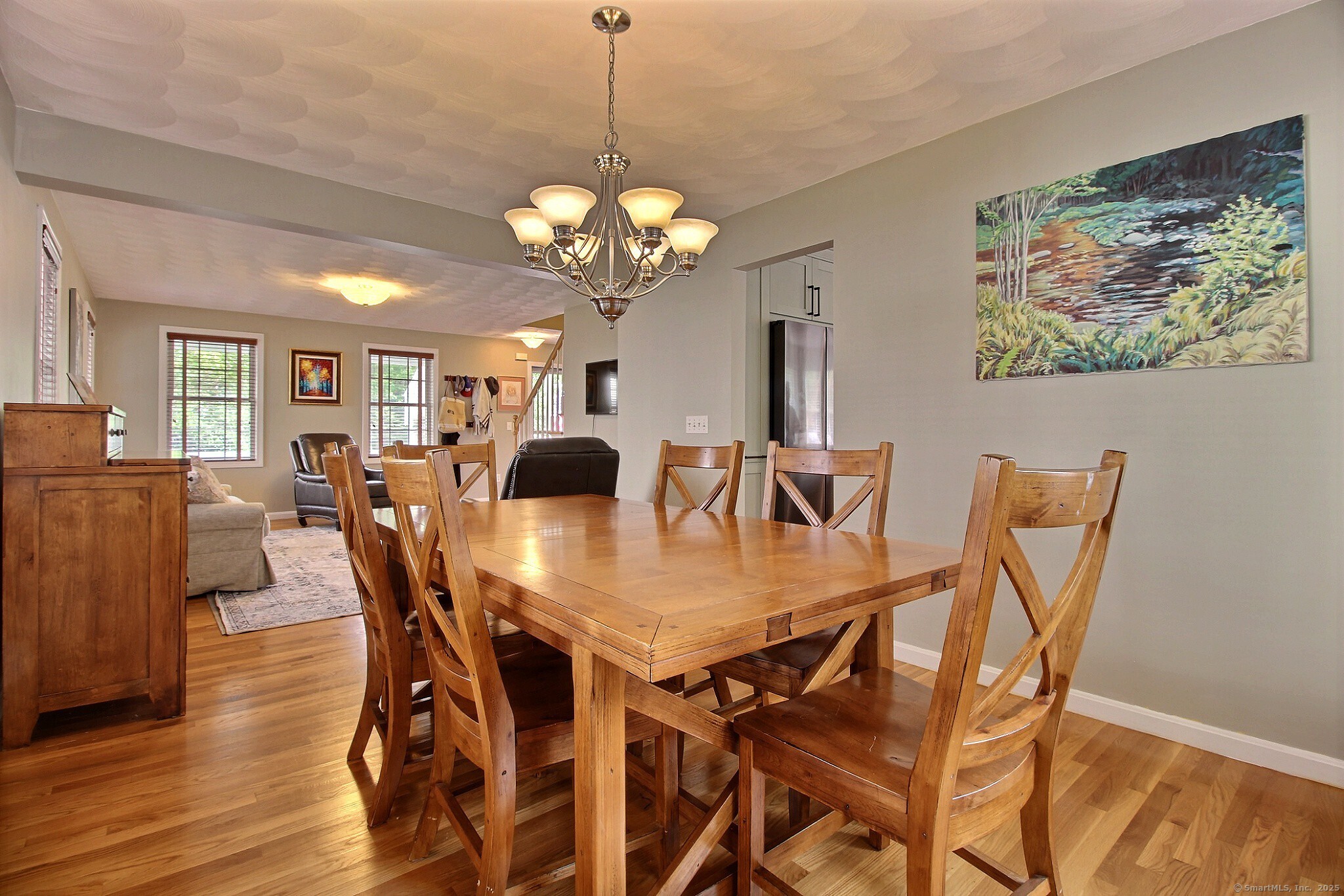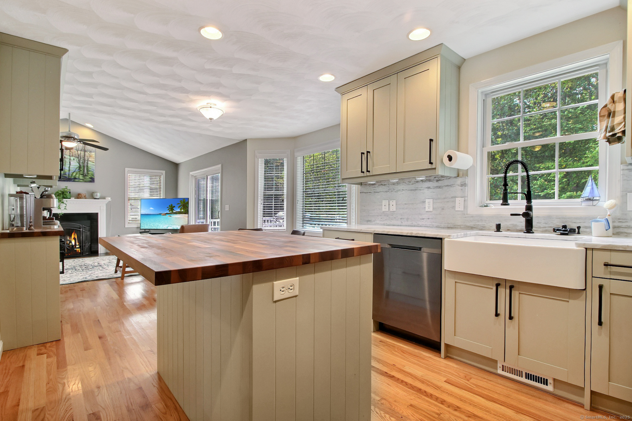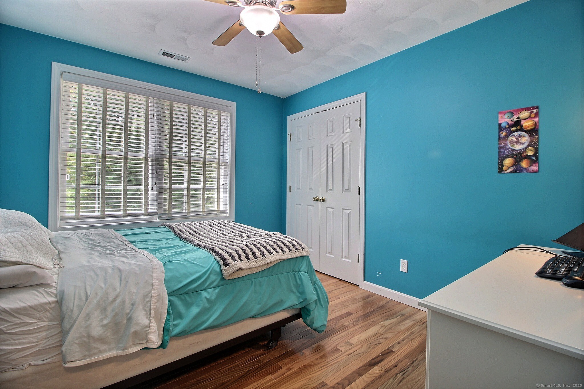 Pristine 3BR, 2.5BA Colonial tucked on a quiet cul-de-sac in one of the area's most desirable neighborhoods. A welcoming covered front porch overlooks the neighborhood setting. Step inside to find gleaming hardwood floors and a modern custom eat-in kitchen equipped with stainless steel appliances, quartz & walnut countertops, a farmer's sink, coffee bar, and abundant cabinetry. The kitchen opens to a generous family room with vaulted ceilings, a fireplace, and direct access to the 2-tiered deck and above-ground pool-perfect for entertaining or relaxing while enjoying the private, fenced yard framed by mature trees. The bright living room sits to the right of the entry and flows into a dining room highlighted by a curved accent wall and plantation-shuttered windows. Upstairs, the spacious primary suite features vaulted ceilings, a soaking tub, separate shower, and double vanity. Two additional bedrooms and another full bath complete the upper level, with ceiling fans throughout. The lower level offers versatile space for a rec room, gym, or storage. Additional highlights include a 2-car garage, owned Tesla solar roof panels with Powerwall for battery back up, electric car charger, newer roof, and a storage shed. Located close to the shoreline, I-95, shopping & dining, this move-in-ready home combines comfort, efficiency, and modern style in a sought-after location.