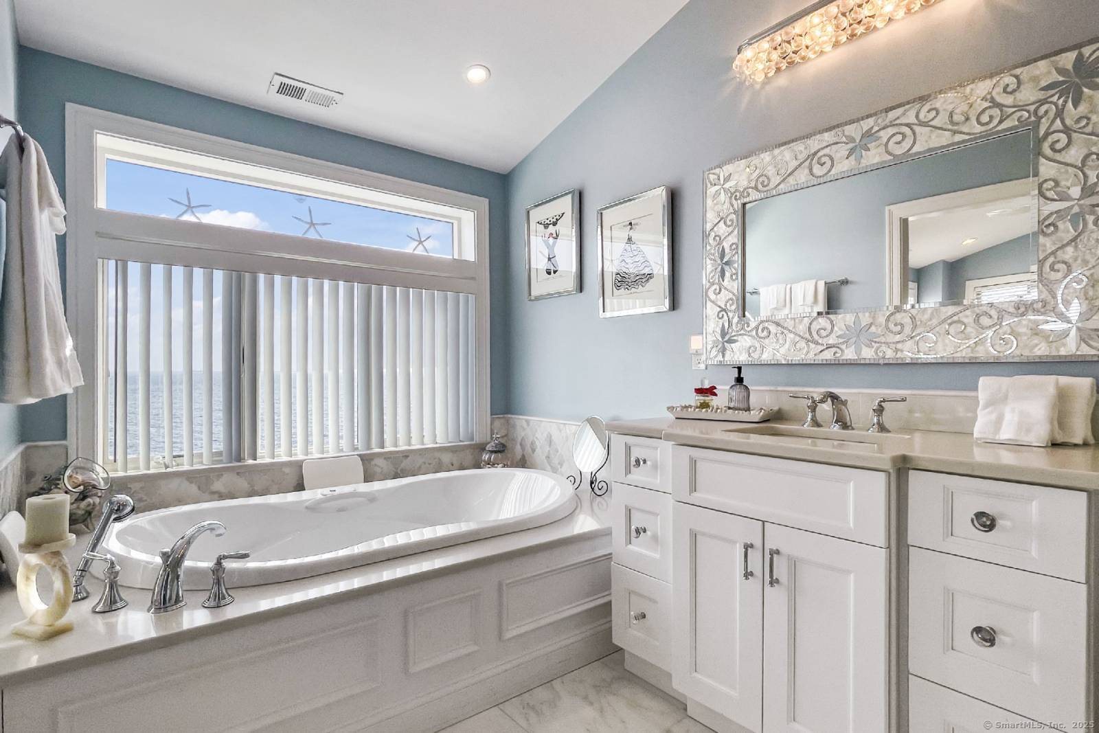 Direct Waterfront - Long Island Sound | Available December 1st Enjoy breathtaking sunrises and sunsets from this custom direct waterfront home overlooking Long Island Sound. From the moment you open the front door, you are greeted with stunning water views and a bright, open floor plan. The chef's kitchen features top-of-the-line GE Monogram stainless steel appliances, granite countertops, and an expansive center island with seating for six. Flow seamlessly into the dining area and spacious living room, highlighted by a HeatGlo gas fireplace and double sliders that open to a Trex deck-perfect for entertaining or simply relaxing while taking in the panoramic views. Upstairs, the waterfront views continue, providing a serene retreat. This home combines luxury and comfort, offering the ultimate coastal lifestyle.