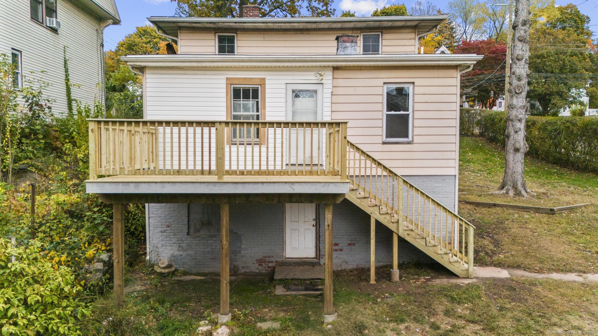 Welcome to 760 Broad Street in Meriden! This charming Colonial-style home, built in 1895, offers the perfect blend of classic character and modern convenience. With 1,664 sq ft of living space, this home provides ample room to make it your own. Featuring three bedrooms and 2 full bathrooms, the main level includes a spacious kitchen, a combined living and dining area, a convenient full bath, and one bedroom. The laundry is also located on the first floor for added convenience. Upstairs, you'll find two generously sized bedrooms that share a full bathroom. The flexible layout is ideal for families, guests, or home office needs. The unfinished basement provides plenty of storage space, while the home's prime location puts you close to local amenities, transportation, and community services. Don't miss the opportunity to add your personal touch to this well-positioned home! NEW DECK AND NEW ROOF with mostly new plywood!
