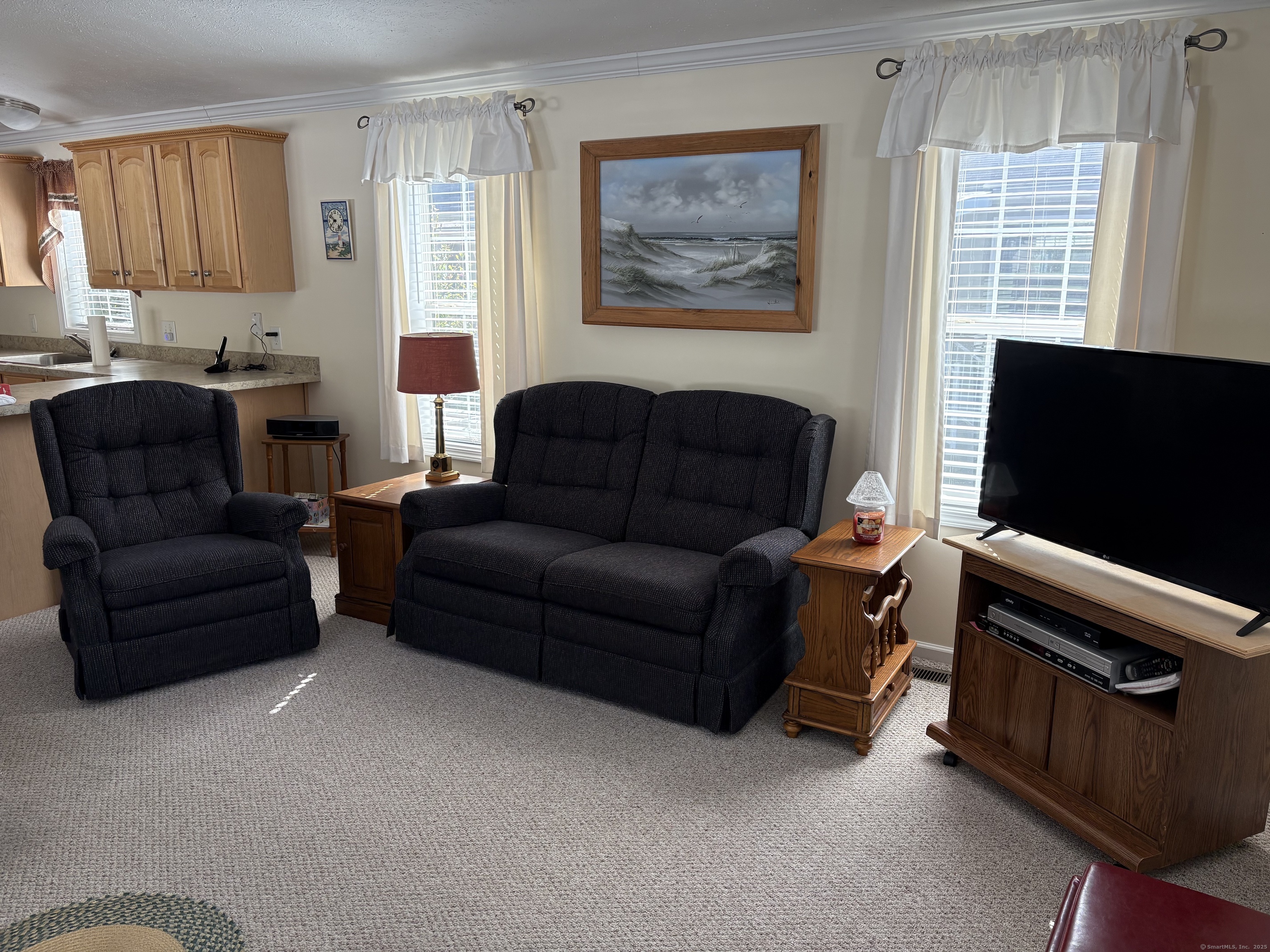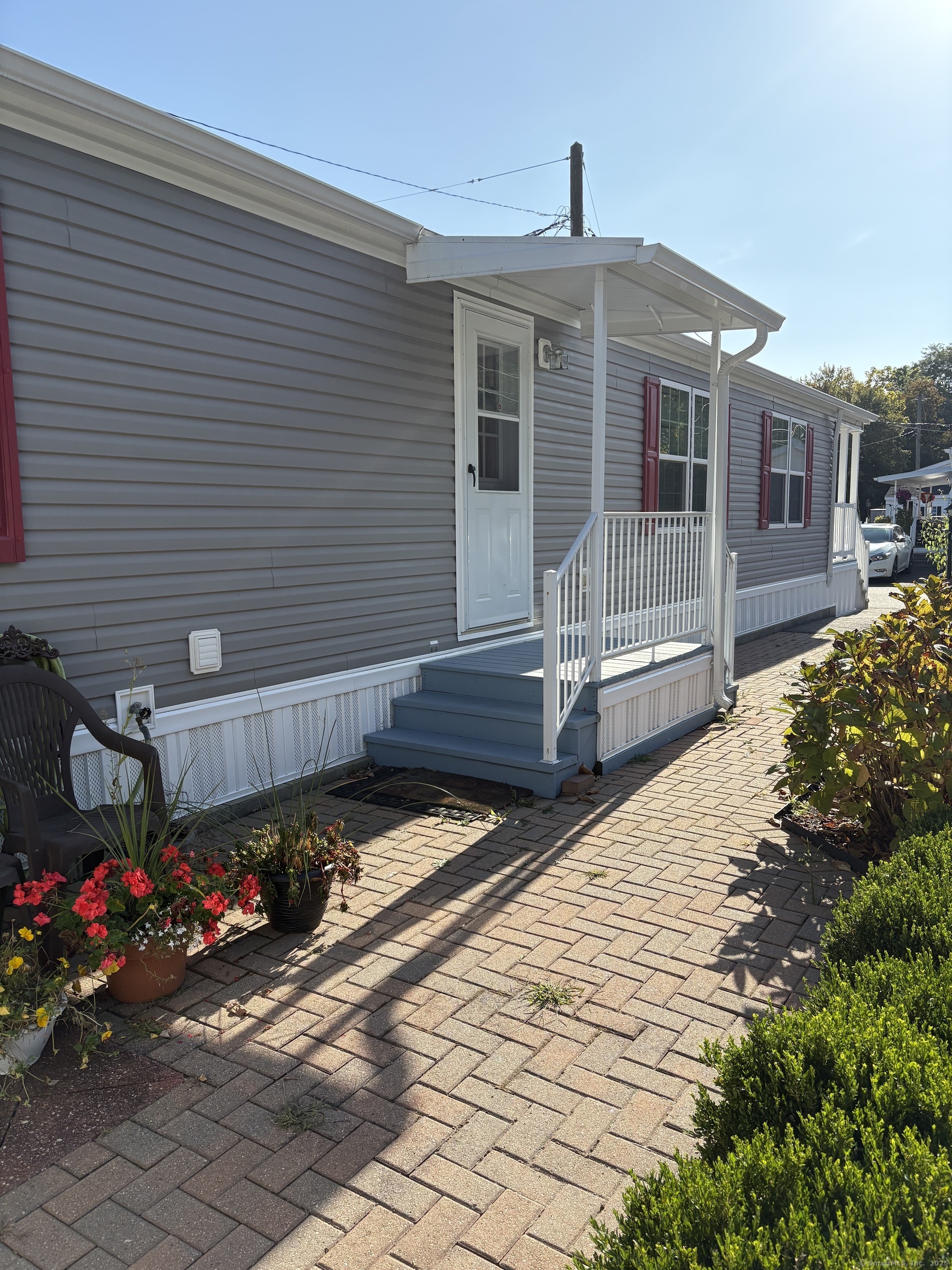 Desirable 55+ community, one owner home, lovingly cared for. 2 bedrooms, eat in kitchen, lots of windows. Sweet front porch and side yard. Nice shed for extra storage. Off street parking. End unit! This is a great home and will not last. SUN APPROVAL REQUIRED FOR ALL RESIDENTS. LAND LEASE NOT HOA