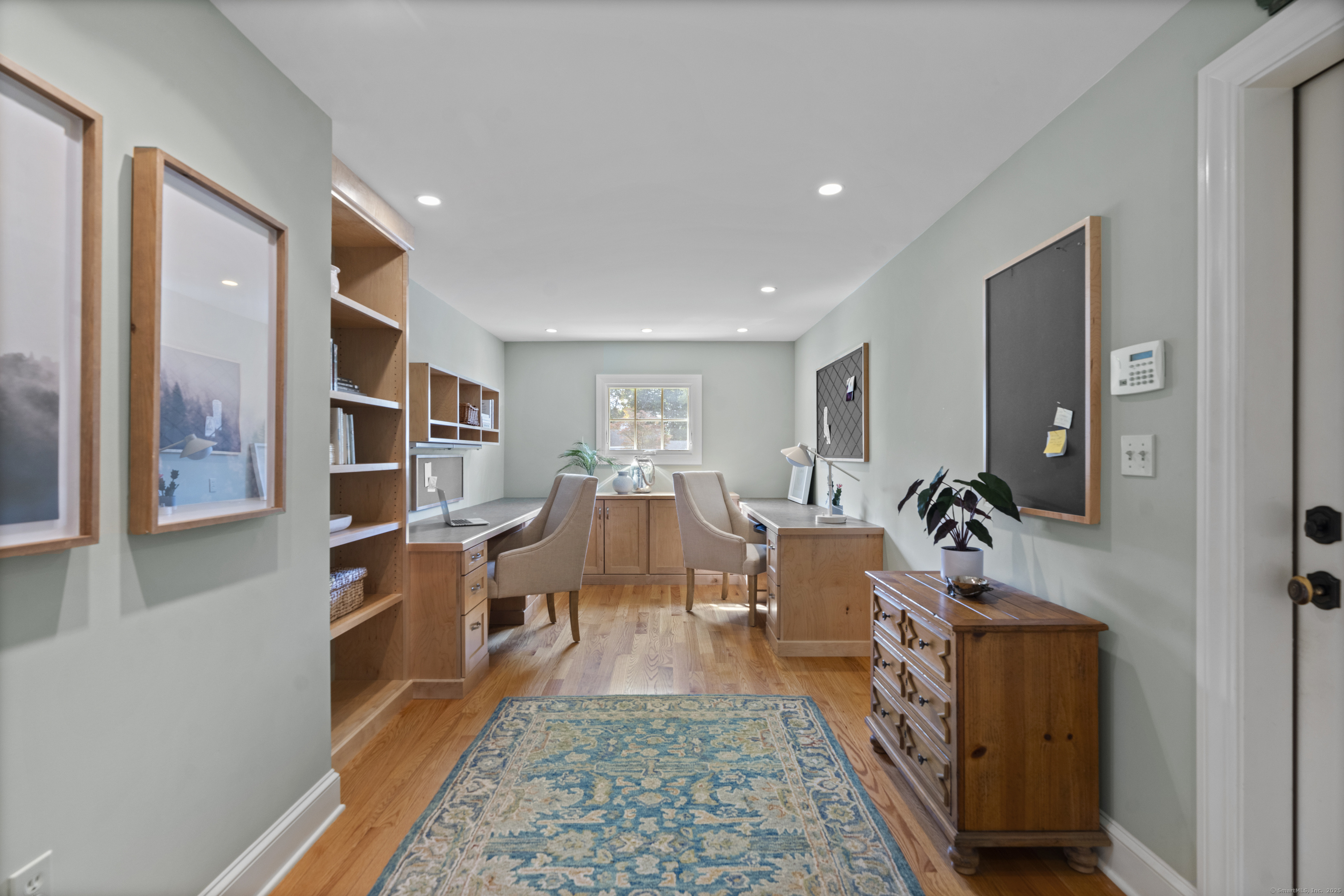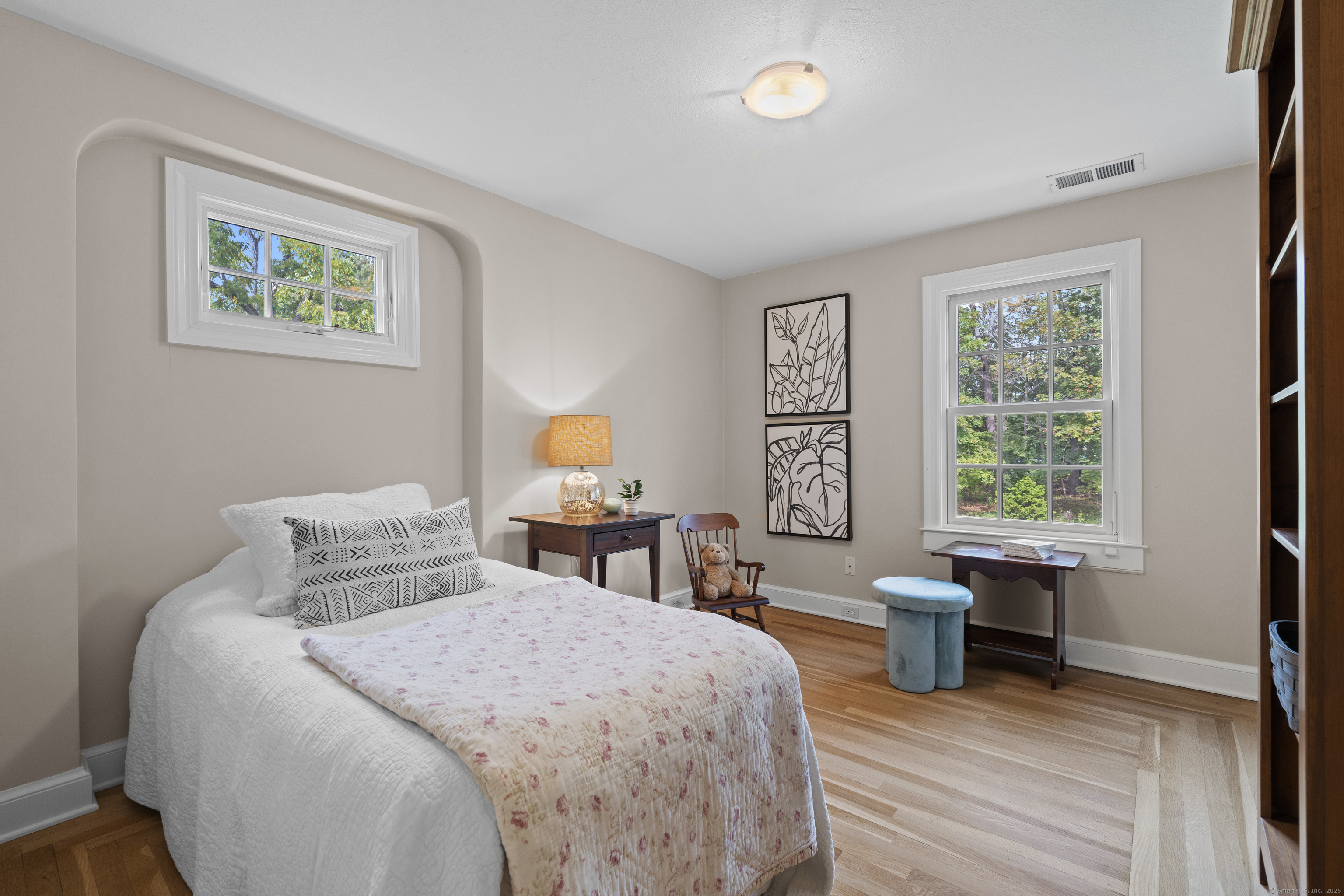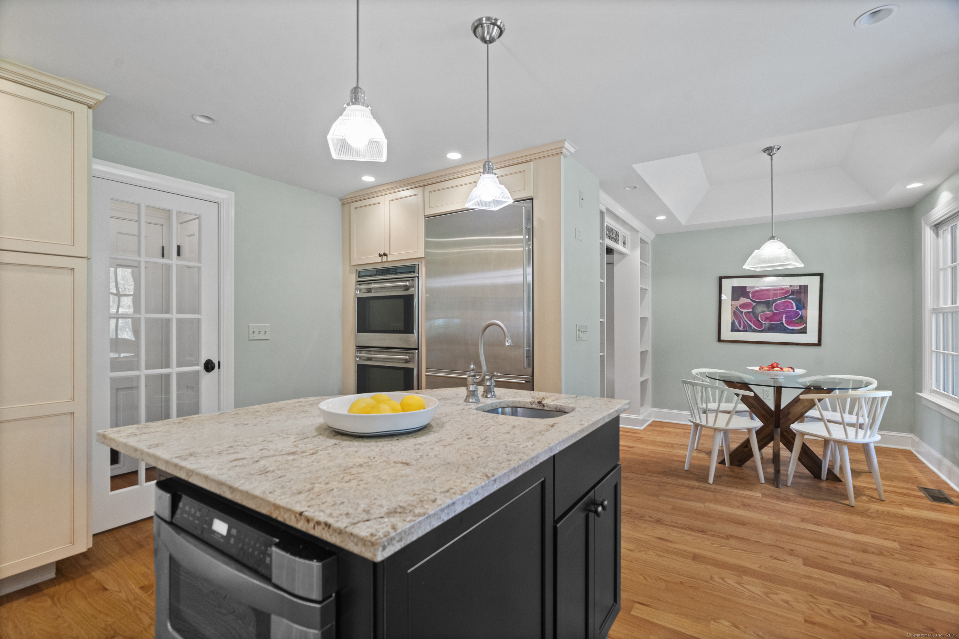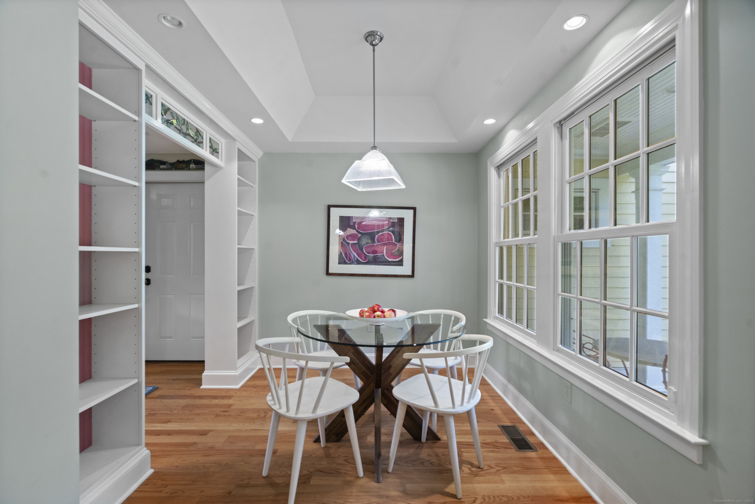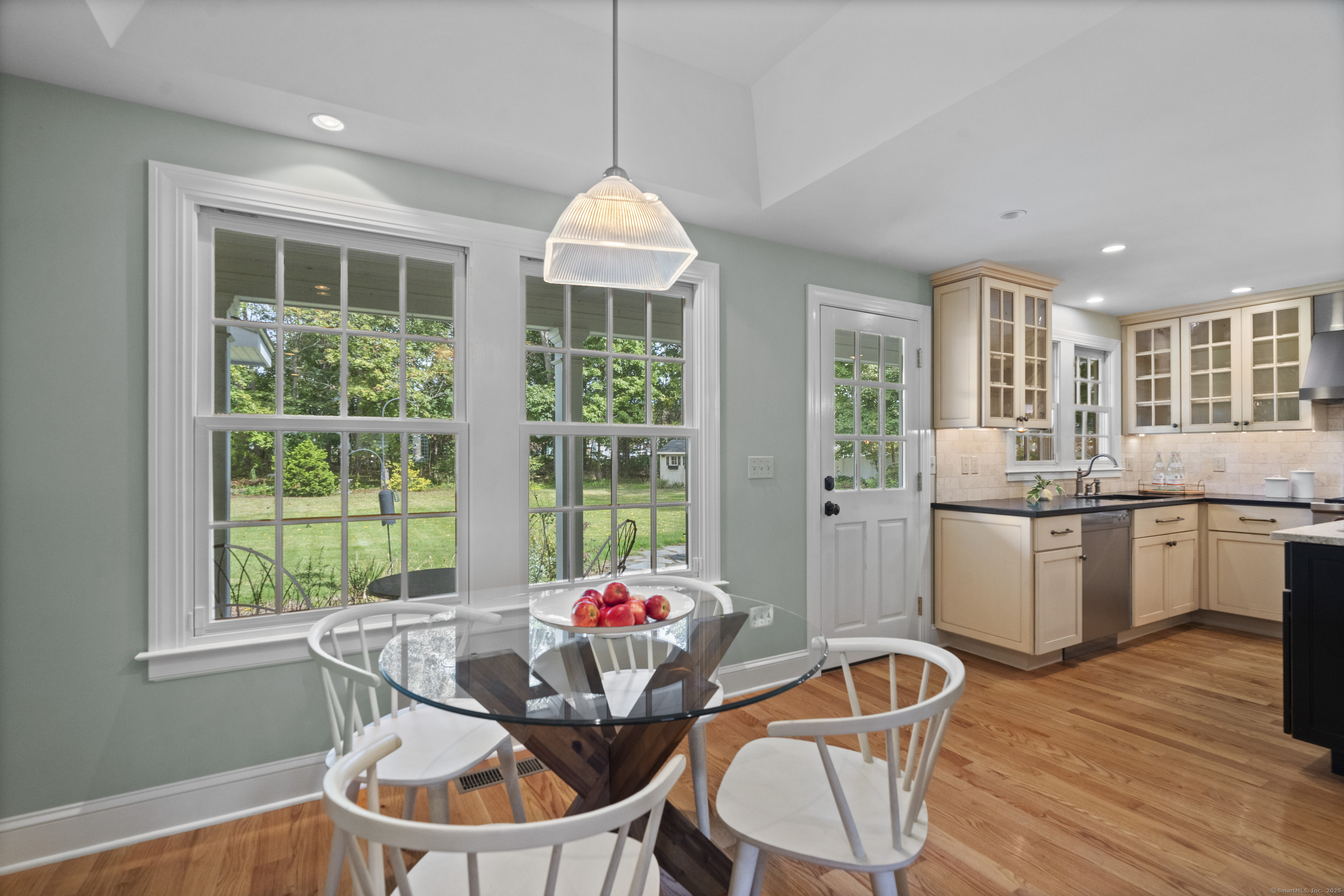 Stunning Custom Colonial w/ 3 beds & 2.5 baths, ideally located in the sought-after South End of Cheshire. This elegant home features over 2,200 sq ft of living space w/ abundant natural light, HW floors & custom details throughout. The formal living room showcases a beautiful wood-burning FP, custom built-in bookshelves, charming window seats & classic archways. A formal dining room provides an inviting space for entertaining & opens through a French door to an impressive kitchen with breakfast nook overlooking the backyard. The upscale kitchen is a chef's dream, featuring high-end Wolf appliances (cooktop and double oven), a center island with bar seating & generous cabinet & counter space. Completing the main level is an office w/ custom built-ins & renovated 1/2 bath. Upstairs, the spacious primary suite boasts a wall of custom white built-ins, a walk-in closet & a beautifully tiled en-suite bath with a walk-in shower. Two additional large bedrooms share a full bath. Laundry is conveniently located on the 2nd floor. Set on a spacious 0.65-acre lot, this home offers a level front & backyard-ideal for gardening enthusiasts or anyone who loves spending time outdoors. Additional highlights include a 2 car attached garage, large wood shop & a newer hot water heater (2025). Enjoy a prime location just steps from Cheshire High School, Bartlem Park, & the Town Pool, with shopping, restaurants, & easy access for all commuters. This impressive home is ready to welcome its new owner