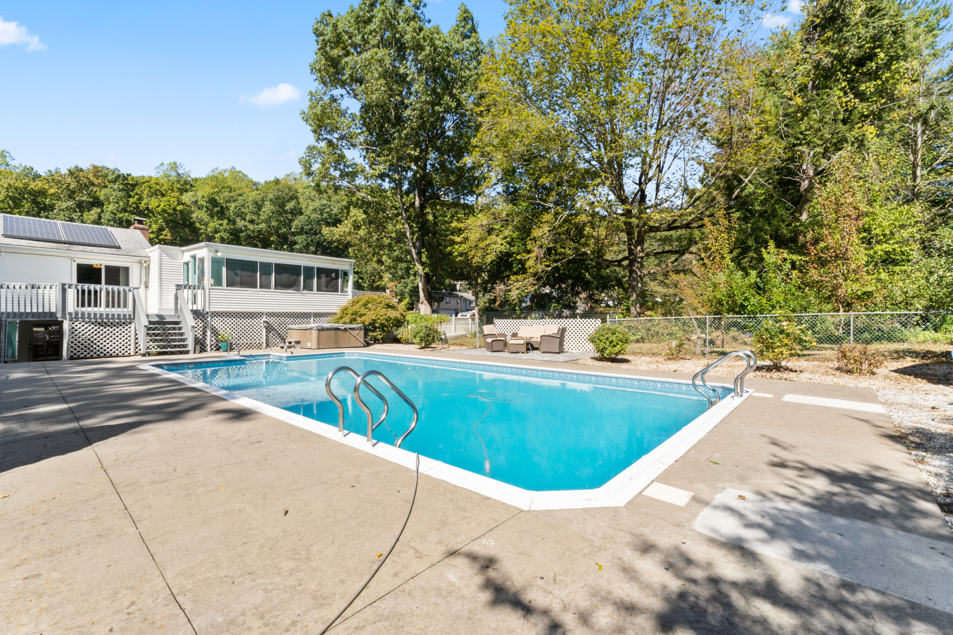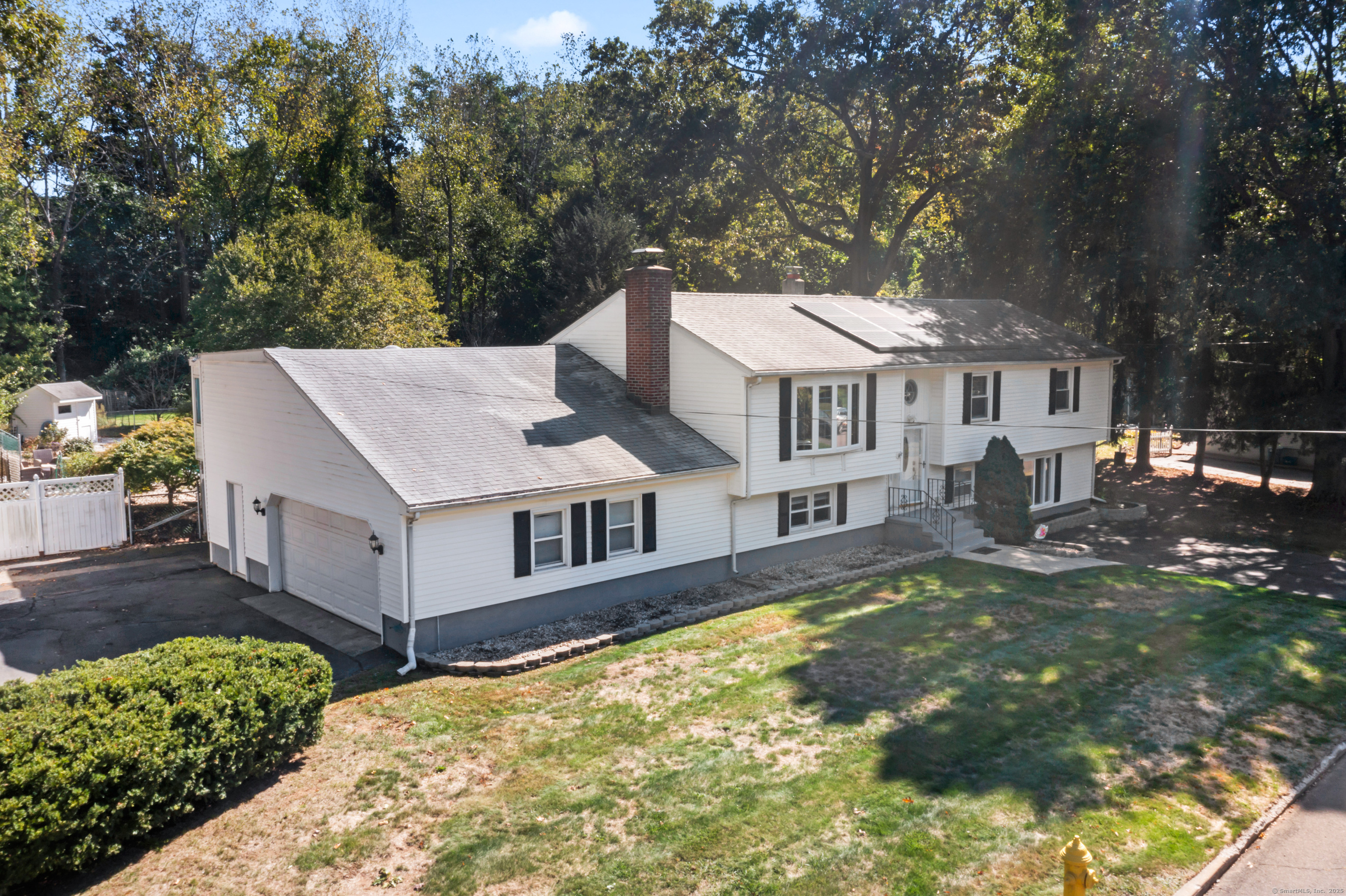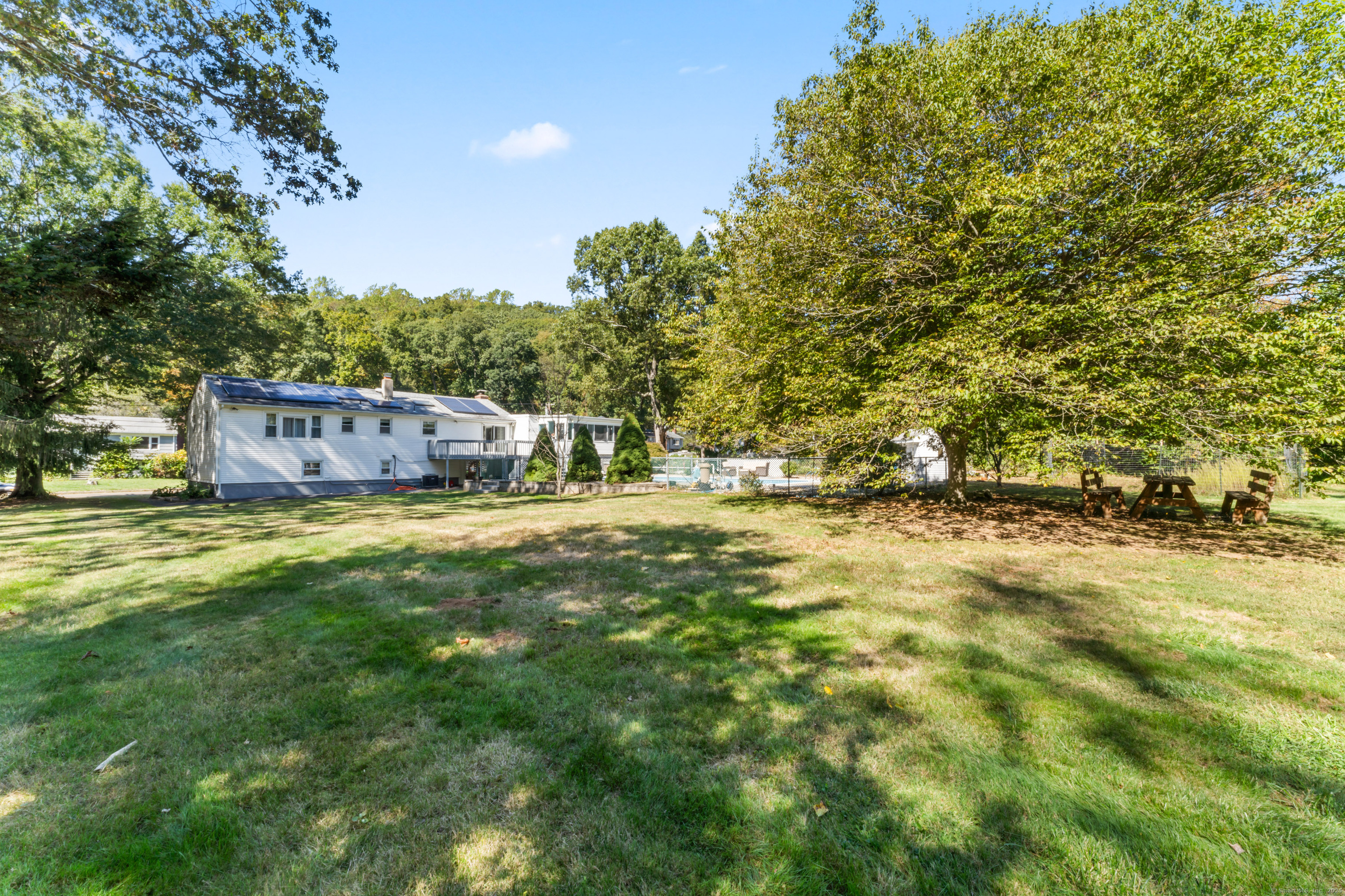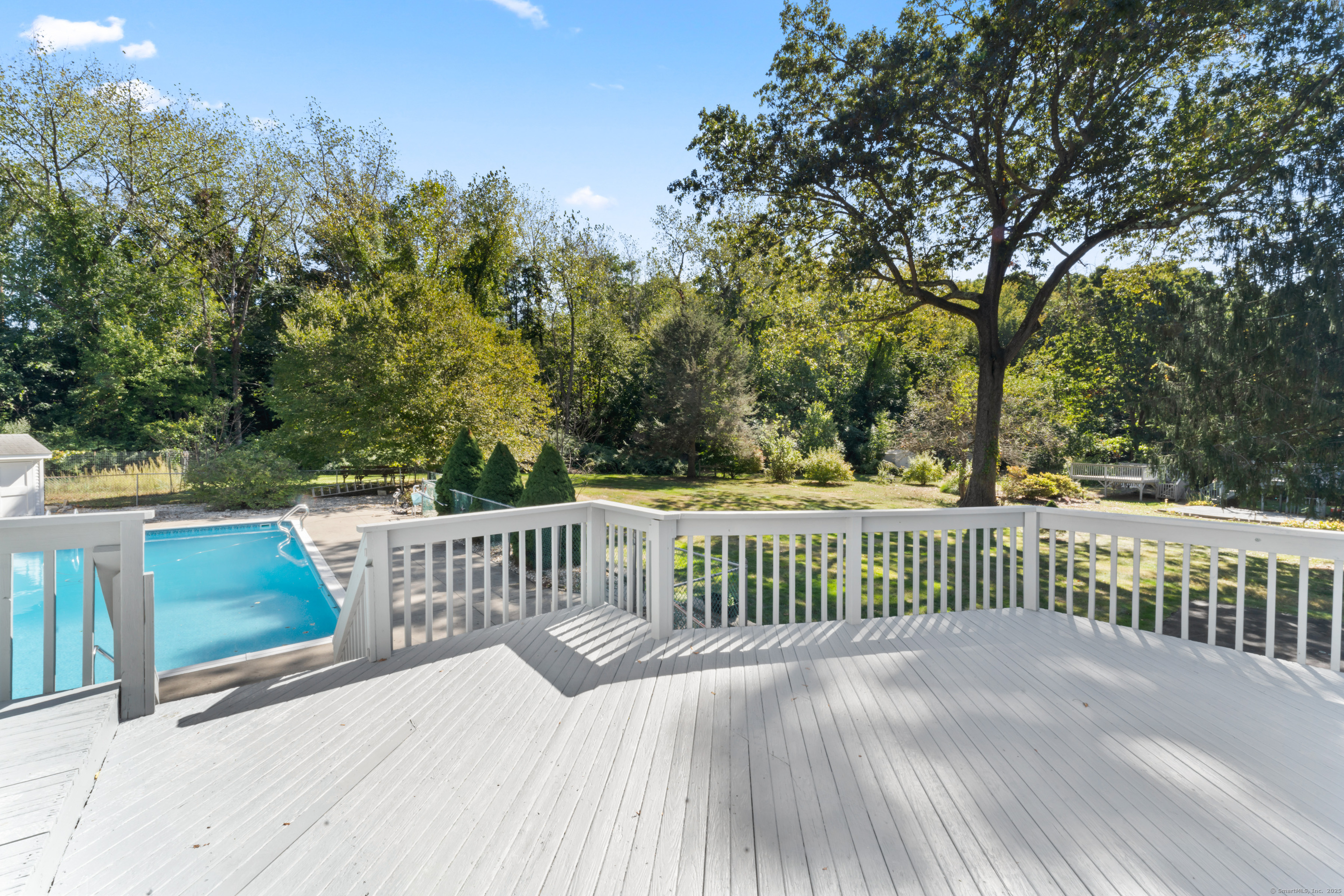 Welcome home! Discover this spacious, extended raised ranch style home located in a a highly desired neighborhood of East Haven, bordering the town of North Branford in backyard, perfectly positioned on a quiet closed road near the end of the cul-de-sac for ultimate privacy and peace. This 2600 sq ft property sits on a generous 0.63-acre lot, offering ample space for outdoor living and entertaining. Build in 1969 and updated thru years, it features 5-6 bedrooms (town card 4 beds), including an office that can flex as a bedroom, 3 full baths and a finished lower level, making it ideal for multi-generational living. Upper level boasts 3 bedrooms and 2 full bathrooms, kitchen, living room and dining room. Lower level includes a large, cozy family room with fireplace and walk outdoor to the backyard, additional full bathroom as well as 2-3 bedrooms, dedicated office space- perfect for remote work. Enjoy a stunning 20x40 inground pool with brand new liner,skimmer lines and pump. The beautifully maintained backyard with fruit trees is designed for hosting large gatherings. Extended 2 car attached garage has a lot of room for storage inside and above(with entry from the sunroom next to the deck). Central air conditioning has a brand-new compressor for efficient cooling plus a new water heater for reliable hot water heater year-around. Kitchen features brand-new stainless-steel appliances, including a refrigerator, range/oven, dishwasher. Hardwood and tile flooring throughout, forced