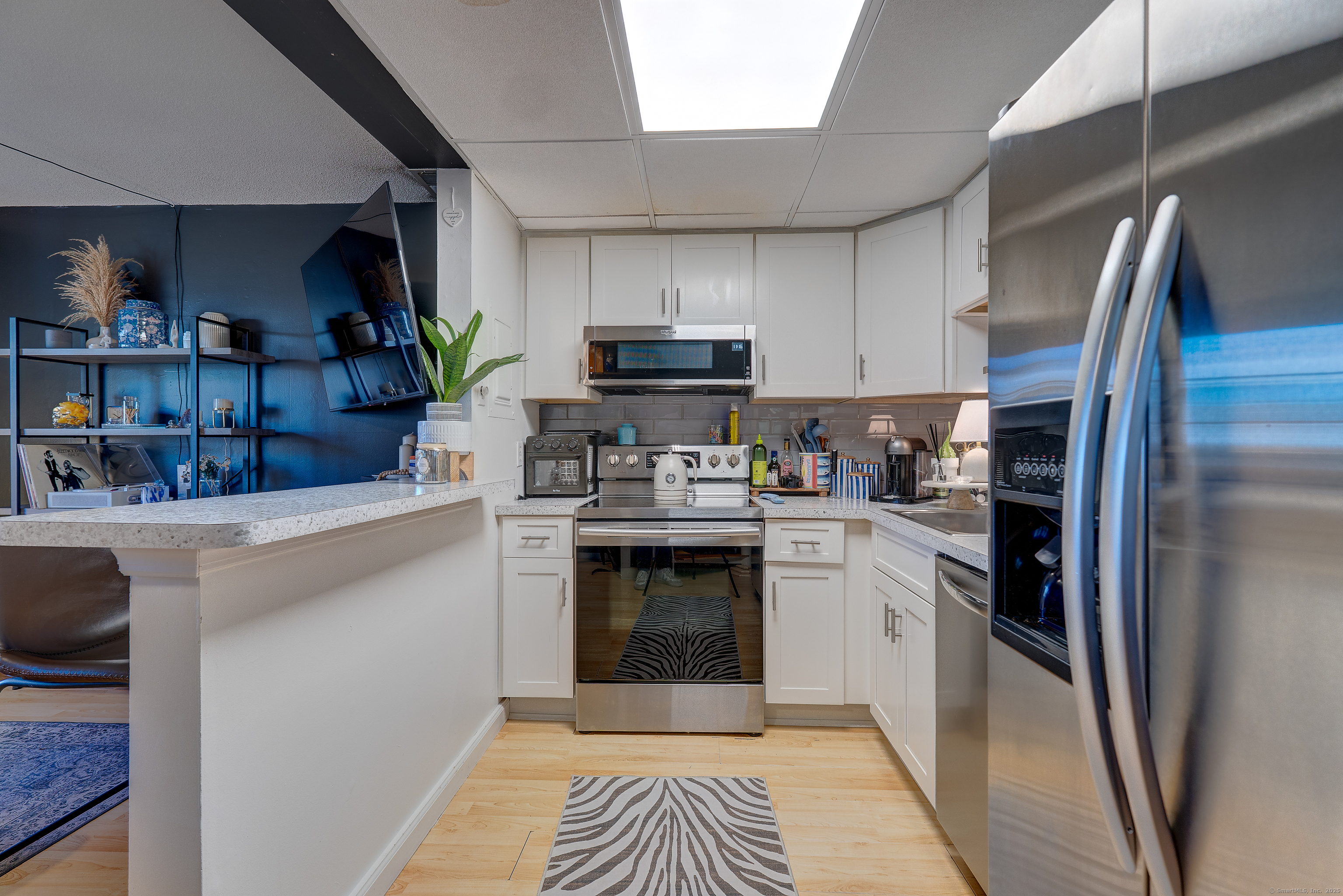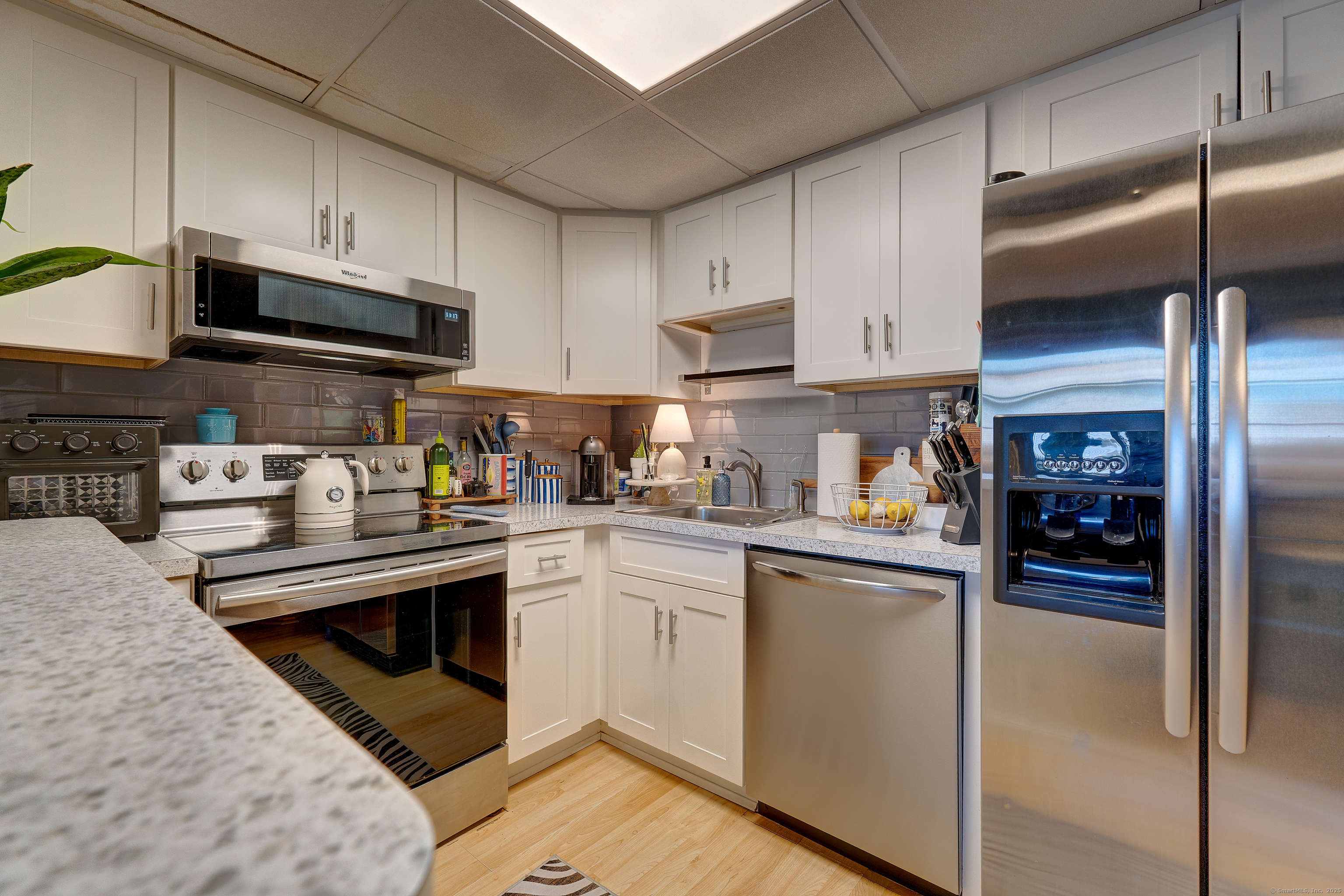 Welcome to the highly desirable Ledgeview Condominiums in East Haven! This beautifully updated and completely turn-key unit is ready for its next owner. The modern kitchen features white shaker cabinets, stainless-steel appliances, and a stunning glass mosaic backsplash. The spacious primary suite offers double closets and a glass slider leading to your own private balcony. With low HOA fees, central air, and efficient gas heat, there's nothing to do but move right in. Enjoy the summer months at the in-ground pool, or take advantage of nearby town beaches, playgrounds, and East Shore Park. The location couldn't be better - just minutes to the train station, shopping, restaurants, and downtown New Haven. Close to Yale University, Yale New Haven Hospital, and with easy access to I-95, I-91, and Route 1. Only 90 minutes to NYC and 2 hours to Boston, this condo offers the perfect blend of comfort, convenience, and lifestyle!