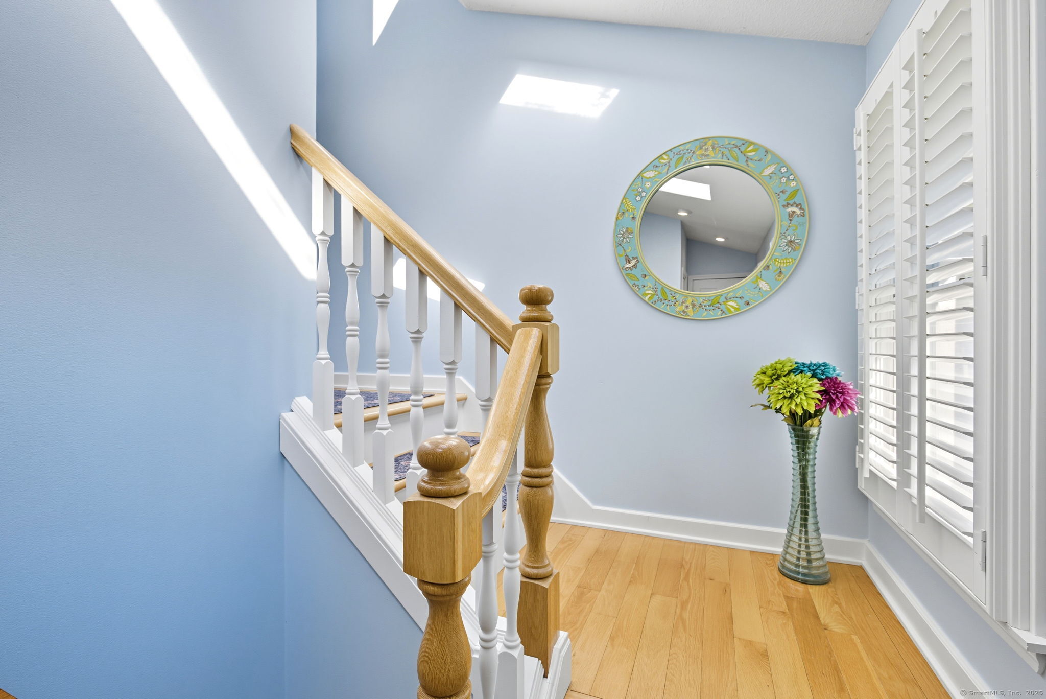 Much Sought-After Riverwalk Complex! Bright & beautifully maintained end-unit condo in the heart of Simsbury! Step into 1,602 sq ft of comfortable & thoughtful living space in this 2-bedroom, 2.5-bath townhome-style condo, blt in 1988. As an end unit, you'll enjoy extra light, privacy, & a sense of openness that's hard to beat! Inside, the living rm & dining area flow in an open plan, anchored by a cozy fireplace & sliders that lead to your private deck-perfect for relaxing or entertaining. Walls of windows flood the home w/natural light, creating sun-filled rms on both levels & highlighting the open, airy feel throughout. The kitchen shines w/granite countertops & hardwood flooring throughout adds elegance and warmth. Practical upgrades give you peace of mind: New Primary Bathroom Tub/Shower (2025), New White Window Plantation Shutters entire main level (2023), New Water Heater (2022), New Water Softener System (2022), New Dish Washer (2022), New Garage Door (2021). Walk-Out lower level with glass slider can be finished for an additional 800 sf! Situated in desirable Weatogue area of Simsbury, you're just mins away from downtown shops, dining, parks, scenic walking trails and the Farmington River! Enjoy living in a vibrant community where outdoor adventure, small-town charm, & modern comfort come together seamlessly. This move-in-ready home blends casual elegance w/everyday function, perfect for those seeking a relaxed, low-maintenance lifestyle w/out sacrificing style.