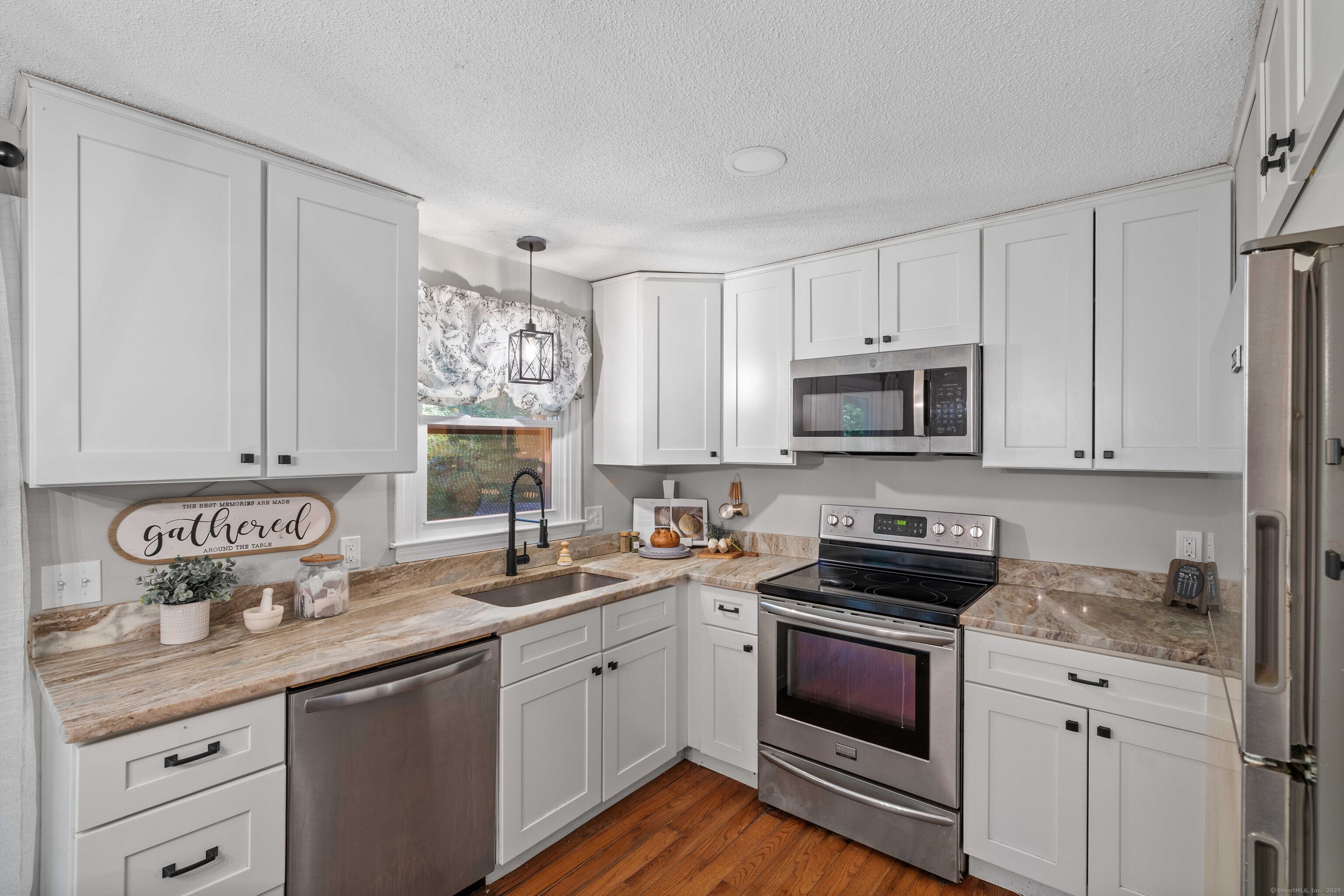 Warm, welcoming, and ready to be yours-this recently revitalized home invites you to call 46 Richardson Hill "home". Set back from the road on a .5 acre lot, this 3-bedroom, 1.5 bathroom raised ranch home offers many upgrades to its next owners. Recent key upgrades include a brand-new roof, new windows and a new septic tank. The main level of the home features hardwood flooring and houses the three bedrooms in addition to the centrally located, tiled, full bathroom. The main living area flows seamlessly into the kitchen area offering sleek, white, kitchen cabinetry, granite countertops & a stainless steel appliance suite. The eat in kitchen provides access to the back multi-level deck. Host unforgettable gatherings on this multi-level entertaining space designed for dining, lounging, and stargazing or to simply enjoy a quiet night in. On the lower level of the home, you will find the second half bathroom, an open living area or flex space, in addition to two separate rooms. The lower-level features hardwood flooring, ample natural light and access to the back deck. This adaptable lower-level layout provides space that can easily transform to suit your lifestyle. With its flexible layout and tranquil surroundings, this property offers the lifestyle you've been dreaming of! Agent owned.