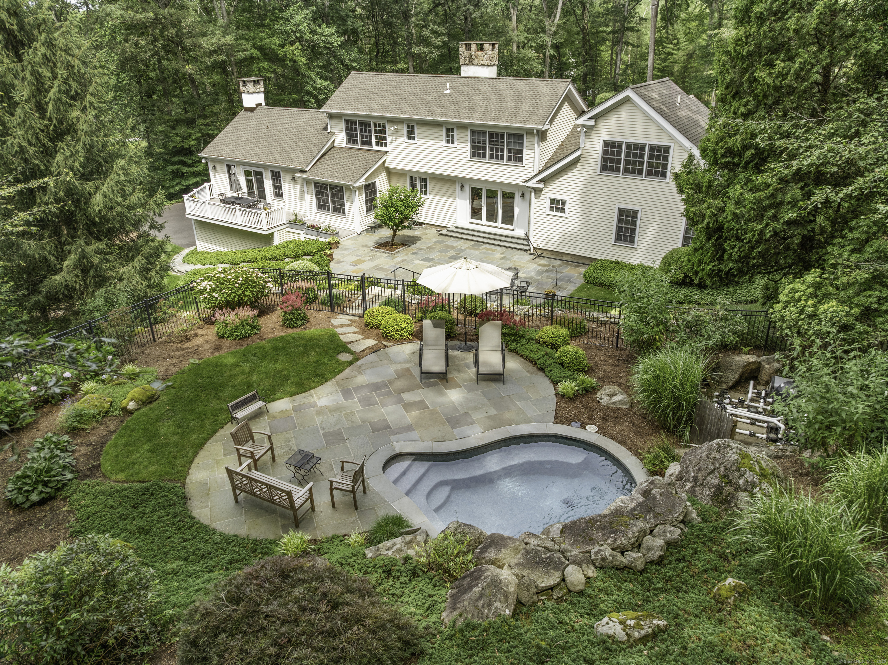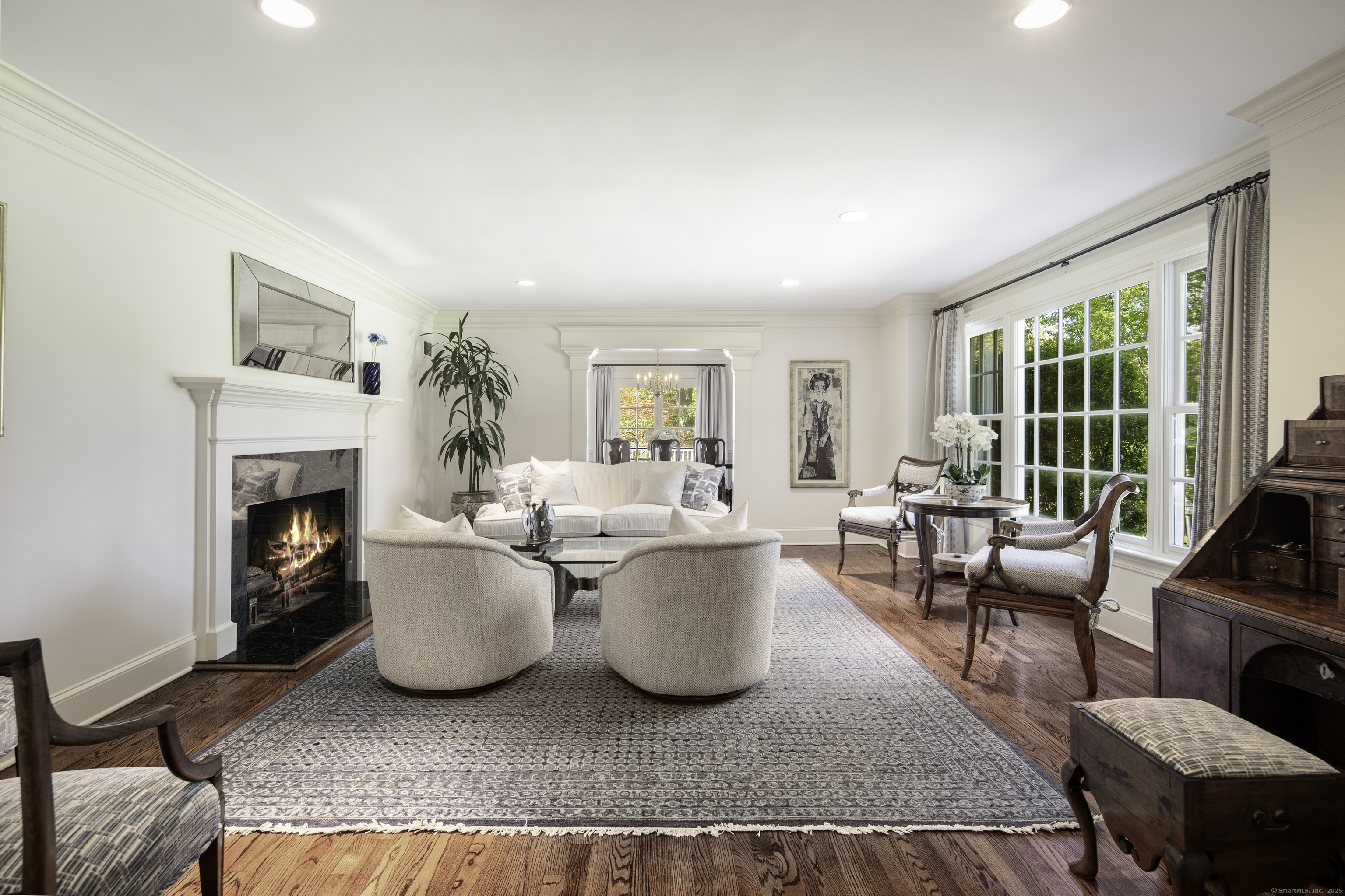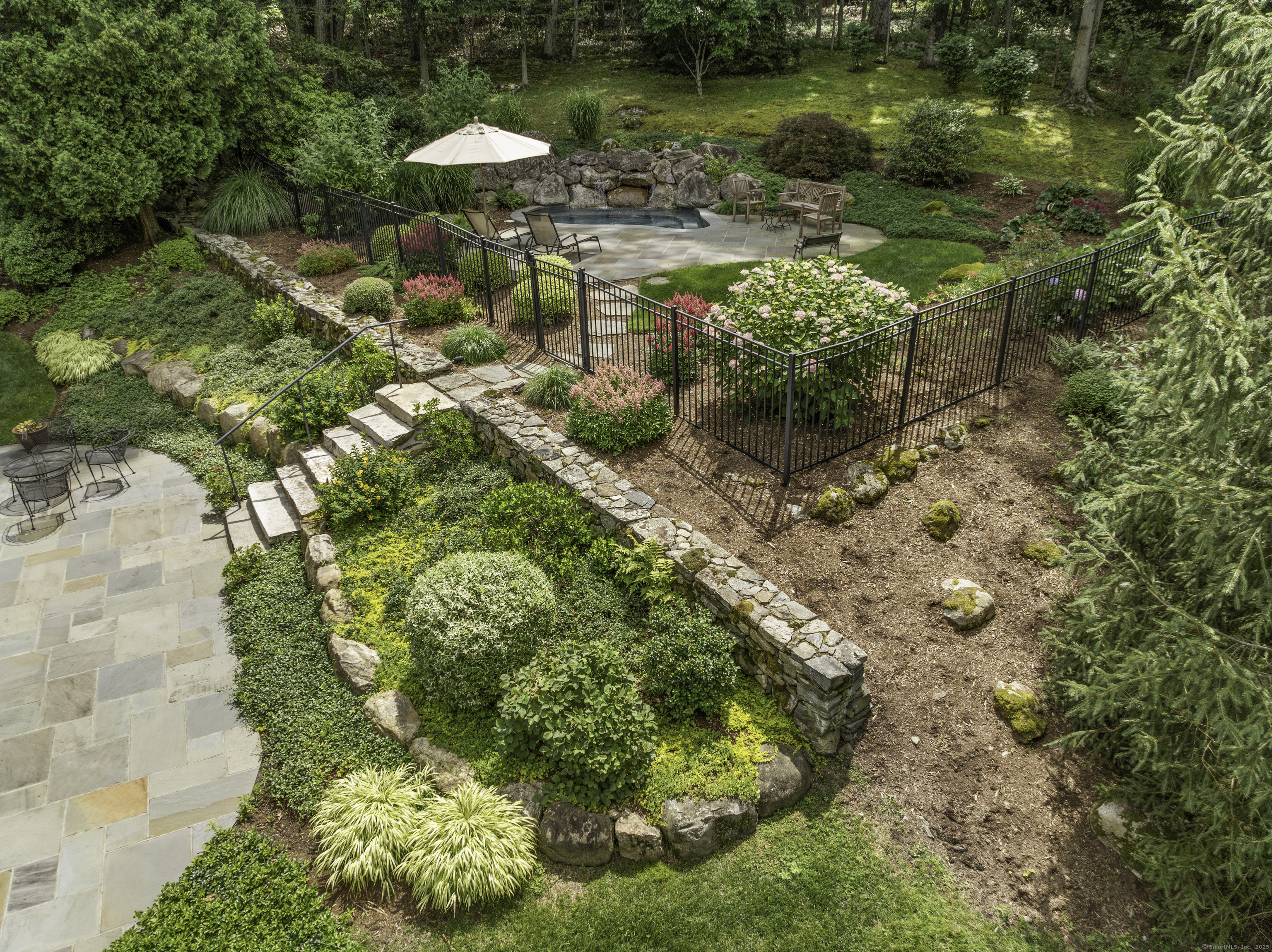 Come delight in seeing an exceptional New Canaan residence designed with style, sophistication and sited on a stunning landscaped 2.1 acres in a sought after neighborhood. As soon as you arrive, from the double height foyer welcoming you home to the inviting living room and the great family room, this is your place to relax and entertain with family and friends as you gather around the fireplaces. Come walk the delightful gardens, enjoy the privacy of the mature specimen trees and why not play games across the beautiful lawns. Croquet or soccer anyone? Located on a highly desirable cul-de-sac, the house has a beautiful private spa pool nestled in the gardens. A centrally positioned kitchen with expansive granite counters and island invite you in for conversations and cooking. The handsome paneled library with fireplace and wet bar opens to a spacious terrace, gardens and offers you a retreat for reading, working, and relaxing. Then there is the beautiful first floor Owner's suite as well as a second Primary Suite - take your choice! All bedrooms are ensuite. The Lower Level is flexible for relaxation, work, or play in front of the fireplace. To top it off there is the modern convenience of a garage Electric Vehicle Charger Located minutes to the Village with great shops, nationally ranked schools, library, parks, trains. --