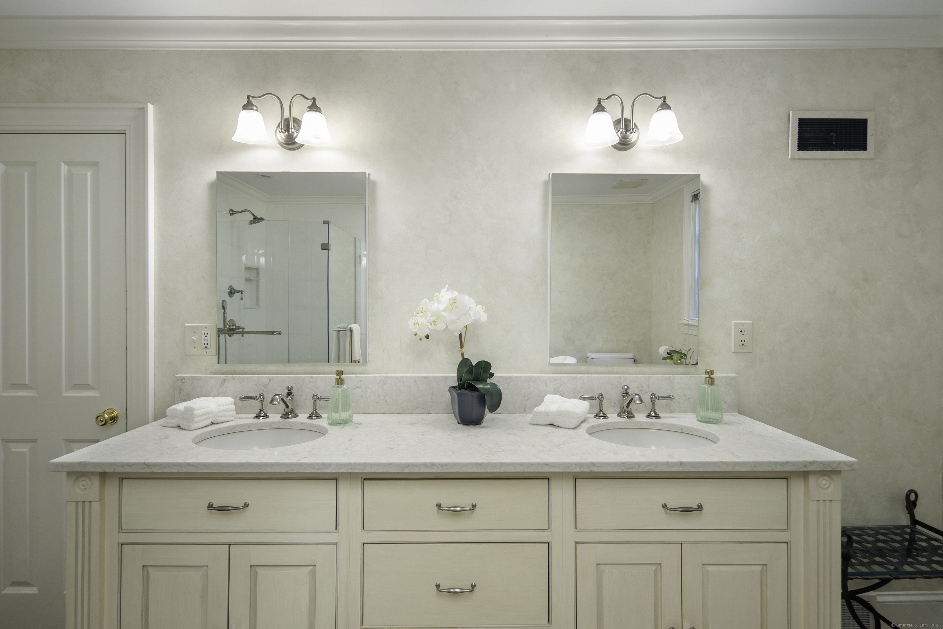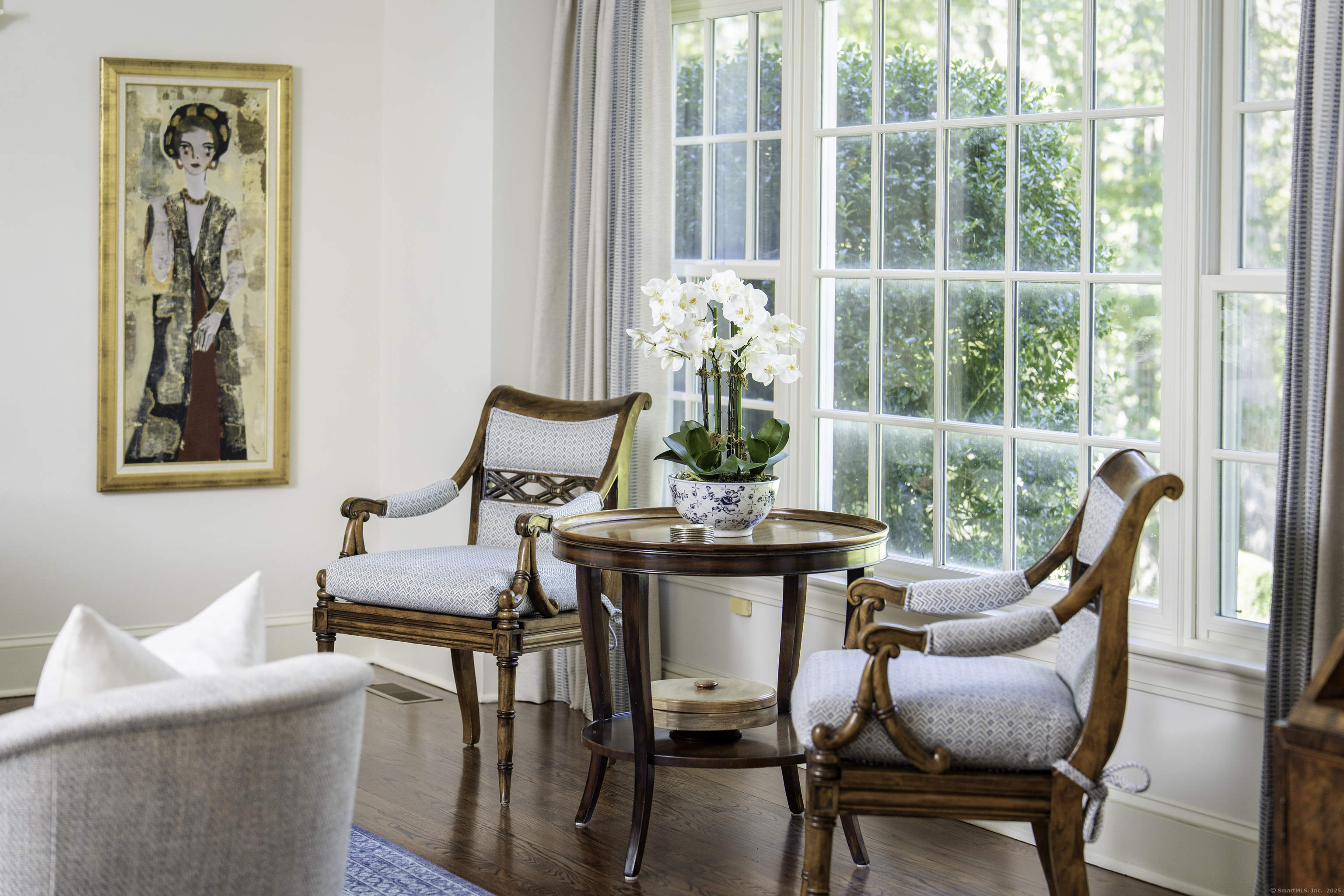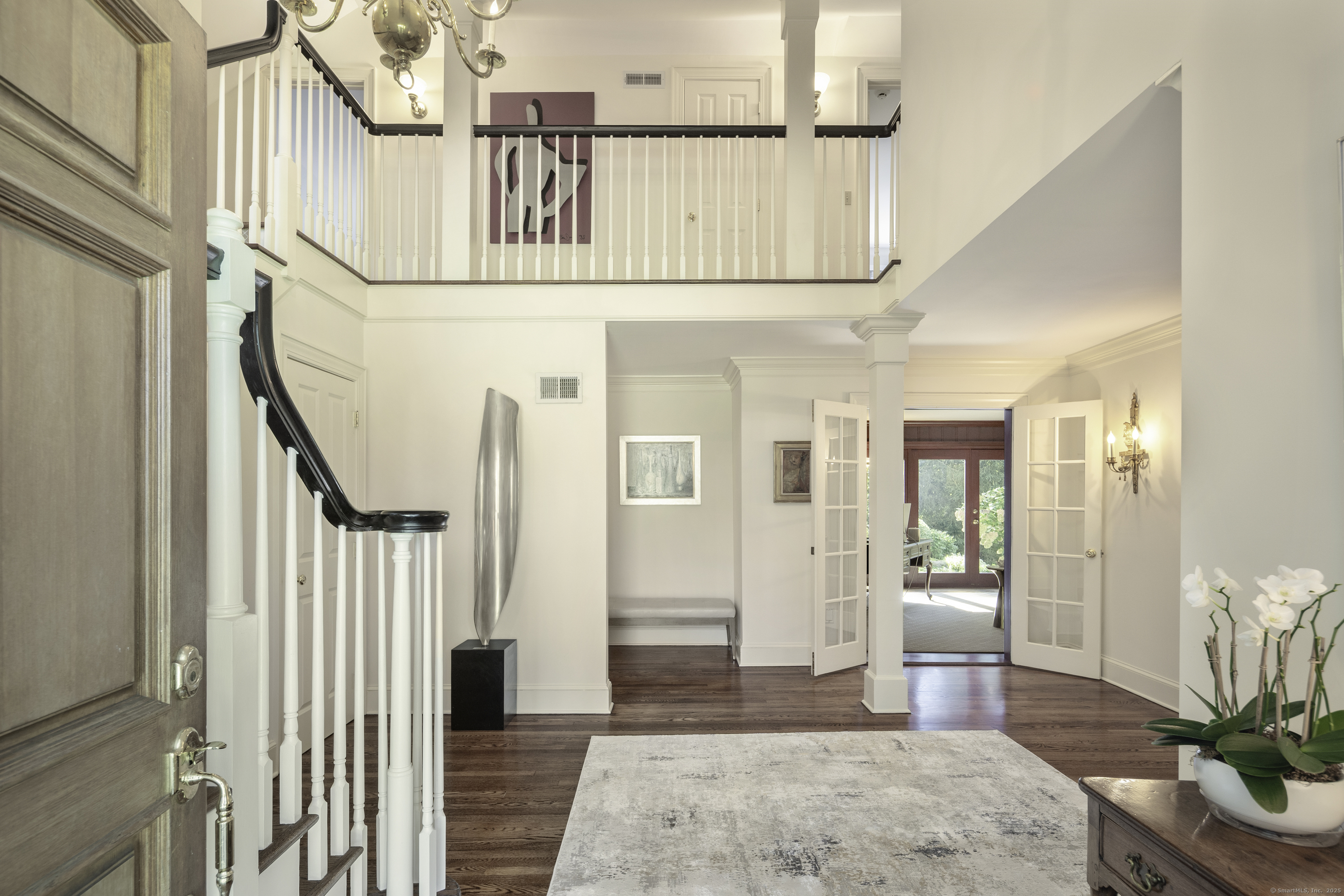 Come delight in seeing an exceptional New Canaan residence designed with style, sophistication and sited on a stunning landscaped 2.1 acres in a sought after neighborhood. As soon as you arrive, from the double height foyer welcoming you home to the inviting living room and the great family room, this is your place to relax and entertain with family and friends as you gather around the fireplaces. Come walk the delightful gardens, enjoy the privacy of the mature specimen trees and why not play games across the beautiful lawns. Croquet or soccer anyone? Located on a highly desirable cul-de-sac, the house has a beautiful private spa pool nestled in the gardens. A centrally positioned kitchen with expansive granite counters and island invite you in for conversations and cooking. The handsome paneled library with fireplace and wet bar opens to a spacious terrace, gardens and offers you a retreat for reading, working, and relaxing. Then there is the beautiful first floor Owner's suite as well as a second Primary Suite - take your choice! All bedrooms are ensuite. The Lower Level is flexible for relaxation, work, or play in front of the fireplace. To top it off there is the modern convenience of a garage Electric Vehicle Charger Located minutes to the Village with great shops, nationally ranked schools, library, parks, trains. --