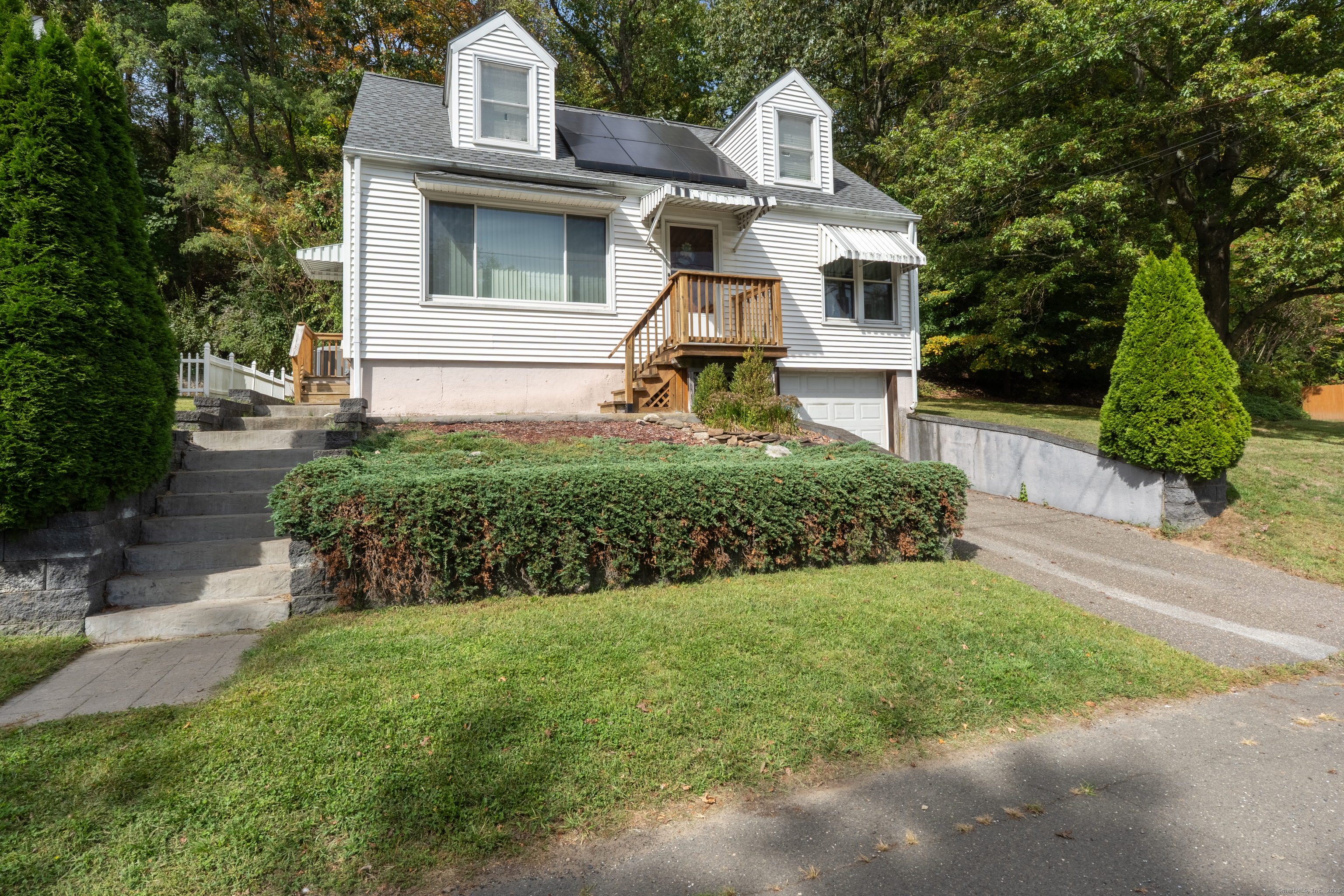 Welcome to 21 Brookdale Road in Seymour - a delightful Cape-style home offering comfort, updates, and convenience. With 3 bedrooms and 2 full baths, this home is thoughtfully designed for everyday living. The first floor features a charming, well-laid-out kitchen designed with efficiency in mind, a living room & dining room with hardwood floors, and a full bath. A main-level bedroom (with hardwood floors under the carpet) provides flexibility for guests or one-level living. Upstairs, a full rear dormer and doghouse dormers in the front expand the space, creating generously sized bedrooms and a large second full bath. Additional highlights include a newer roof (2021), updated 200-amp electrical service, and solar panels with battery backup for energy efficiency. The one-car garage under the house leads into a combined basement, offering both storage and functionality. Outside, a cute side yard is perfect for gardening, relaxing, or play. City Water & Sewer, Central air! Located on a peaceful dead-end street yet just minutes from Route 8, shopping, parks, and more - this home blends charm, practicality, and convenience.