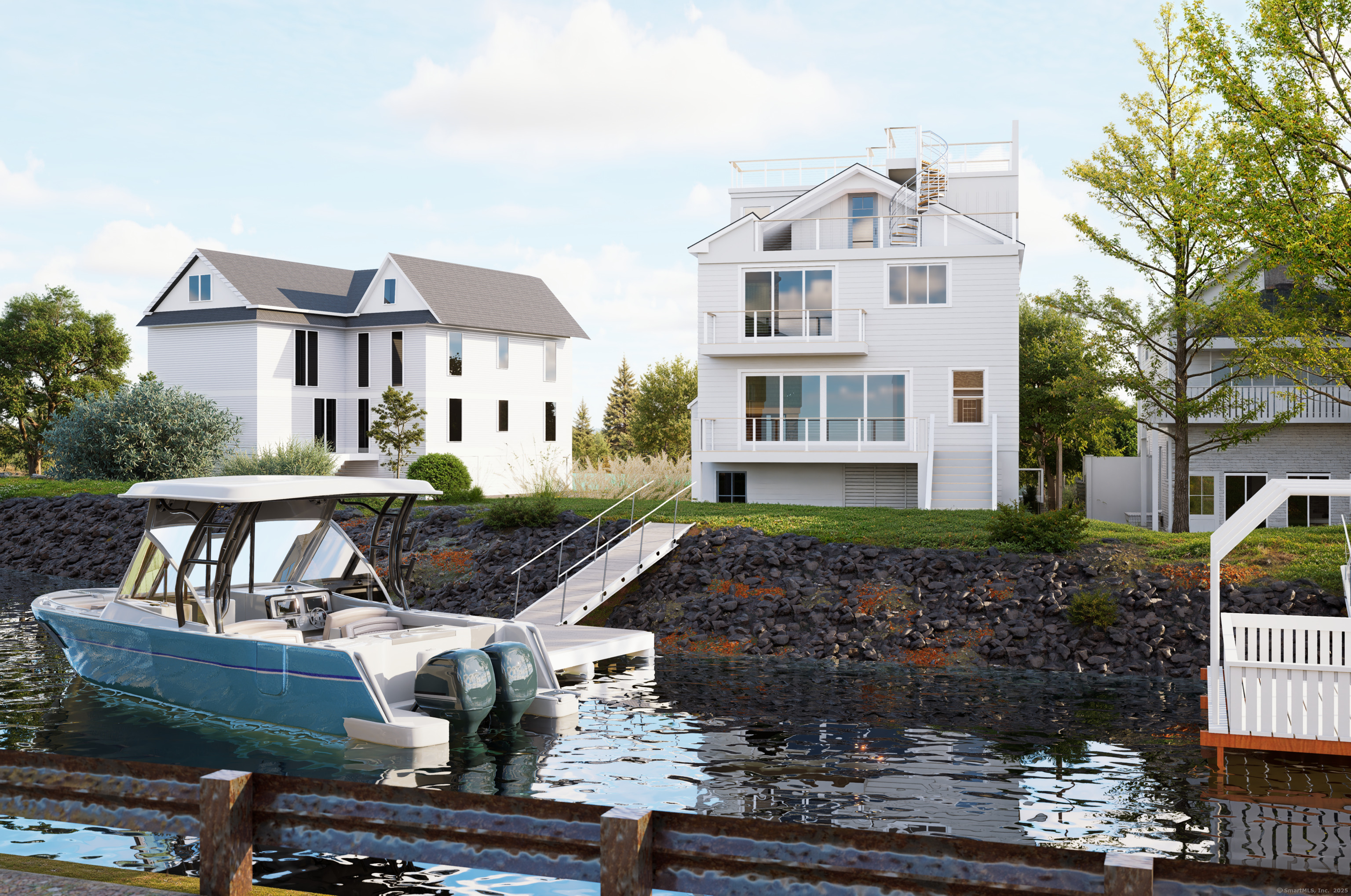 A beautiful, new construction waterfront home complete w/ boat dock & elevator awaits & will be ready for you to enjoy by the early Spring of 2026. Offering 3 levels of luxurious living - this gorgeous coastal home sets a new standard for smart design & top tier craftsmanship. Enjoy seamless access to every floor w/ a private elevator from the ground to the 3rd level PLUS a spiral stairway to an additional rooftop deck where you can enjoy unobstructed panoramic water views & colorful sunsets. With 10 spacious rooms, this home combines comfort, elegance & functionality. The ground level loggia opens up to the water, while the private dock in front of your home offers in the moment convenience for boaters. Across the road, your own additional property provides great extra parking - a rare bonus in waterfront living. Every detail reflects luxury: wide plank white oak hardwood flooring, Pella Lifestyle series wood interior windows, 2" TruStile custom interior doors, state of the art appliances including wine column & beverage chiller, custom cabinetry in kitchen & baths, Hardie Board exterior siding for lasting durability, Perrin & Rowe hardware, decks on 2nd, 3rd & rooftop levels all w/ stunning views, radiant heated flooring in the ground-level entry & primary bath, spa-like bathrooms w/ premium finishes & an irrigation system to keep your landscaping pristine. This home will be flooded w/ natural light throughout the day, enhancing your daily living. Living life with quality!