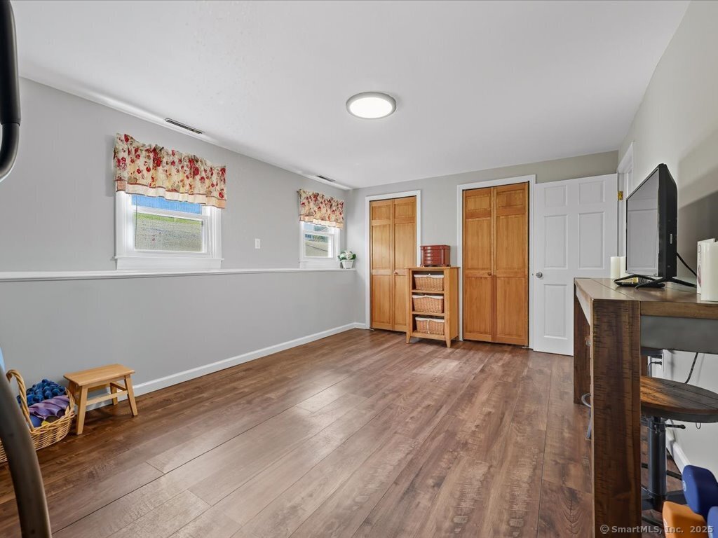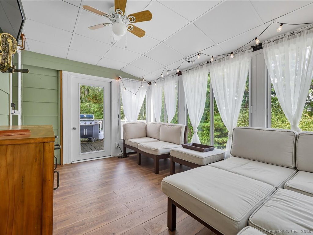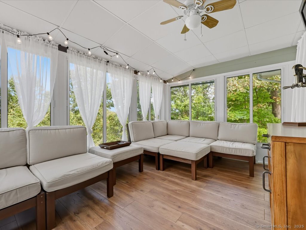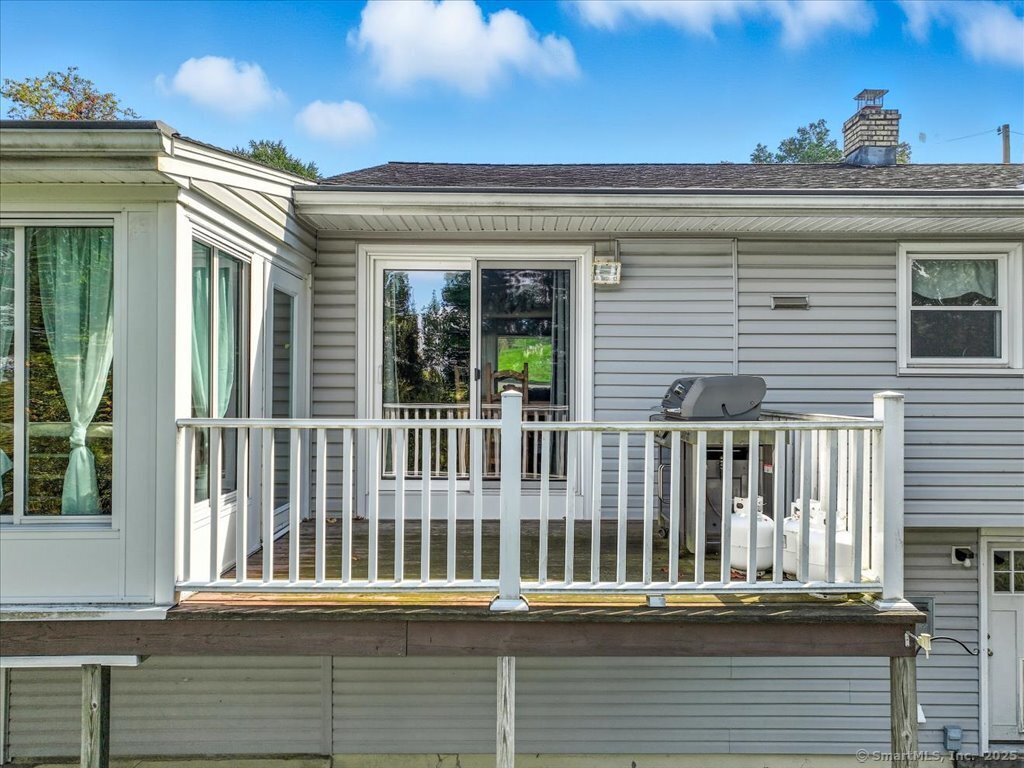 Welcome to this beautifully maintained Ranch-style home offering the perfect blend of comfort, flexibility, and space. With a finished lower level and two full bathrooms, this home provides a versatile layout designed to fit your lifestyle. The main level features a bright and inviting living room with a large picture window, filling the space with natural light. The updated kitchen and dining area flow seamlessly outside to enjoy the upper deck overlooking the private, fully fenced backyard and into a sun-filled three-season room, perfect for relaxing or entertaining. With options for the primary bedroom on either level, this home is ideal for multi-generational living or creating a private retreat. The lower level includes a cozy living space with a charming fireplace, a full bath, additional bedroom / home office / exercise room with walk in closets, a laundry room, plus direct walk-out access to the large lower deck and yard. A workshop and large room offer ample storage or the perfect opportunity to design a dream walk-in closet. Enjoy the curb appeal of the professionally landscaped front with stone walkways and retaining walls, plus the convenience of an attached two-car garage. The backyard provides plenty of room for outdoor gatherings, gardening, or play. Located close to schools, parks, and town amenities, this home is move-in ready and waiting for its next chapter.