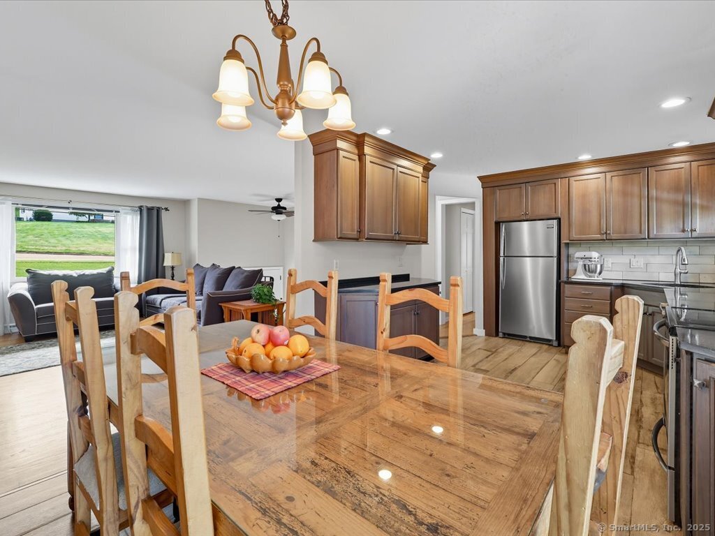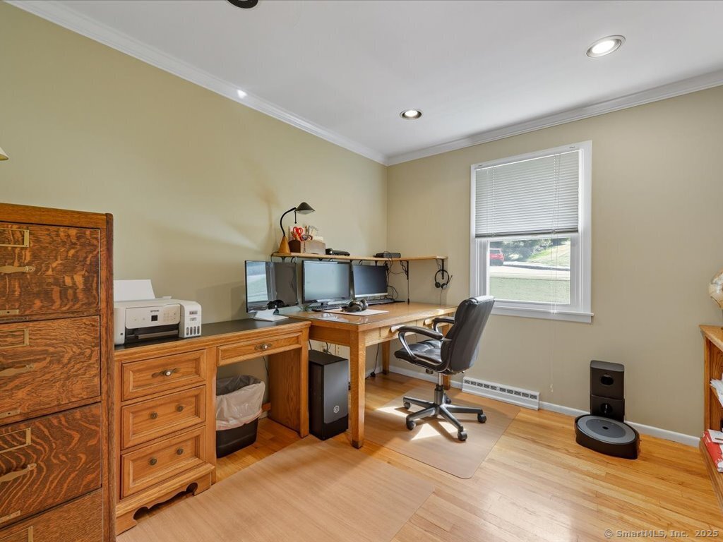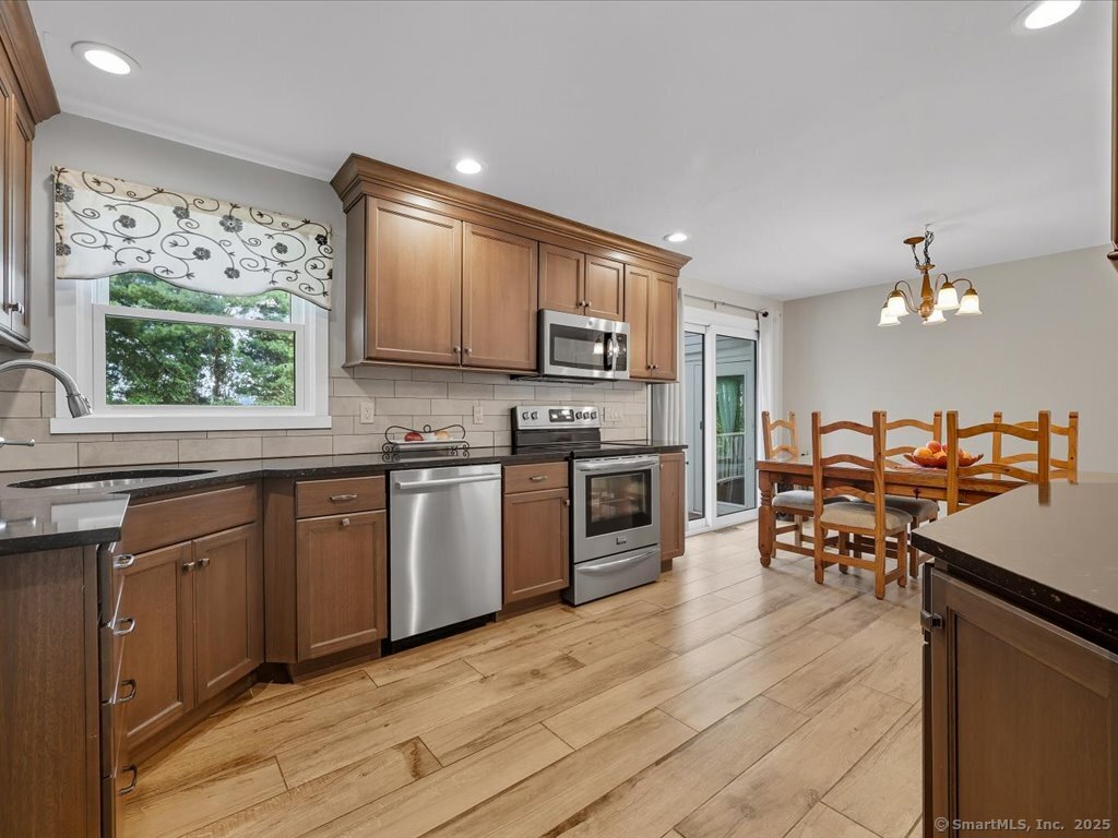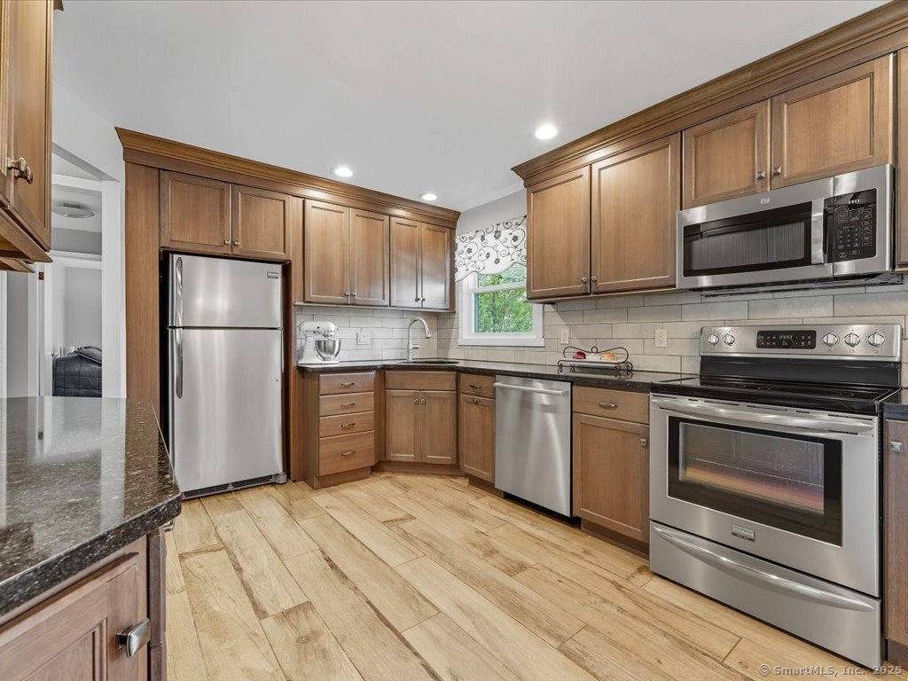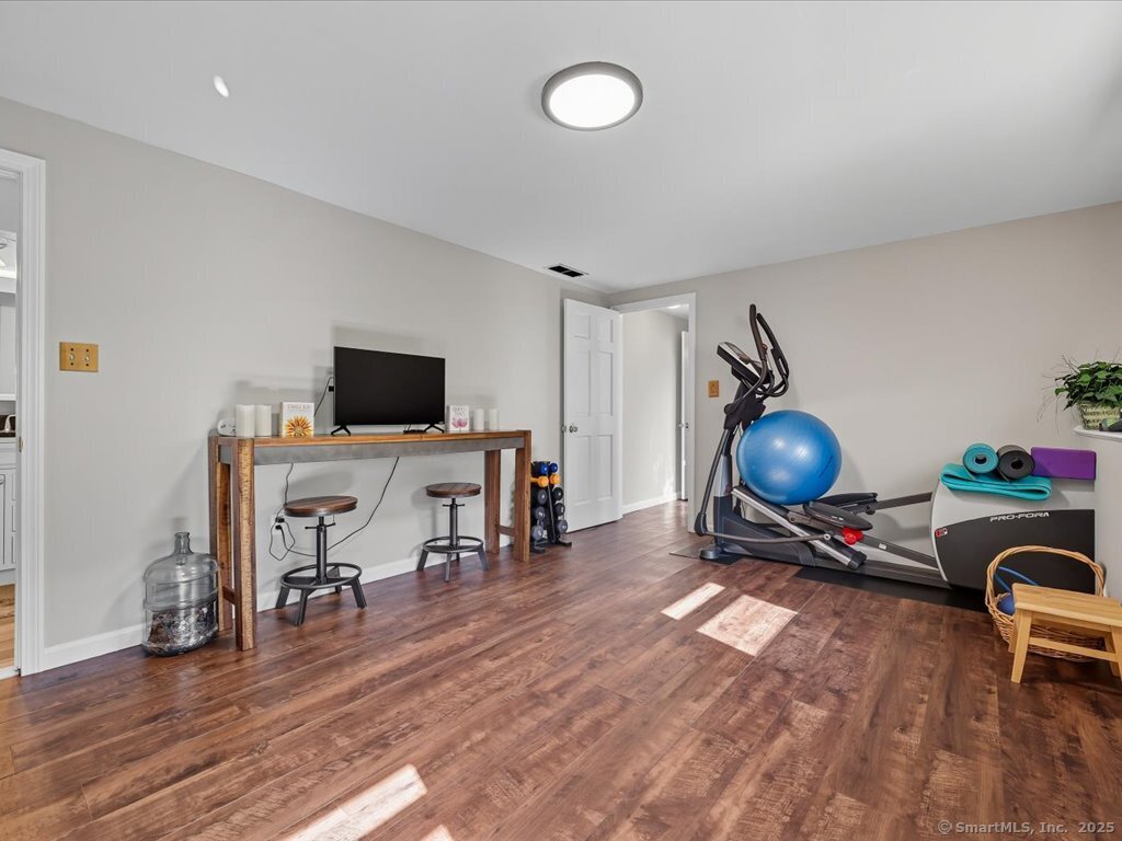 Welcome to this beautifully maintained Ranch-style home offering the perfect blend of comfort, flexibility, and space. With a finished lower level and two full bathrooms, this home provides a versatile layout designed to fit your lifestyle. The main level features a bright and inviting living room with a large picture window, filling the space with natural light. The updated kitchen and dining area flow seamlessly outside to enjoy the upper deck overlooking the private, fully fenced backyard and into a sun-filled three-season room, perfect for relaxing or entertaining. With options for the primary bedroom on either level, this home is ideal for multi-generational living or creating a private retreat. The lower level includes a cozy living space with a charming fireplace, a full bath, additional bedroom / home office / exercise room with walk in closets, a laundry room, plus direct walk-out access to the large lower deck and yard. A workshop and large room offer ample storage or the perfect opportunity to design a dream walk-in closet. Enjoy the curb appeal of the professionally landscaped front with stone walkways and retaining walls, plus the convenience of an attached two-car garage. The backyard provides plenty of room for outdoor gatherings, gardening, or play. Located close to schools, parks, and town amenities, this home is move-in ready and waiting for its next chapter.